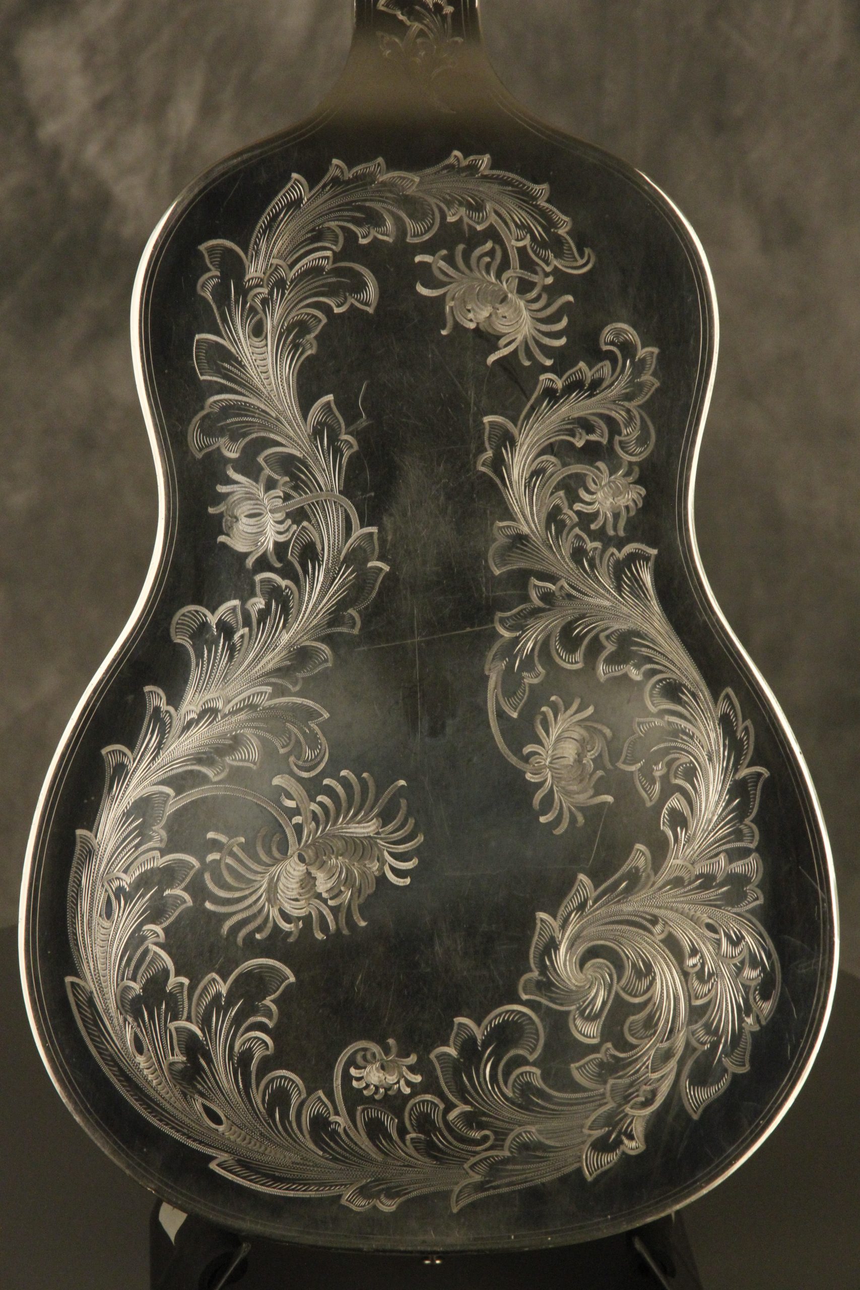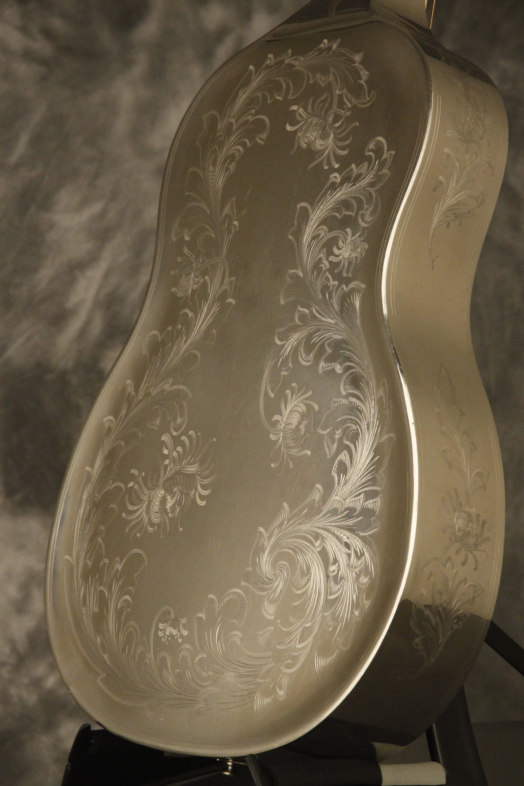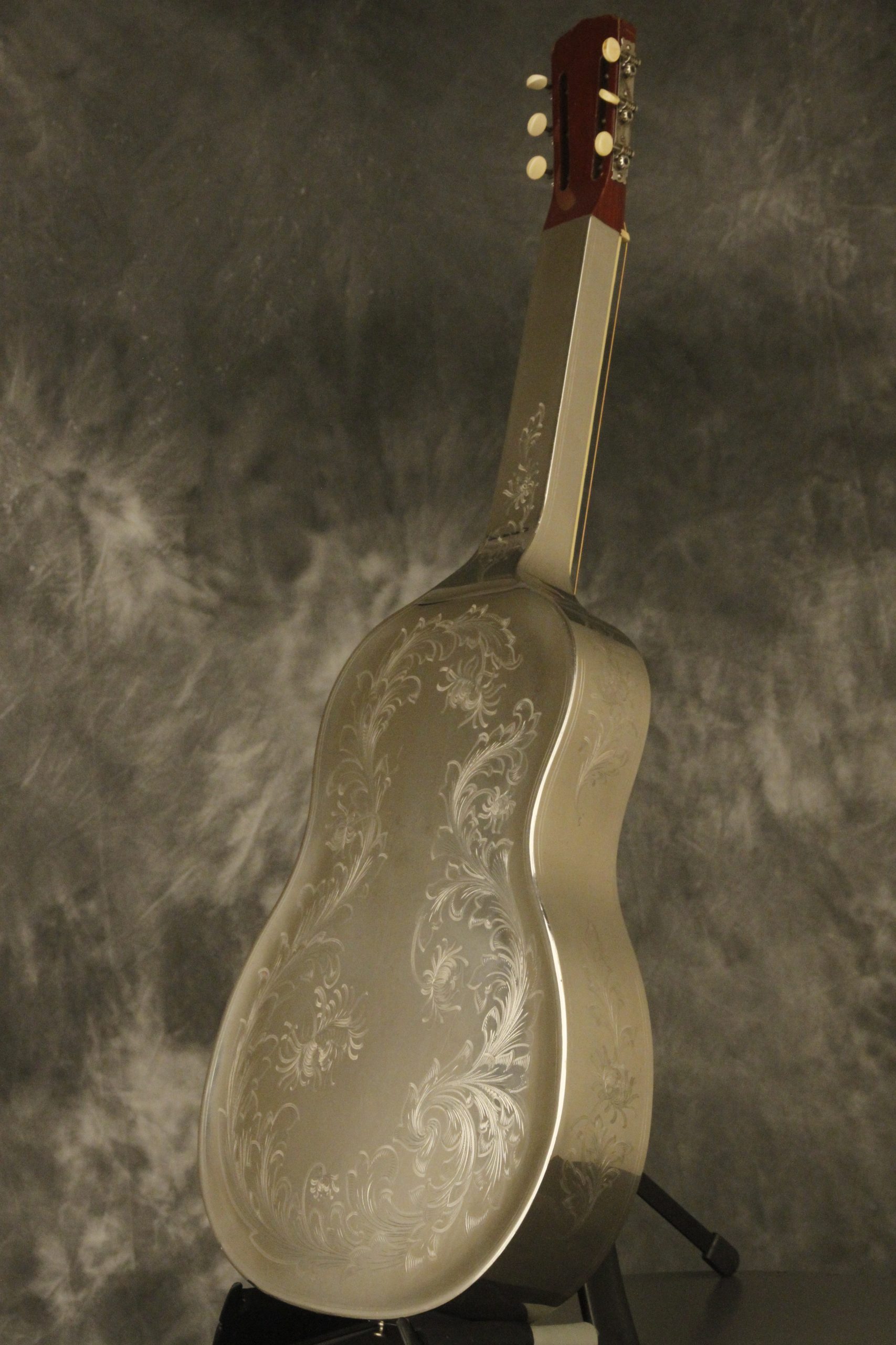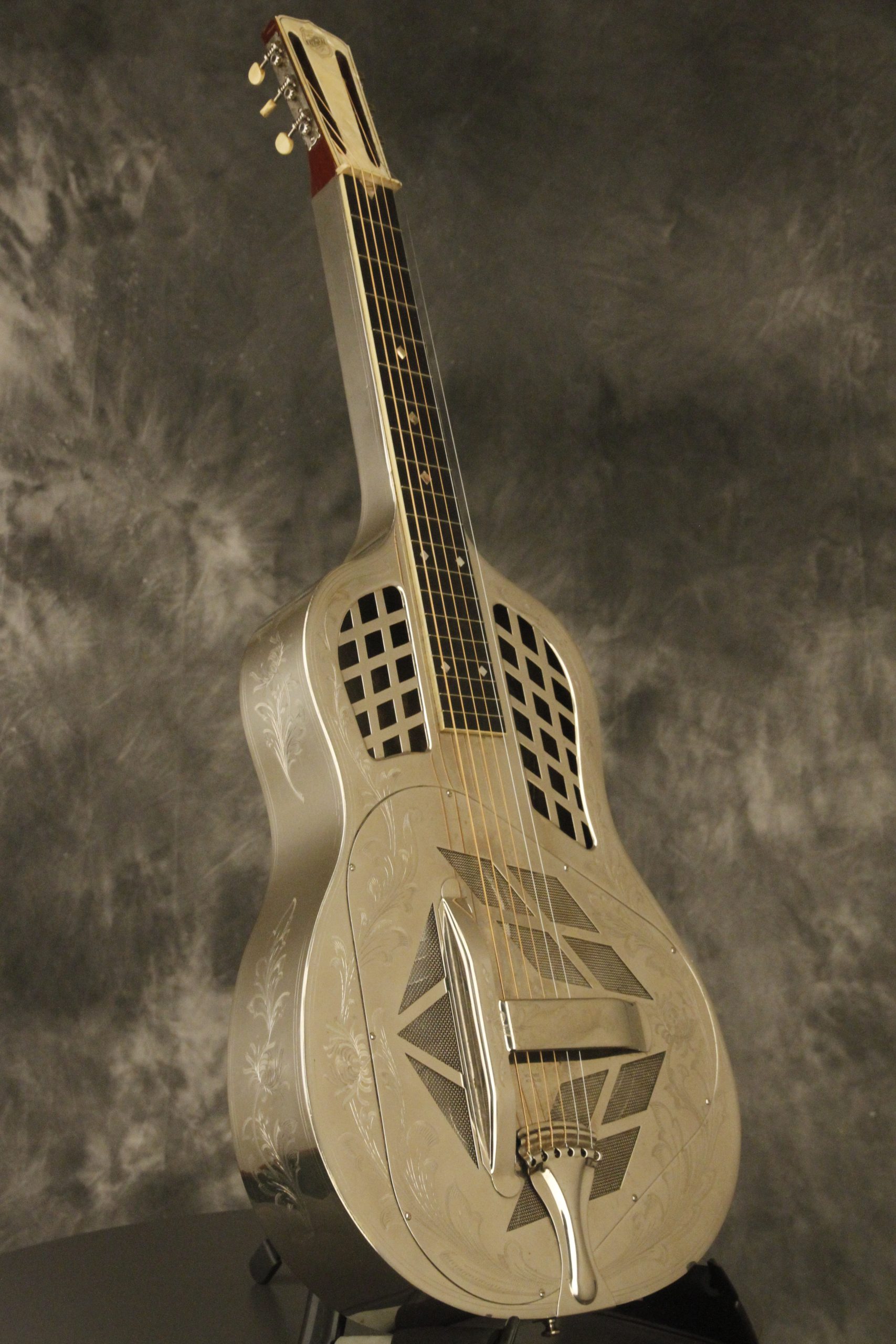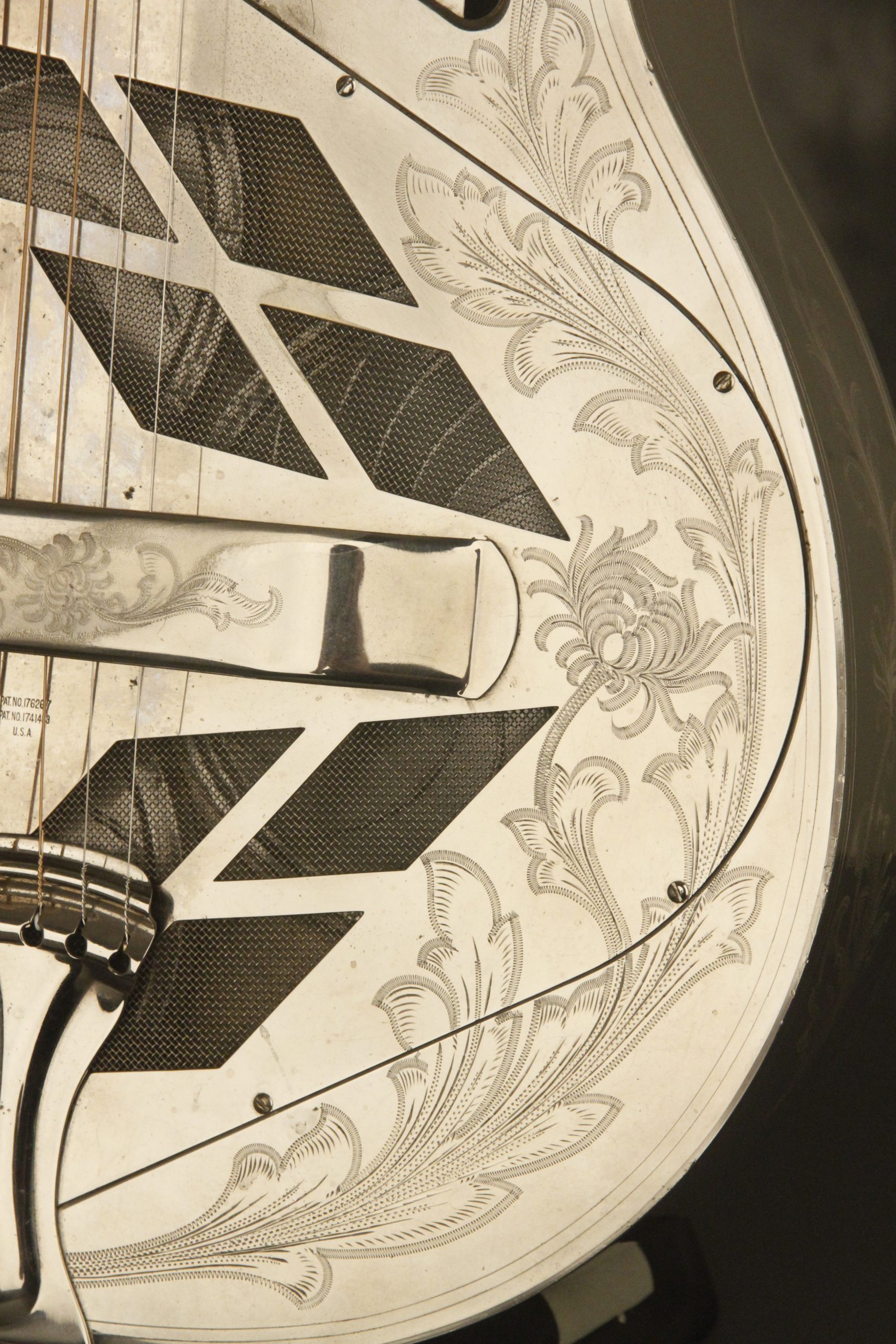 1930's National Style 4 Tri-Cone Resonator. The 3-set strip tuners on the bass side have been changed, but everything else appears to be original along with its original hardshell case. It's in great shape with some minor nicks + dings and other cosmetic wear. Everything remains structurally sound with no cracks, breaks or repairs.