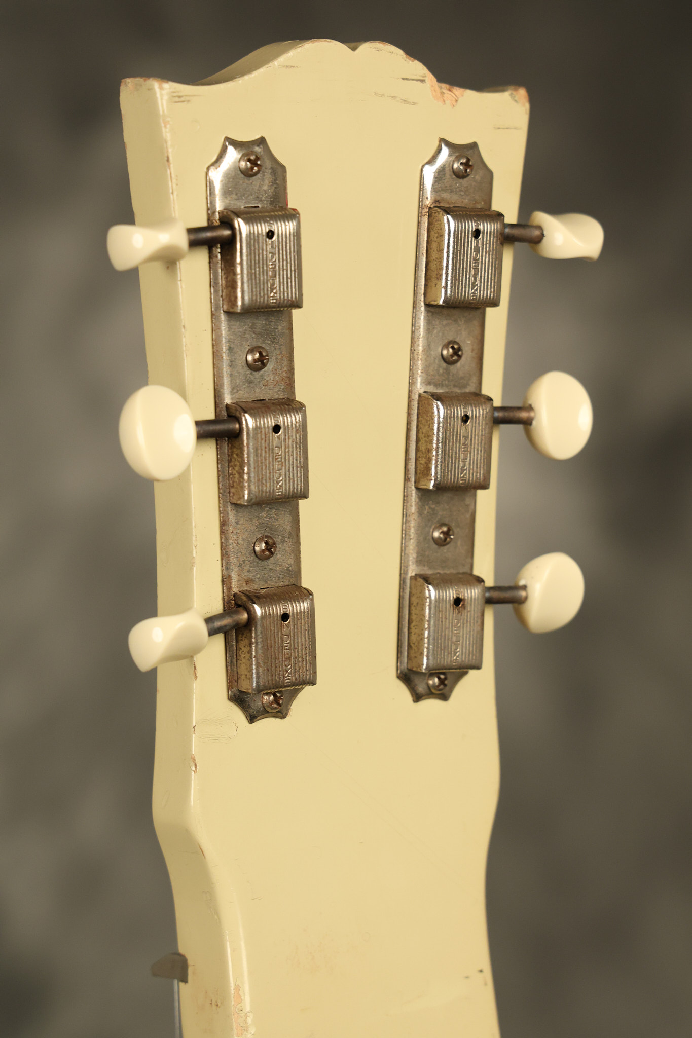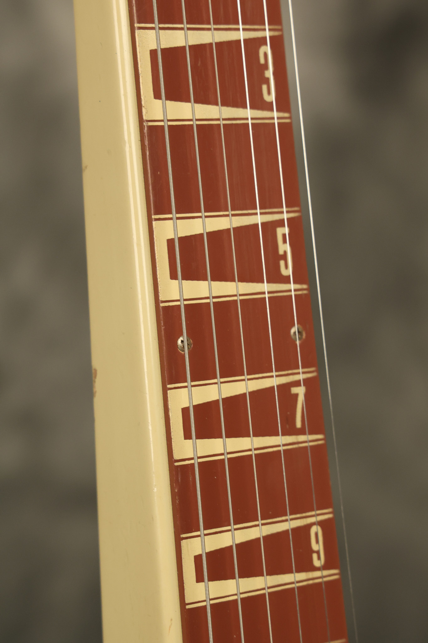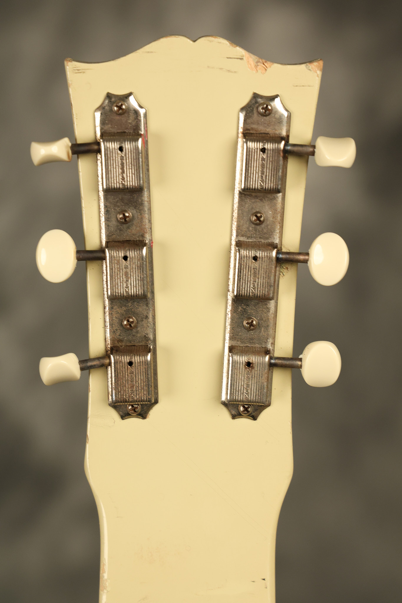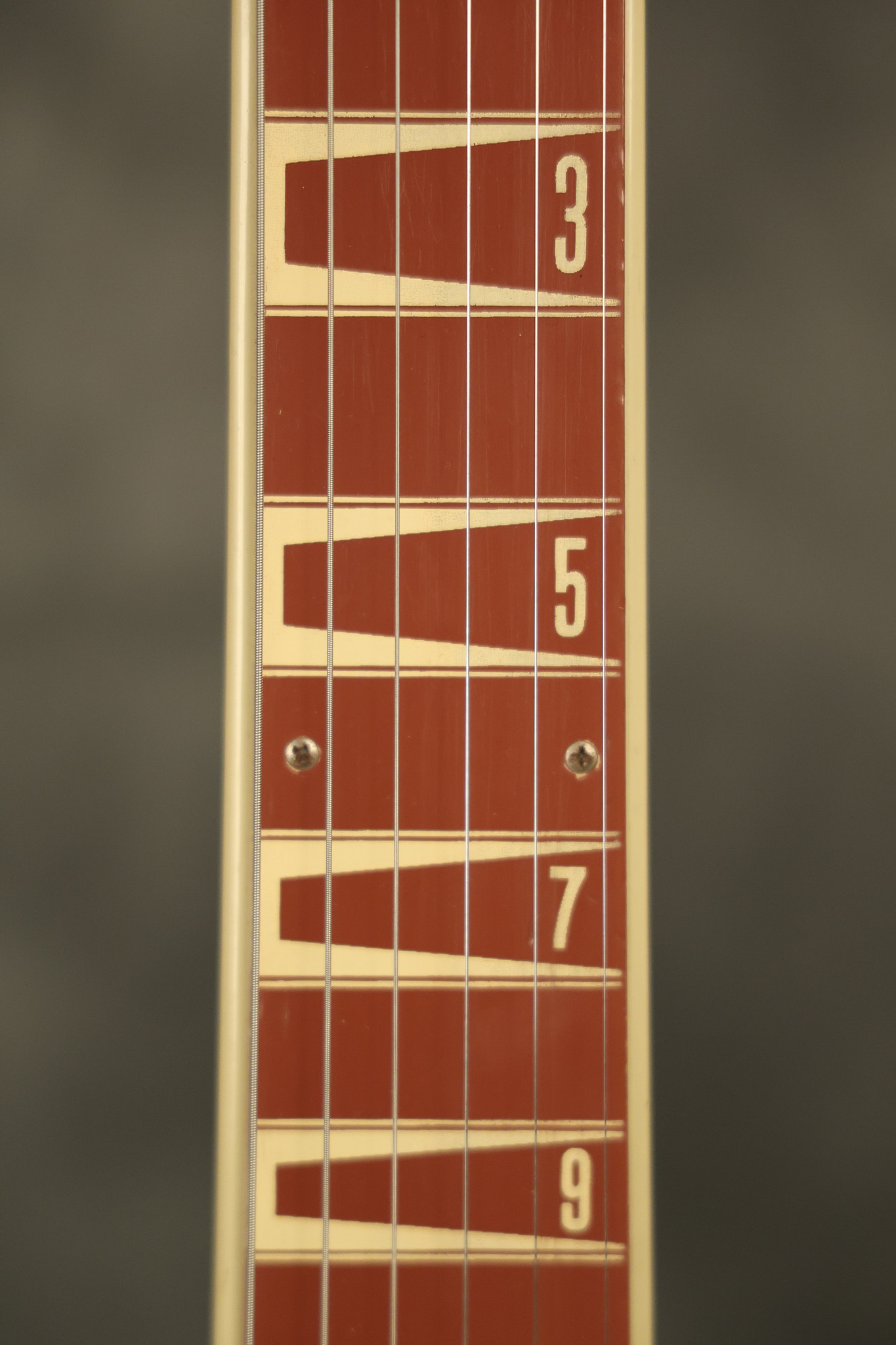 1950 Gibson BR-9 lap steel guitar in its original finish. It's all original with the exception of the replaced tuning buttons, jackplate and the outside of the original case has been painted over. It looks good with nicks + dings, some chipped areas in the finish on the bottom edge and other cosmetic wear. The neck support in the case is a little loose, but will be packed very well. All electronics work and sound great.