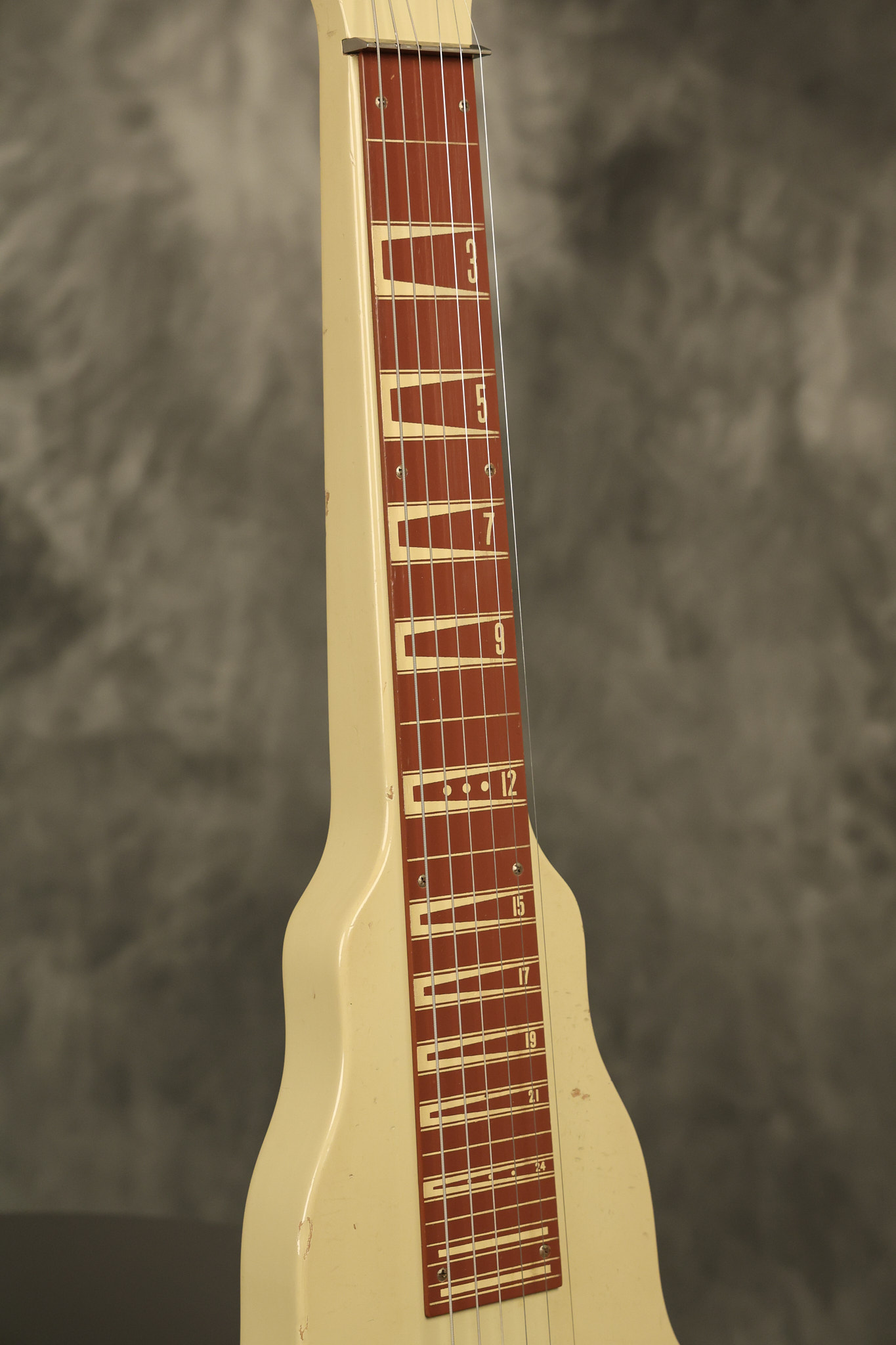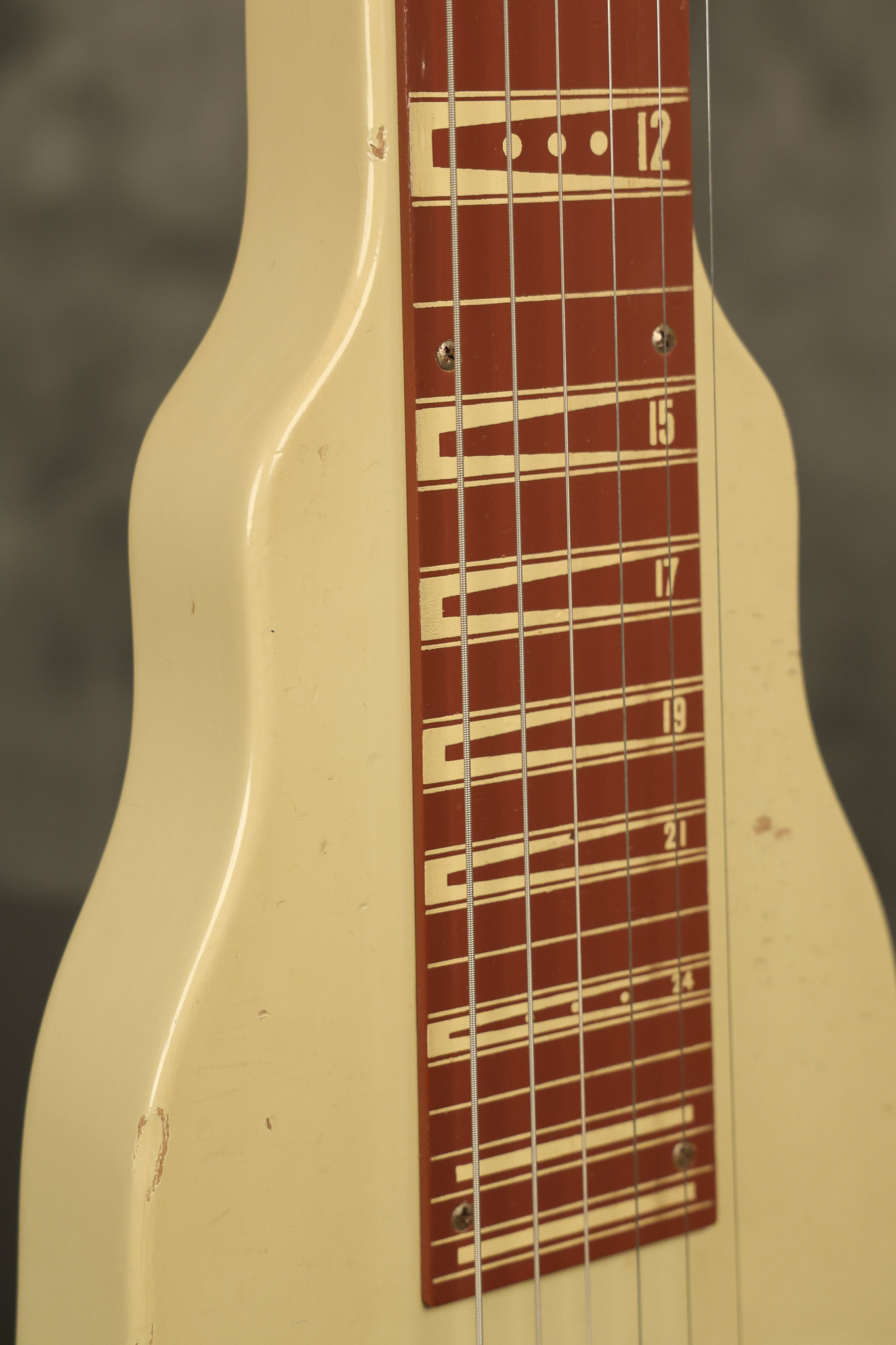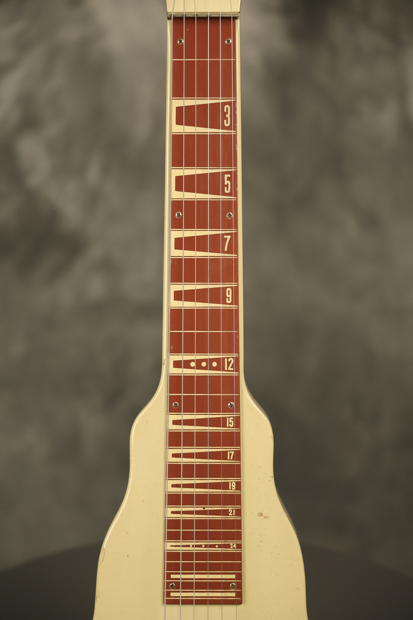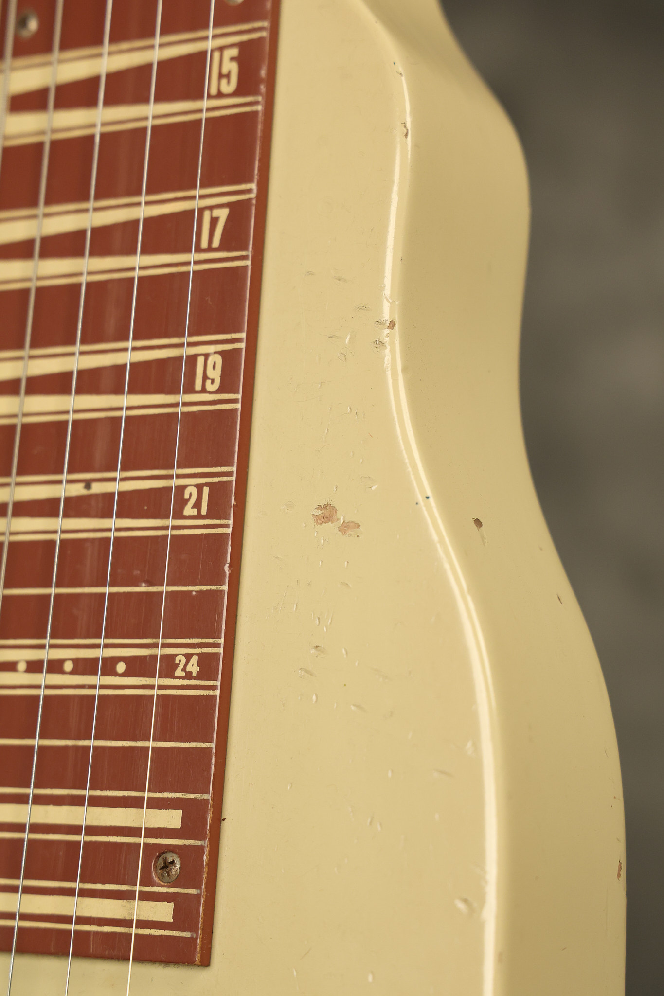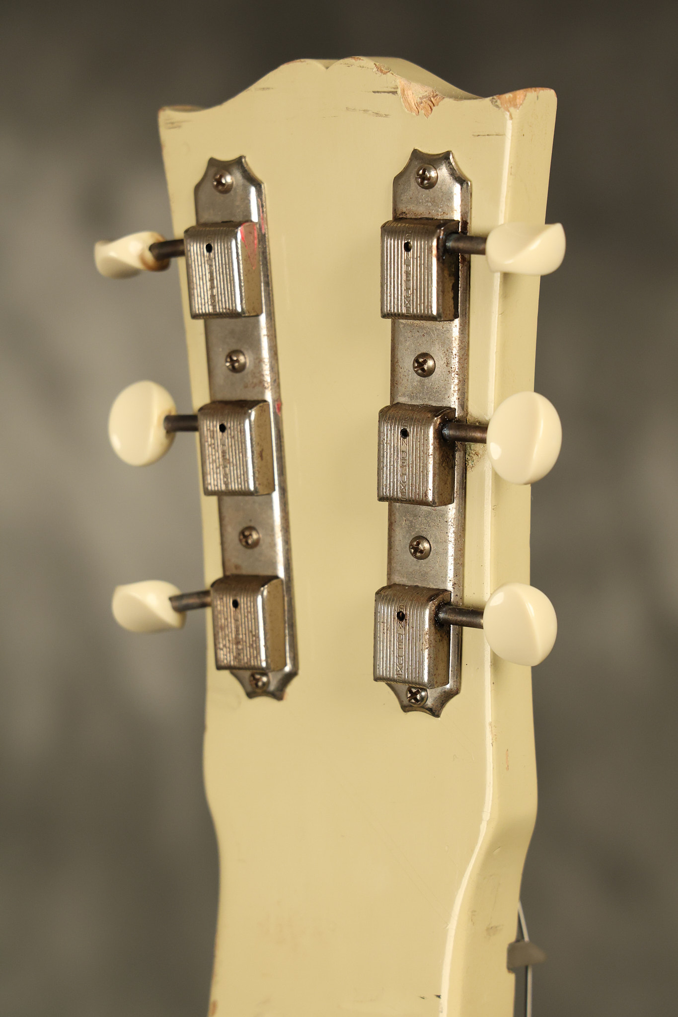 1950 Gibson BR-9 lap steel guitar in its original finish. It's all original with the exception of the replaced tuning buttons, jackplate and the outside of the original case has been painted over. It looks good with nicks + dings, some chipped areas in the finish on the bottom edge and other cosmetic wear. The neck support in the case is a little loose, but will be packed very well. All electronics work and sound great.