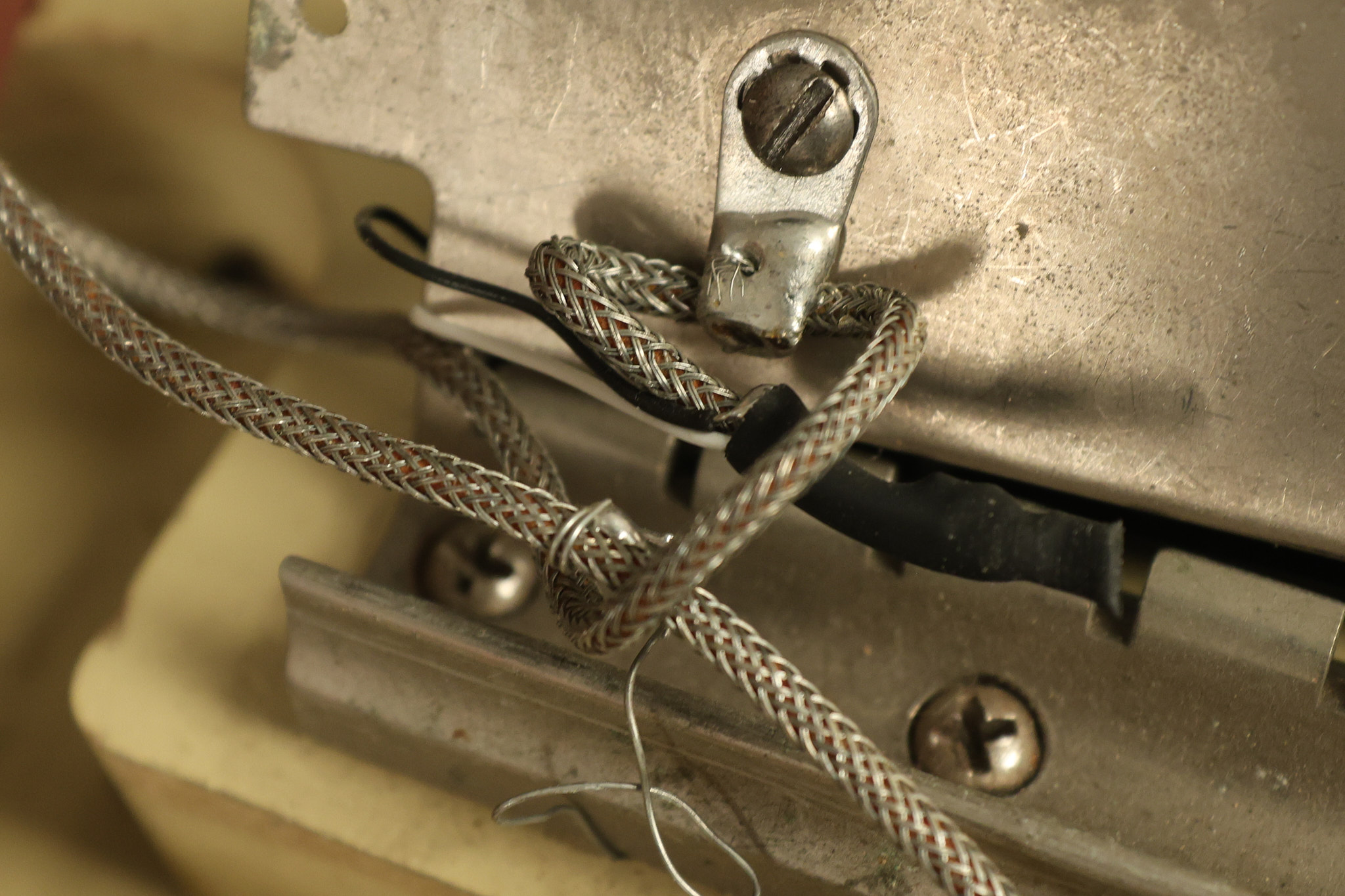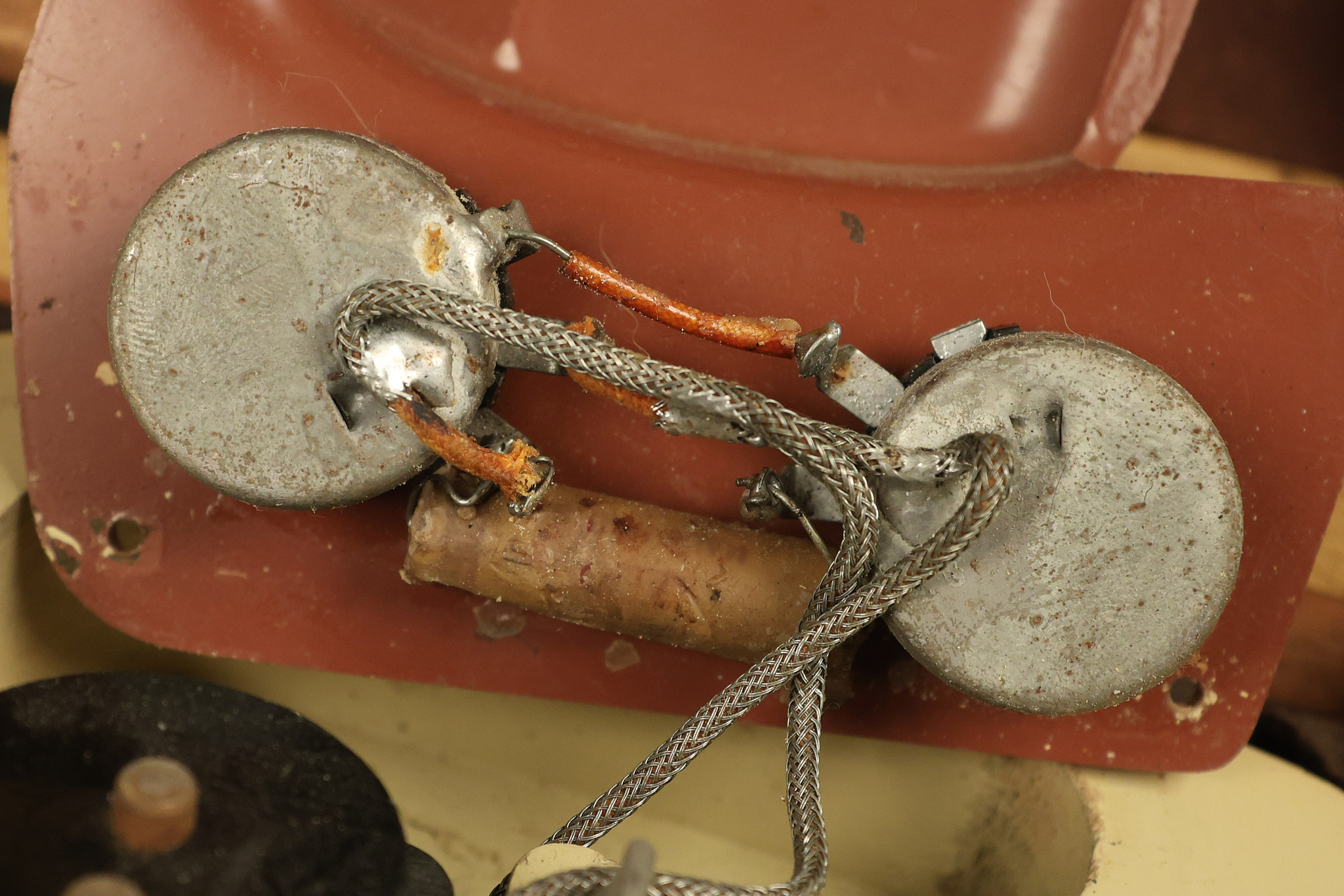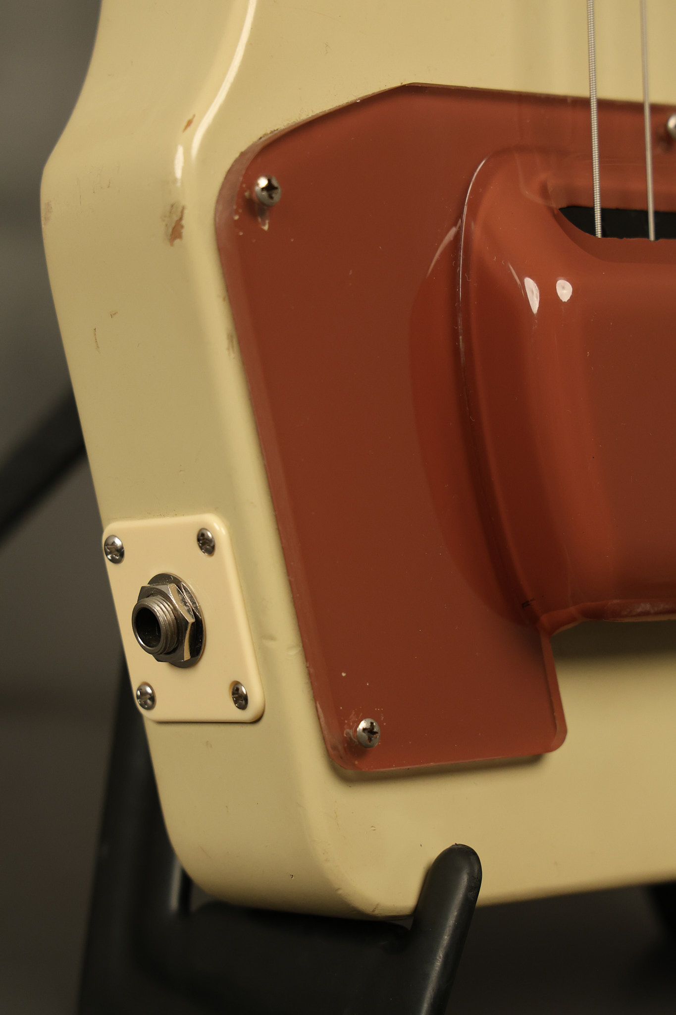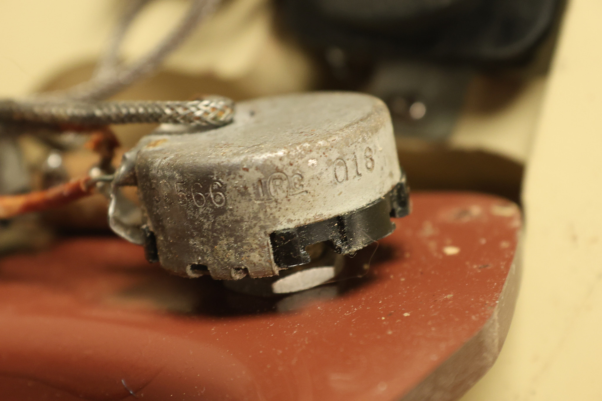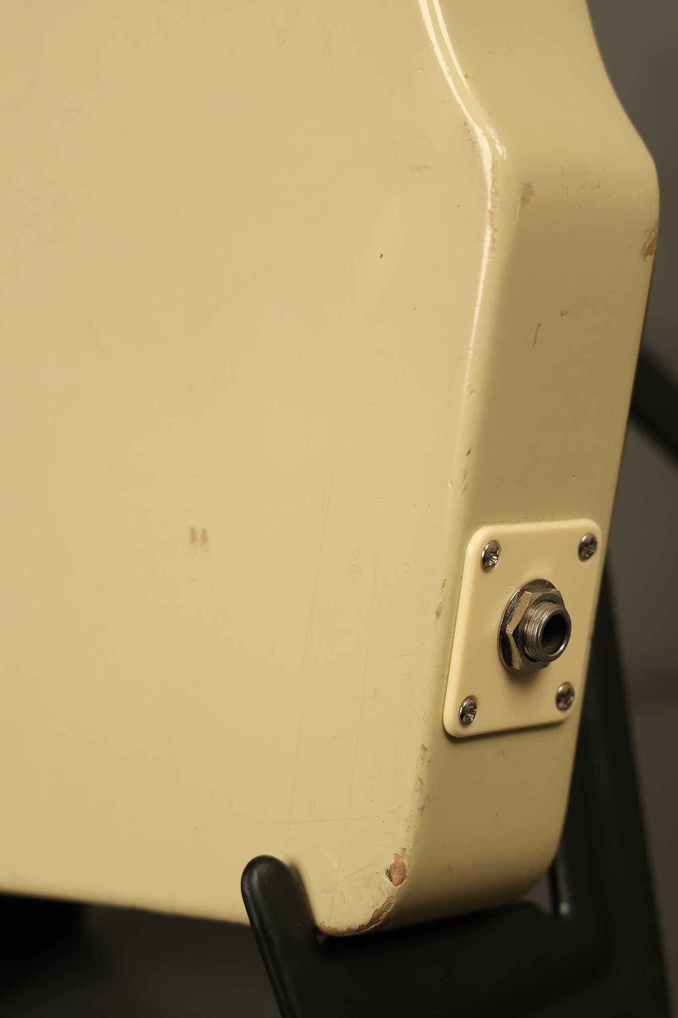1950 Gibson BR-9 lap steel guitar in its original finish. It's all original with the exception of the replaced tuning buttons, jackplate and the outside of the original case has been painted over. It looks good with nicks + dings, some chipped areas in the finish on the bottom edge and other cosmetic wear. The neck support in the case is a little loose, but will be packed very well. All electronics work and sound great.