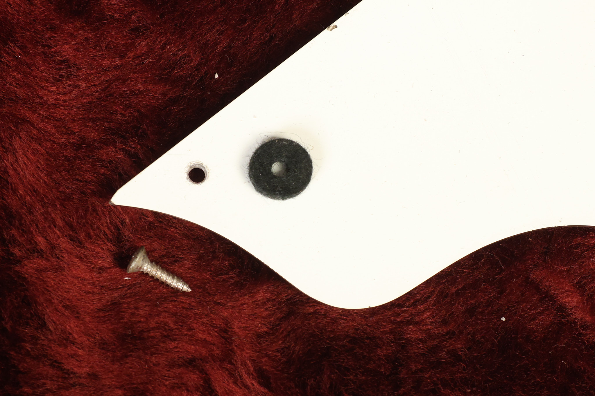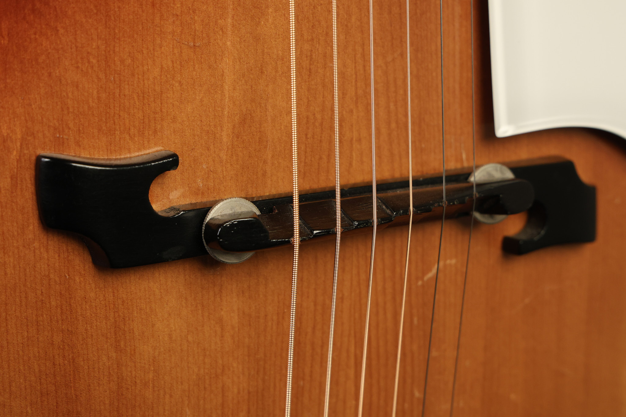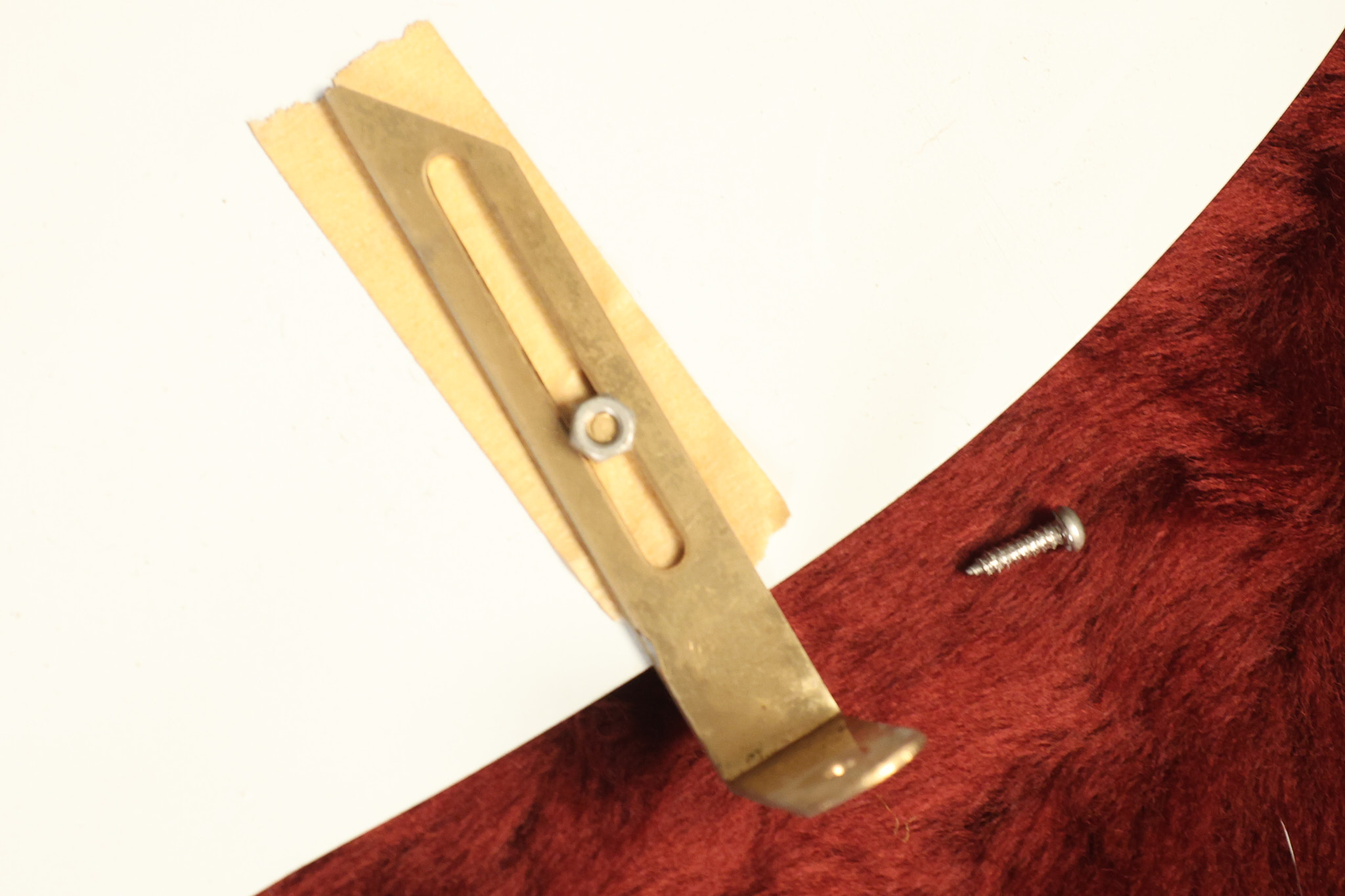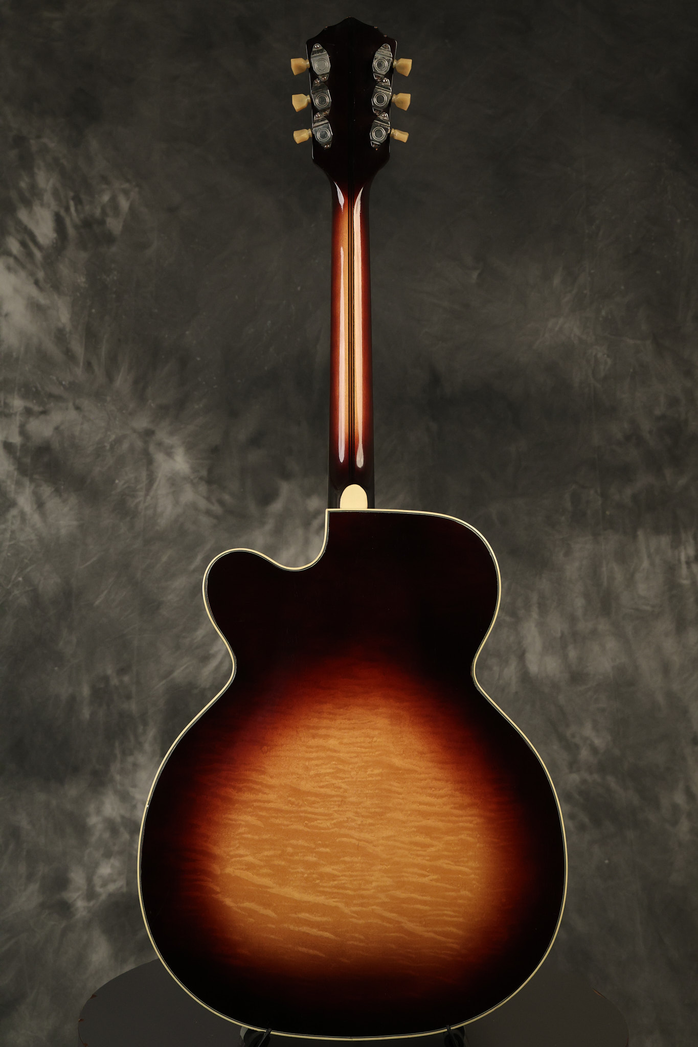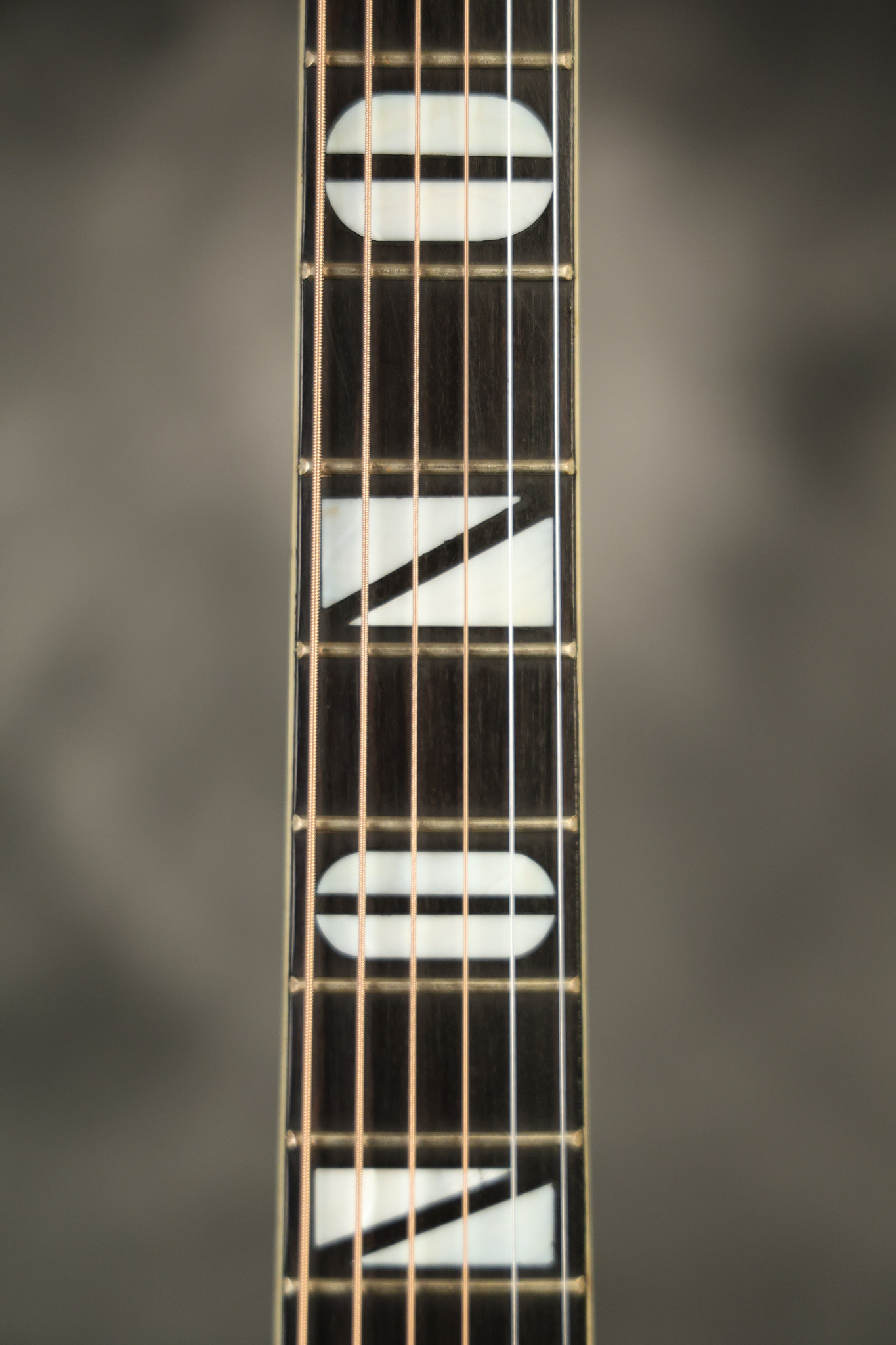 1950's Kay model K21 in its original Sunburst finish on a Spruce top with highly figured maple back + sides. It has a great playing neck with great frets and a big round neck profile. It's all original with the exception of the reproduction pickguard (one addition screw hole concealed by the pickugard). There were two other sets of tuners at one time and have left some extra screw holes which are conceals by the original Kluson Sealfast tuners that have been reinstalled. A nice later hardshell case is included. It's in very good condition with some nicks + dings, extremely minor finish checking and other cosmetic wear. On the back edge of the inside cutaway there is some glue residue seen along with edge of the binding where the a slightly shrunken area of the binding had been reglued. The guitar itself remains structurally sound and sounds great.