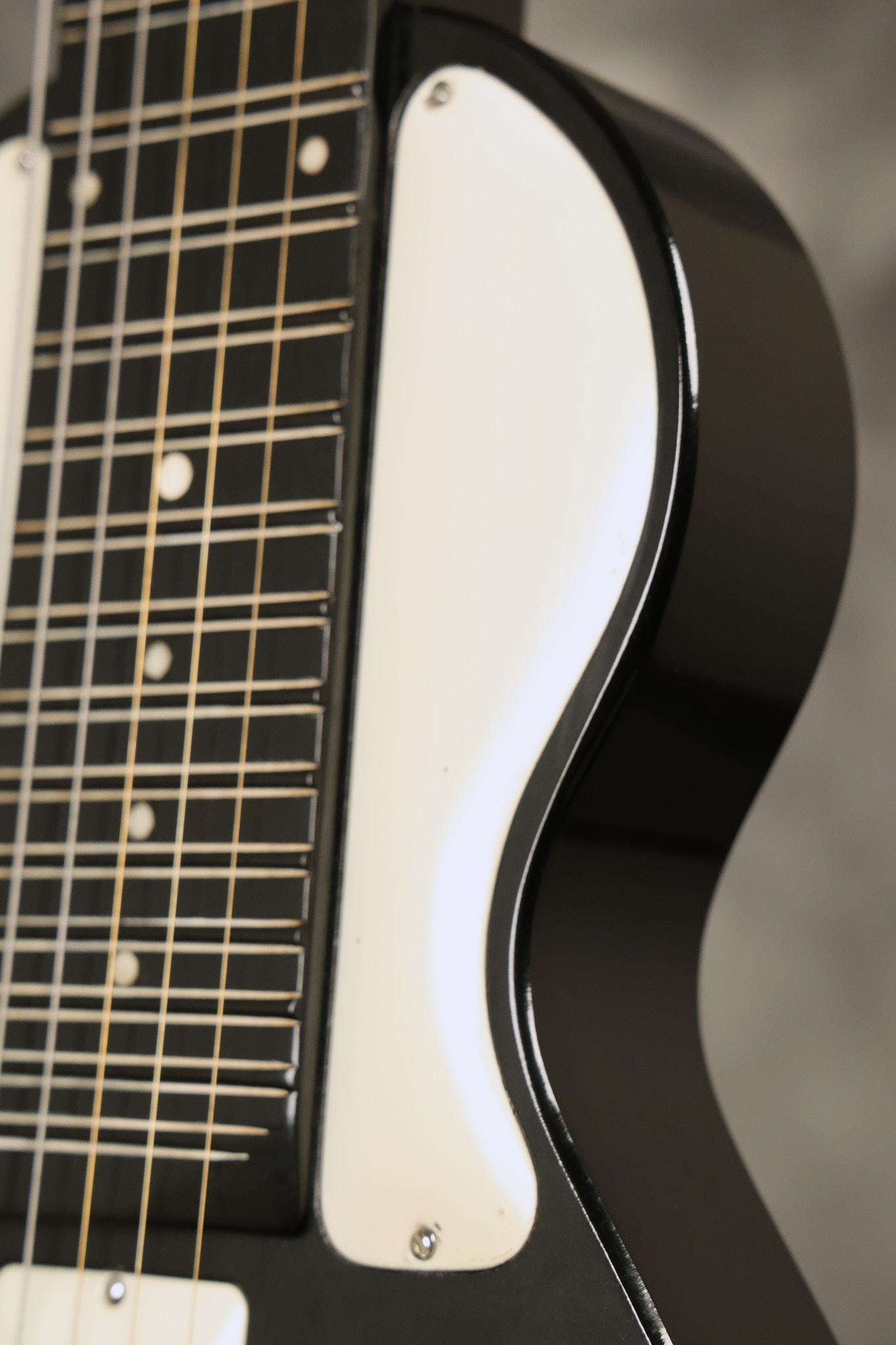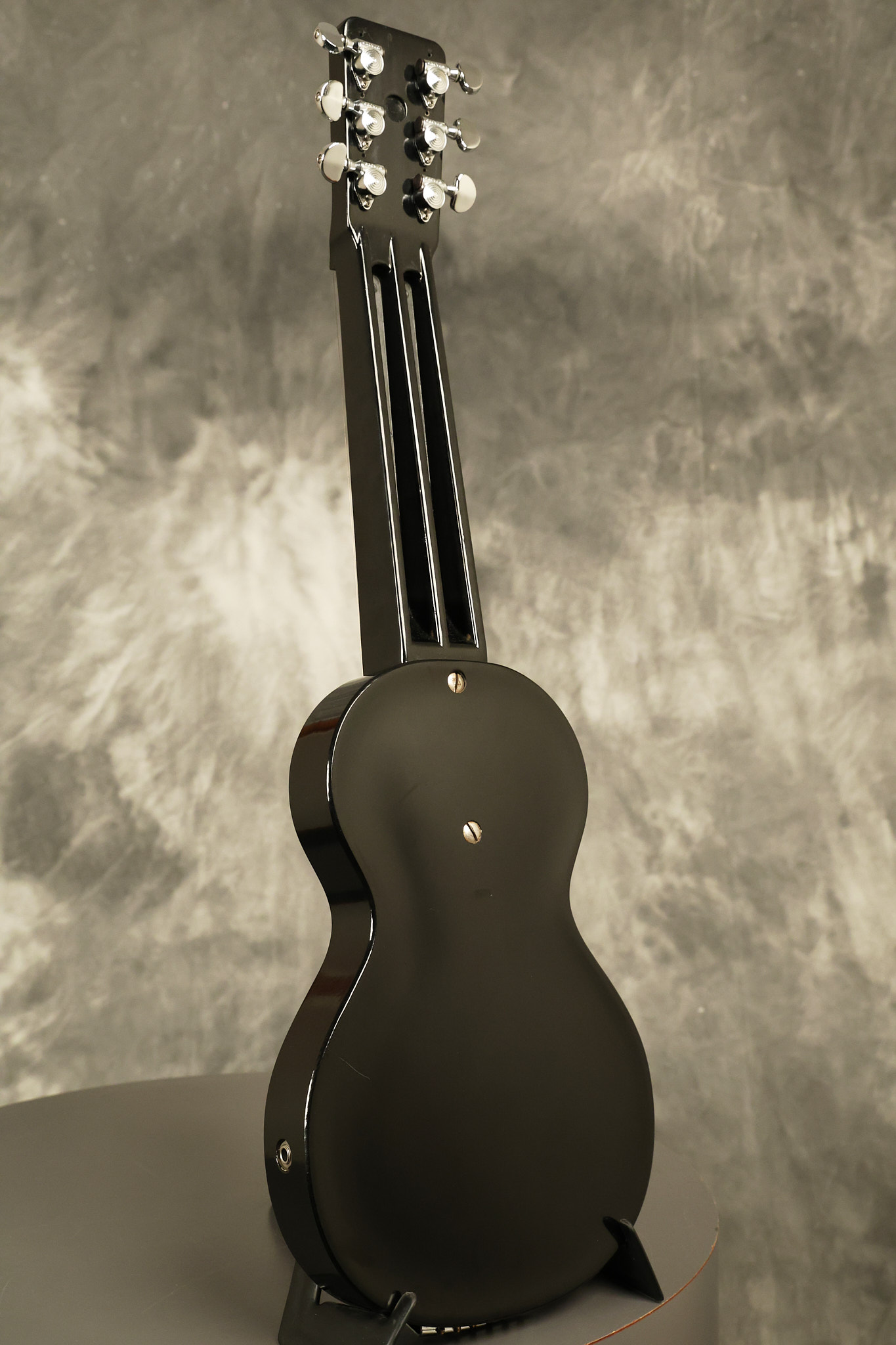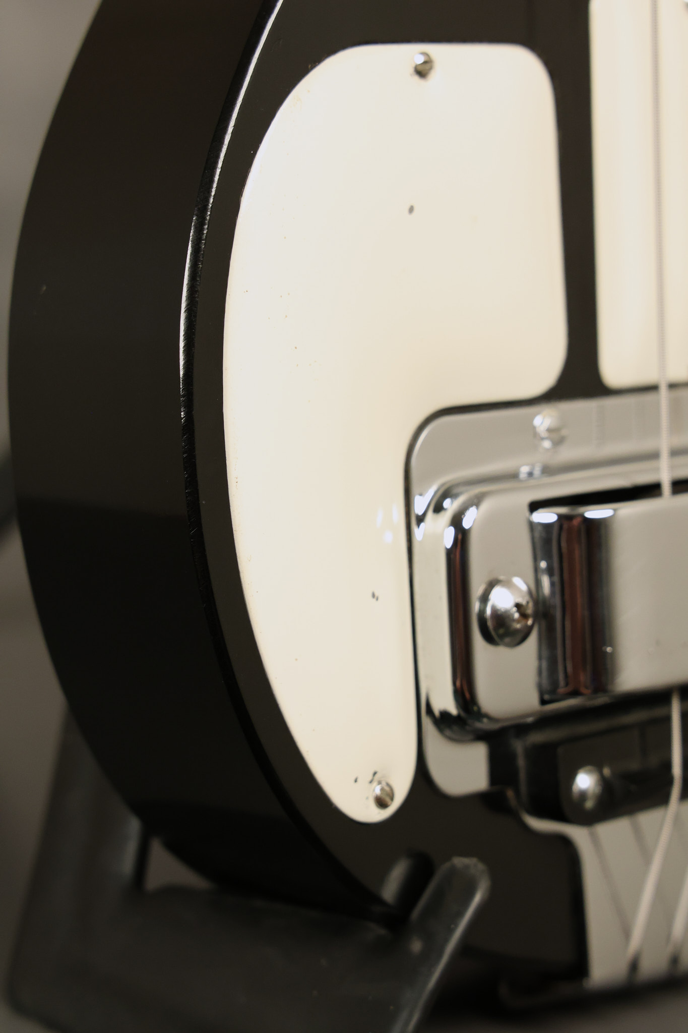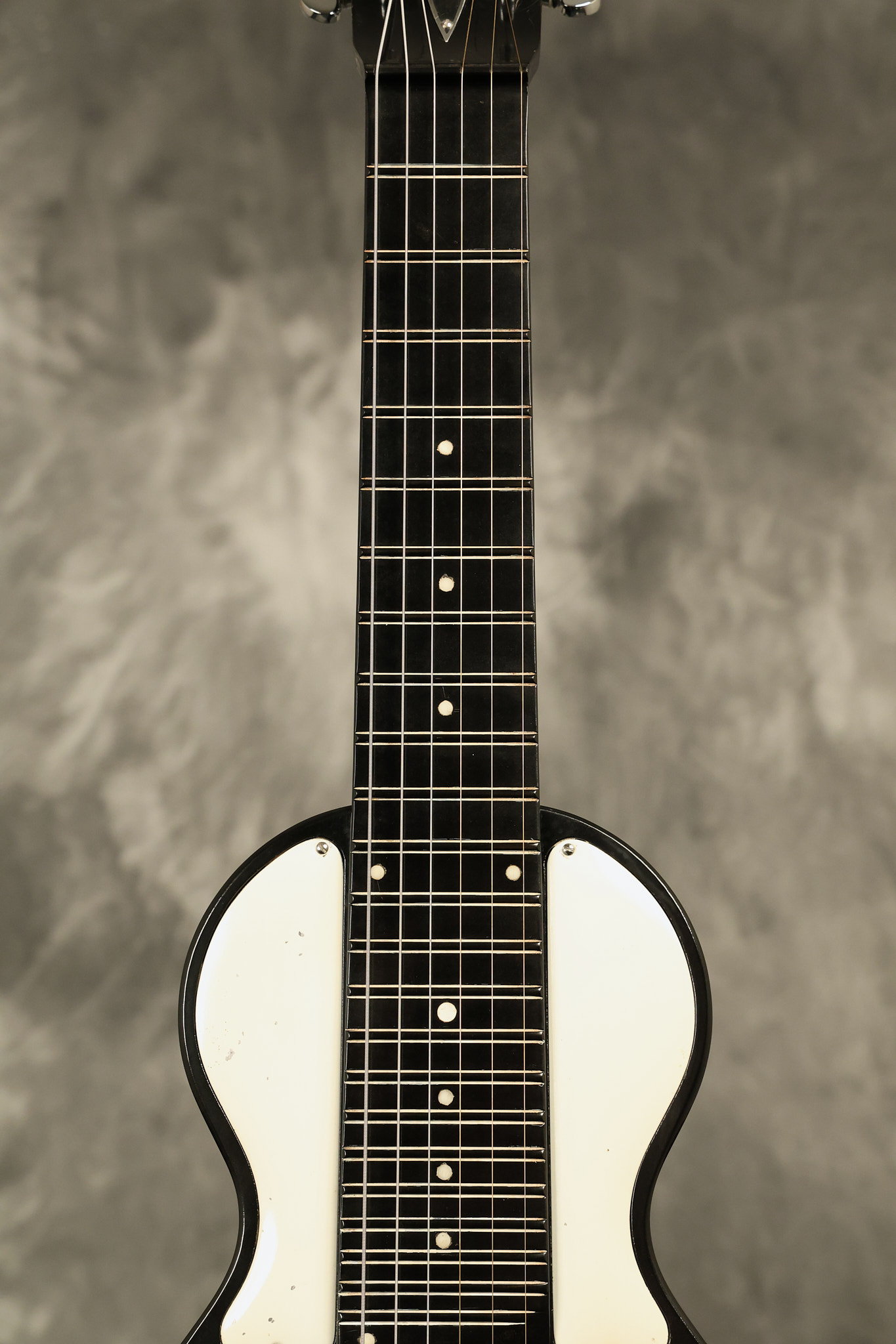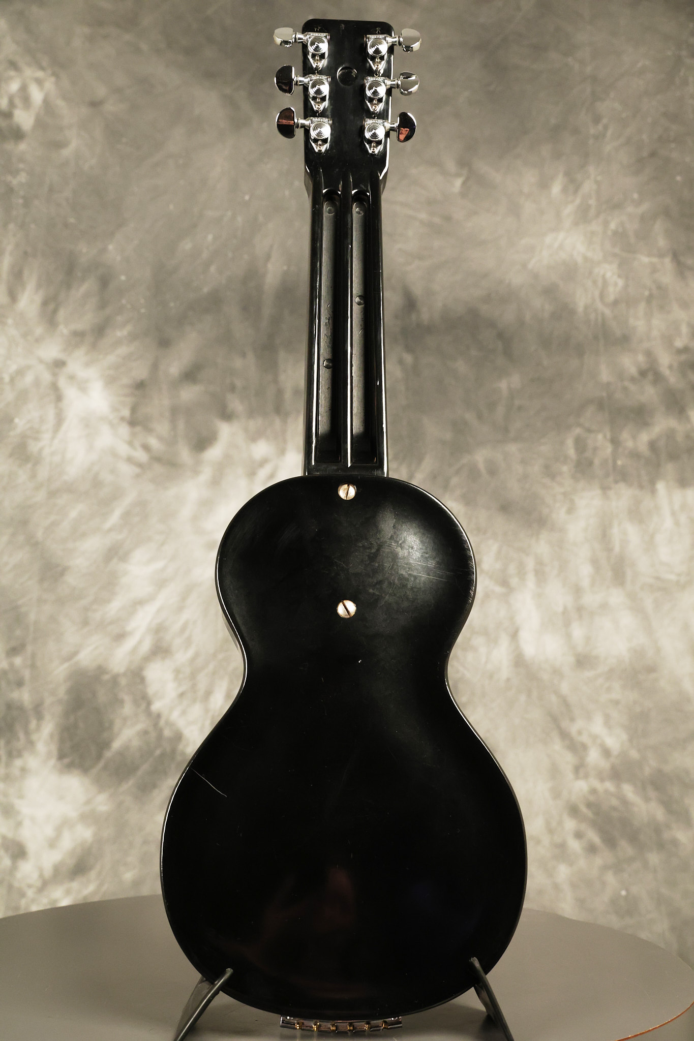 1950's Rickenbacker model B bakelite 6-string lap steel guitar with its original horseshoe pickup. The tuning keys and knobs have been changed. One pot is a new Noble 500K while the other is a CTS dating to 1959. Inside the control cavity, the portion of the bakelite mold with the screw hole on the lower side has a tiny chip out of the side which required a longer screw to properly hold the cover plate down. The original screw is also included. The original hardshell case is also included. This Rickenbacker steel looks good with some nicks + dings and other cosmetic wear as it remains structurally sound. All electronics work and sound great. It includes a letter dating to 1987 from Doc Kauffman to the original owner of this guitar.
