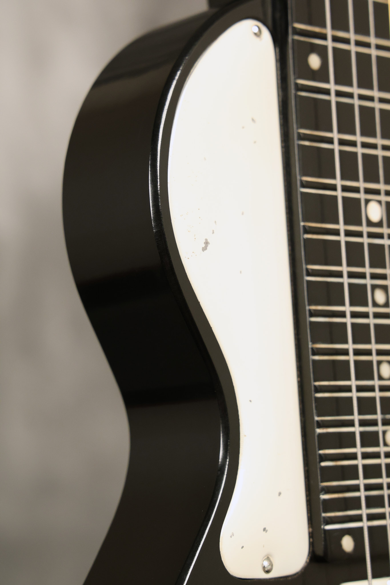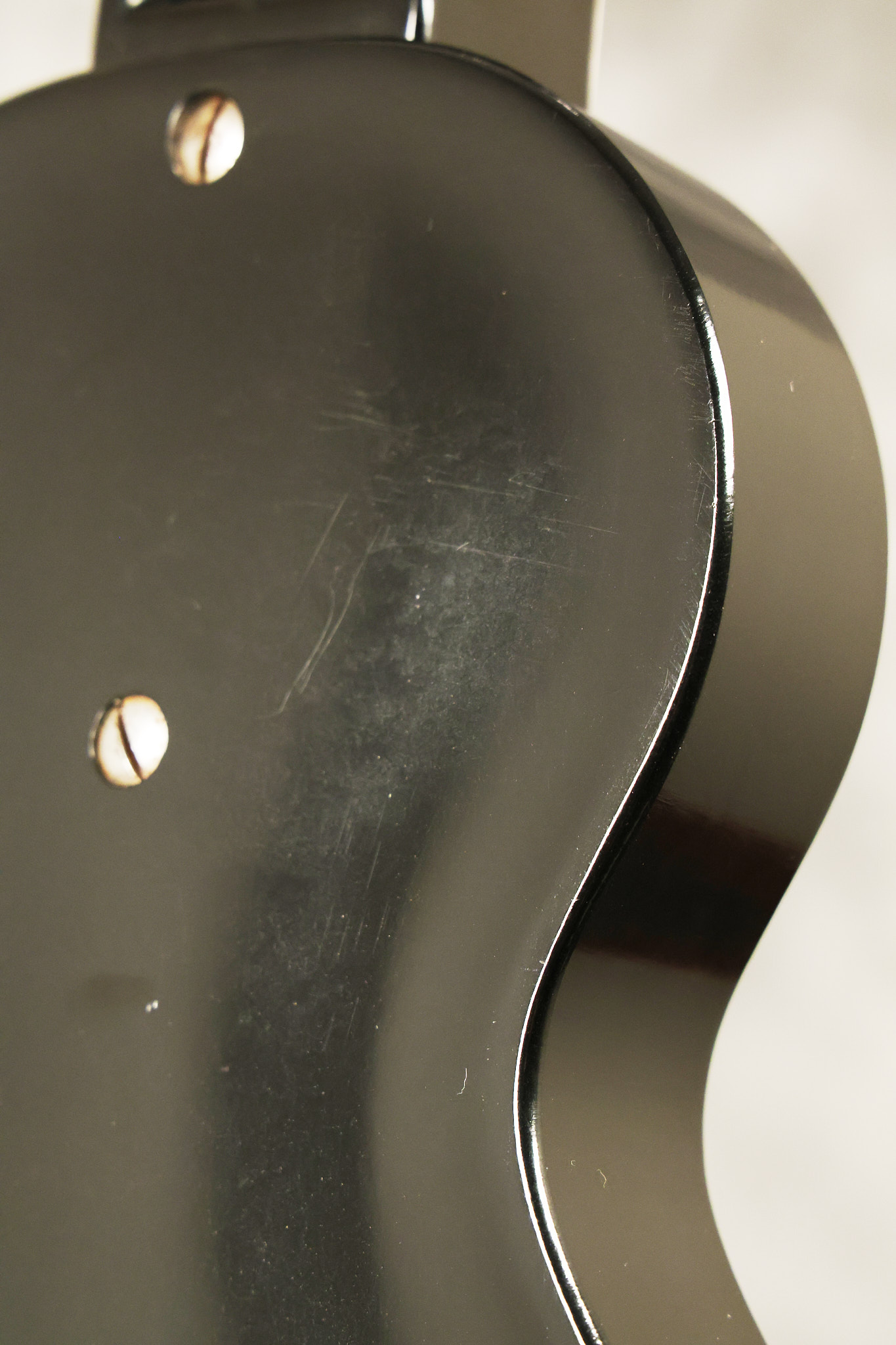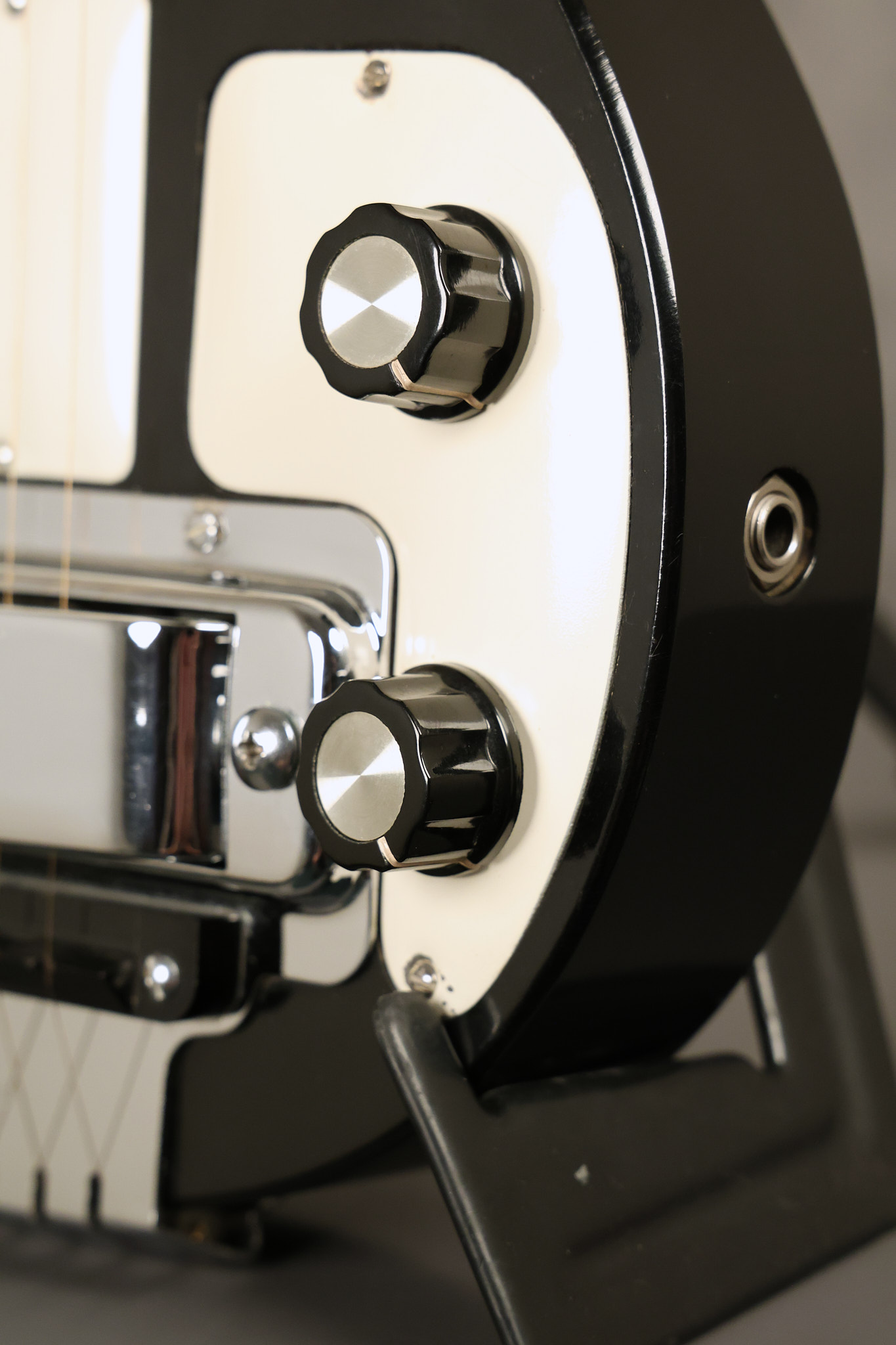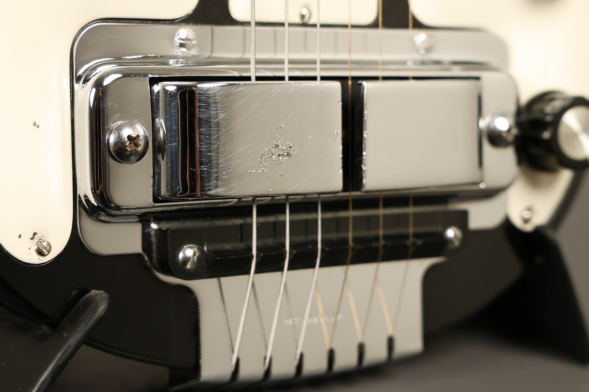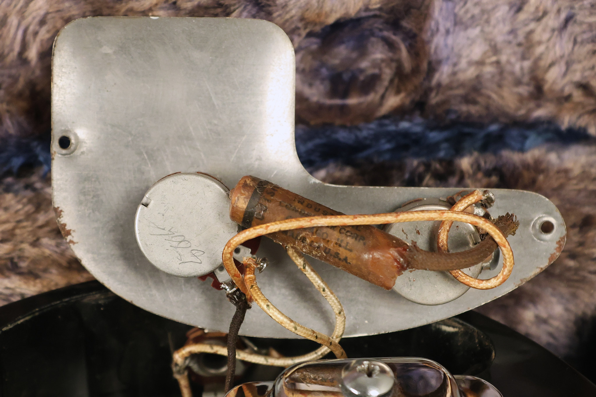 1950's Rickenbacker model B bakelite 6-string lap steel guitar with its original horseshoe pickup. The tuning keys and knobs have been changed. One pot is a new Noble 500K while the other is a CTS dating to 1959. Inside the control cavity, the portion of the bakelite mold with the screw hole on the lower side has a tiny chip out of the side which required a longer screw to properly hold the cover plate down. The original screw is also included. The original hardshell case is also included. This Rickenbacker steel looks good with some nicks + dings and other cosmetic wear as it remains structurally sound. All electronics work and sound great. It includes a letter dating to 1987 from Doc Kauffman to the original owner of this guitar.