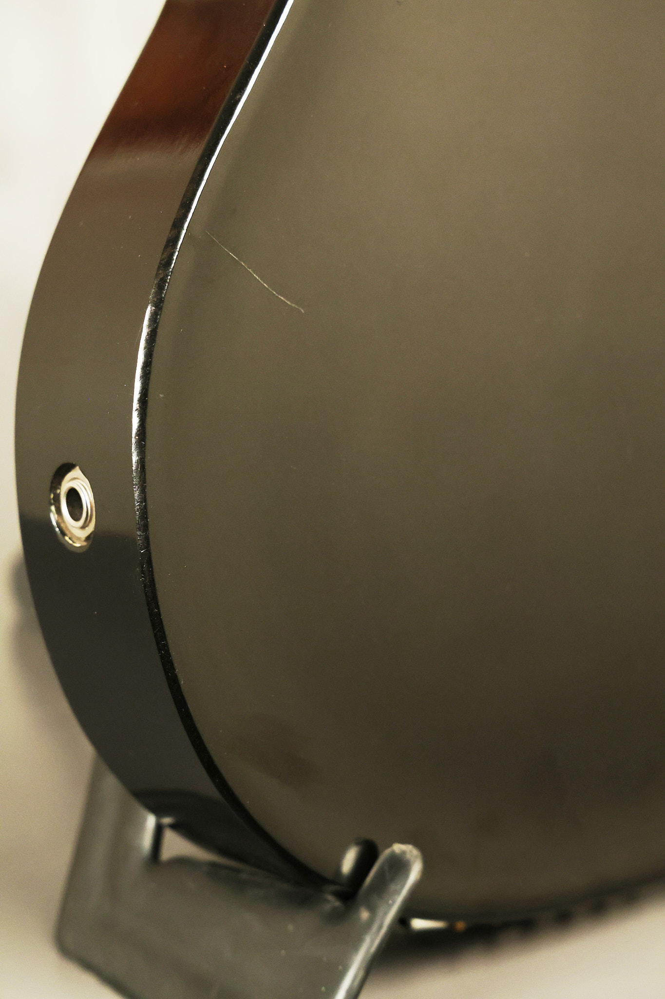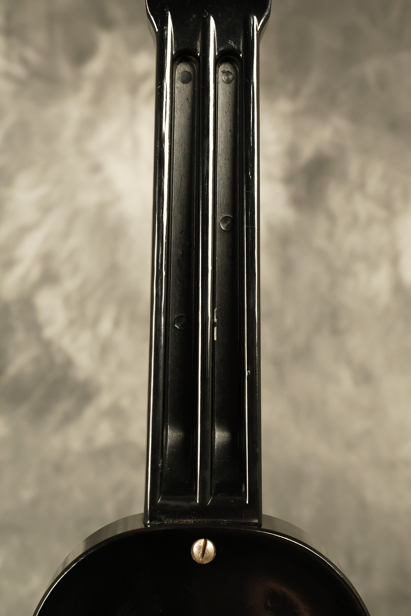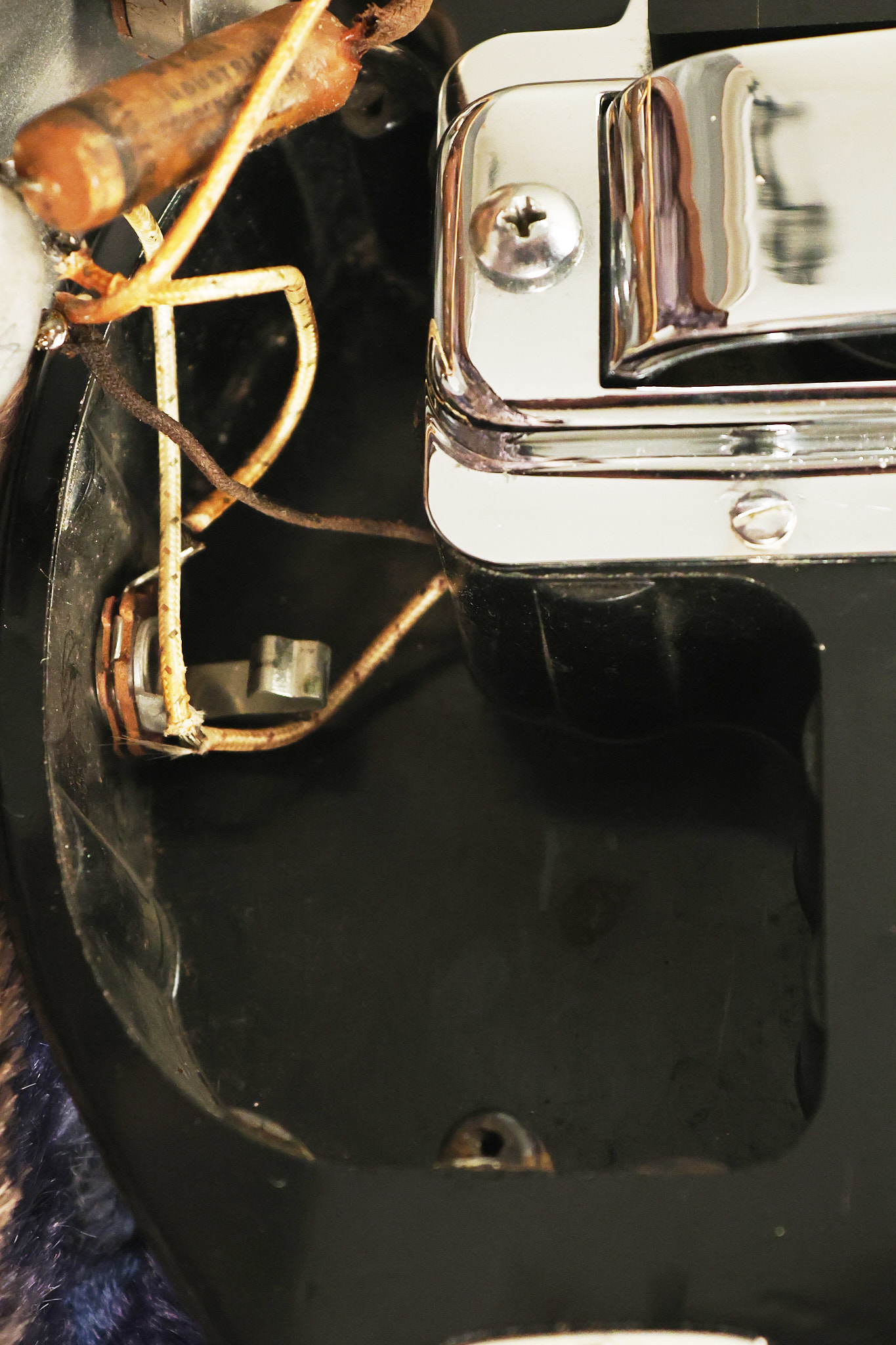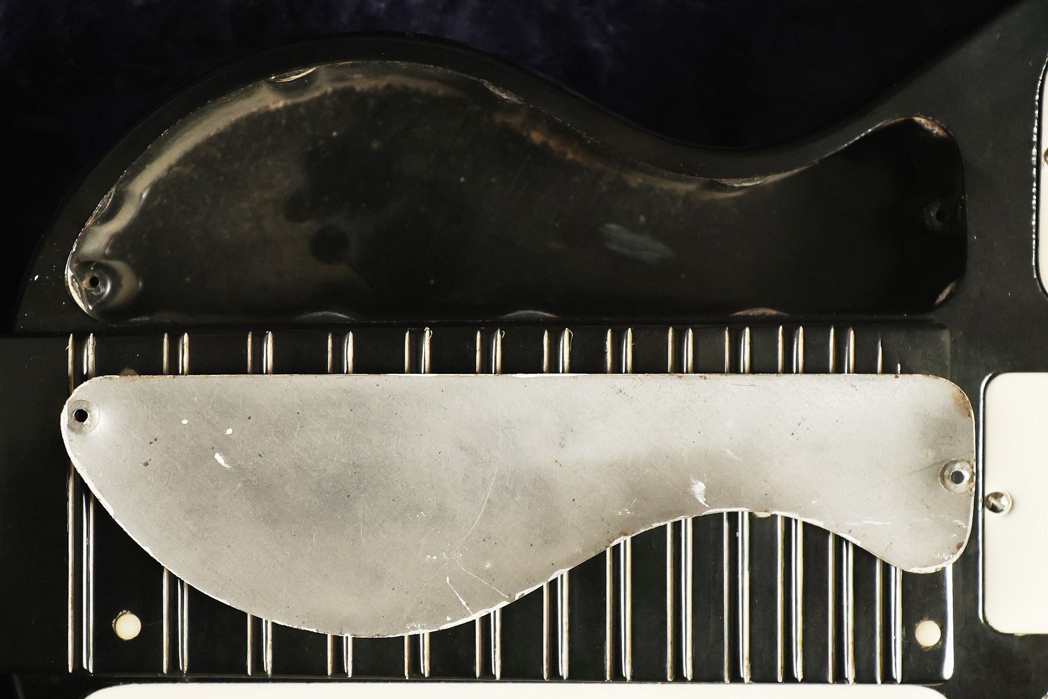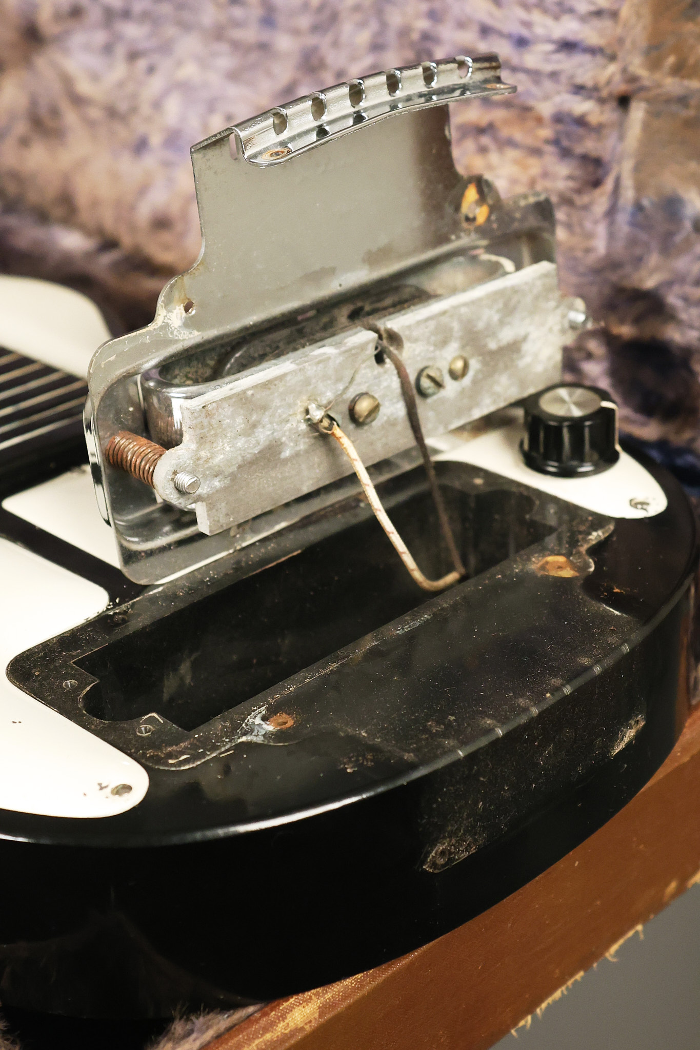 1950's Rickenbacker model B bakelite 6-string lap steel guitar with its original horseshoe pickup. The tuning keys and knobs have been changed. One pot is a new Noble 500K while the other is a CTS dating to 1959. Inside the control cavity, the portion of the bakelite mold with the screw hole on the lower side has a tiny chip out of the side which required a longer screw to properly hold the cover plate down. The original screw is also included. The original hardshell case is also included. This Rickenbacker steel looks good with some nicks + dings and other cosmetic wear as it remains structurally sound. All electronics work and sound great. It includes a letter dating to 1987 from Doc Kauffman to the original owner of this guitar.