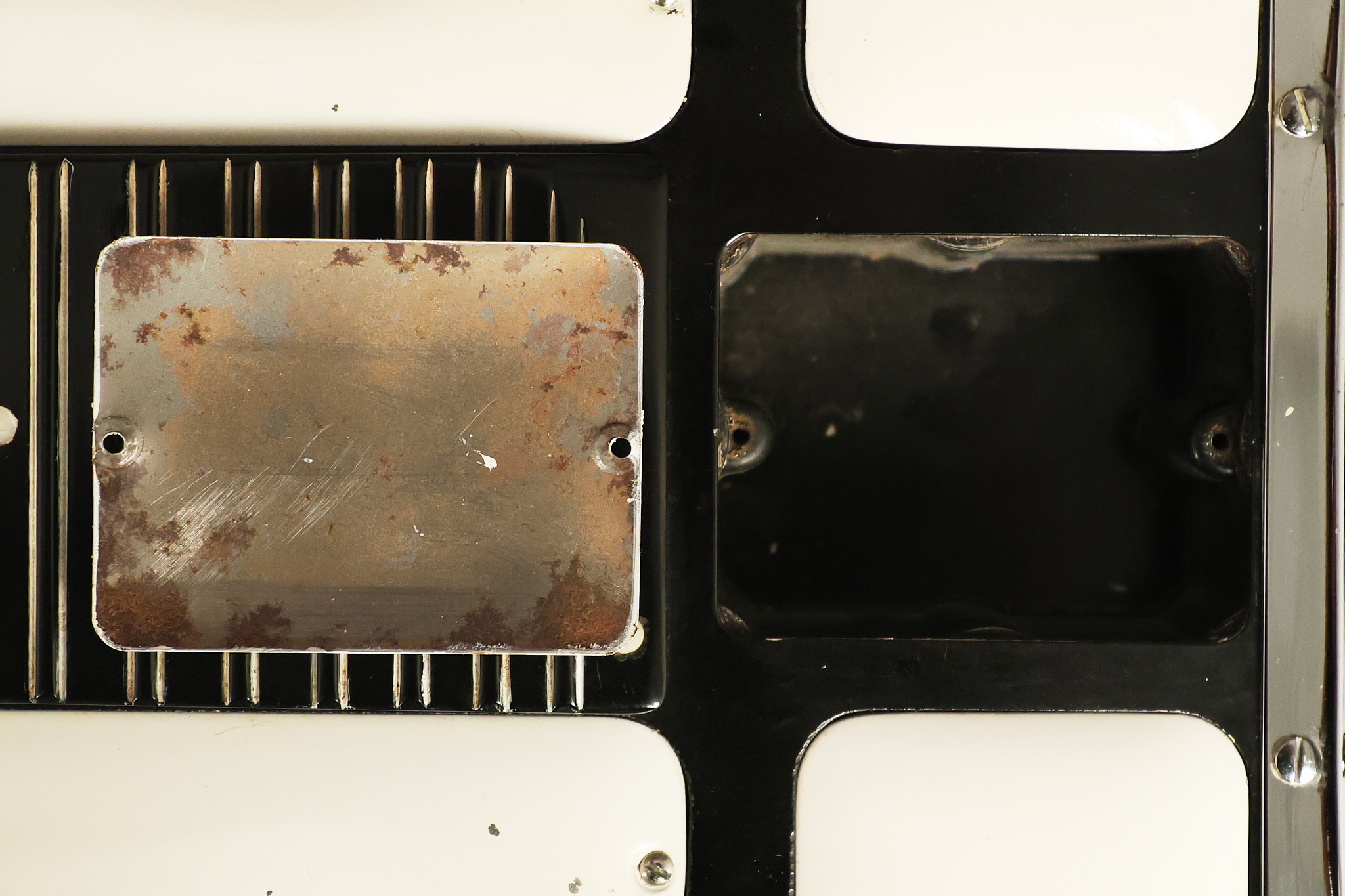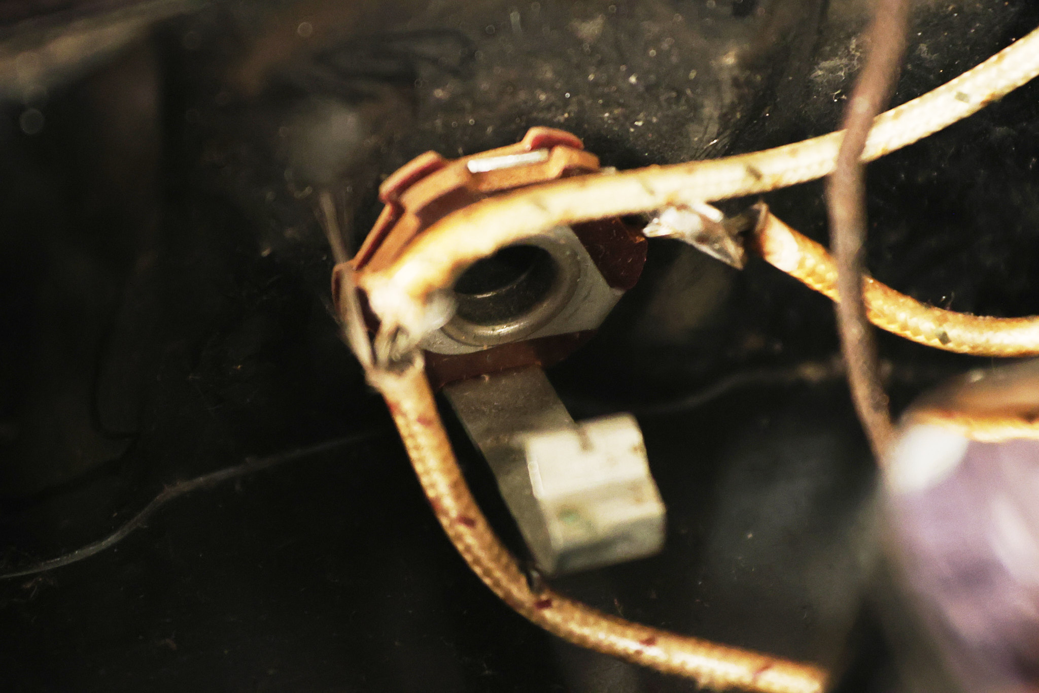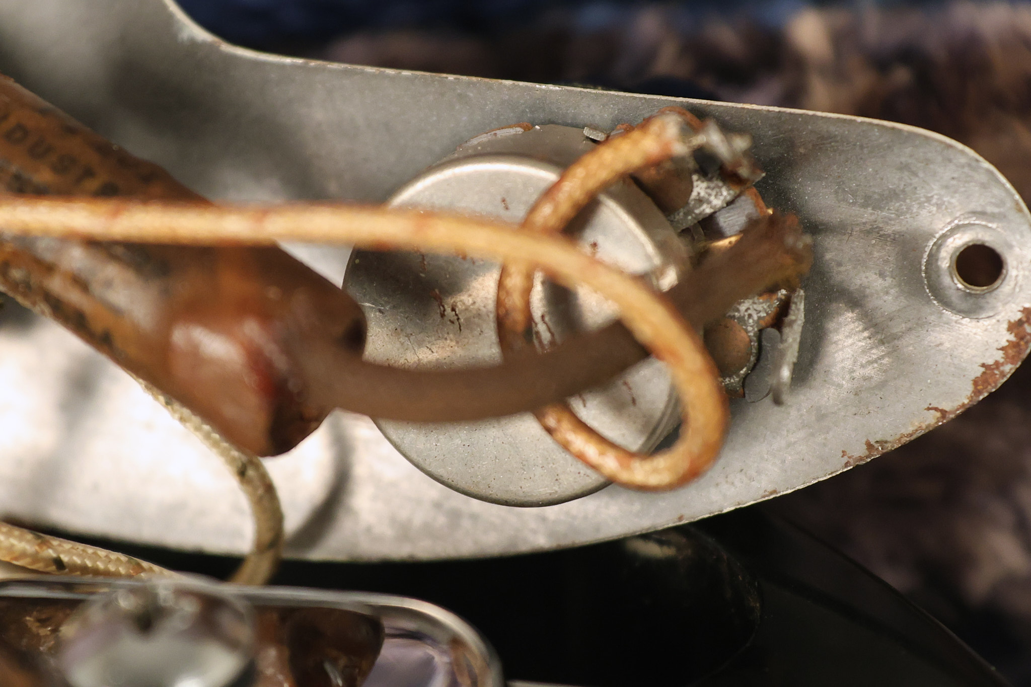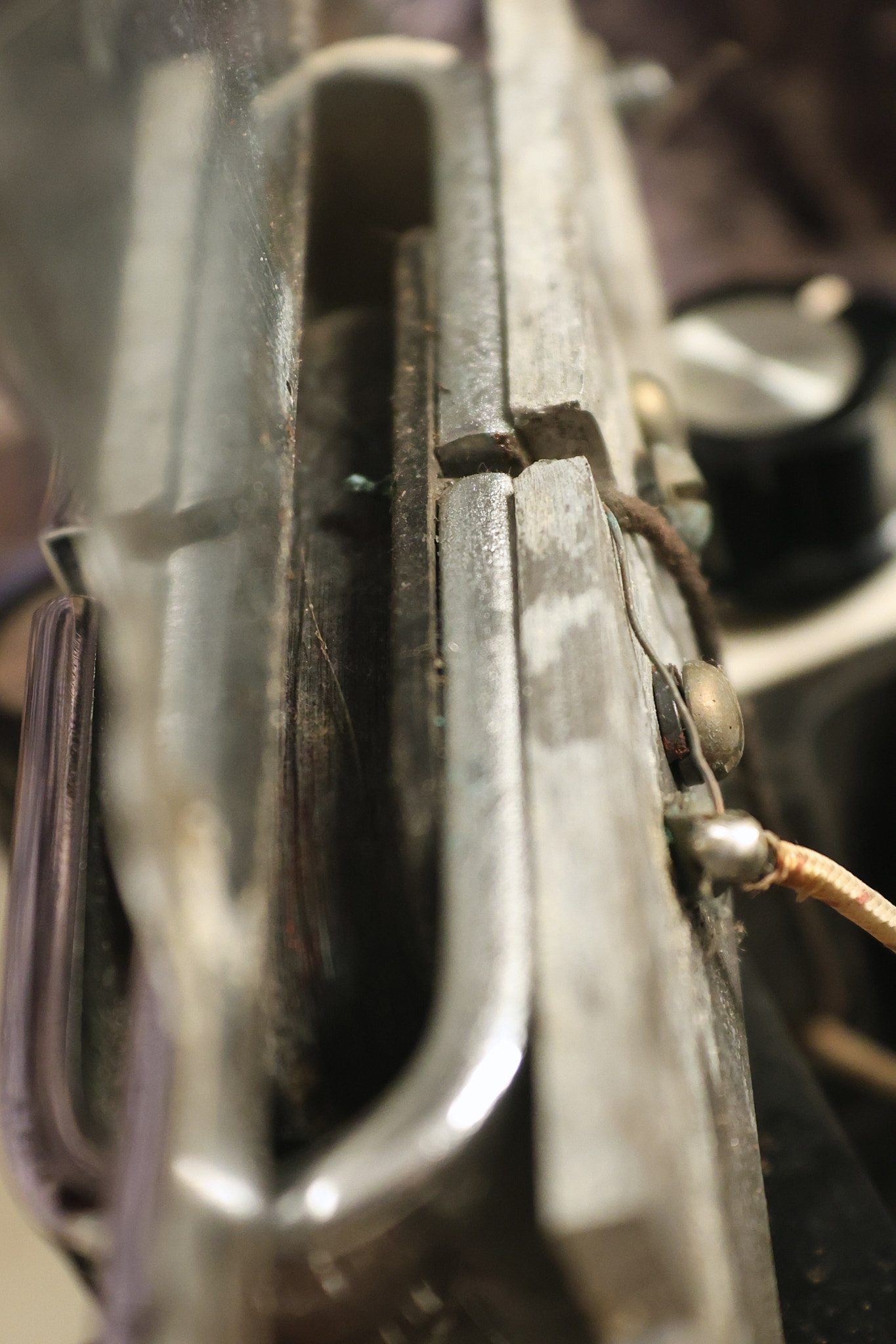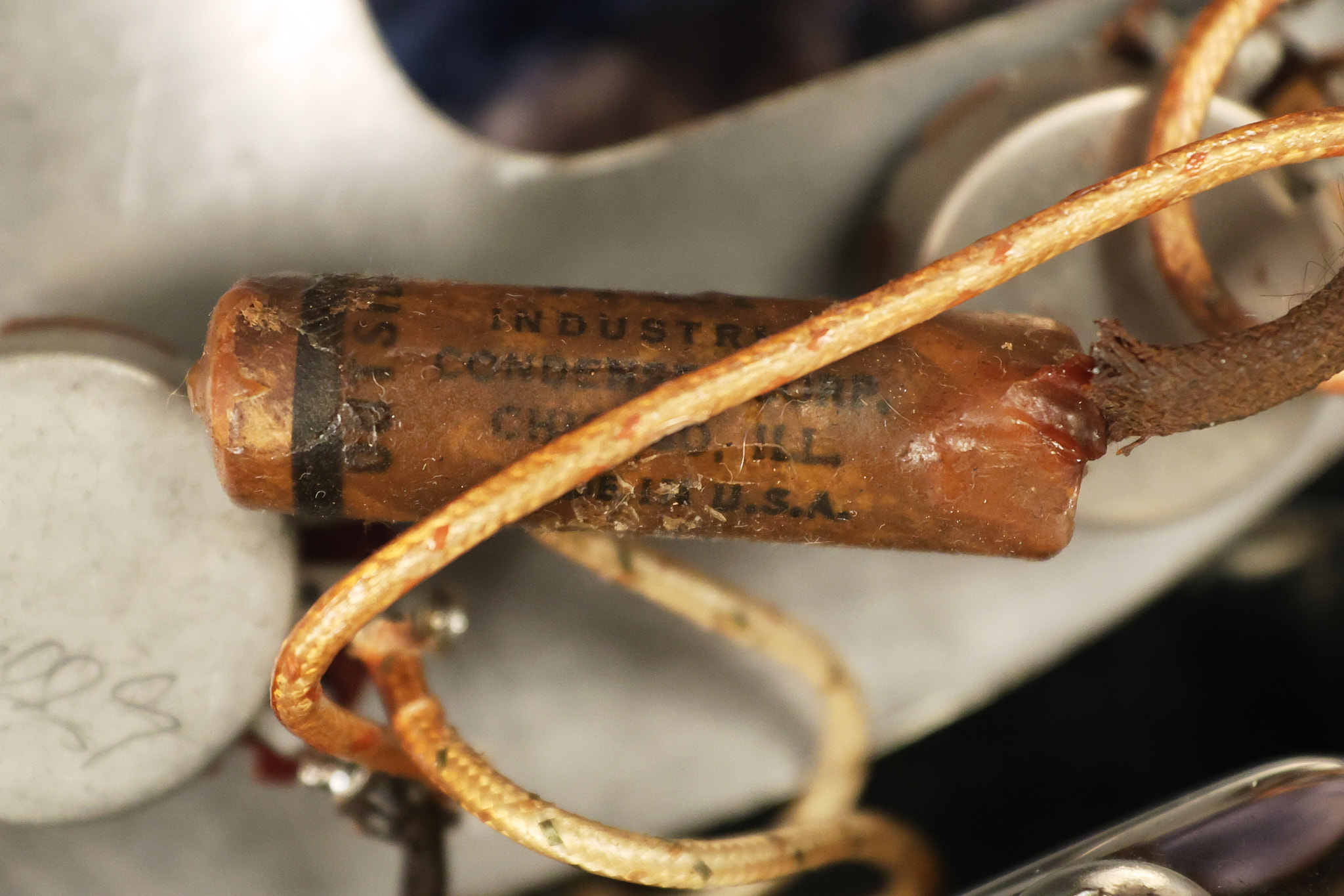 1950's Rickenbacker model B bakelite 6-string lap steel guitar with its original horseshoe pickup. The tuning keys and knobs have been changed. One pot is a new Noble 500K while the other is a CTS dating to 1959. Inside the control cavity, the portion of the bakelite mold with the screw hole on the lower side has a tiny chip out of the side which required a longer screw to properly hold the cover plate down. The original screw is also included. The original hardshell case is also included. This Rickenbacker steel looks good with some nicks + dings and other cosmetic wear as it remains structurally sound. All electronics work and sound great. It includes a letter dating to 1987 from Doc Kauffman to the original owner of this guitar.