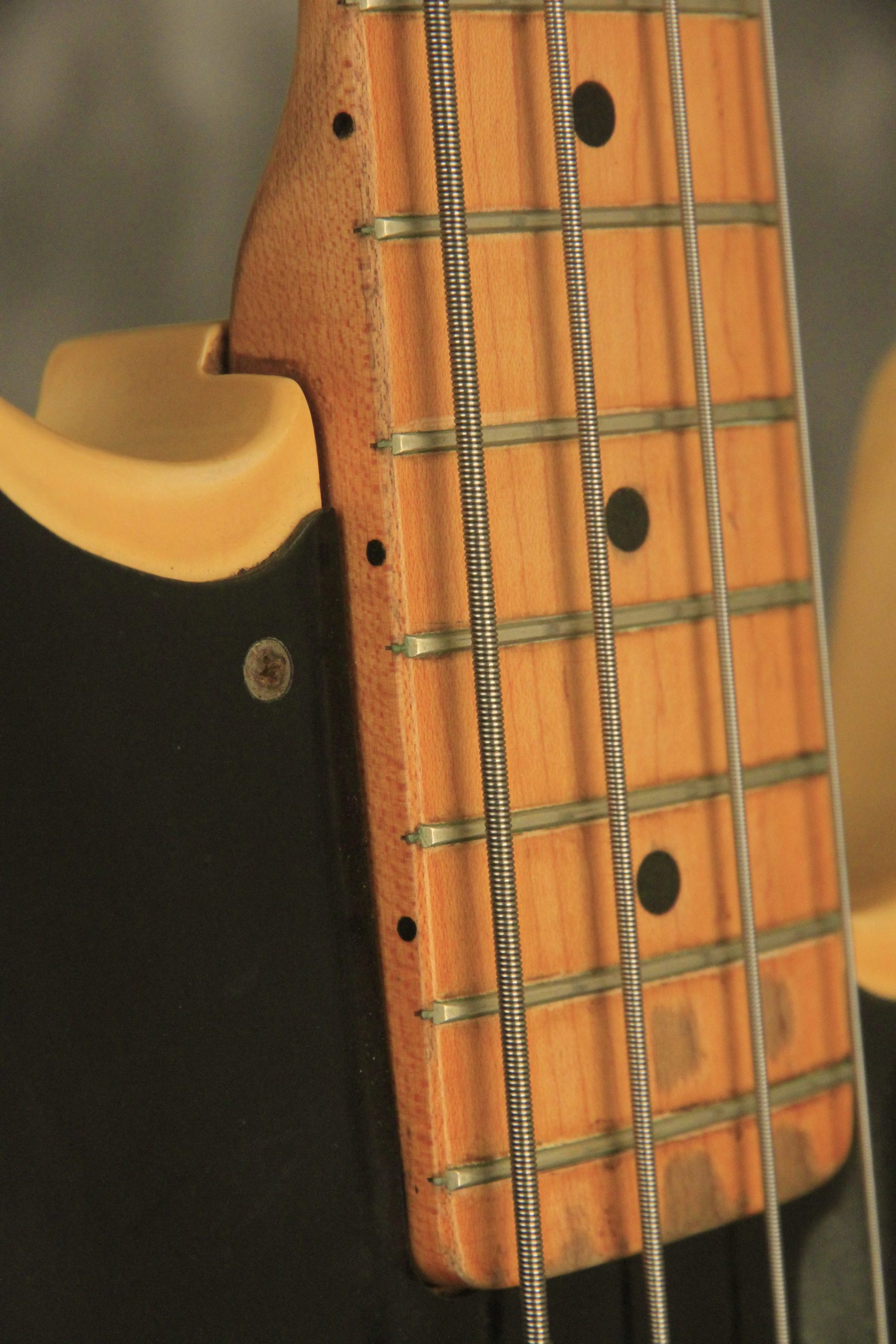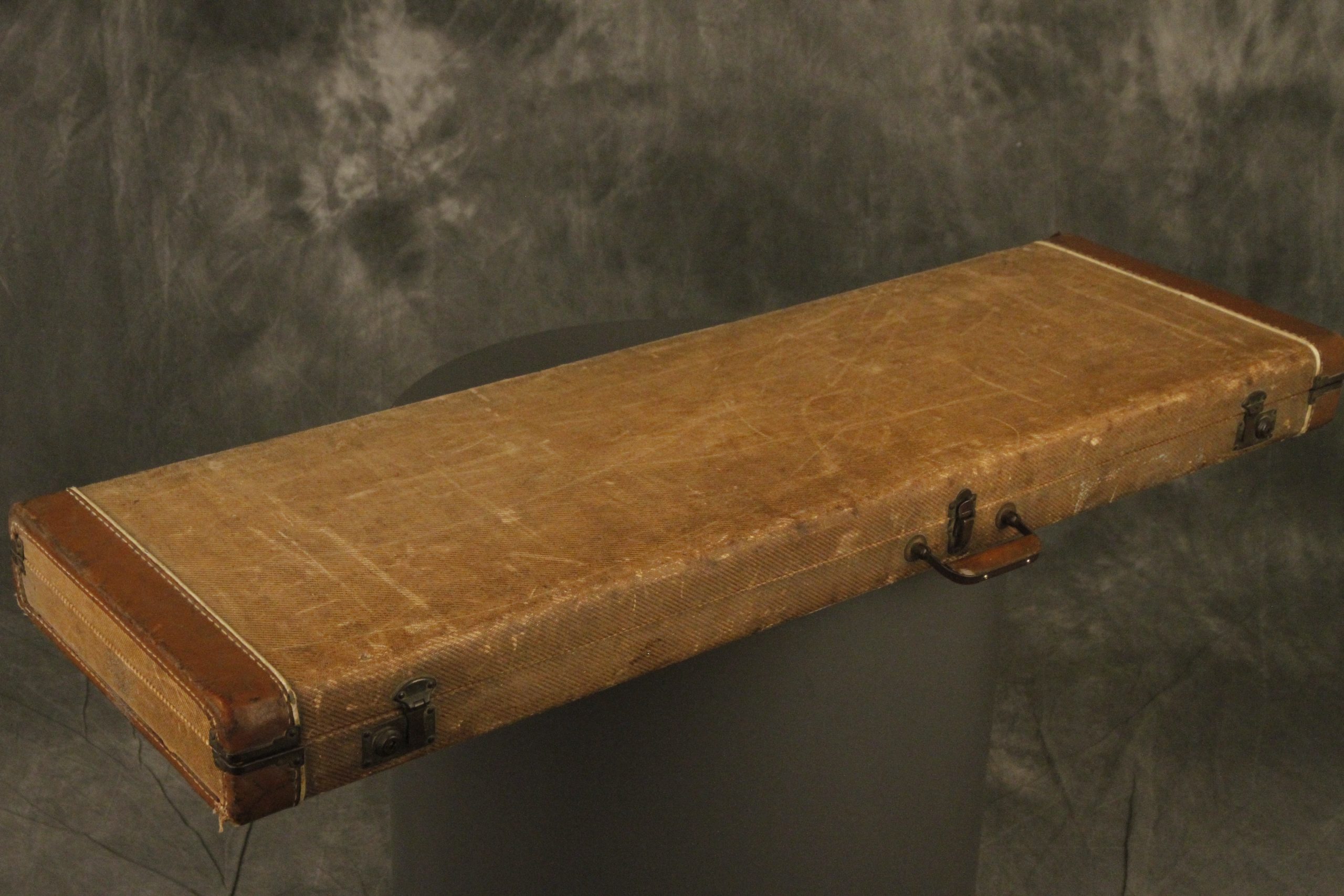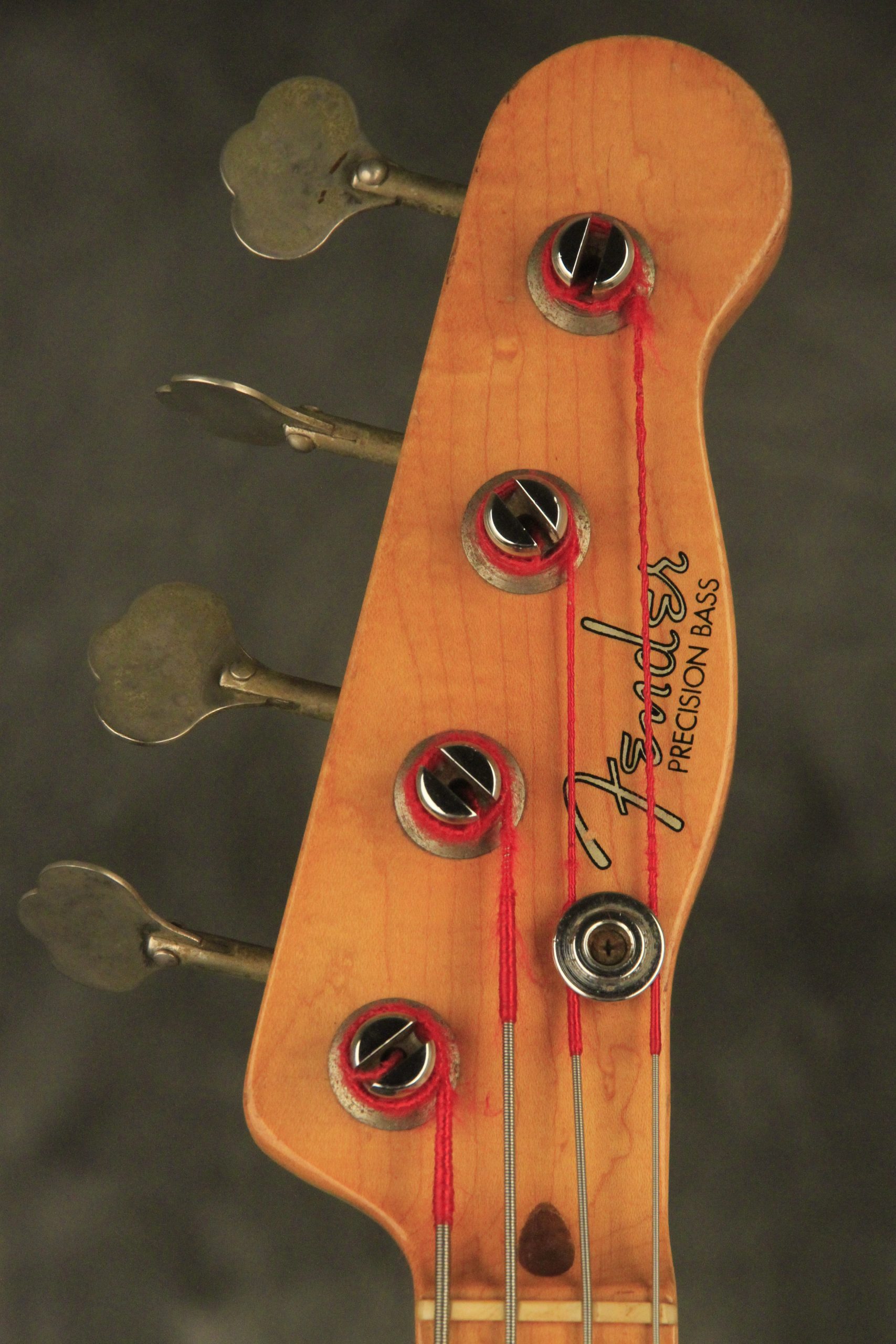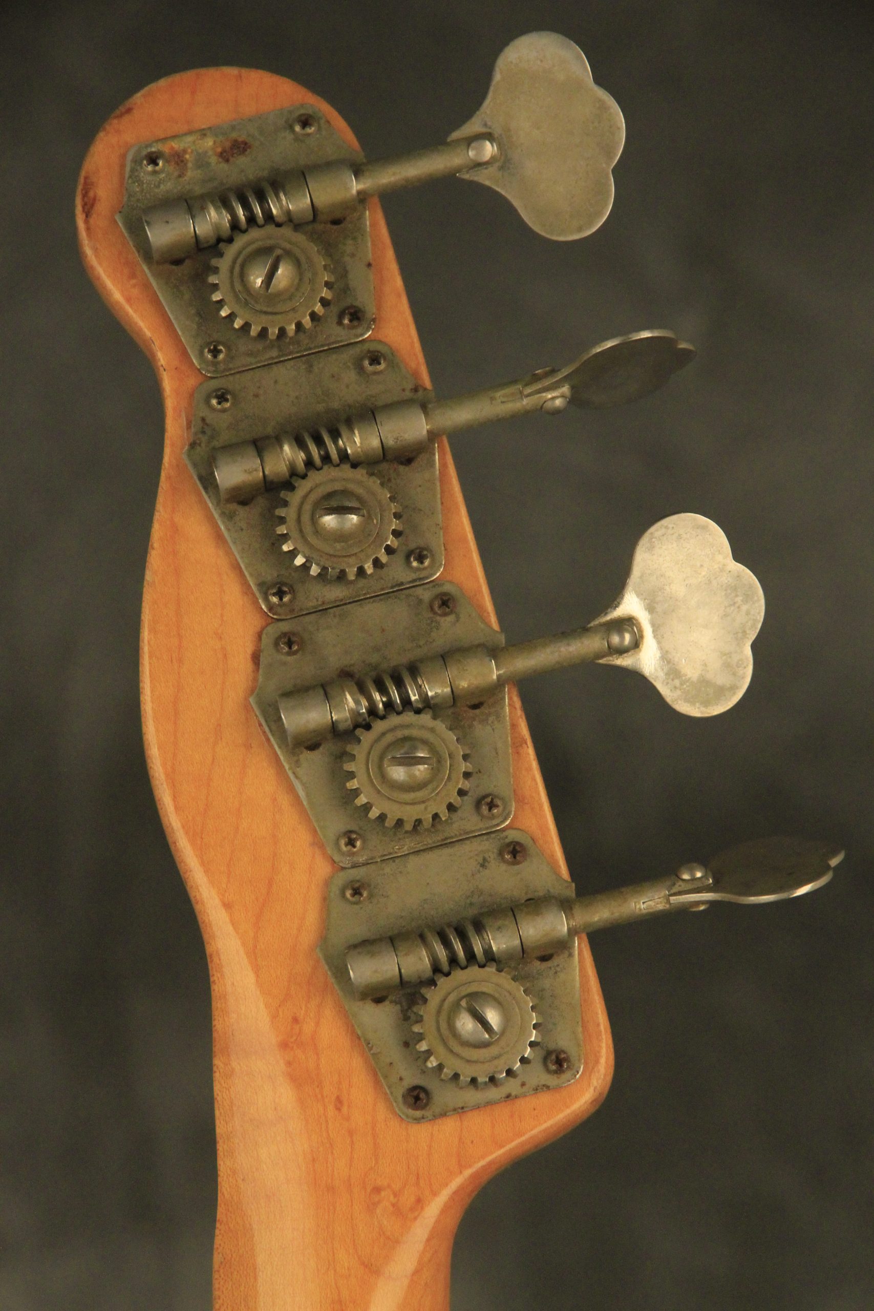 1955 Fender Precision Bass in its original Blonde finish. It has a great playing neck with great frets. It's all original with the exception of one changed pot, an added ground wire and a screw holding the jack cup in place. Aside from the cloth covering being removed from the pickup, it's 100% complete along with both original covers and the original tweed hardshell case. It looks great with nicks + dings, a naturally worn warped pickguard, light finish checking and a lot of play wear. Everything remains structurally sound with no cracks, breaks or repairs. All electronics work and sound great as it provides an authentic early P-Bass tone. The weight is 8 lbs. 3.6 oz.