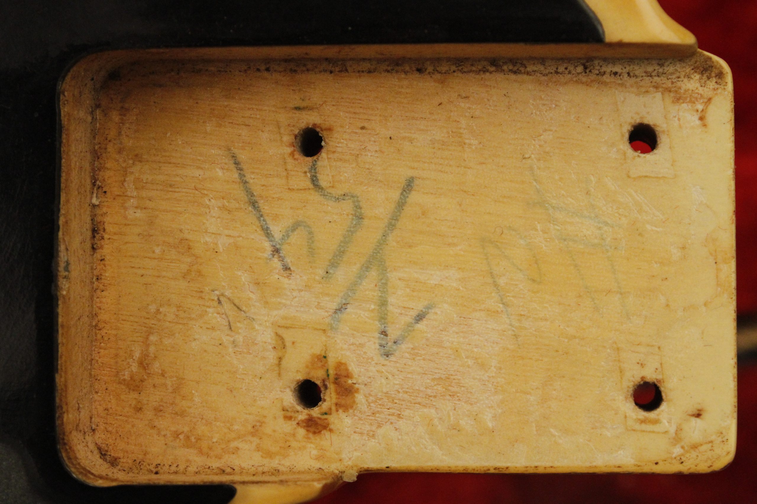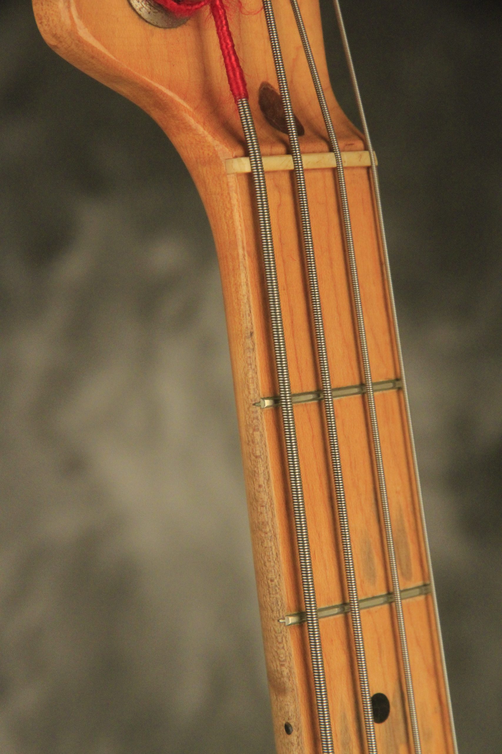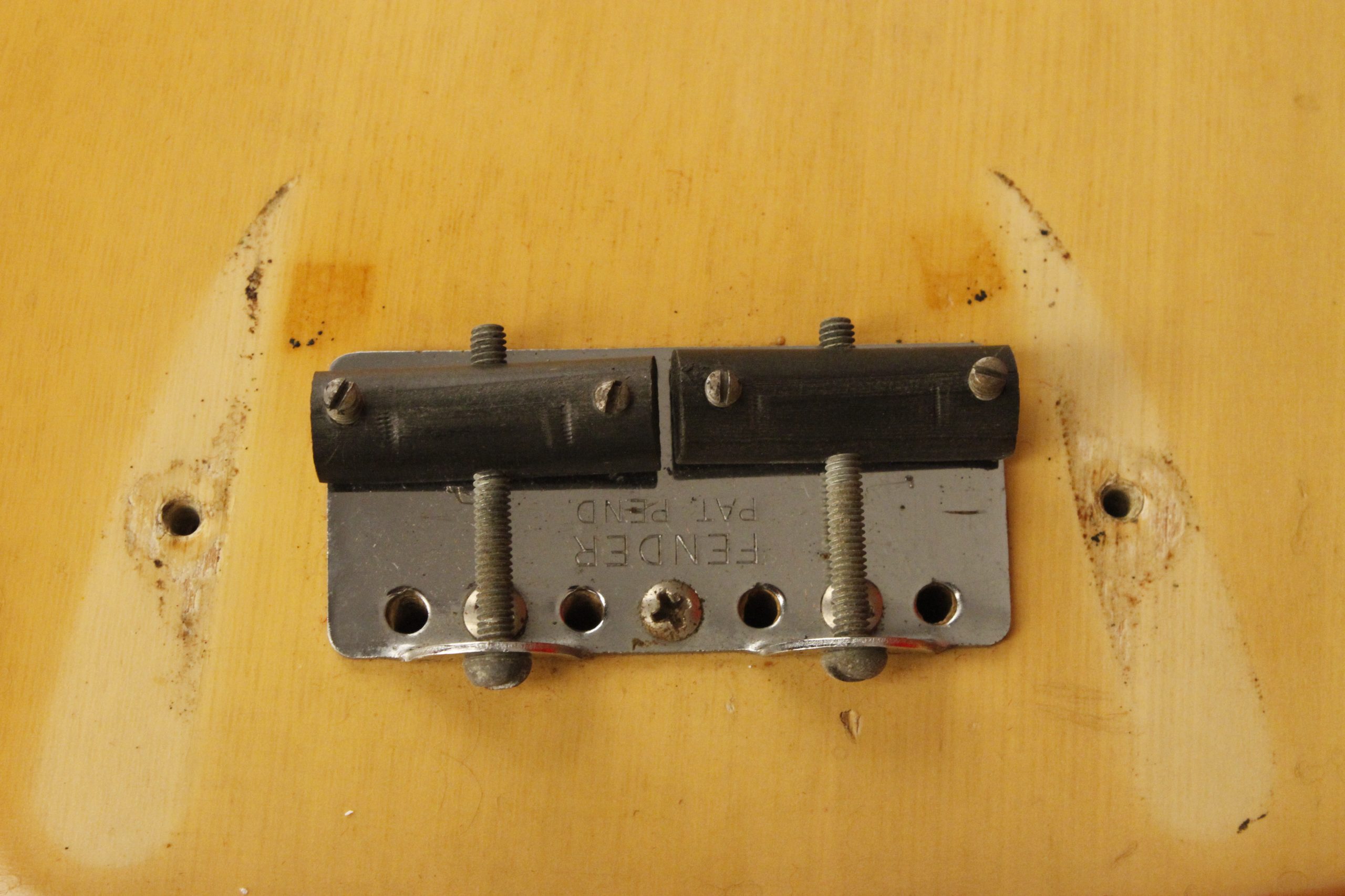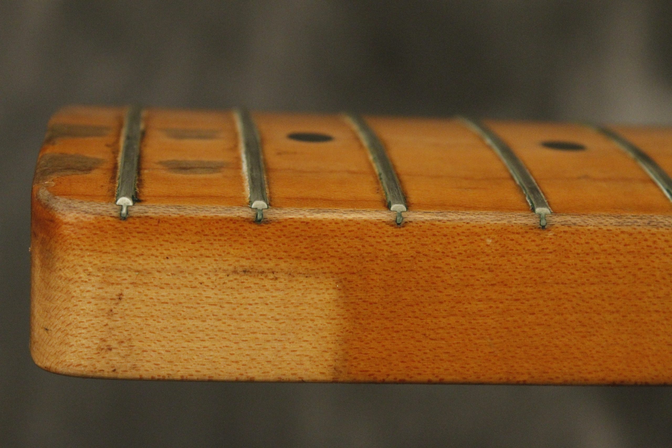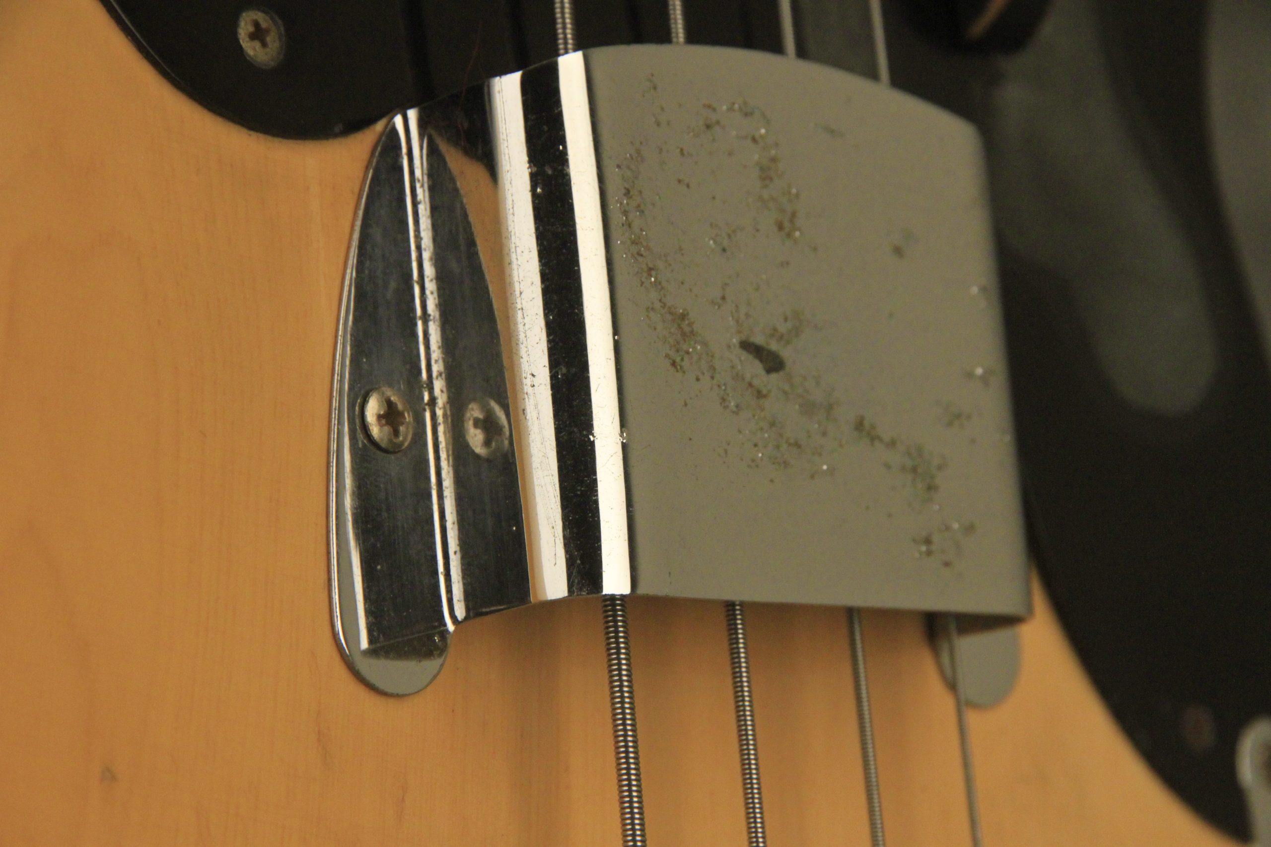 1955 Fender Precision Bass in its original Blonde finish. It has a great playing neck with great frets. It's all original with the exception of one changed pot, an added ground wire and a screw holding the jack cup in place. Aside from the cloth covering being removed from the pickup, it's 100% complete along with both original covers and the original tweed hardshell case. It looks great with nicks + dings, a naturally worn warped pickguard, light finish checking and a lot of play wear. Everything remains structurally sound with no cracks, breaks or repairs. All electronics work and sound great as it provides an authentic early P-Bass tone. The weight is 8 lbs. 3.6 oz.