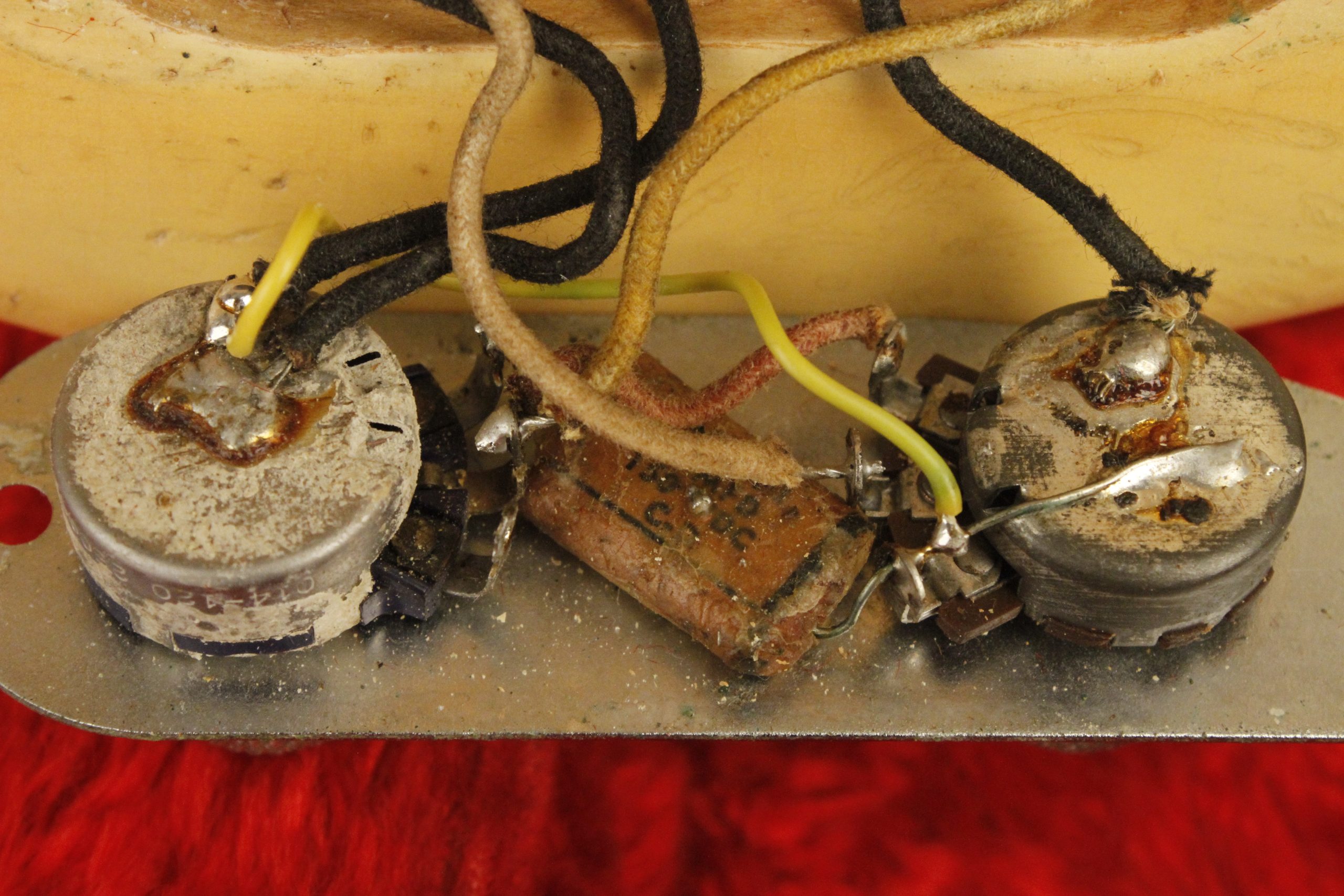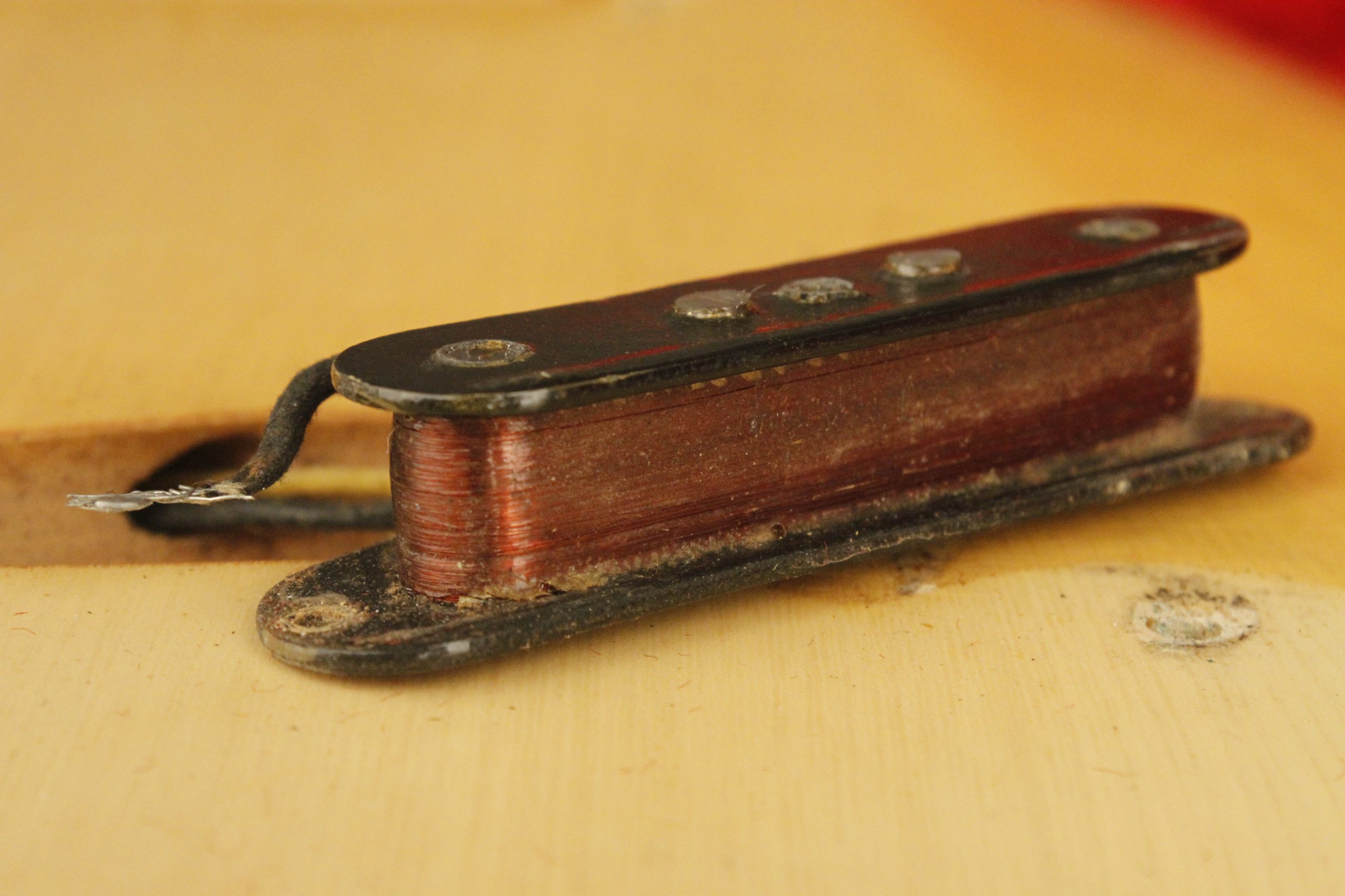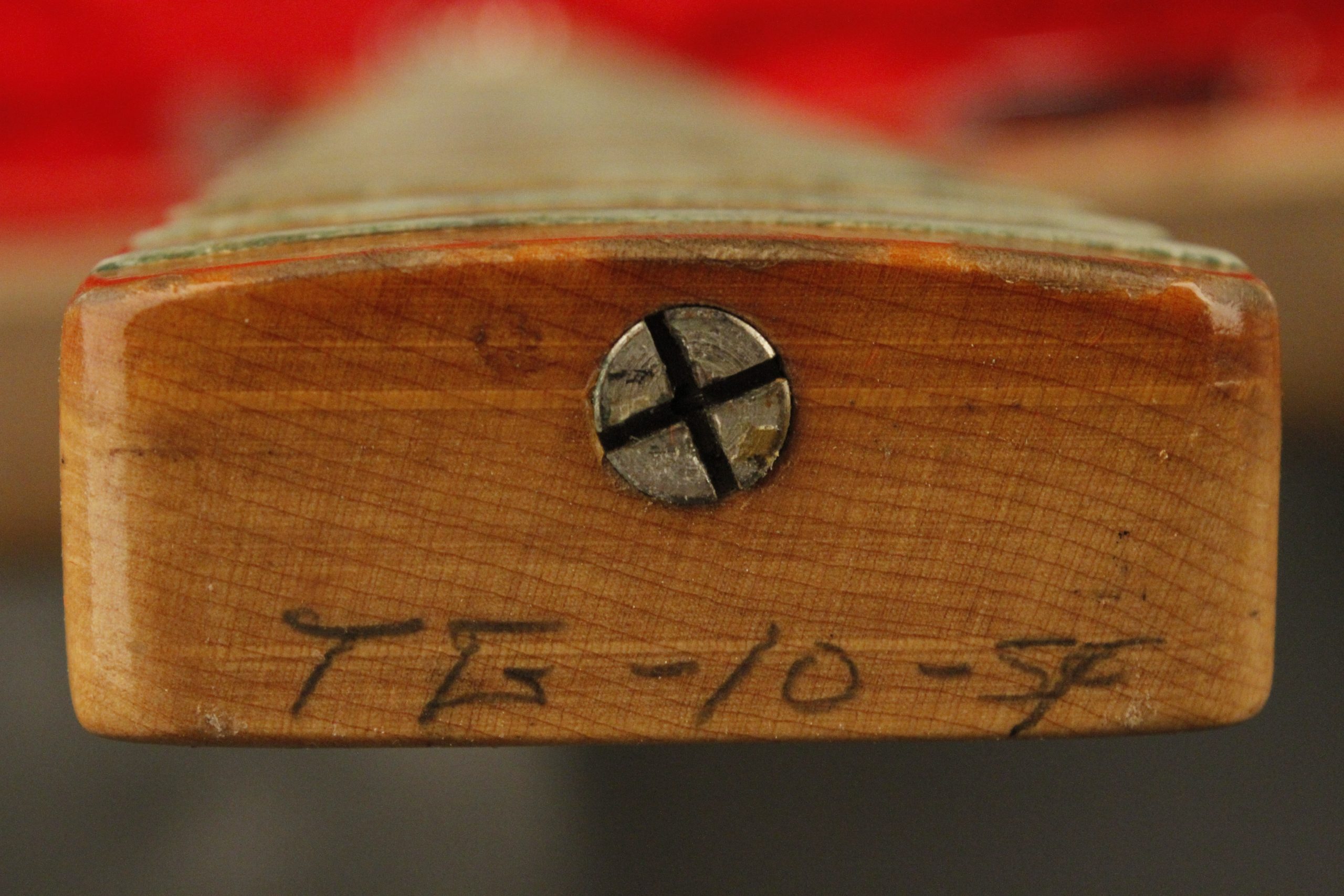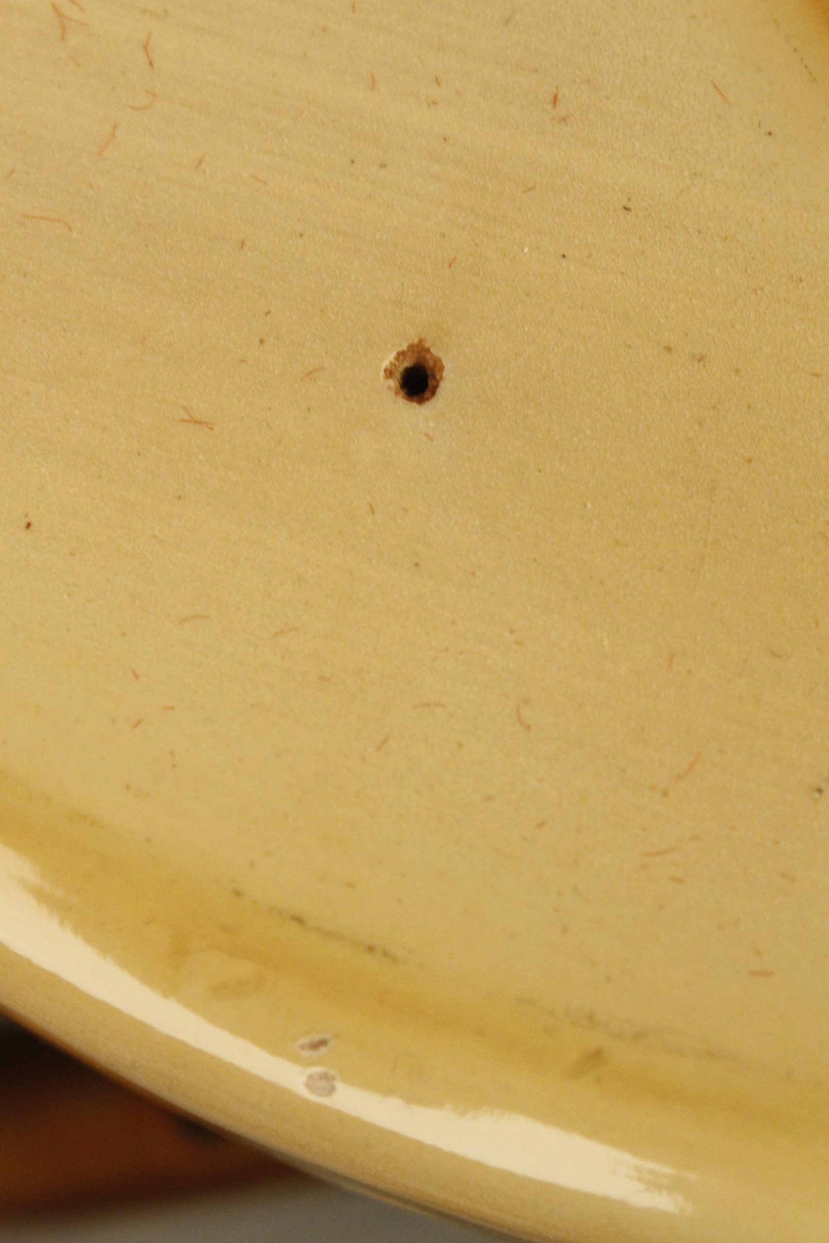 1955 Fender Precision Bass in its original Blonde finish. It has a great playing neck with great frets. It's all original with the exception of one changed pot, an added ground wire and a screw holding the jack cup in place. Aside from the cloth covering being removed from the pickup, it's 100% complete along with both original covers and the original tweed hardshell case. It looks great with nicks + dings, a naturally worn warped pickguard, light finish checking and a lot of play wear. Everything remains structurally sound with no cracks, breaks or repairs. All electronics work and sound great as it provides an authentic early P-Bass tone. The weight is 8 lbs. 3.6 oz.