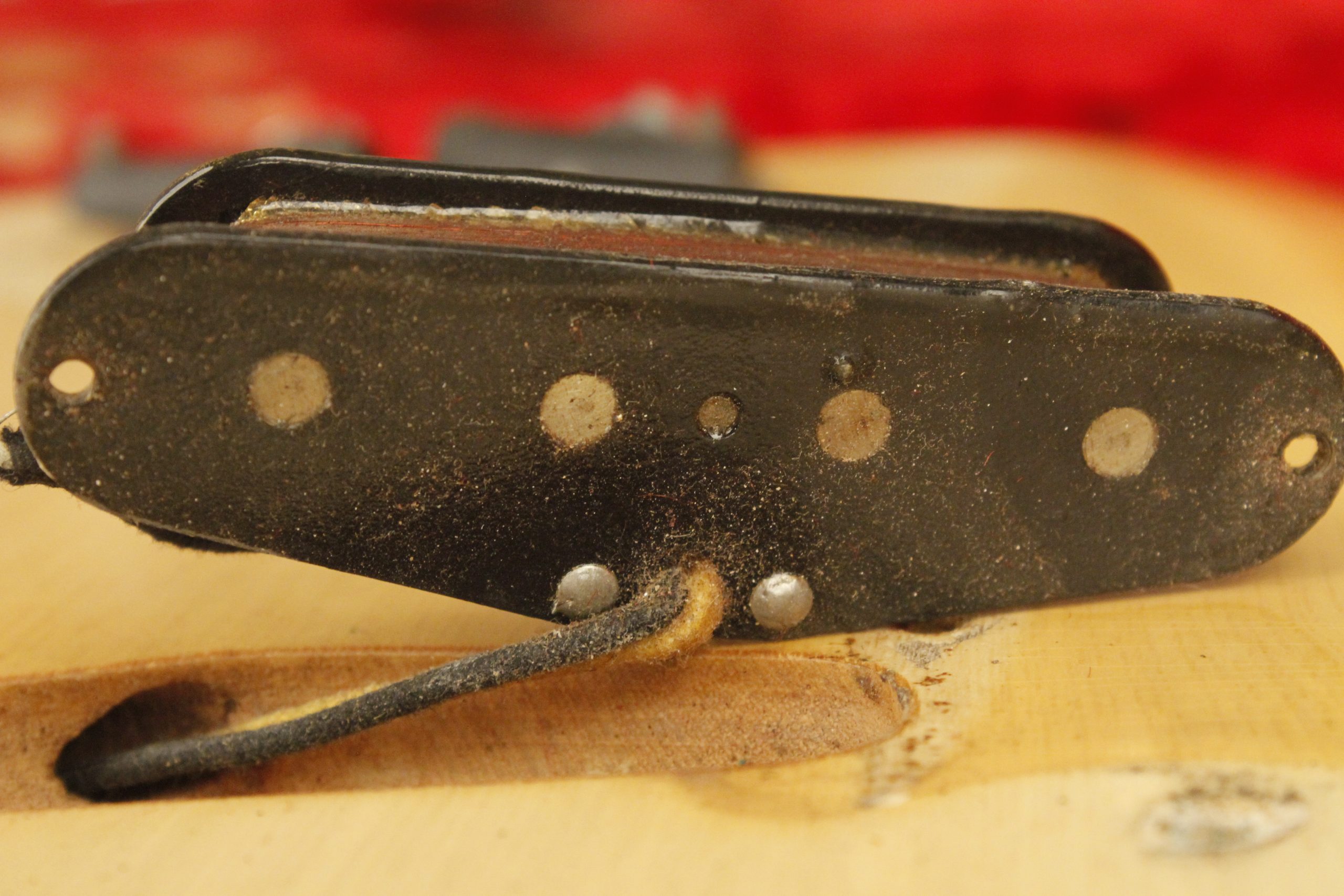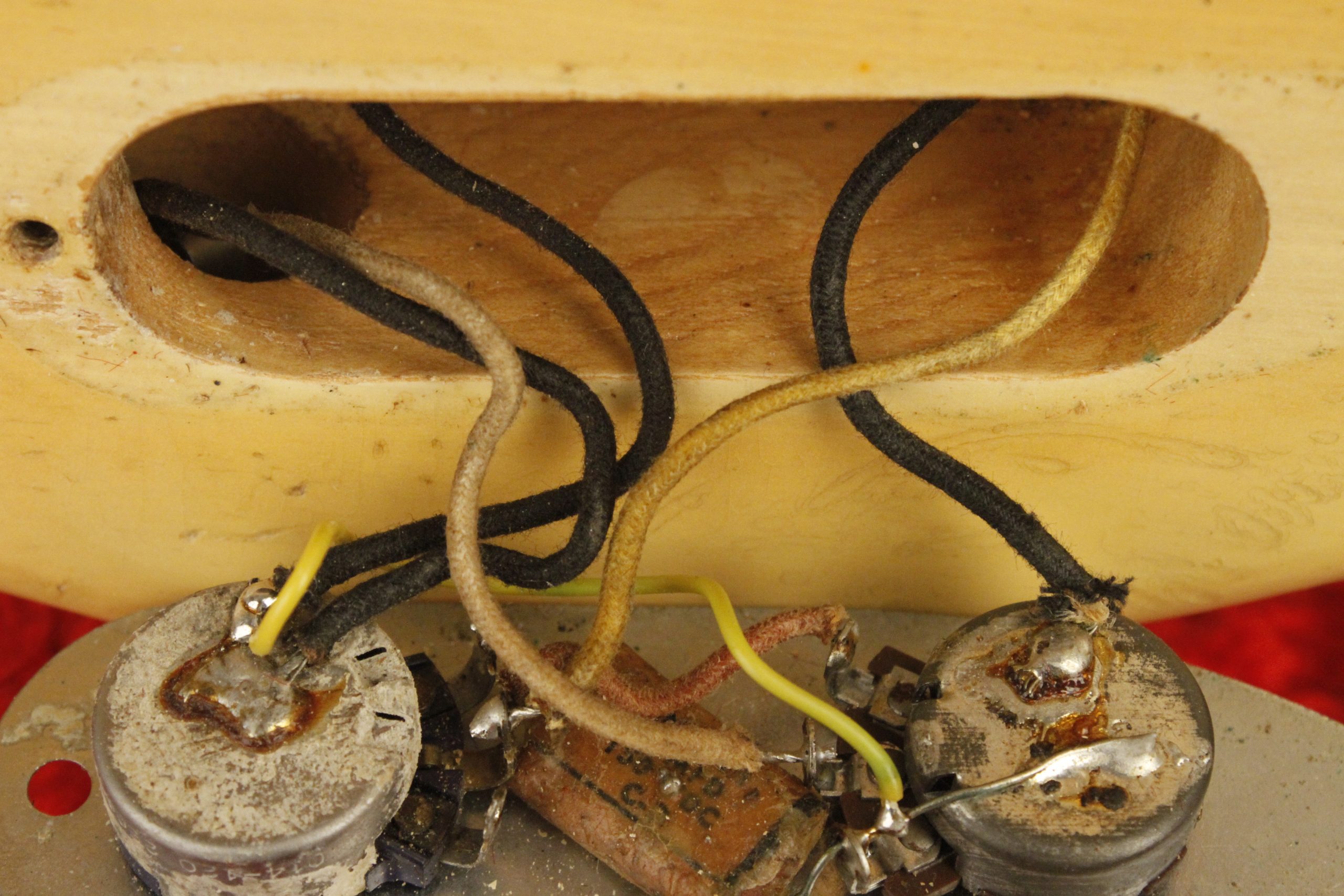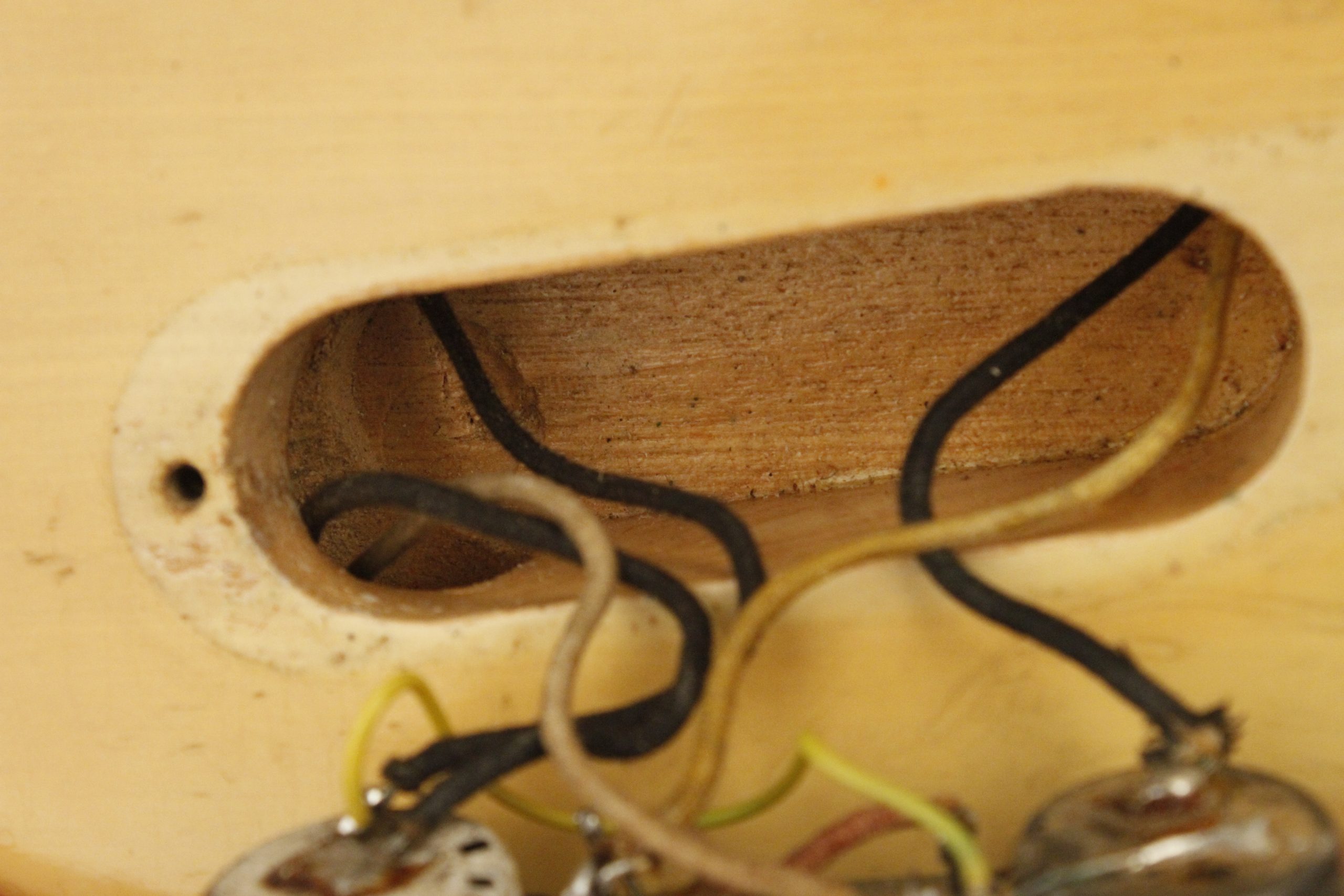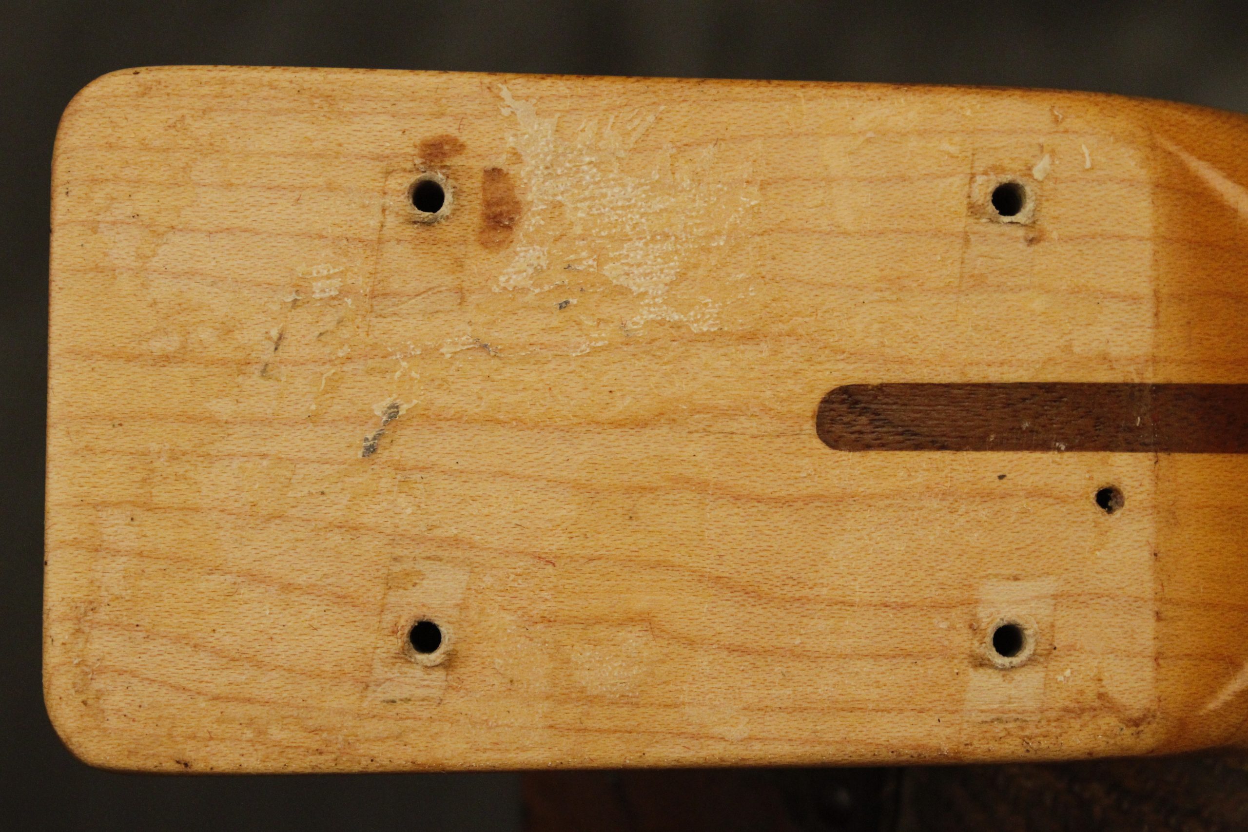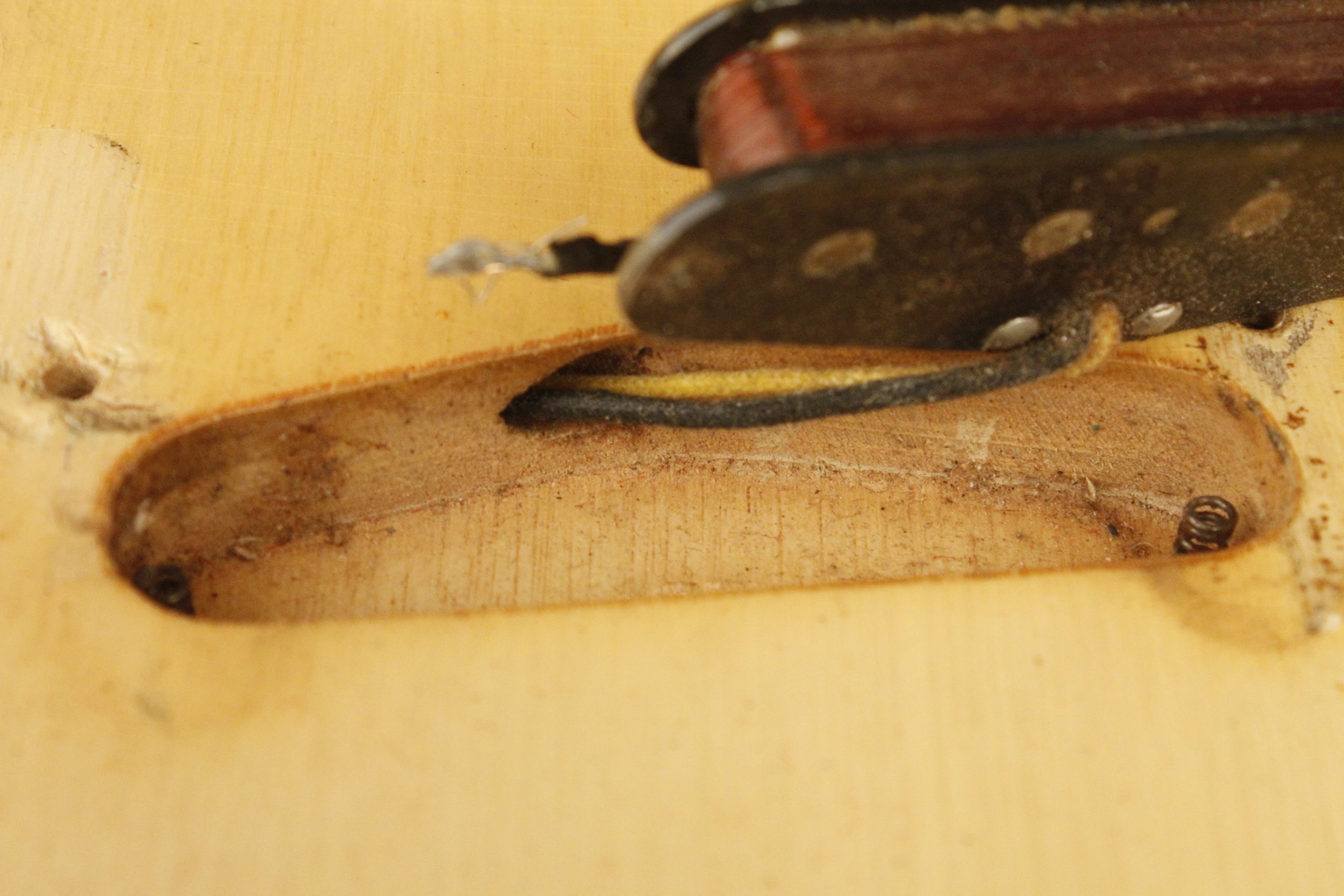 1955 Fender Precision Bass in its original Blonde finish. It has a great playing neck with great frets. It's all original with the exception of one changed pot, an added ground wire and a screw holding the jack cup in place. Aside from the cloth covering being removed from the pickup, it's 100% complete along with both original covers and the original tweed hardshell case. It looks great with nicks + dings, a naturally worn warped pickguard, light finish checking and a lot of play wear. Everything remains structurally sound with no cracks, breaks or repairs. All electronics work and sound great as it provides an authentic early P-Bass tone. The weight is 8 lbs. 3.6 oz.