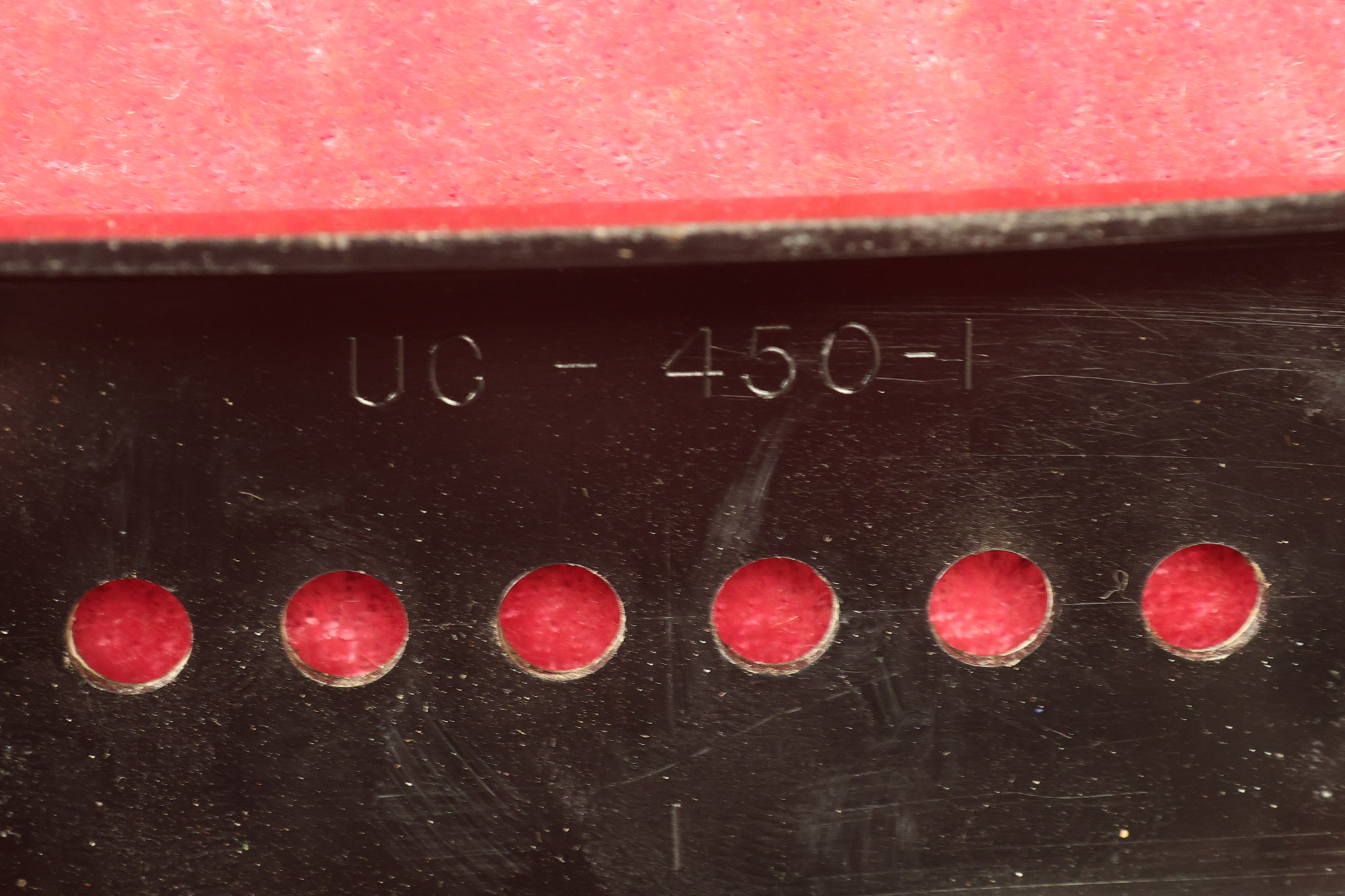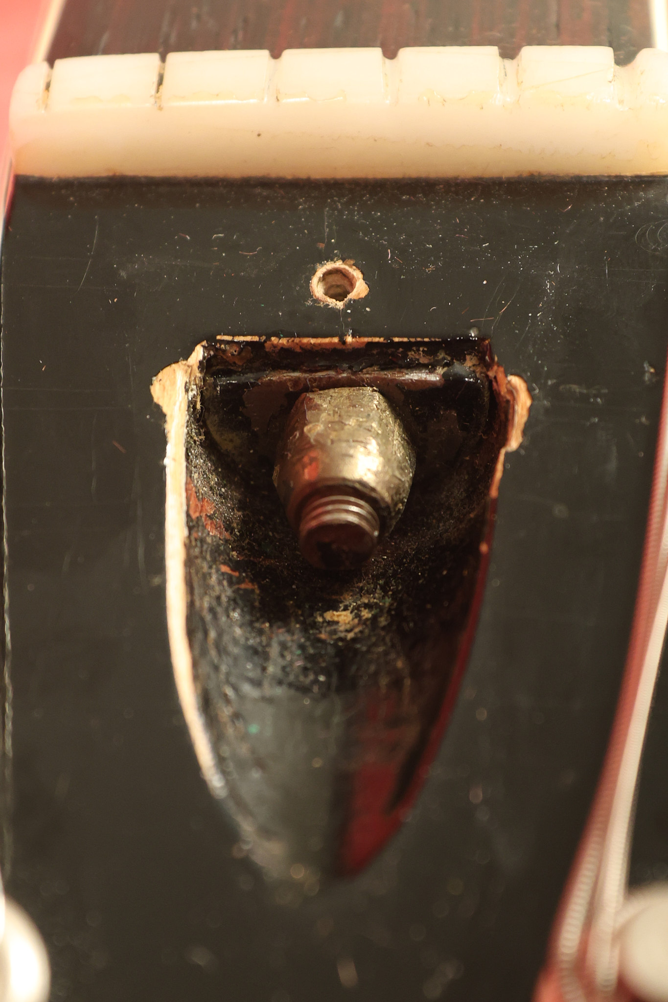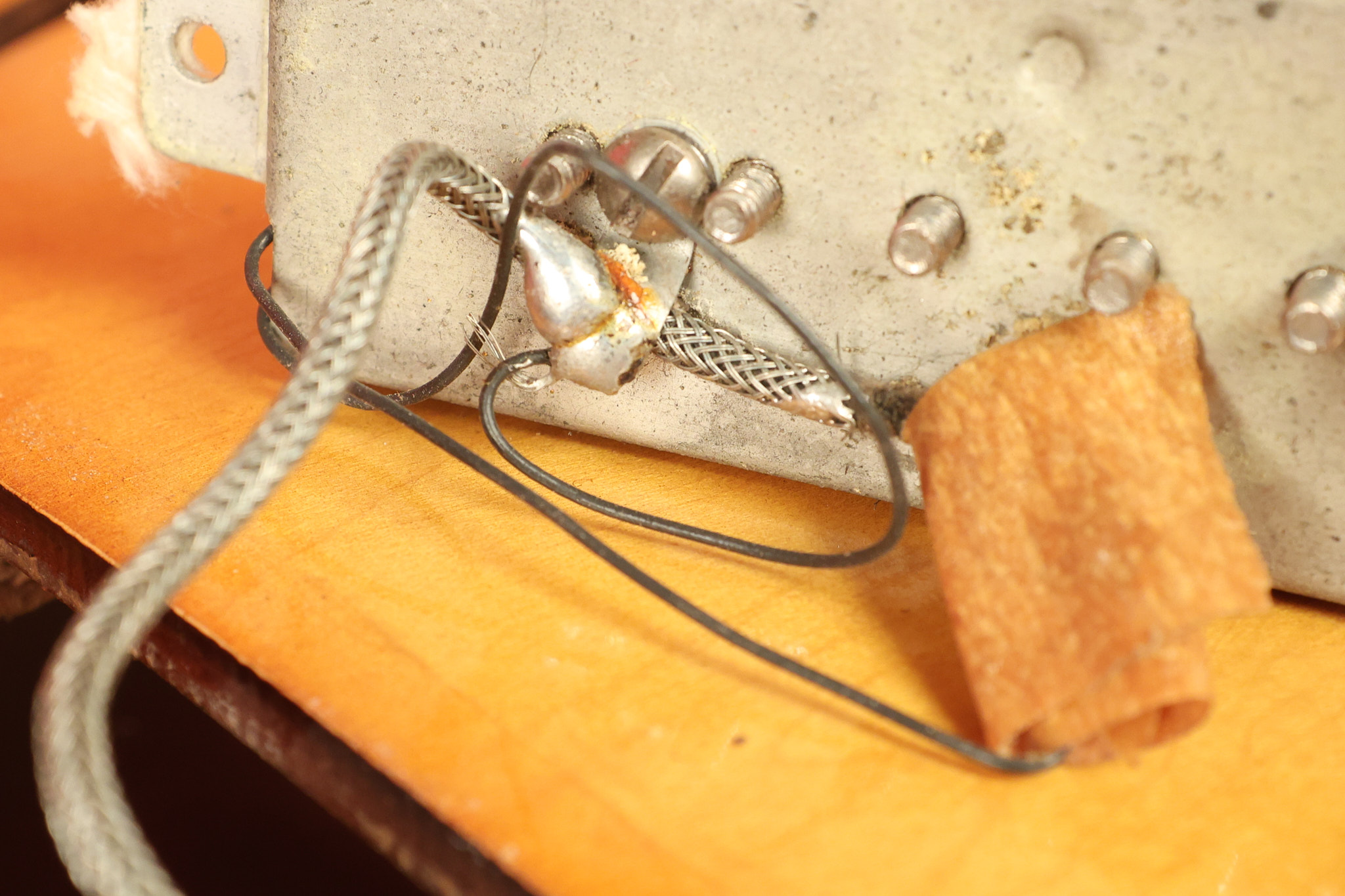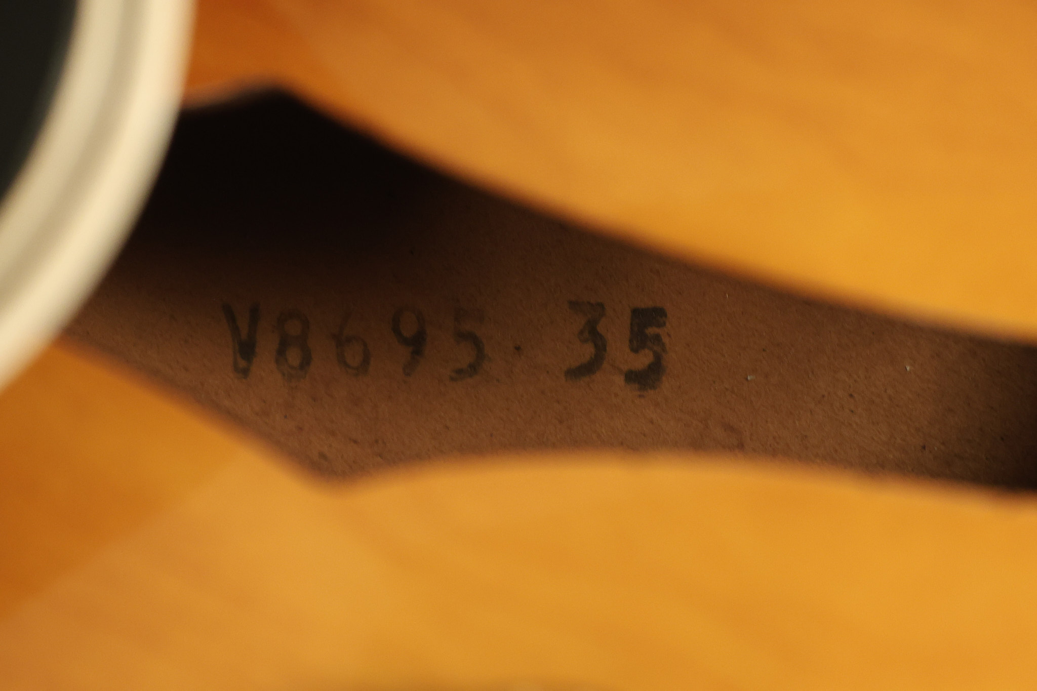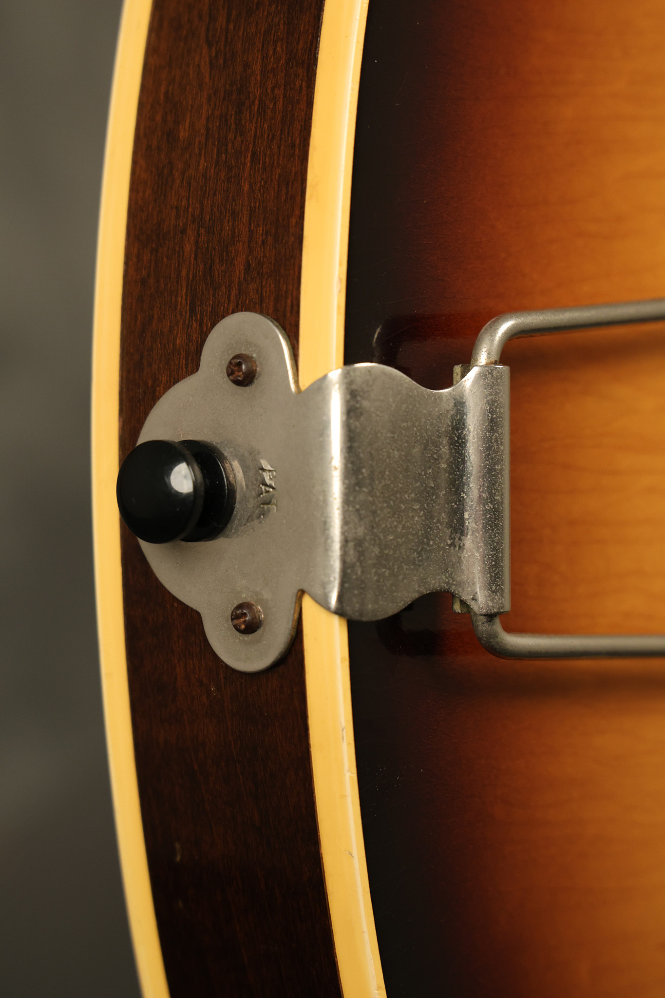 1956 Gibson ES-225 T in its original Sunburst finish. It has a great playing neck with worn, but good frets. The low E buzzes against the surface of the pickup on the last/highest fret. It's all original with the exception of the strap buttons, the buttons for the tuning keys and the screw and outer nut for the pickguard bracket. It's also 100% complete along with its original Brown hardshell case. This 225 looks great and has lots of nicks + dings with several being on the back of the neck near the 7th-10th fret area. There is a surface crack on the back of the body near the bass side edge of the lower bout along with lots of finish checking and other cosmetic wear. These are all cosmetic issues as everything remains structurally sound. All electronics work and sound great with its original P-90.