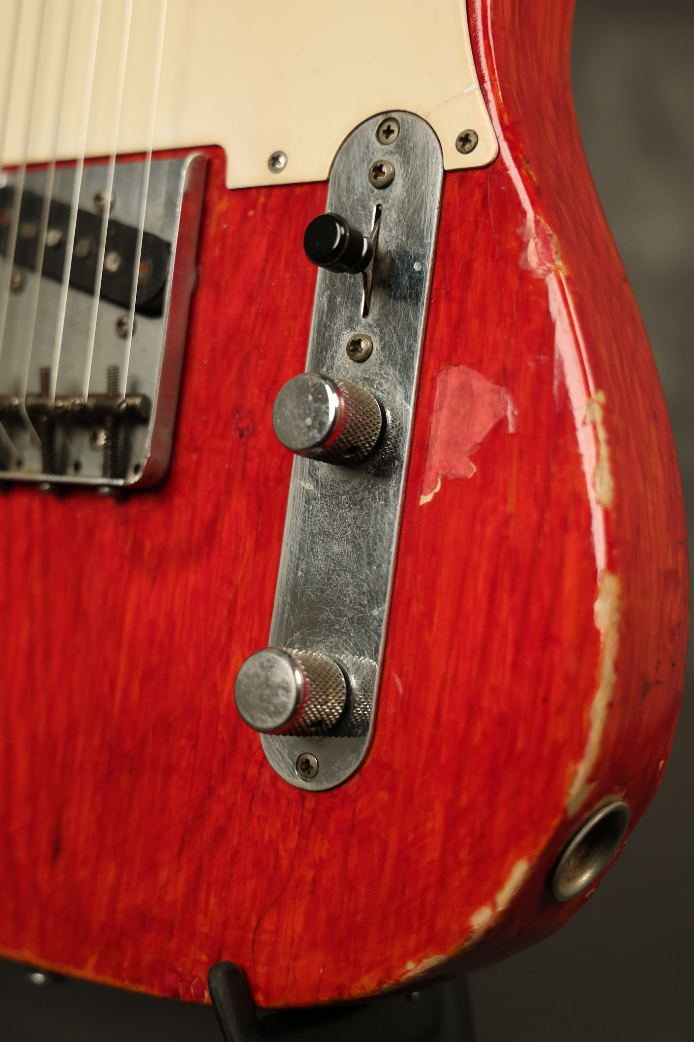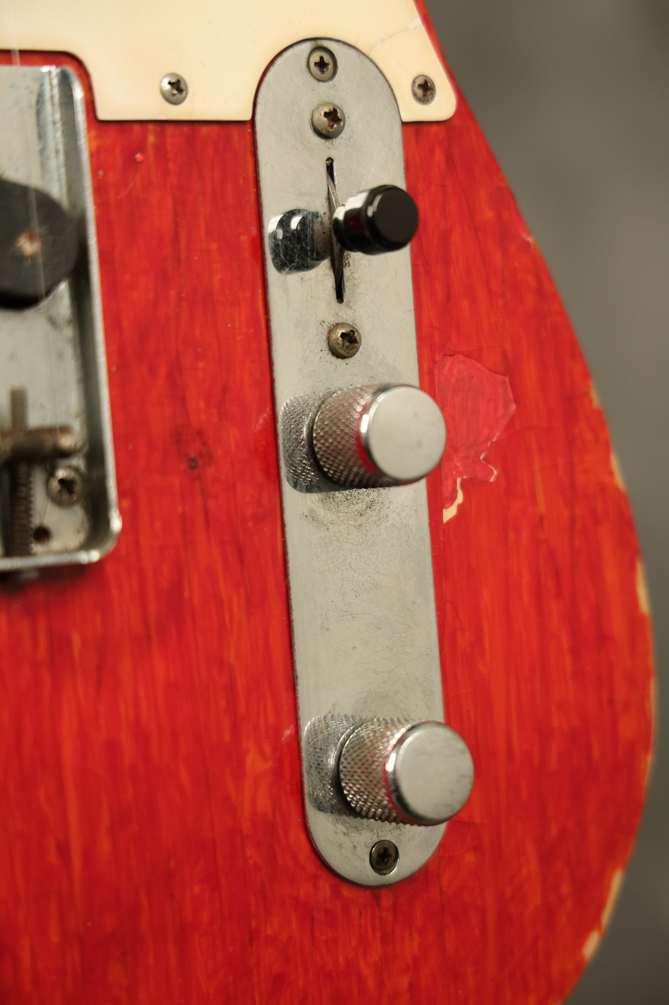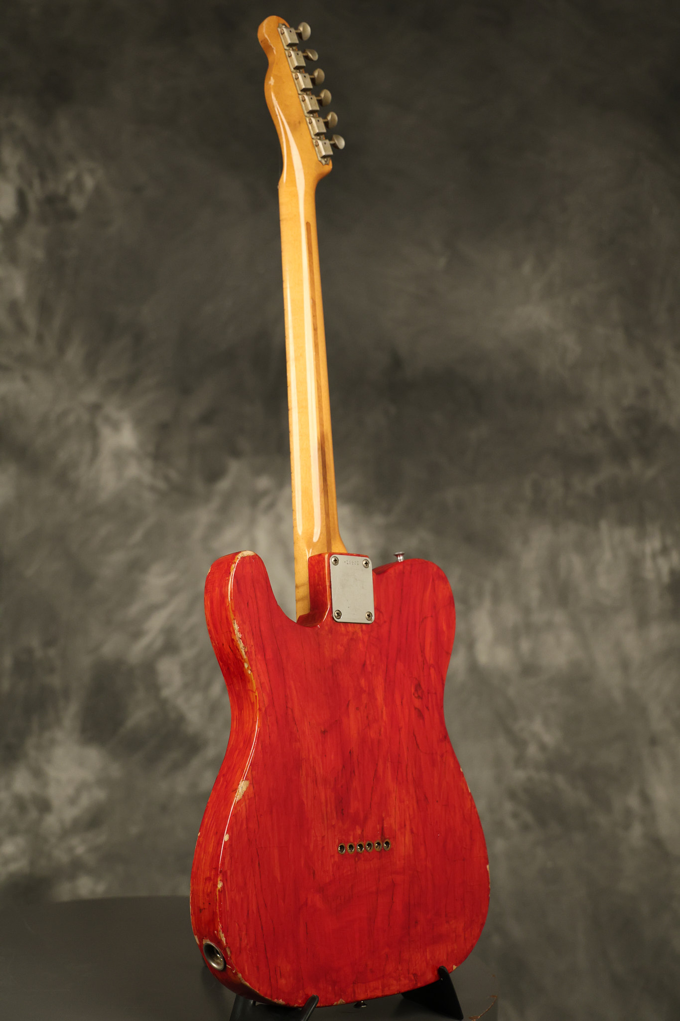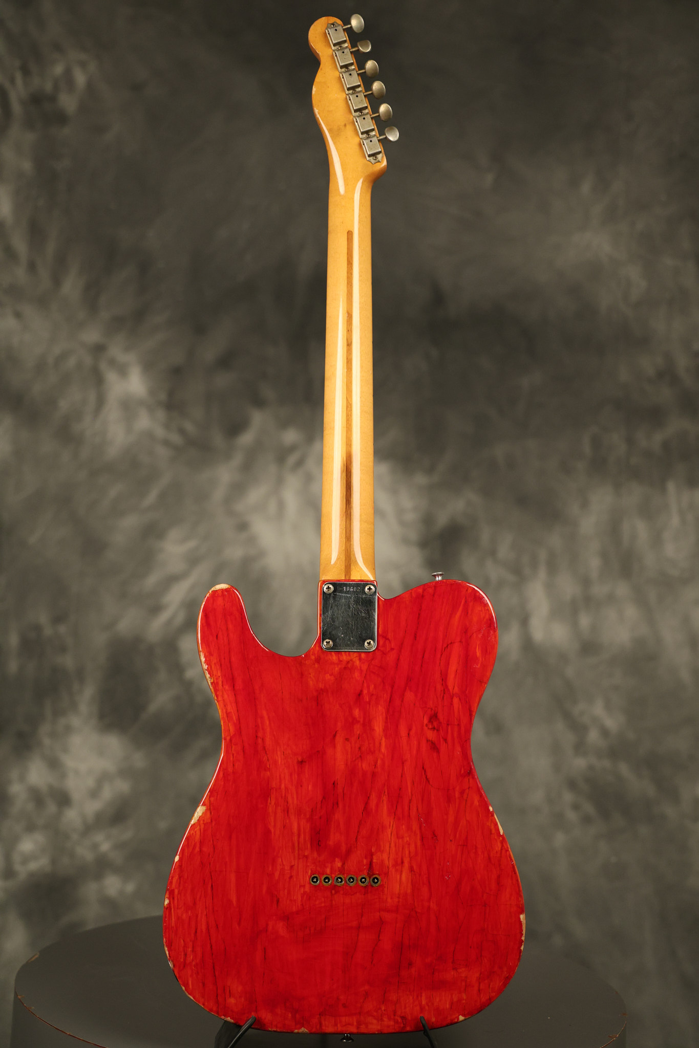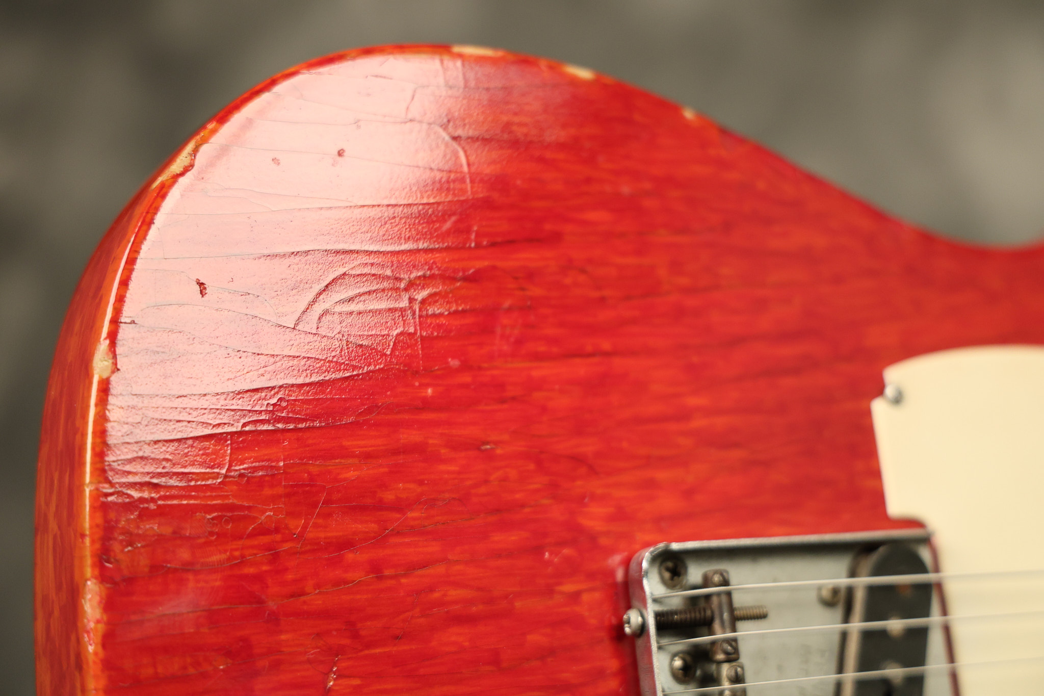 1957 Fender Telecaster with a refinished neck and a poorly refinished body. It has a great playing neck with good frets as it has been refretted. Changed parts include the tuning keys, switch, one capacitor (one is missing), the nut and some of the screws. The original pickugard has been oversprayed and has a crack through one corner. The neck position pickup has some traces of blue on the underside and on the original wires which have been extended. The bridge position pickup has been rewound. All electronics work and sound great. The tone pot sounds a little dirty when it's turned all the way down. The lower screw for the control cavity does not have enough wood on the edge of the cavity to firmly grab, so it is rather loose. There are lots of nicks + dings, finish cracks and other cosmetic wear. The guitar itself remains structurally sound. The weight is 7 lbs. 3.4 oz. The original tweed hardshell case is included, but it is in poor condition with patched areas, one broken latch and the side pocket and neck rest was replaced with one from a later 1960's Fender case.