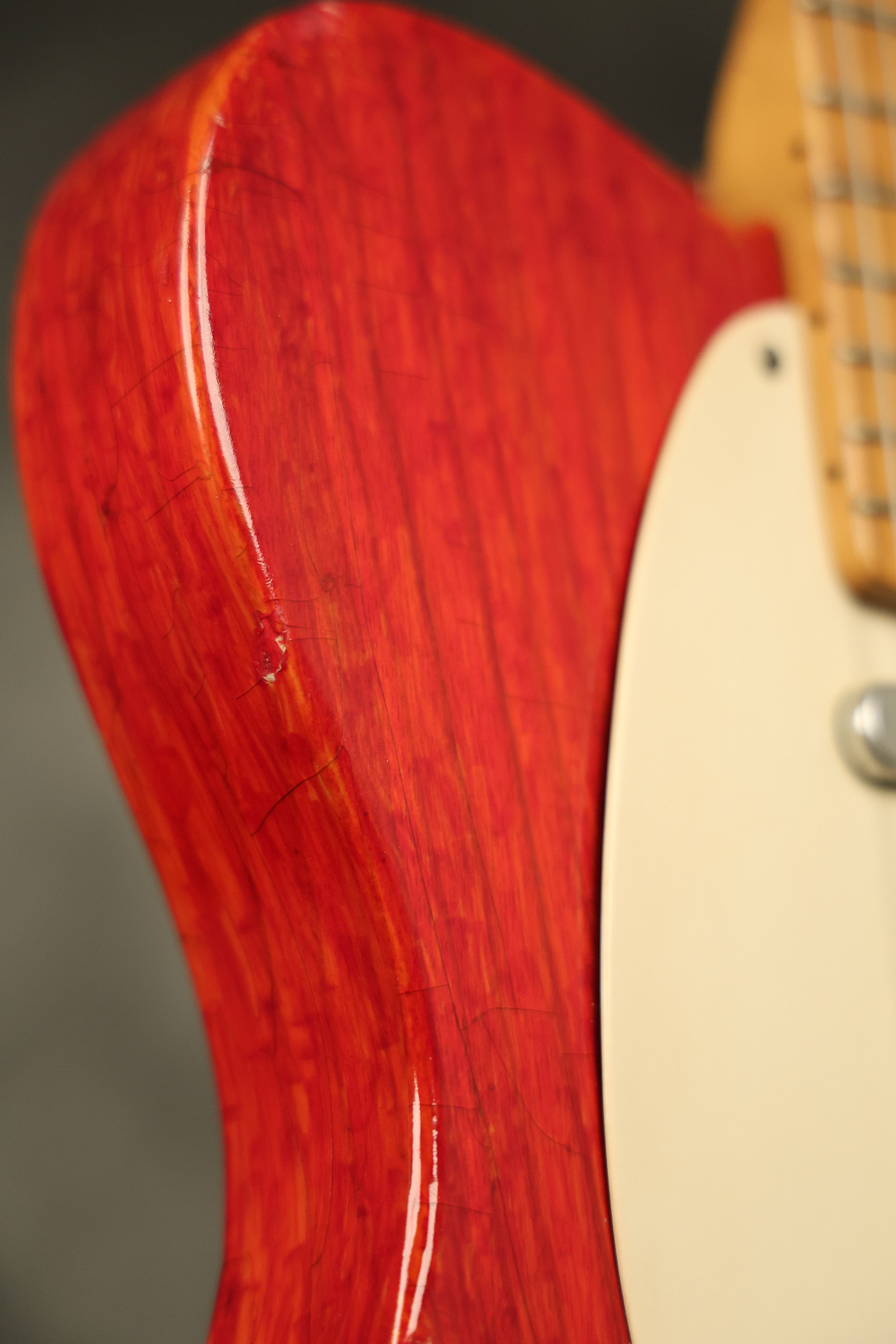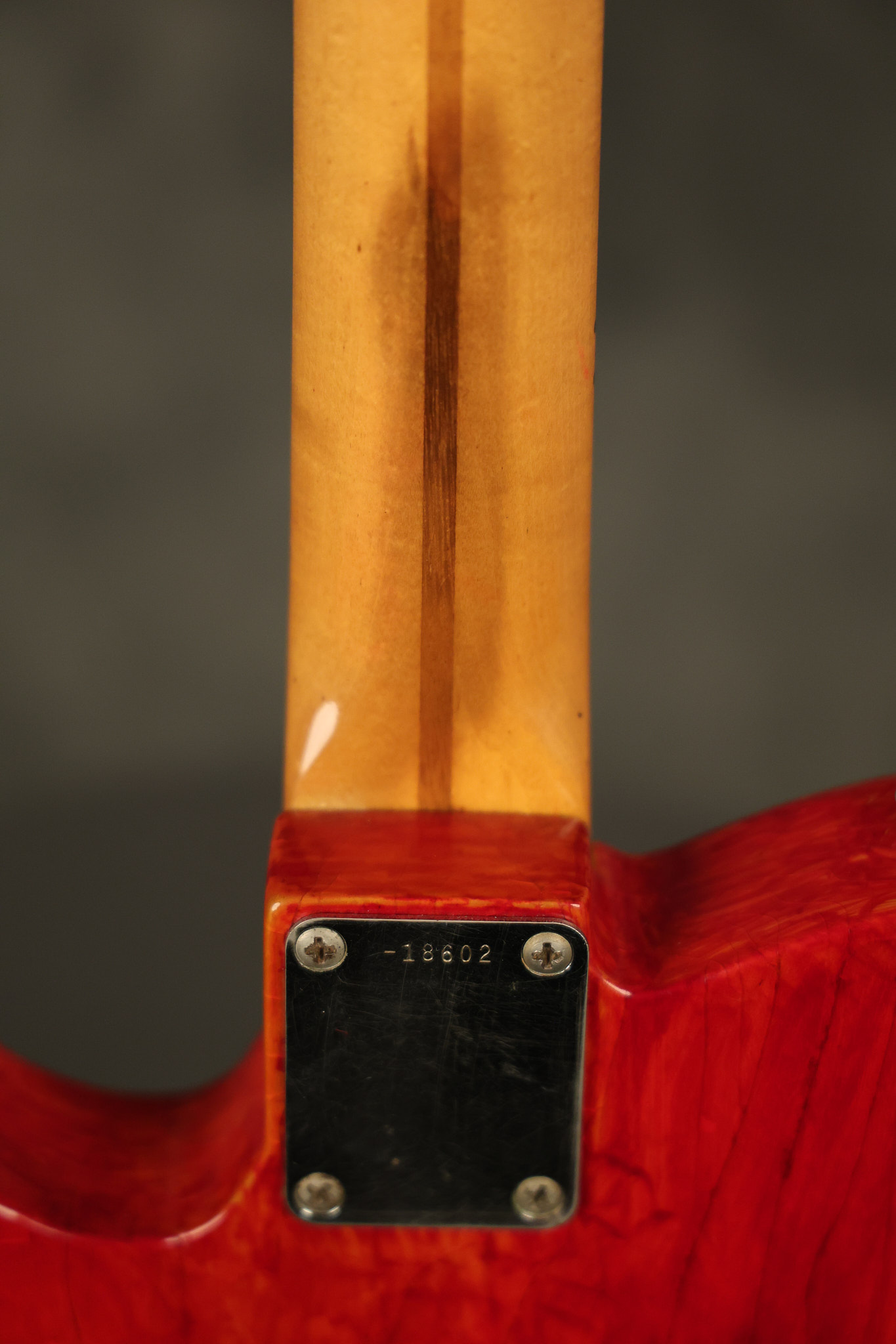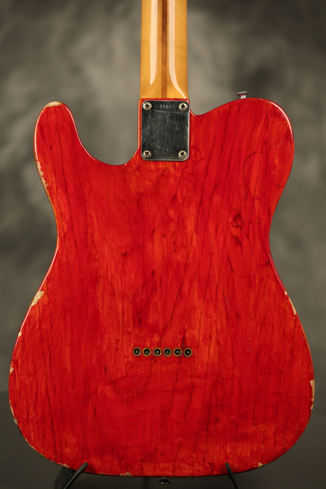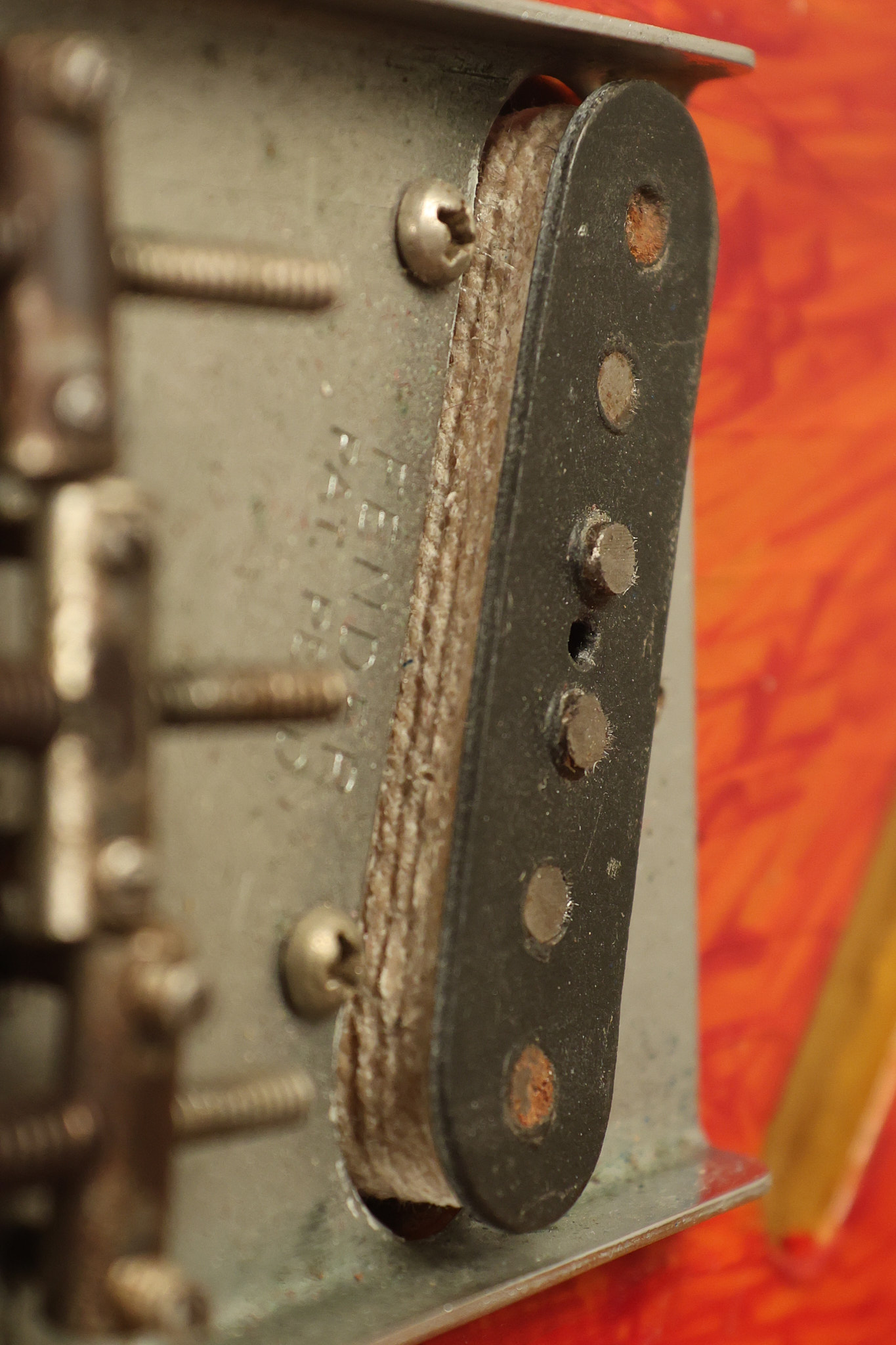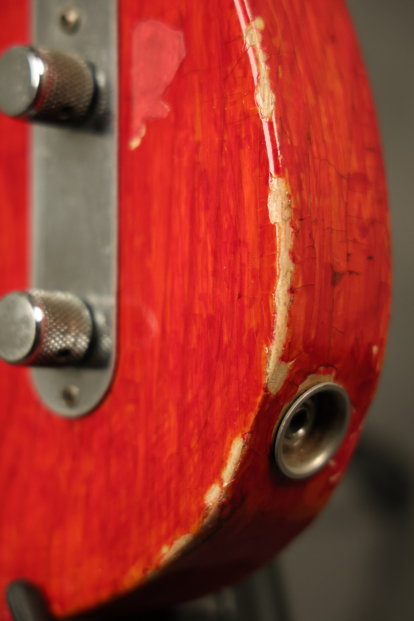 1957 Fender Telecaster with a refinished neck and a poorly refinished body. It has a great playing neck with good frets as it has been refretted. Changed parts include the tuning keys, switch, one capacitor (one is missing), the nut and some of the screws. The original pickugard has been oversprayed and has a crack through one corner. The neck position pickup has some traces of blue on the underside and on the original wires which have been extended. The bridge position pickup has been rewound. All electronics work and sound great. The tone pot sounds a little dirty when it's turned all the way down. The lower screw for the control cavity does not have enough wood on the edge of the cavity to firmly grab, so it is rather loose. There are lots of nicks + dings, finish cracks and other cosmetic wear. The guitar itself remains structurally sound. The weight is 7 lbs. 3.4 oz. The original tweed hardshell case is included, but it is in poor condition with patched areas, one broken latch and the side pocket and neck rest was replaced with one from a later 1960's Fender case.