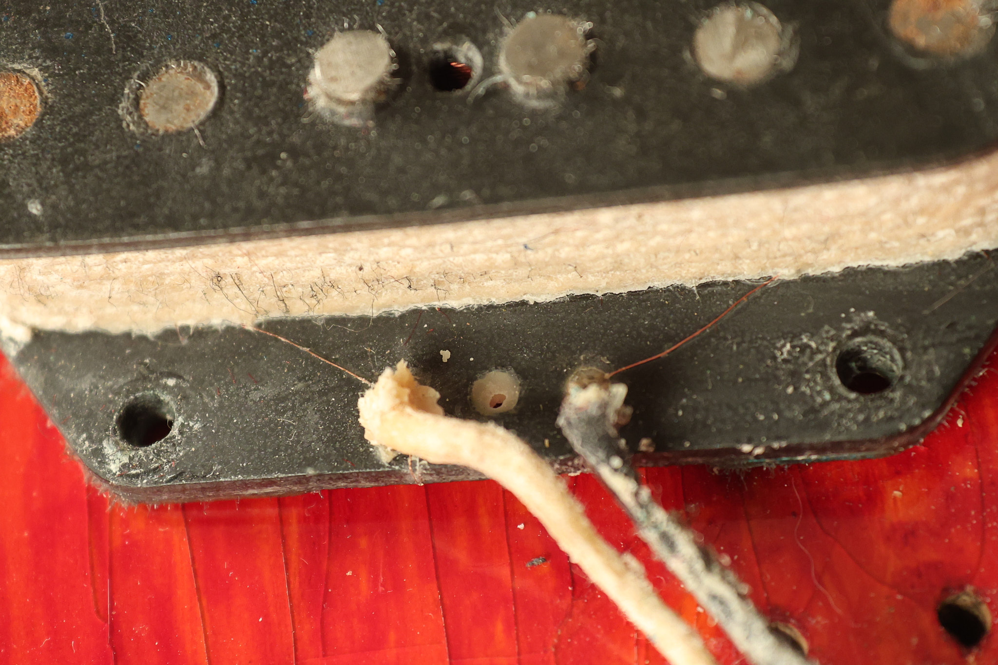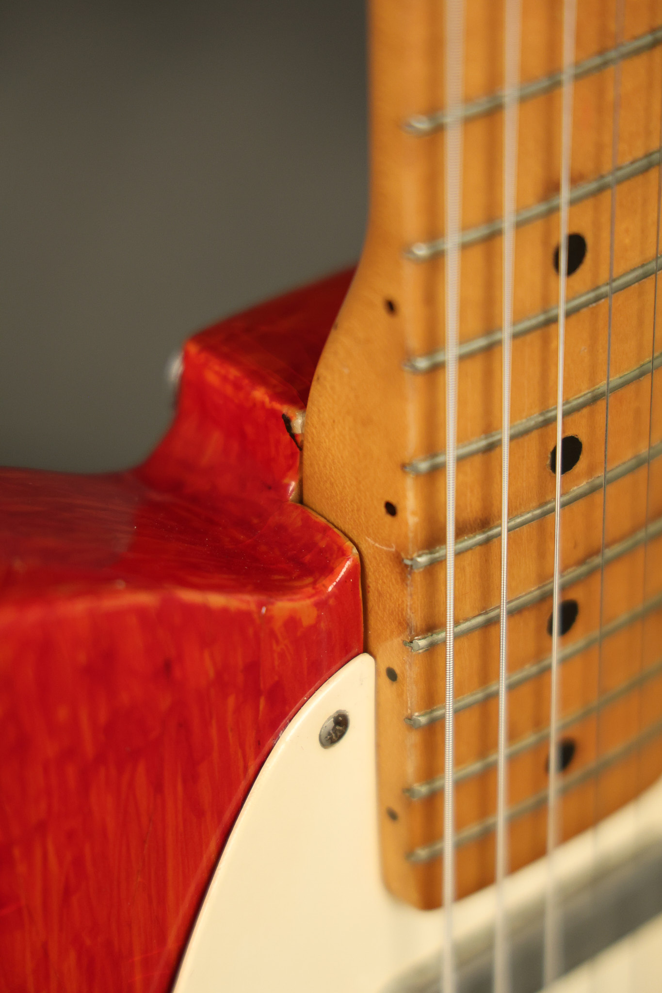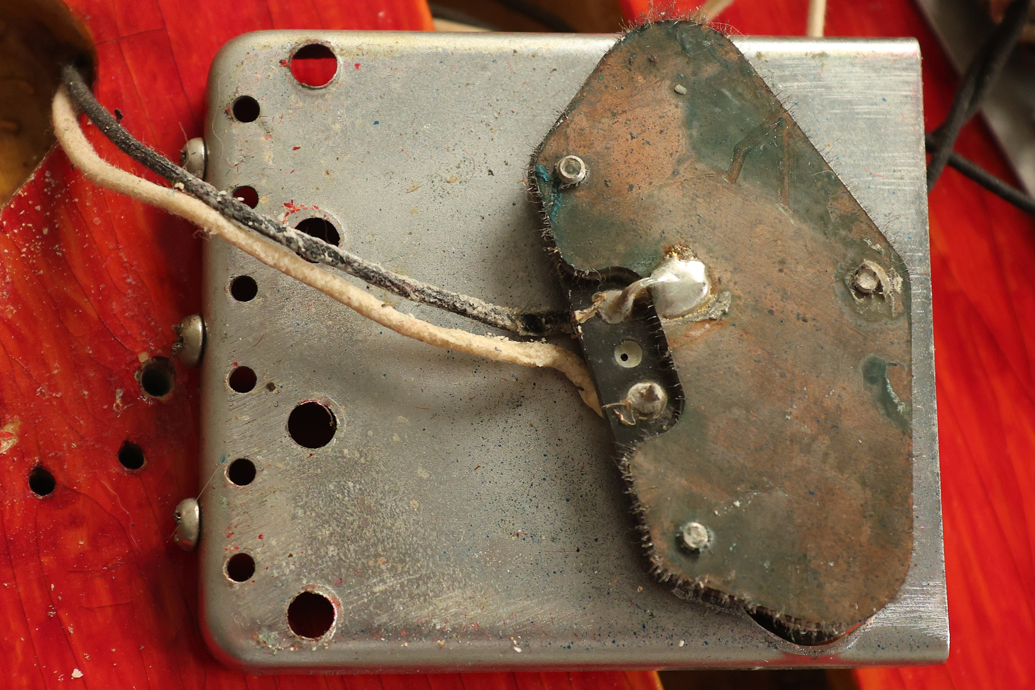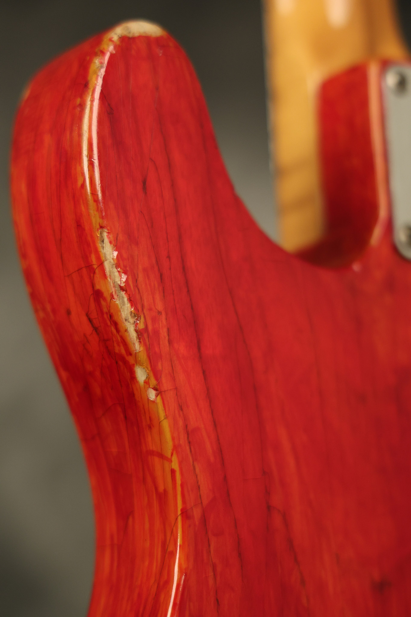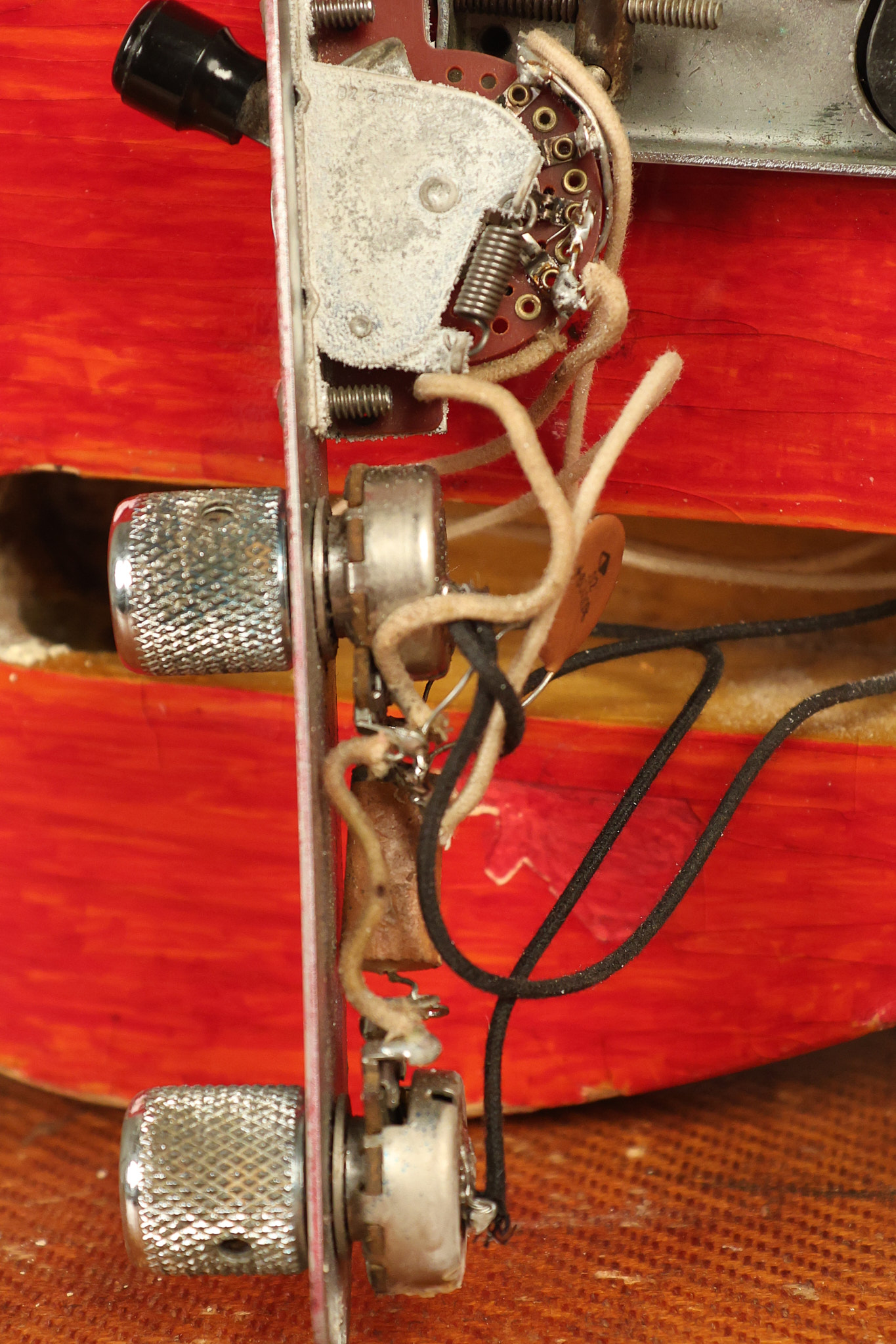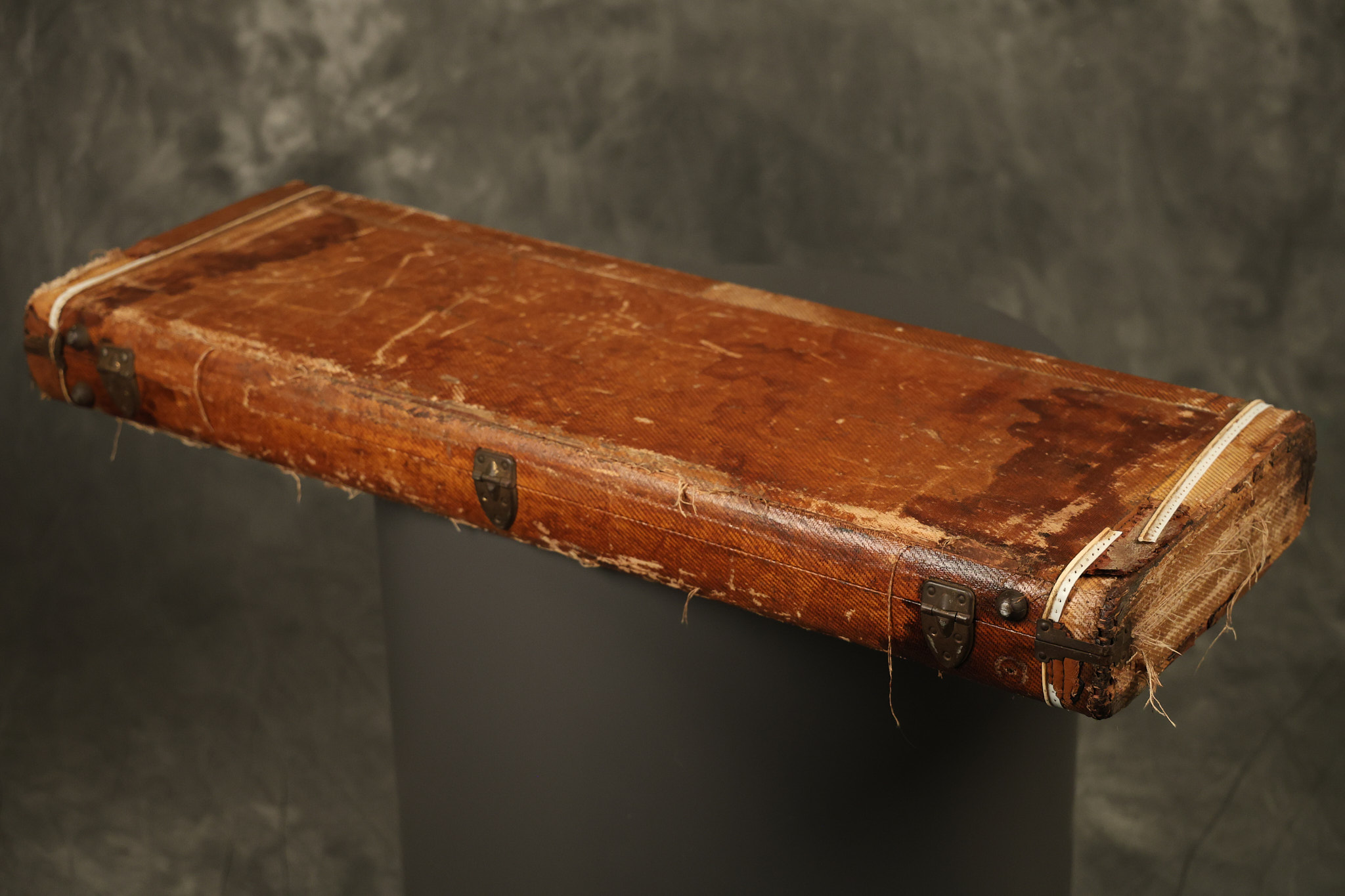 1957 Fender Telecaster with a refinished neck and a poorly refinished body. It has a great playing neck with good frets as it has been refretted. Changed parts include the tuning keys, switch, one capacitor (one is missing), the nut and some of the screws. The original pickugard has been oversprayed and has a crack through one corner. The neck position pickup has some traces of blue on the underside and on the original wires which have been extended. The bridge position pickup has been rewound. All electronics work and sound great. The tone pot sounds a little dirty when it's turned all the way down. The lower screw for the control cavity does not have enough wood on the edge of the cavity to firmly grab, so it is rather loose. There are lots of nicks + dings, finish cracks and other cosmetic wear. The guitar itself remains structurally sound. The weight is 7 lbs. 3.4 oz. The original tweed hardshell case is included, but it is in poor condition with patched areas, one broken latch and the side pocket and neck rest was replaced with one from a later 1960's Fender case.