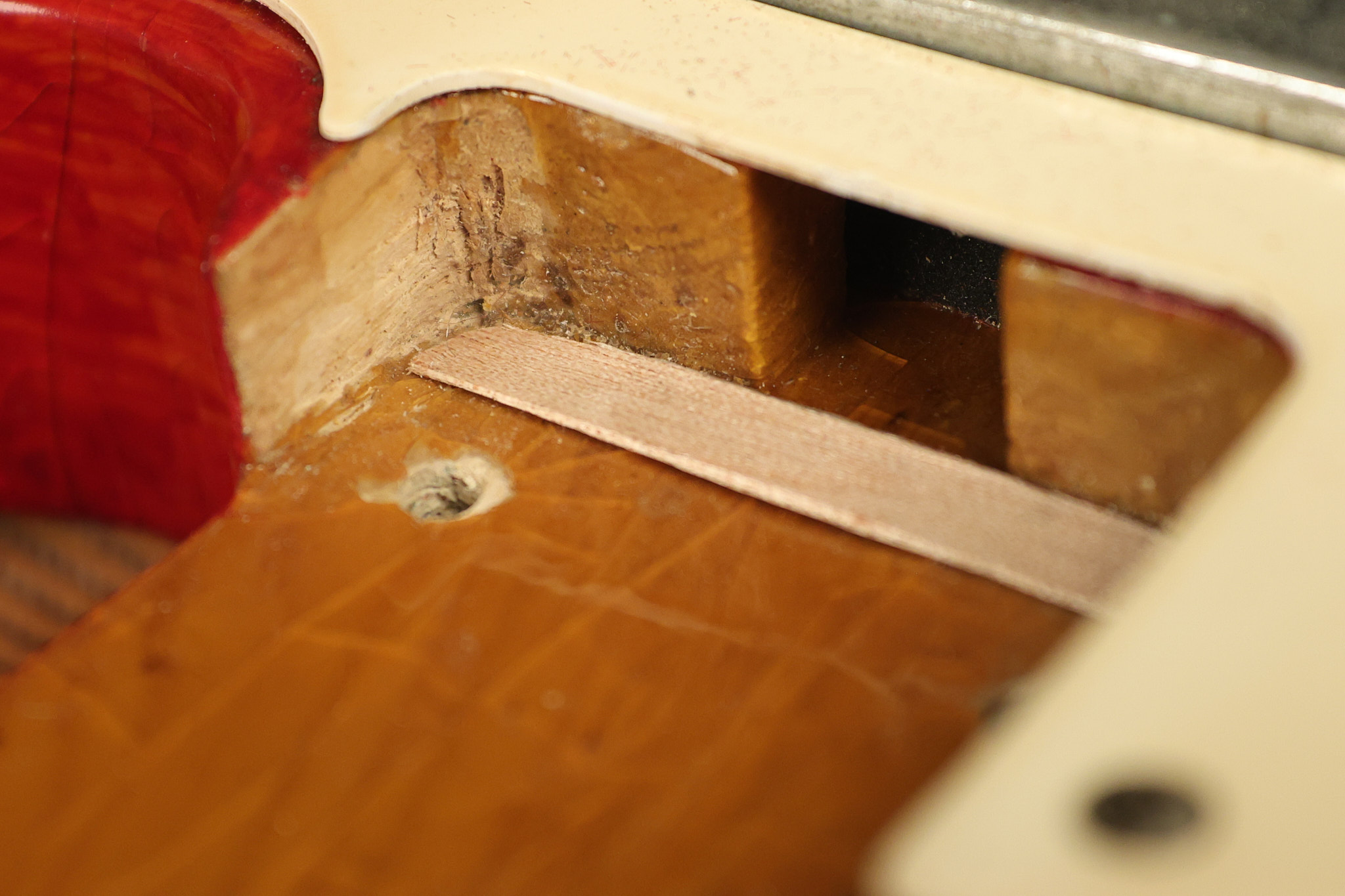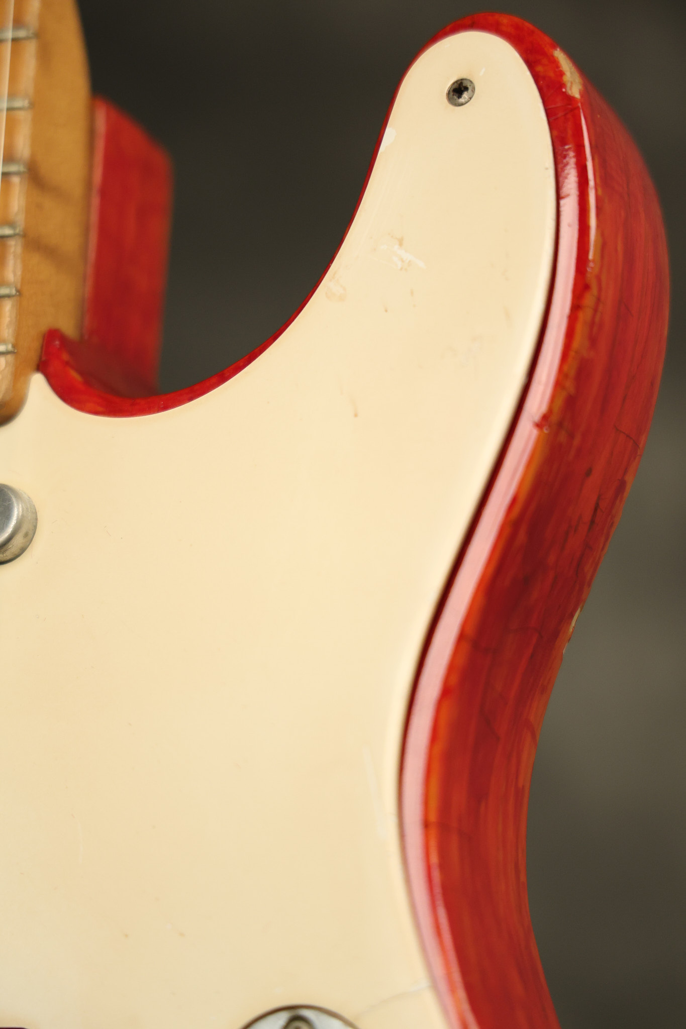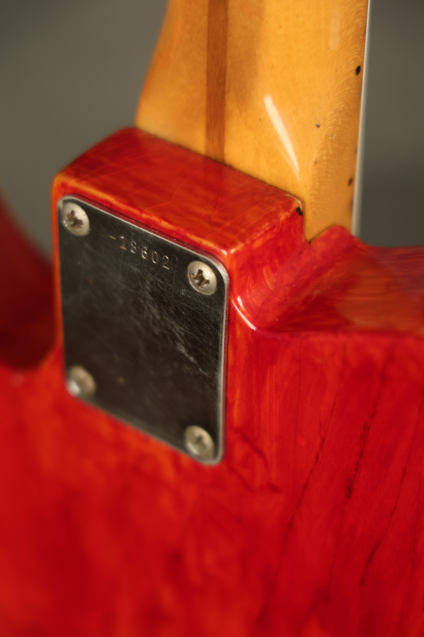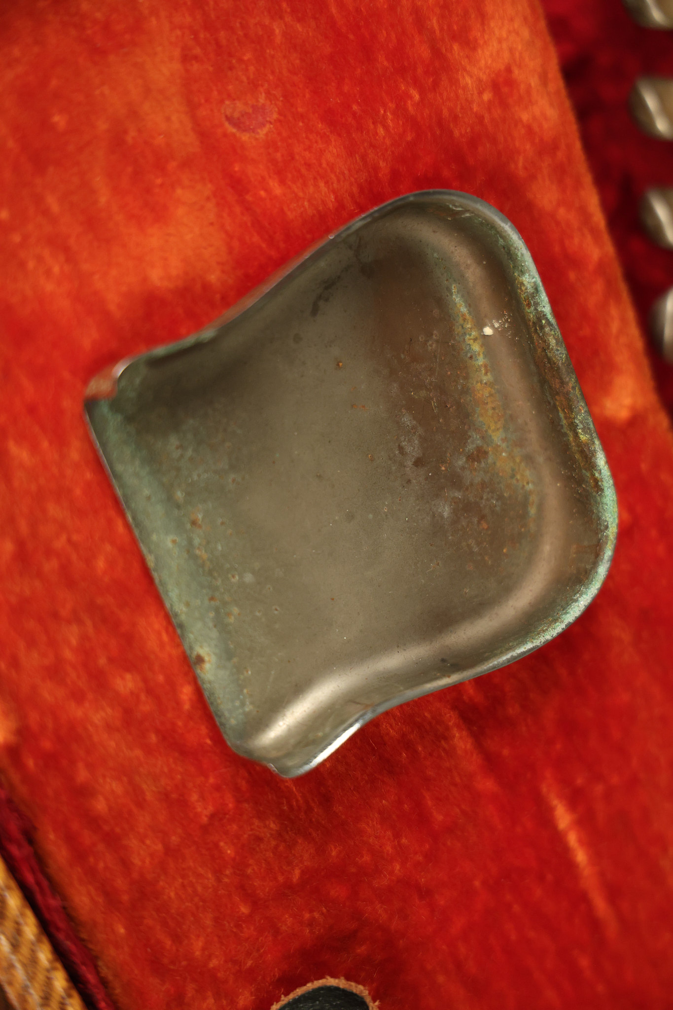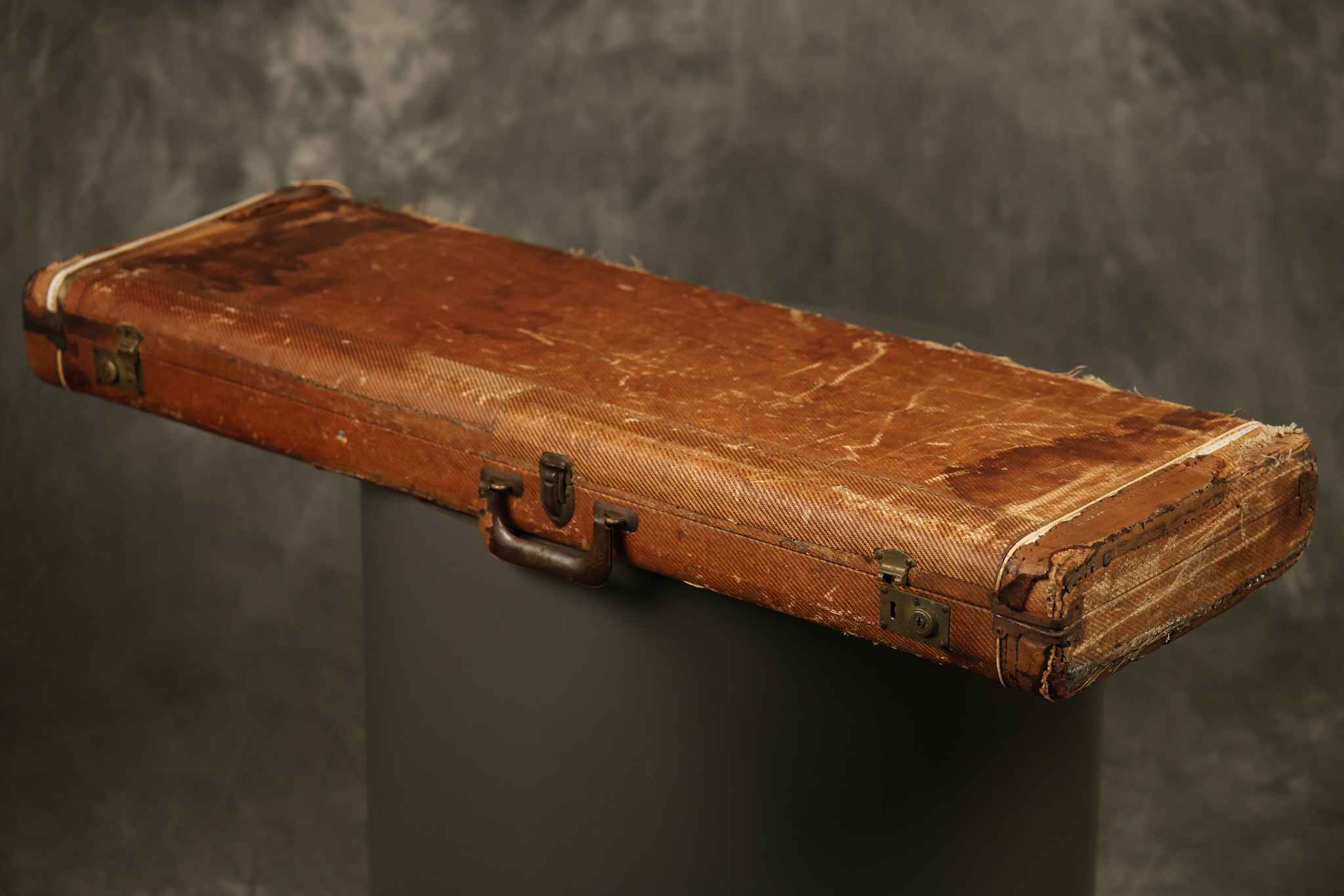 1957 Fender Telecaster with a refinished neck and a poorly refinished body. It has a great playing neck with good frets as it has been refretted. Changed parts include the tuning keys, switch, one capacitor (one is missing), the nut and some of the screws. The original pickugard has been oversprayed and has a crack through one corner. The neck position pickup has some traces of blue on the underside and on the original wires which have been extended. The bridge position pickup has been rewound. All electronics work and sound great. The tone pot sounds a little dirty when it's turned all the way down. The lower screw for the control cavity does not have enough wood on the edge of the cavity to firmly grab, so it is rather loose. There are lots of nicks + dings, finish cracks and other cosmetic wear. The guitar itself remains structurally sound. The weight is 7 lbs. 3.4 oz. The original tweed hardshell case is included, but it is in poor condition with patched areas, one broken latch and the side pocket and neck rest was replaced with one from a later 1960's Fender case.