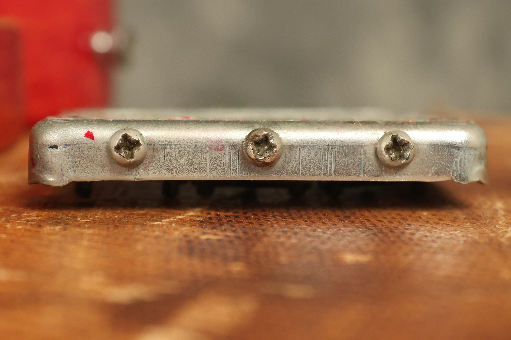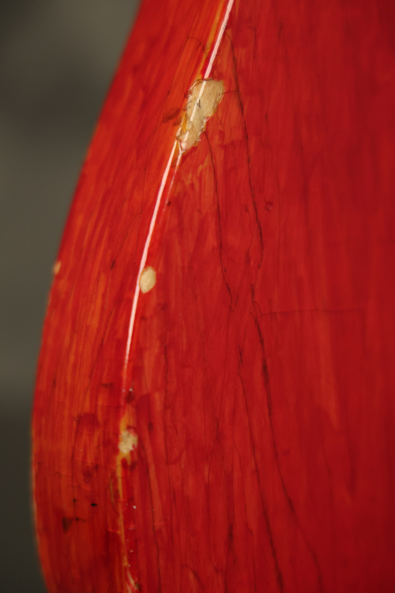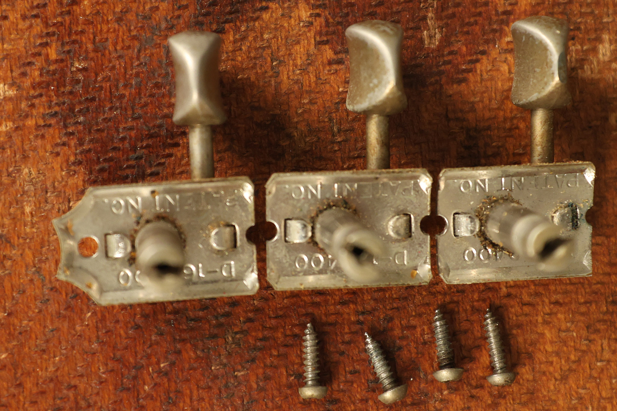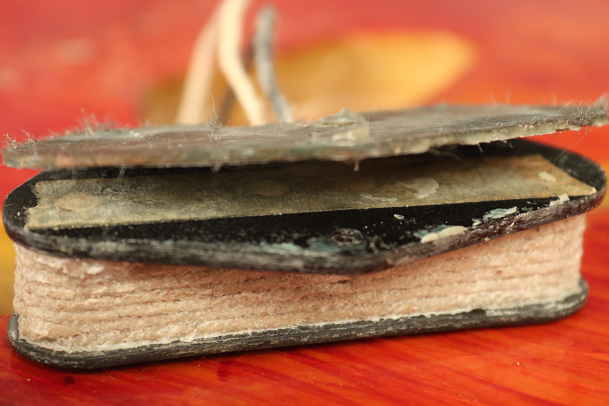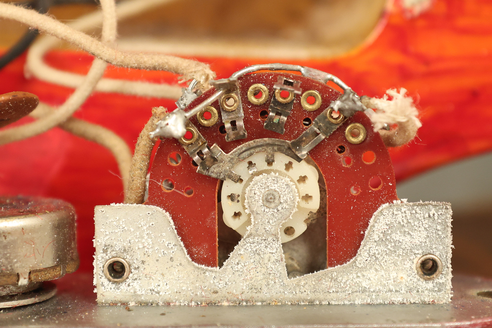 1957 Fender Telecaster with a refinished neck and a poorly refinished body. It has a great playing neck with good frets as it has been refretted. Changed parts include the tuning keys, switch, one capacitor (one is missing), the nut and some of the screws. The original pickugard has been oversprayed and has a crack through one corner. The neck position pickup has some traces of blue on the underside and on the original wires which have been extended. The bridge position pickup has been rewound. All electronics work and sound great. The tone pot sounds a little dirty when it's turned all the way down. The lower screw for the control cavity does not have enough wood on the edge of the cavity to firmly grab, so it is rather loose. There are lots of nicks + dings, finish cracks and other cosmetic wear. The guitar itself remains structurally sound. The weight is 7 lbs. 3.4 oz. The original tweed hardshell case is included, but it is in poor condition with patched areas, one broken latch and the side pocket and neck rest was replaced with one from a later 1960's Fender case.