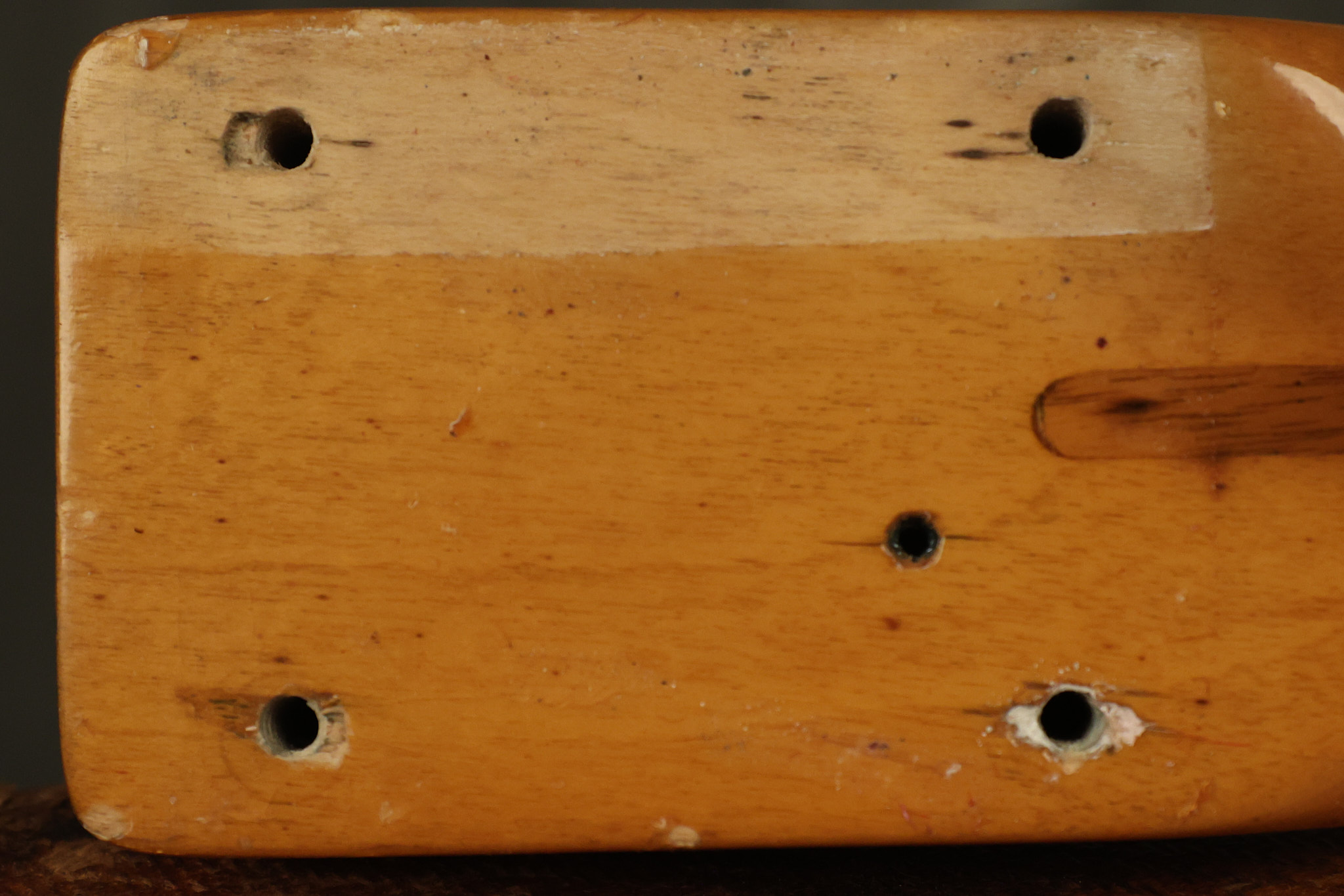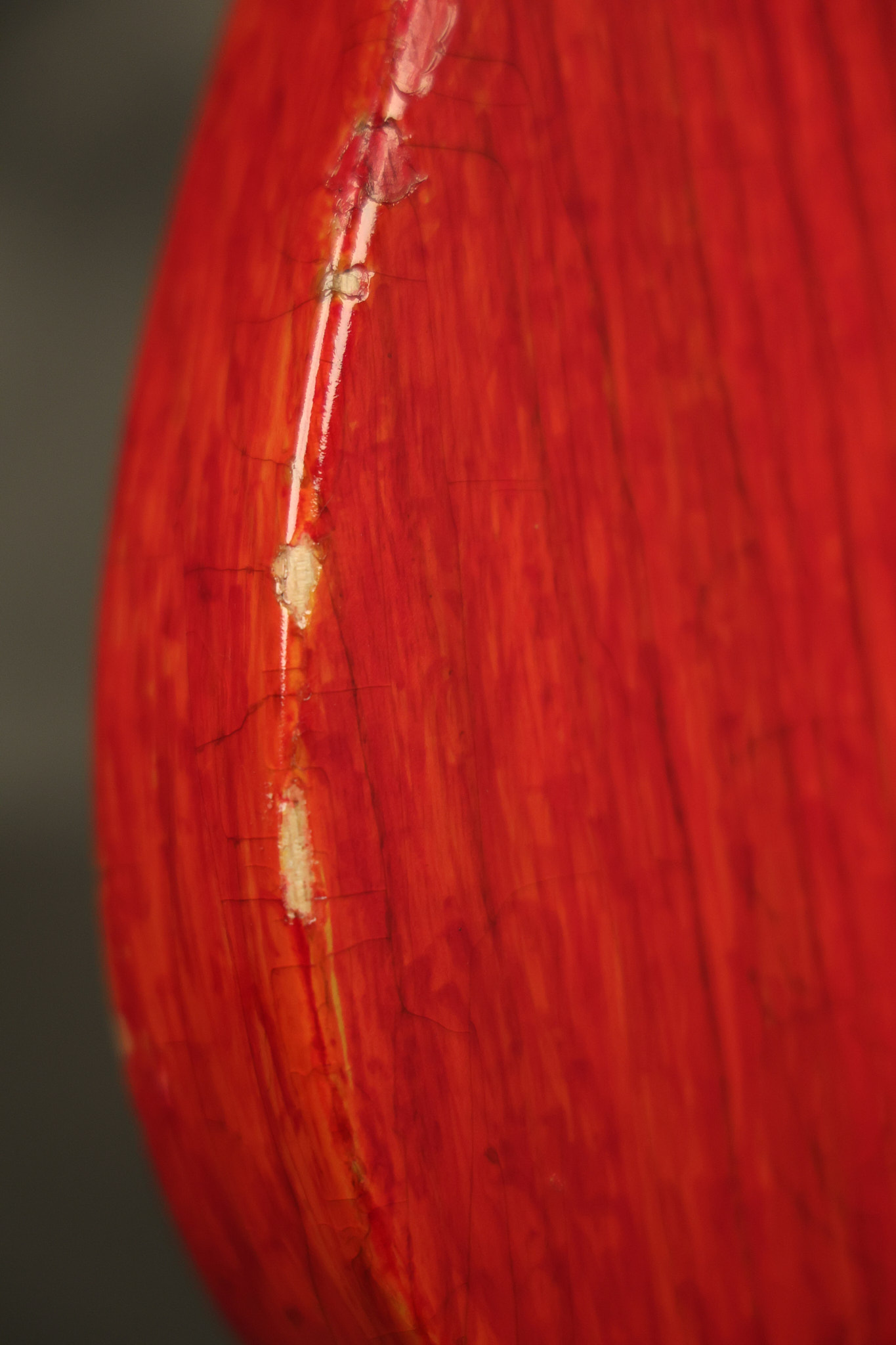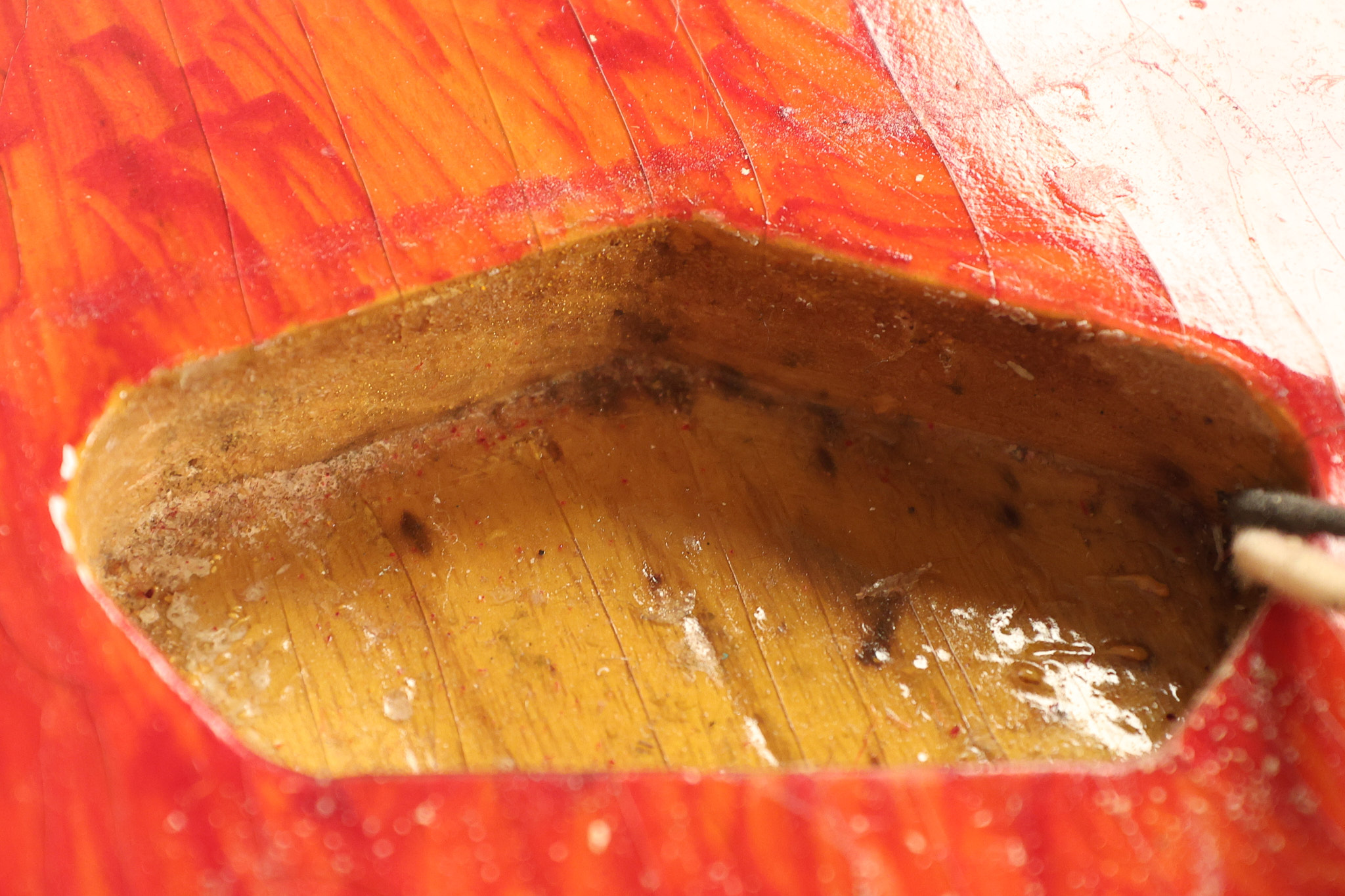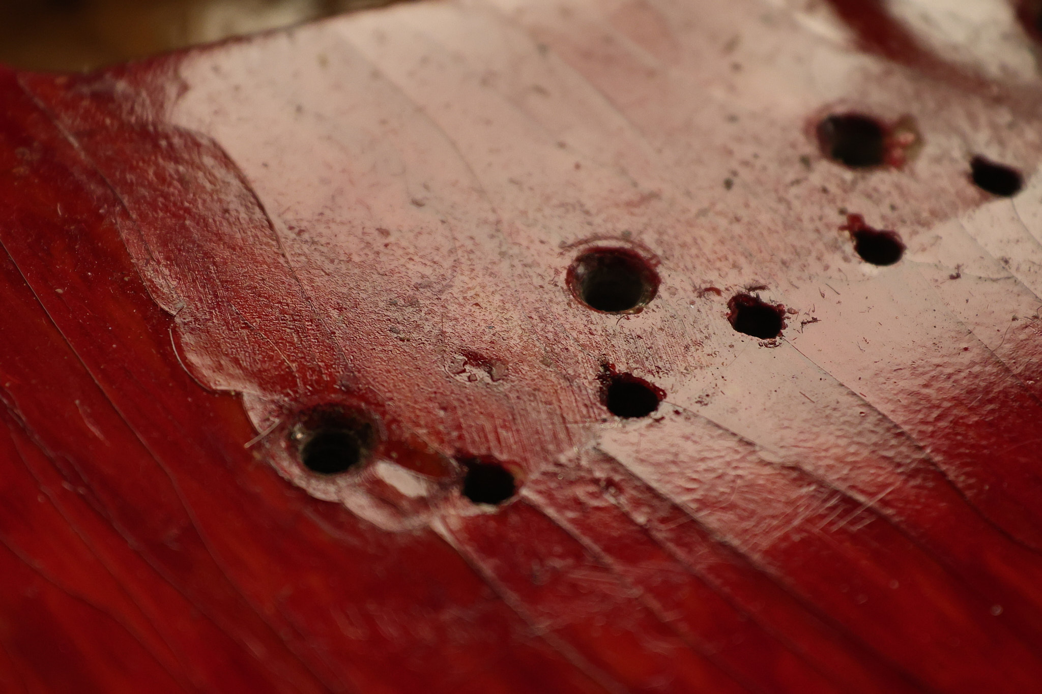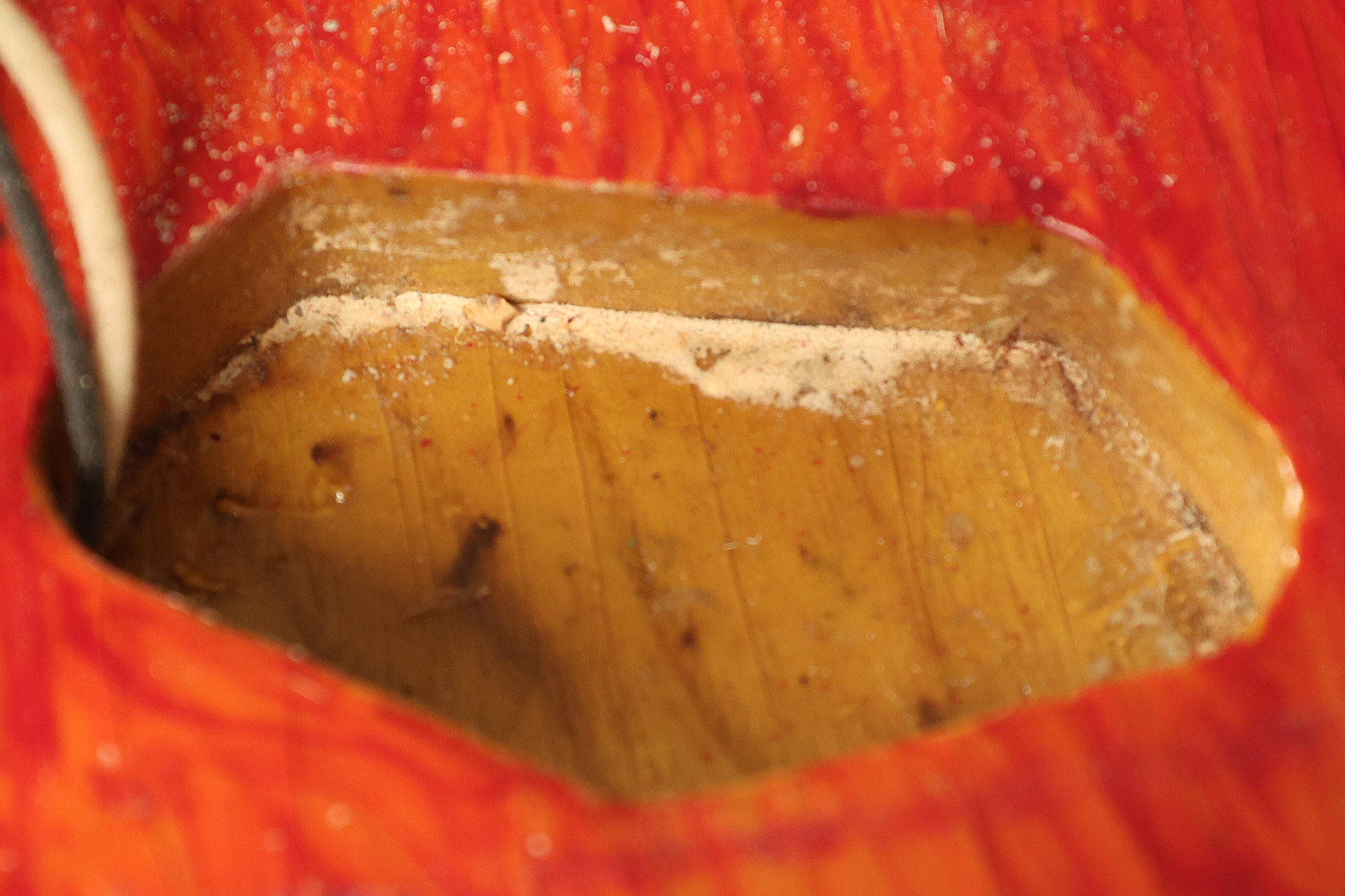 1957 Fender Telecaster with a refinished neck and a poorly refinished body. It has a great playing neck with good frets as it has been refretted. Changed parts include the tuning keys, switch, one capacitor (one is missing), the nut and some of the screws. The original pickugard has been oversprayed and has a crack through one corner. The neck position pickup has some traces of blue on the underside and on the original wires which have been extended. The bridge position pickup has been rewound. All electronics work and sound great. The tone pot sounds a little dirty when it's turned all the way down. The lower screw for the control cavity does not have enough wood on the edge of the cavity to firmly grab, so it is rather loose. There are lots of nicks + dings, finish cracks and other cosmetic wear. The guitar itself remains structurally sound. The weight is 7 lbs. 3.4 oz. The original tweed hardshell case is included, but it is in poor condition with patched areas, one broken latch and the side pocket and neck rest was replaced with one from a later 1960's Fender case.