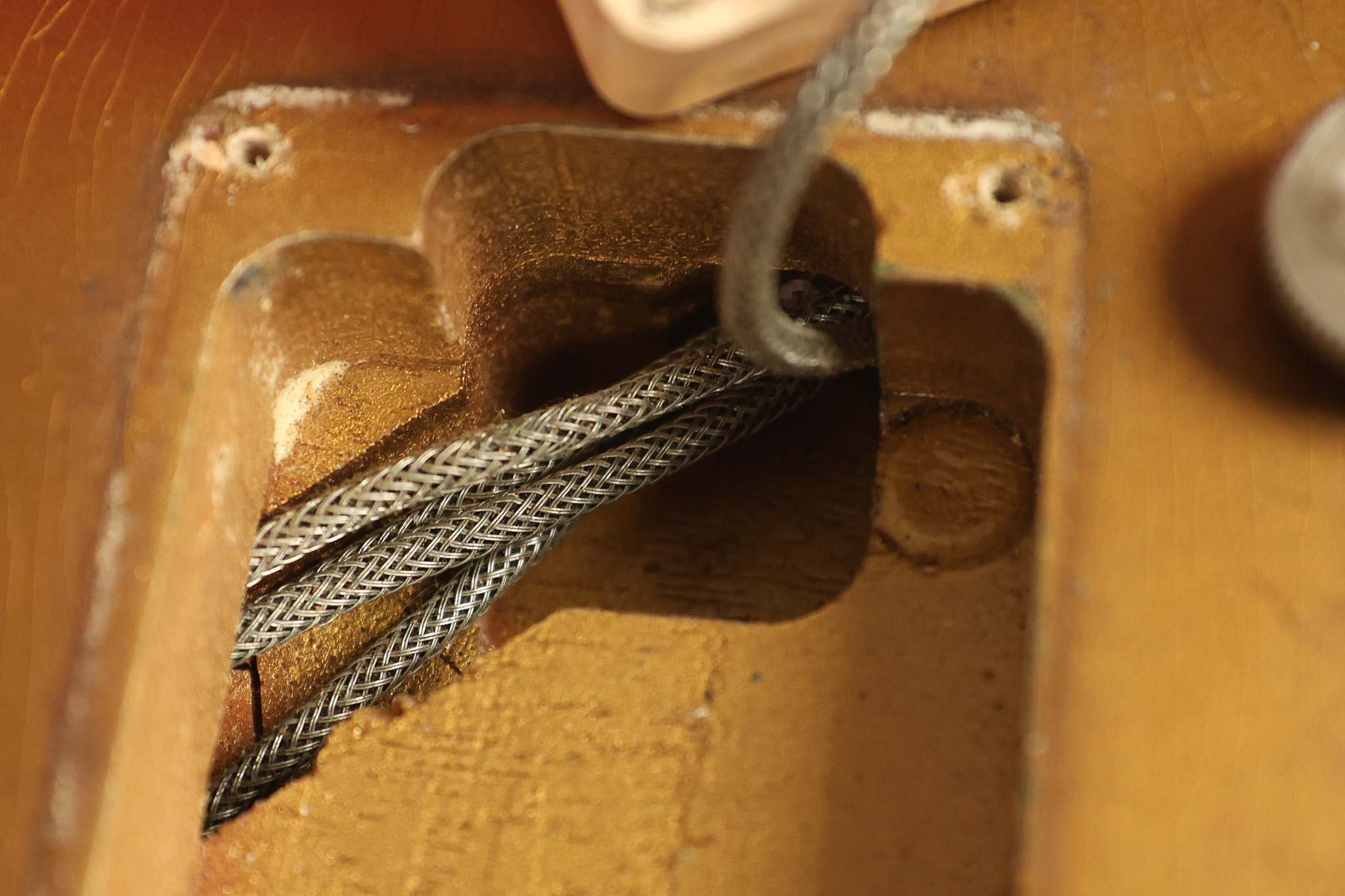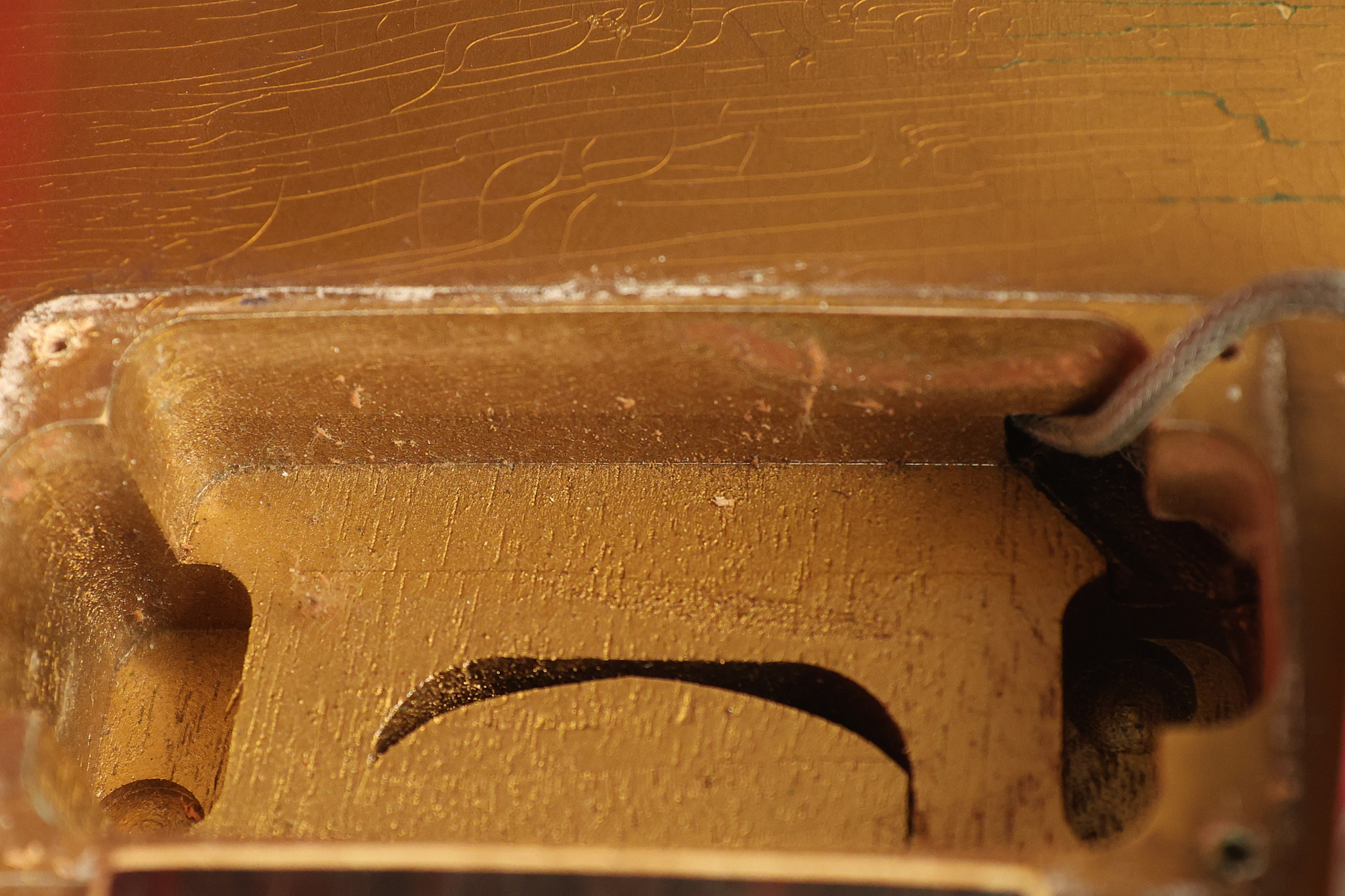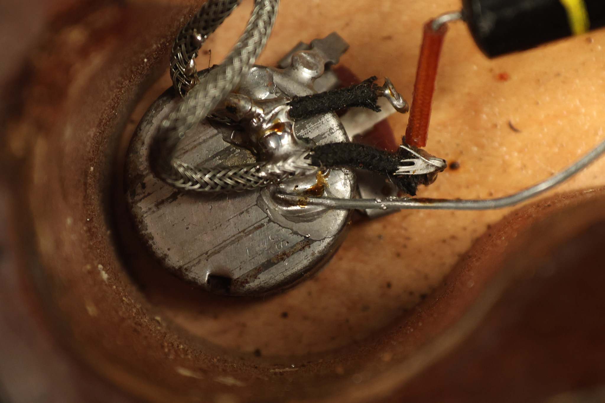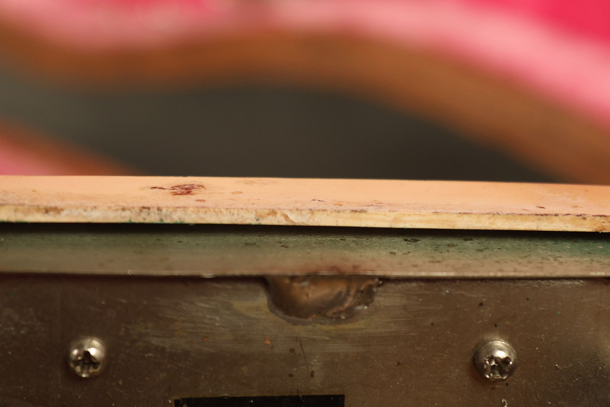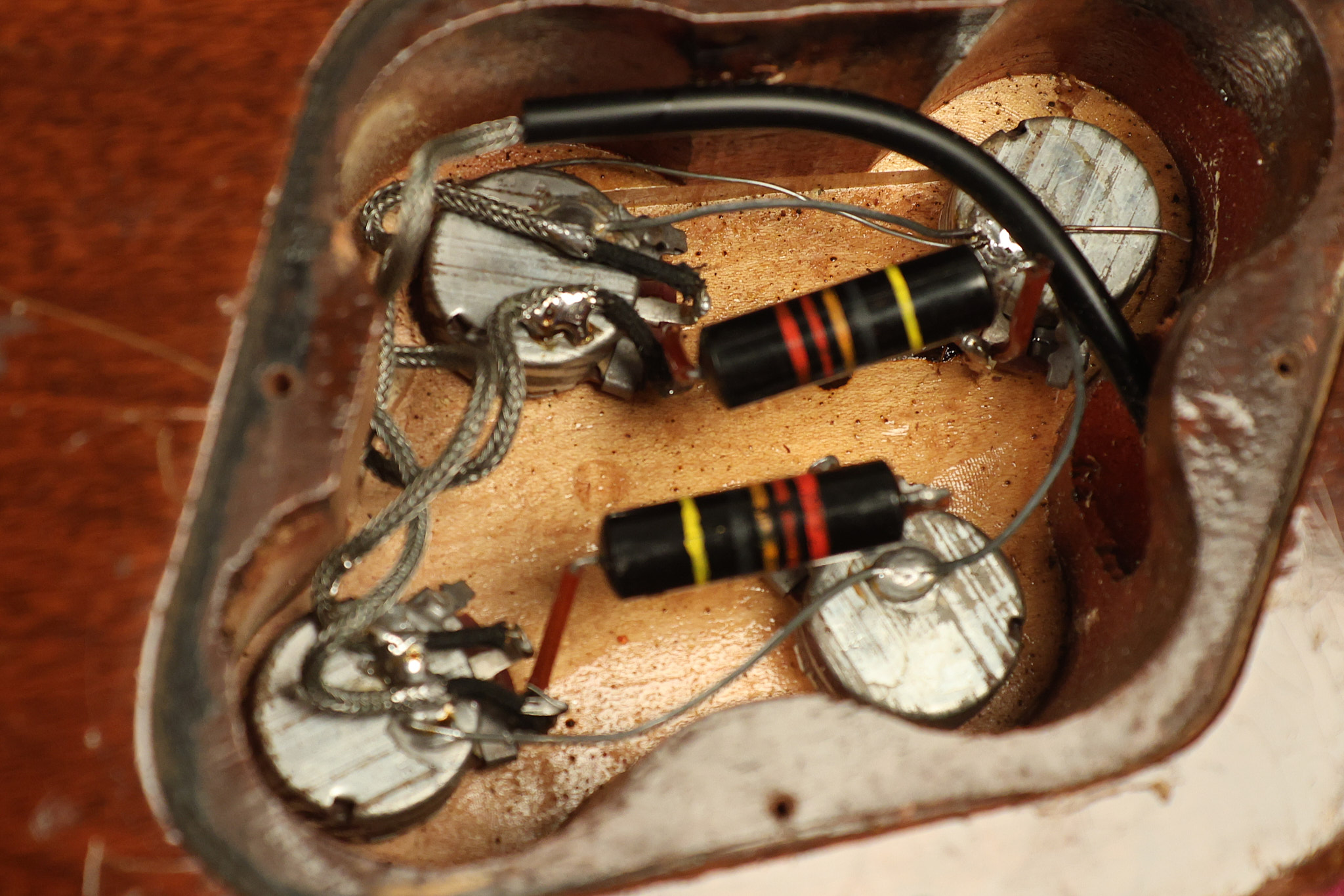 1957 Gibson Les Paul Goldtop in its original Gold top and dark back finish. It has a good playing neck with good frets. It's all original with the exception of one of  the bridge saddles and its screw (the A string saddle). It is also 100% complete along with its original hardshell case. This Les Paul looks great with lots of nicks + dings, finish checking, belt buckle wear, cracked plastic jack plate and other cosmetic wear. The guitar itself remains structurally sound with no cracks, breaks or repairs. As for the electronics, a repair was made on one coil of the bridge position pickup. It was not rewound, but had a connection break in the coil near the surface of the coil winding which has been reattached. All electronics work and sound great with its original set of PAF pickups. The weight is 8 lbs. 12 oz.
