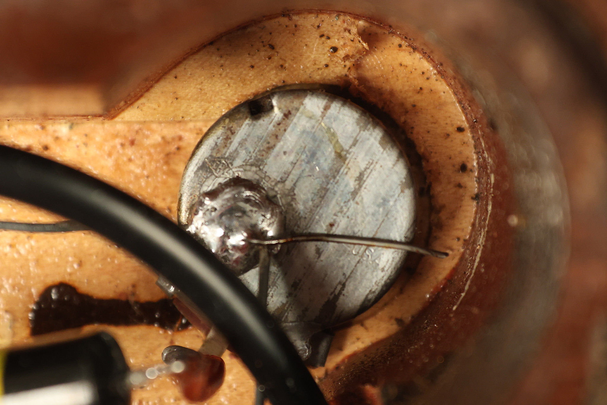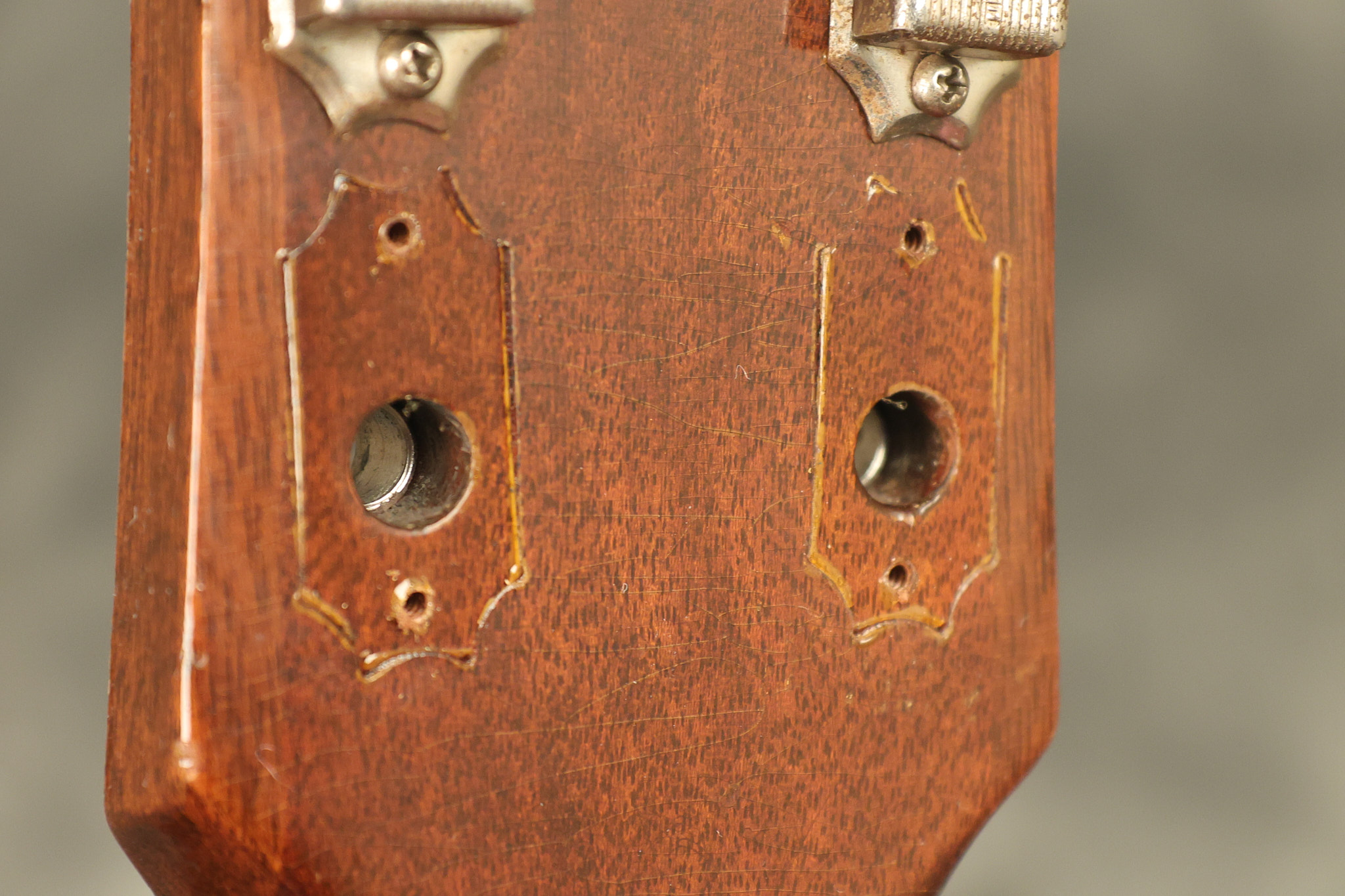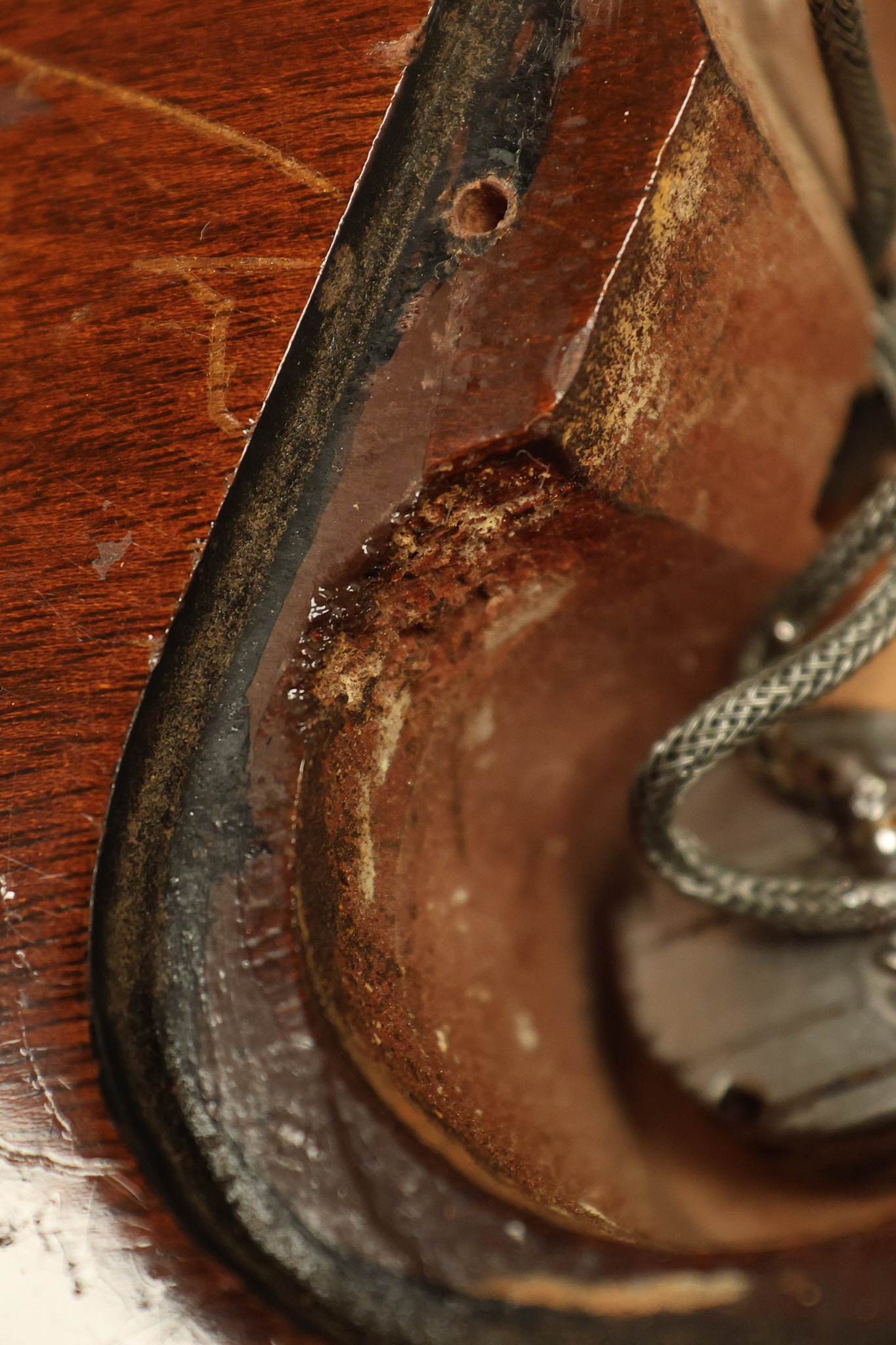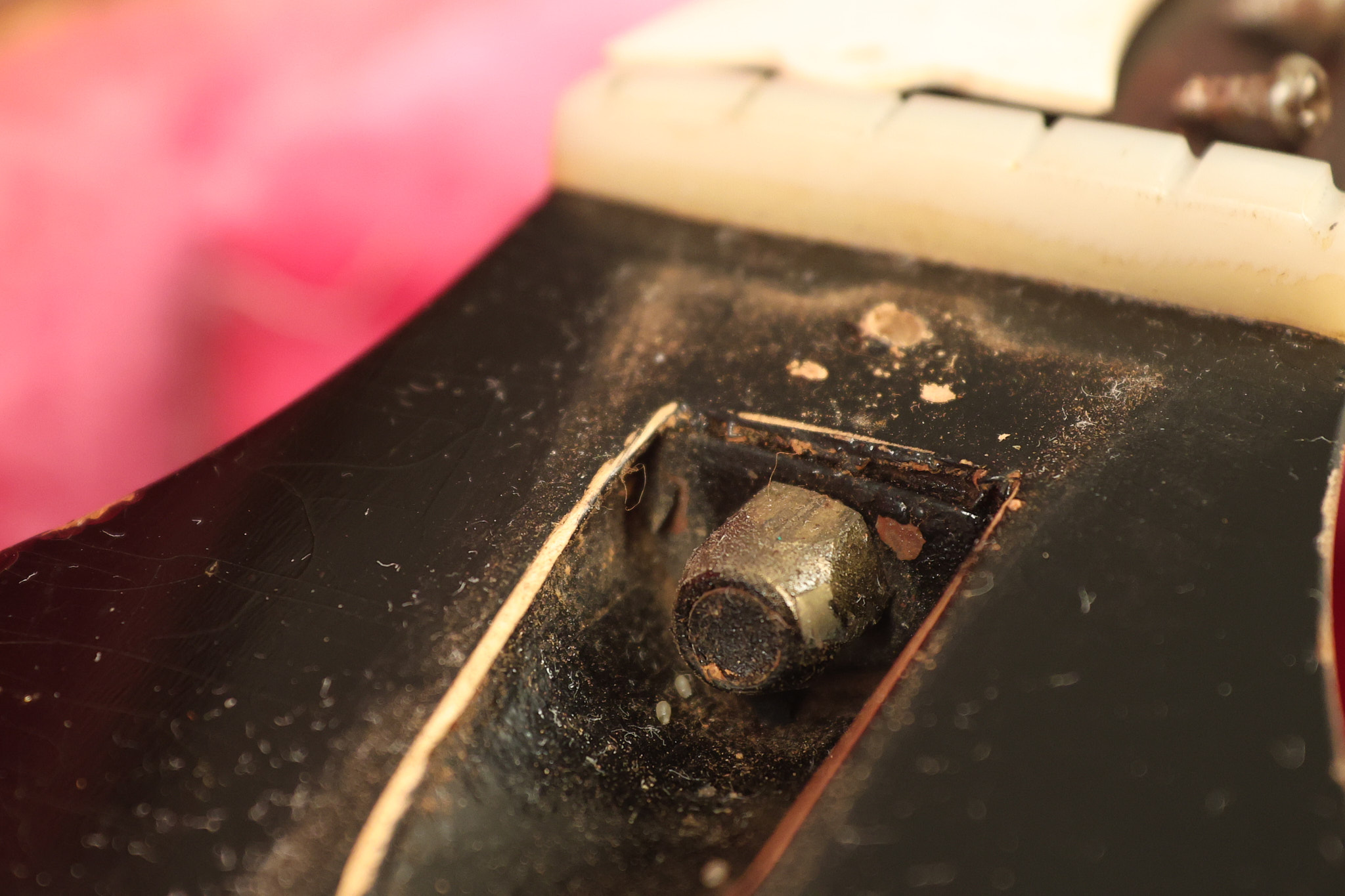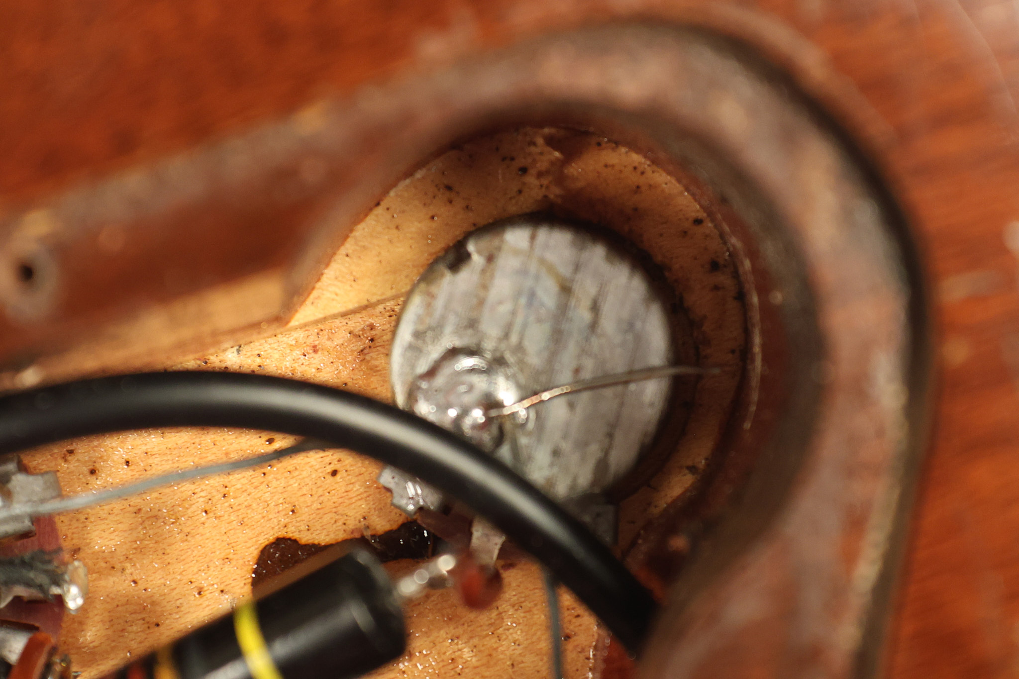 1957 Gibson Les Paul Goldtop in its original Gold top and dark back finish. It has a good playing neck with good frets. It's all original with the exception of one of  the bridge saddles and its screw (the A string saddle). It is also 100% complete along with its original hardshell case. This Les Paul looks great with lots of nicks + dings, finish checking, belt buckle wear, cracked plastic jack plate and other cosmetic wear. The guitar itself remains structurally sound with no cracks, breaks or repairs. As for the electronics, a repair was made on one coil of the bridge position pickup. It was not rewound, but had a connection break in the coil near the surface of the coil winding which has been reattached. All electronics work and sound great with its original set of PAF pickups. The weight is 8 lbs. 12 oz.