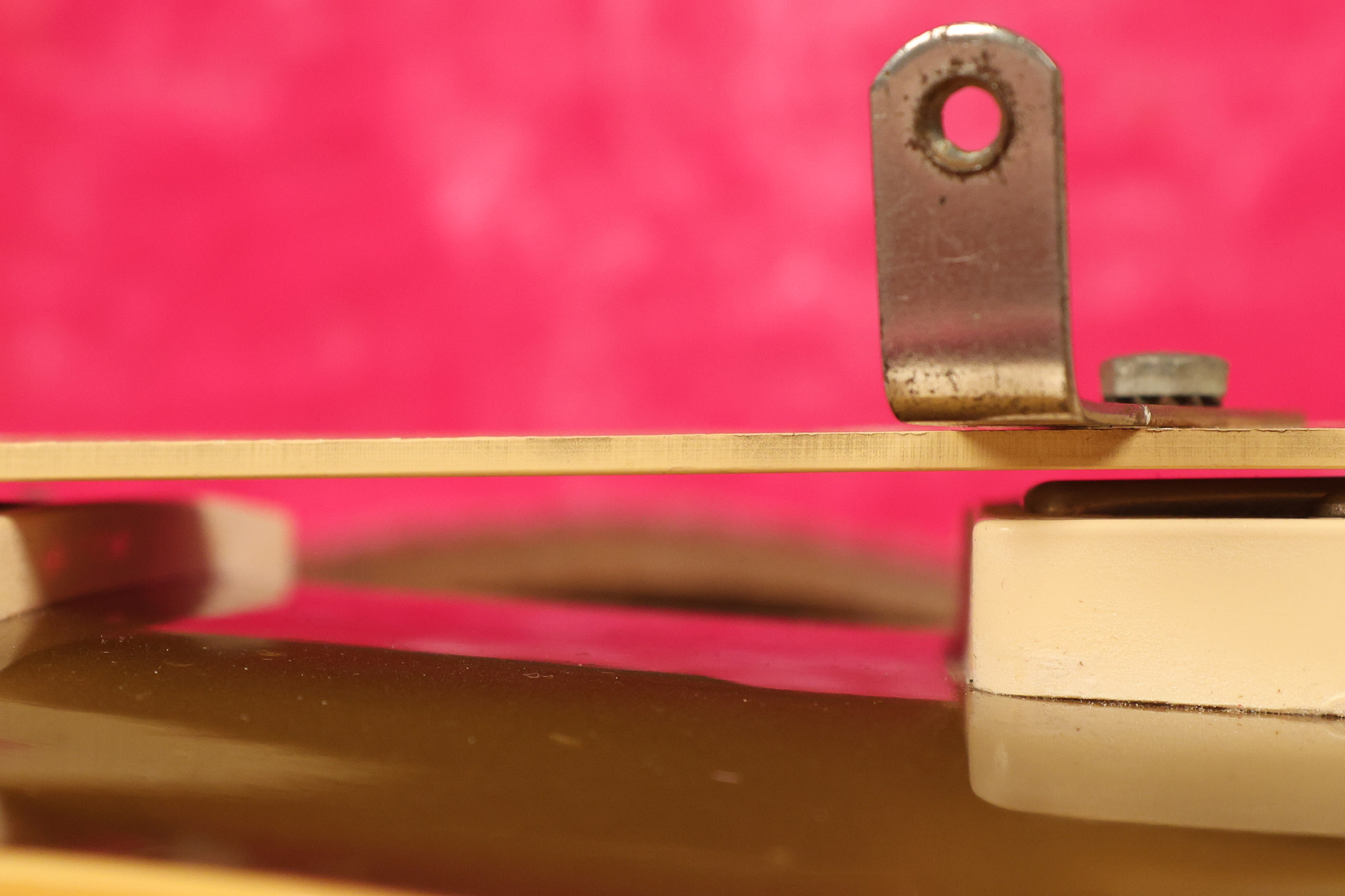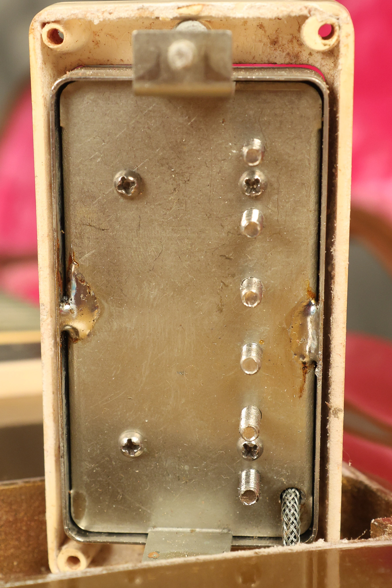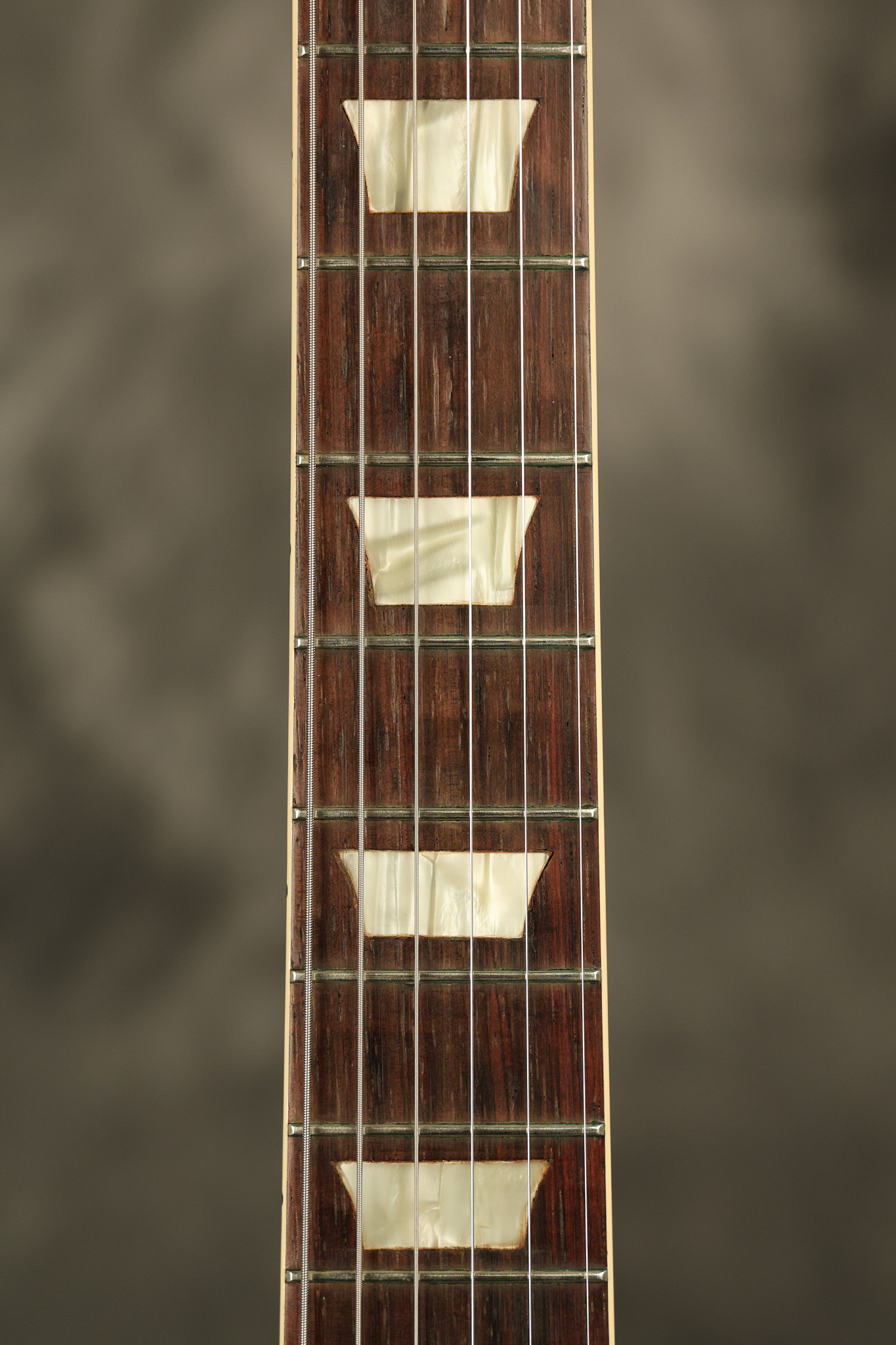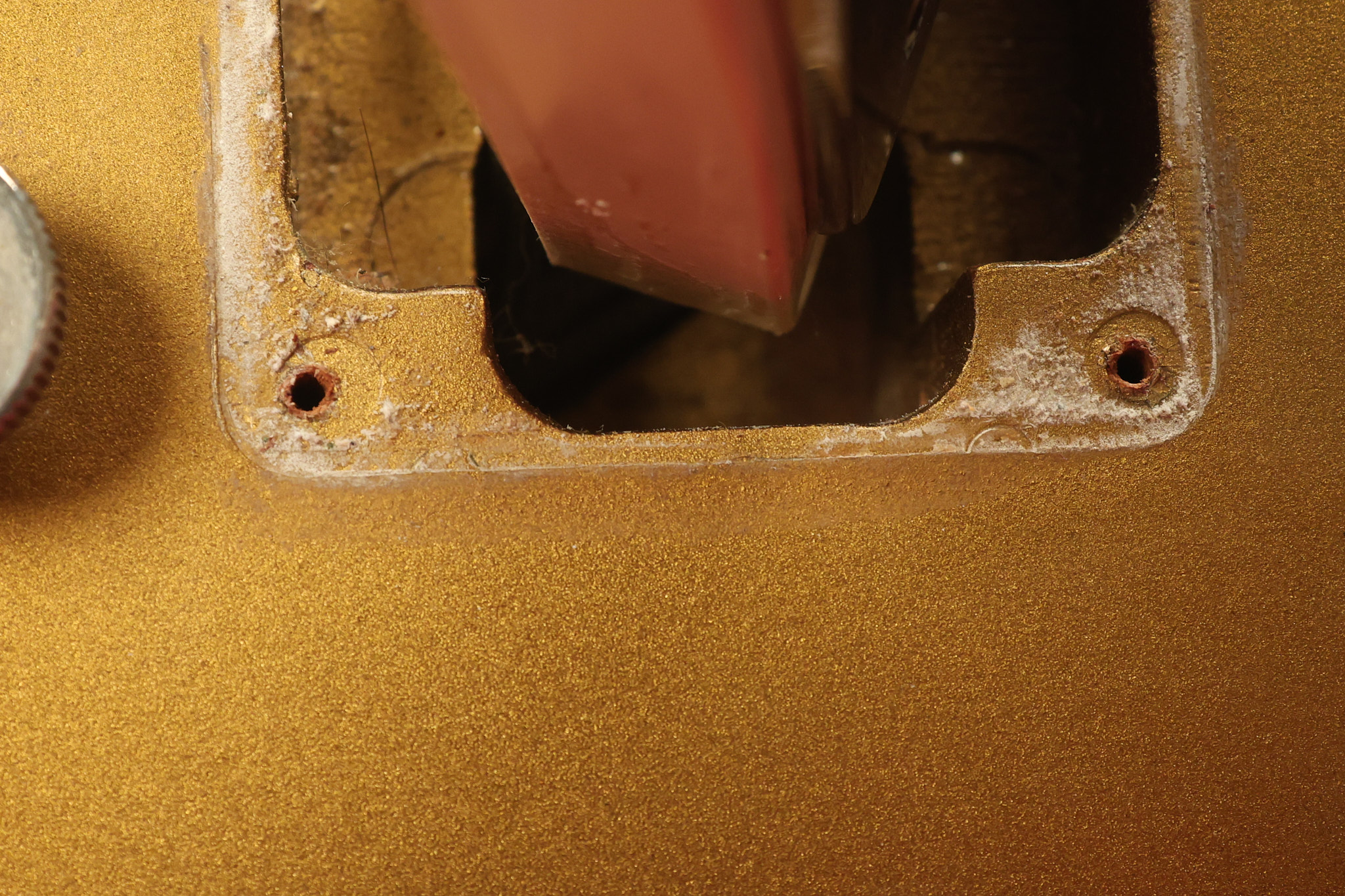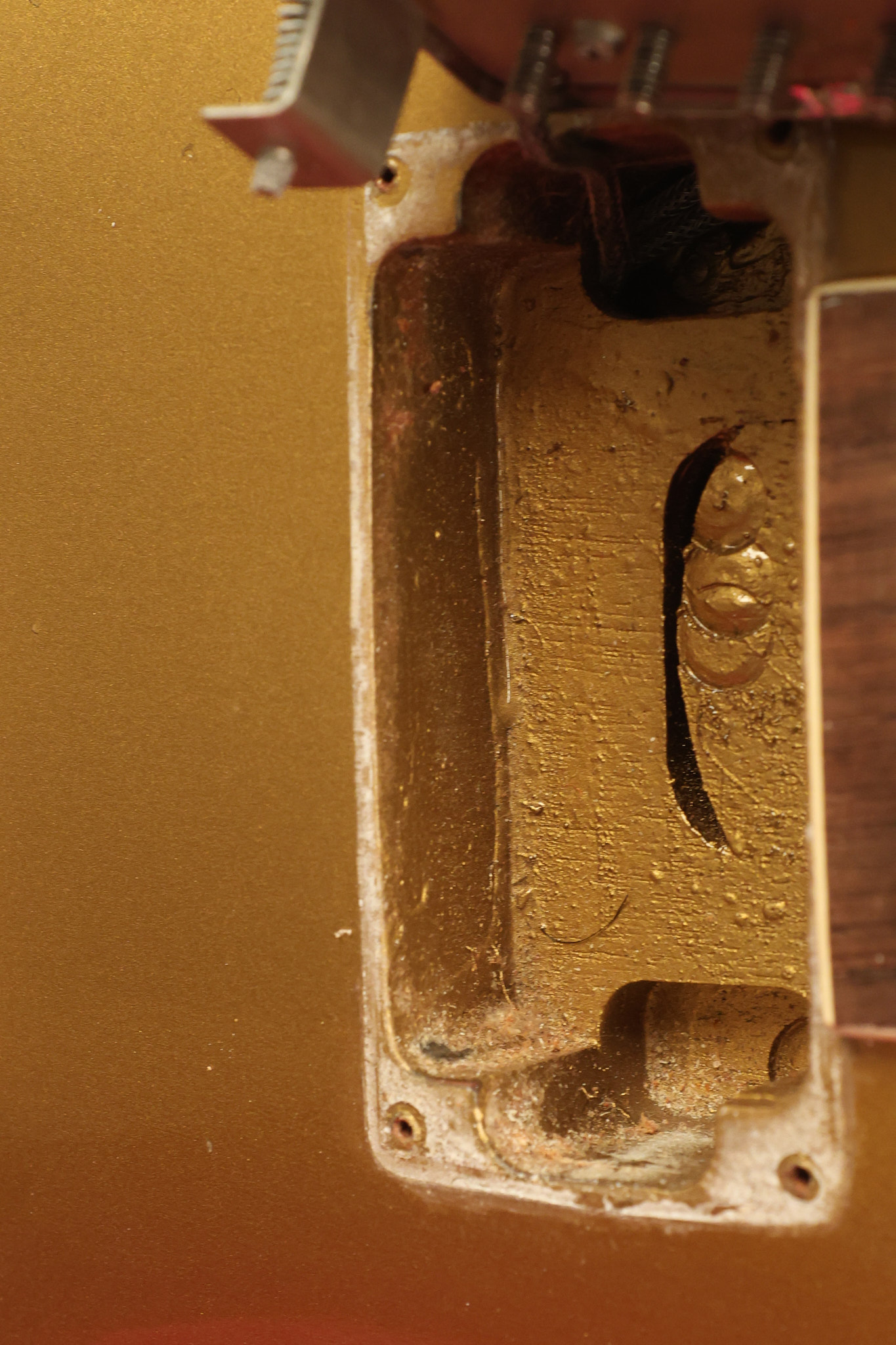 1957 Gibson Les Paul Goldtop with a rare carved top one-piece solid mahogany body in its original Goldtop finish. It has a great playing neck with great frets. It's all original and 100% complete along with its original hardshell case and Les Paul HANG TAG. It's in EXCELLENT condition with minor nicks + dings, very light belt buckle wear on the back of the body, a few minor finish cracks and other minor cosmetic wear including some nicks + dings around the top edges of the headstock that have been touched-up. The guitar itself remains structurally sound with no cracks, breaks or repairs. All electronics work and sound great with its original set of early PAF pickups. The cover for the neck position pickup is removable as the inside edge is not attached to the solder. All solder in the control cavities remain original and untampered with.