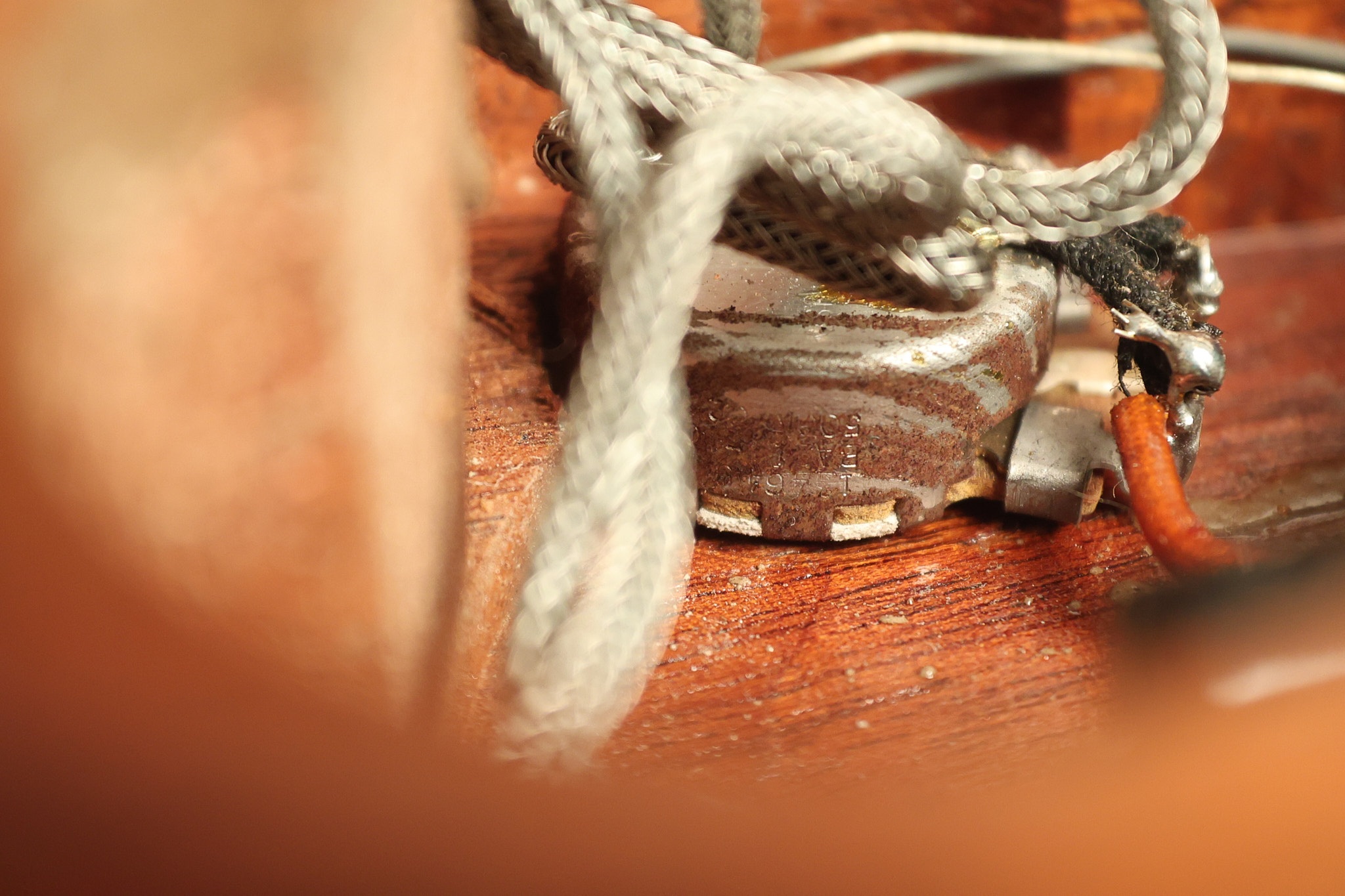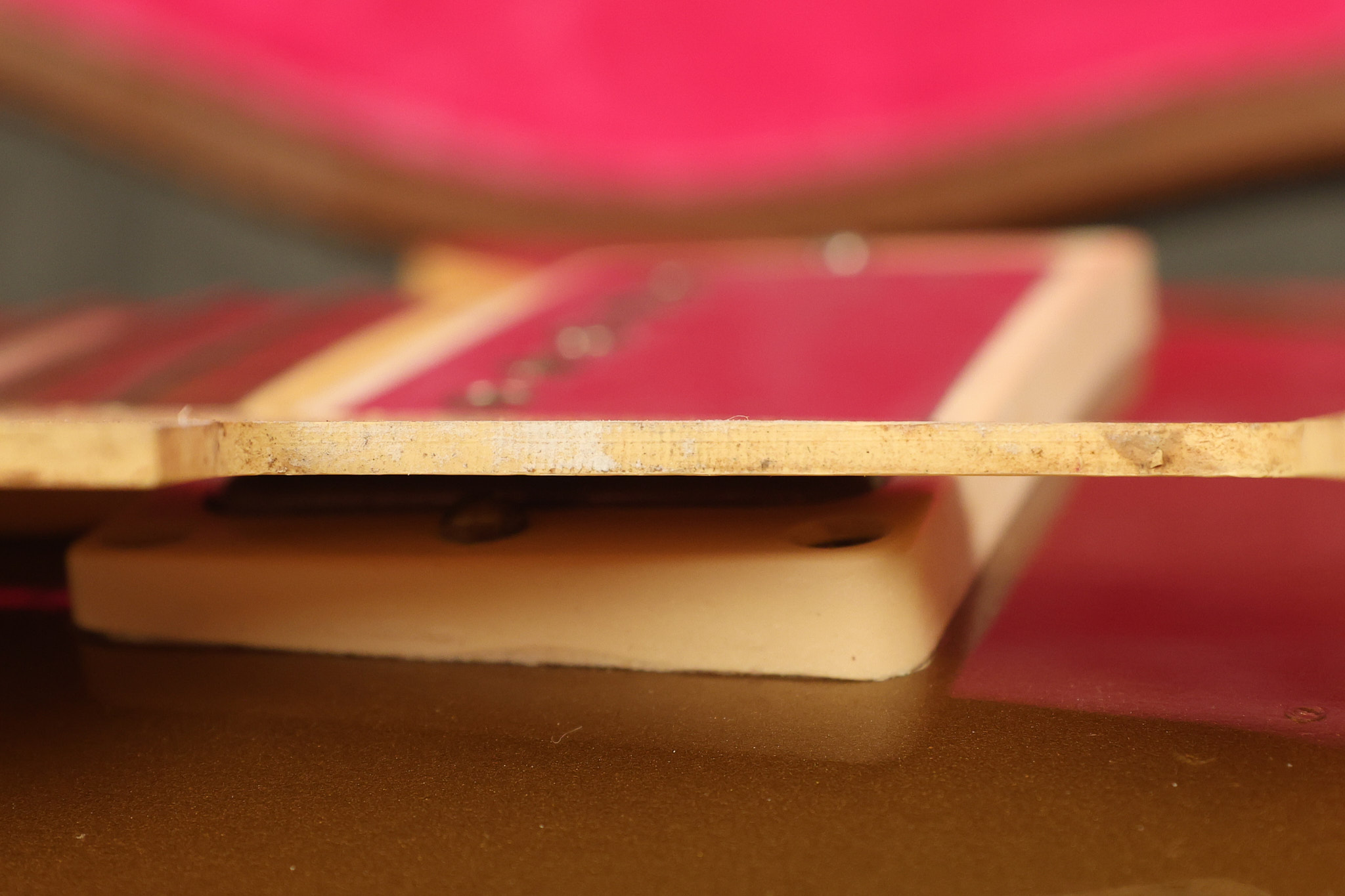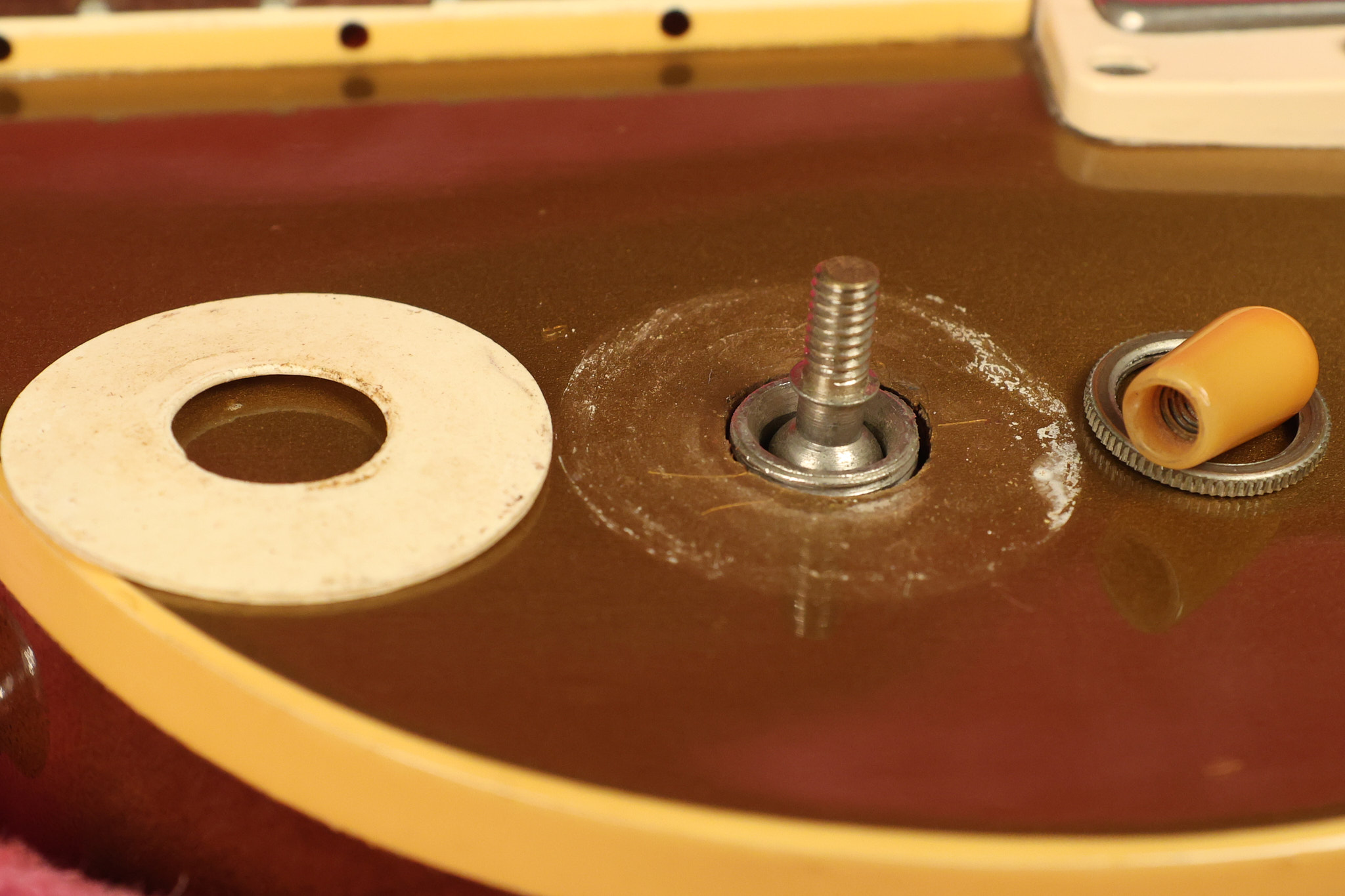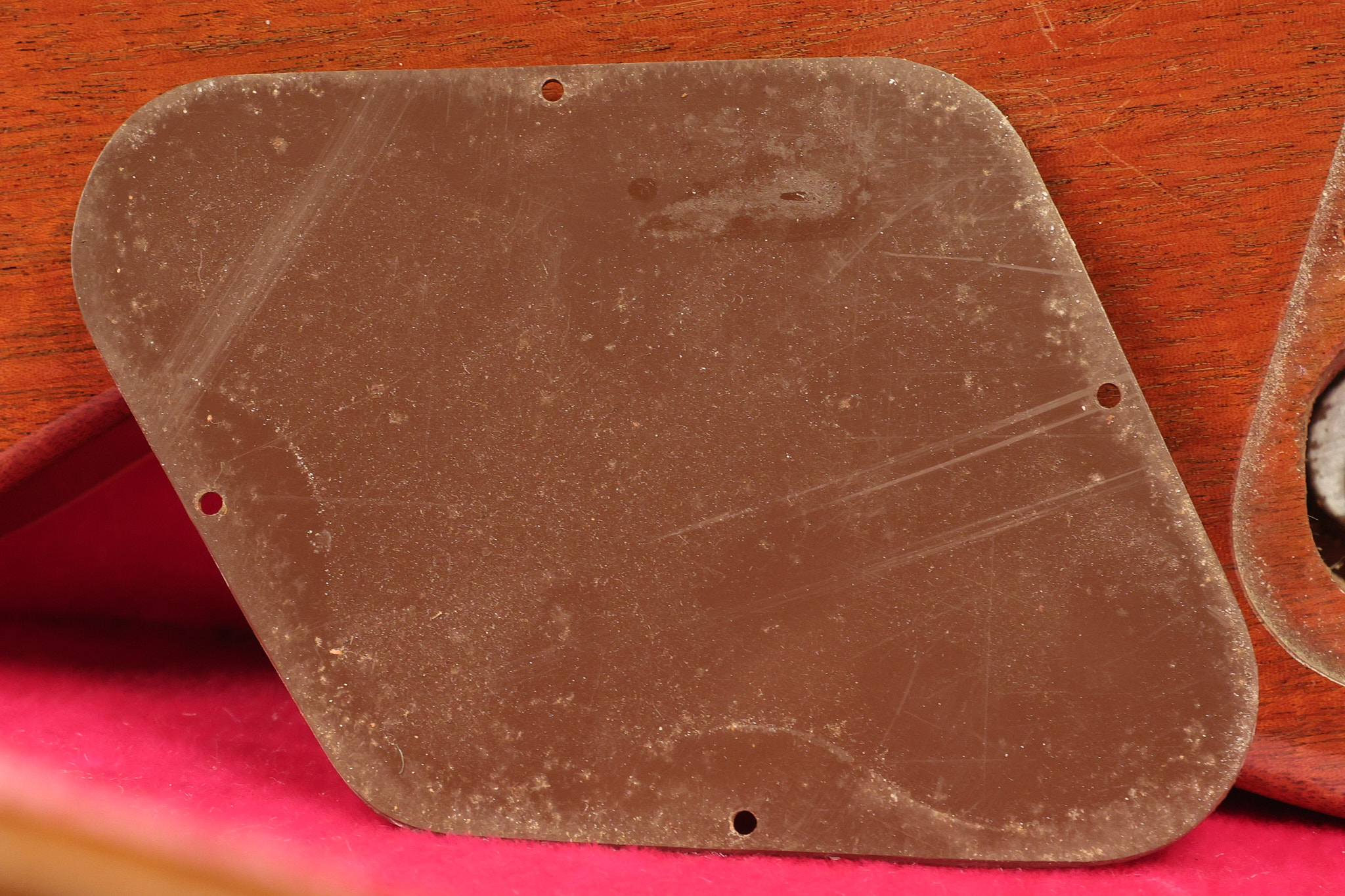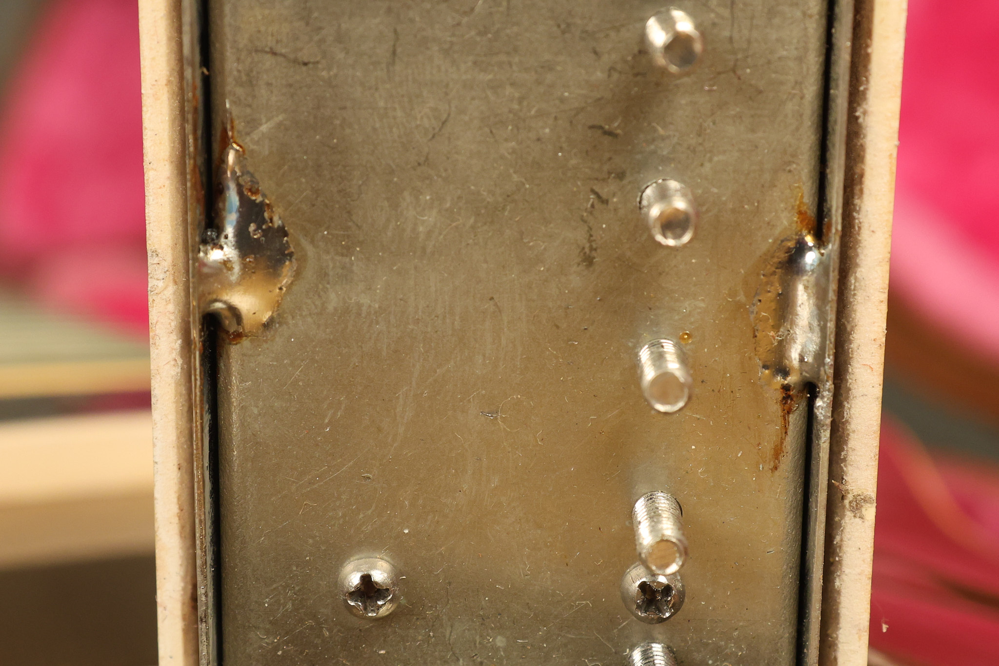 1957 Gibson Les Paul Goldtop with a rare carved top one-piece solid mahogany body in its original Goldtop finish. It has a great playing neck with great frets. It's all original and 100% complete along with its original hardshell case and Les Paul HANG TAG. It's in EXCELLENT condition with minor nicks + dings, very light belt buckle wear on the back of the body, a few minor finish cracks and other minor cosmetic wear including some nicks + dings around the top edges of the headstock that have been touched-up. The guitar itself remains structurally sound with no cracks, breaks or repairs. All electronics work and sound great with its original set of early PAF pickups. The cover for the neck position pickup is removable as the inside edge is not attached to the solder. All solder in the control cavities remain original and untampered with.