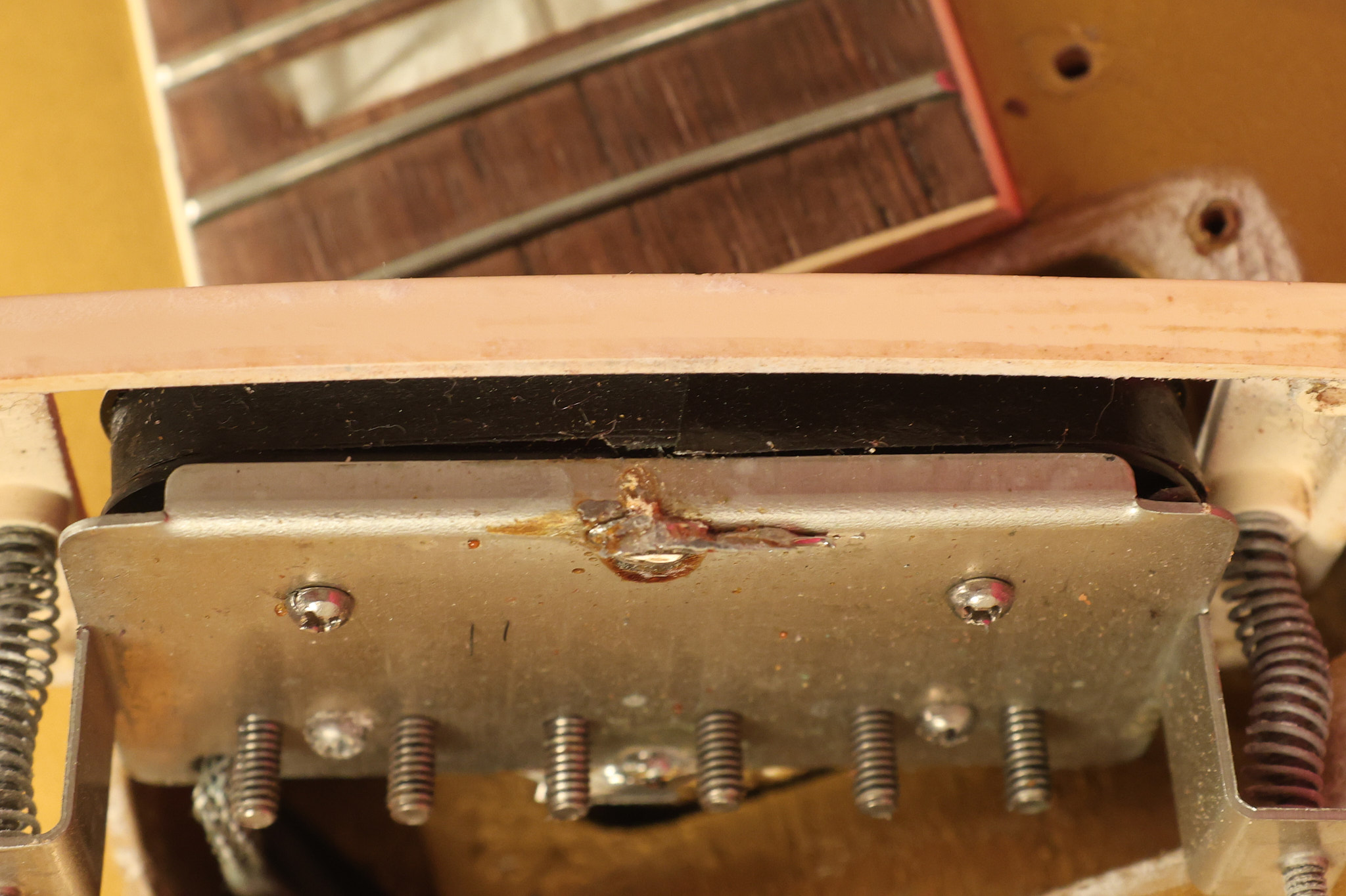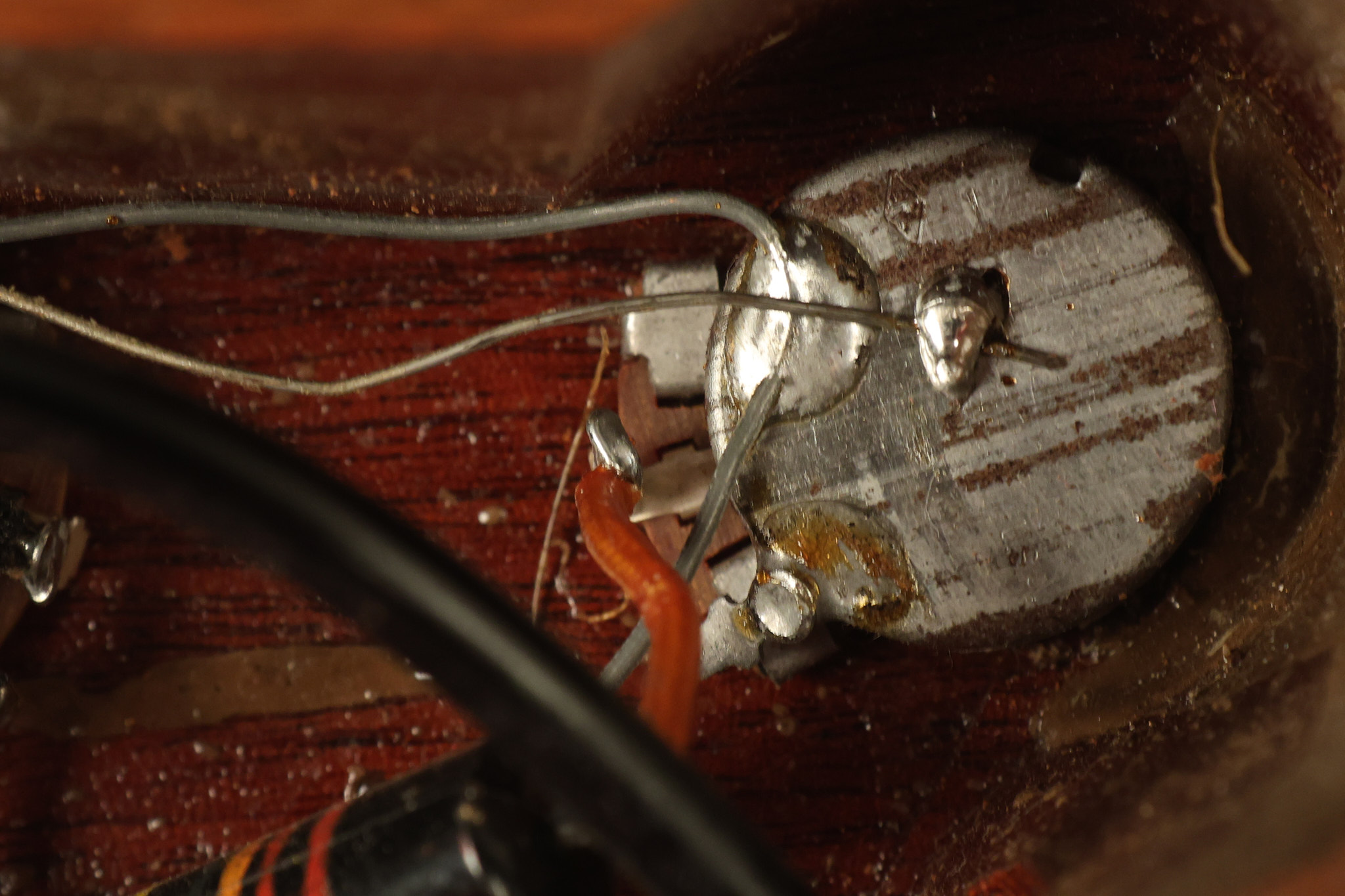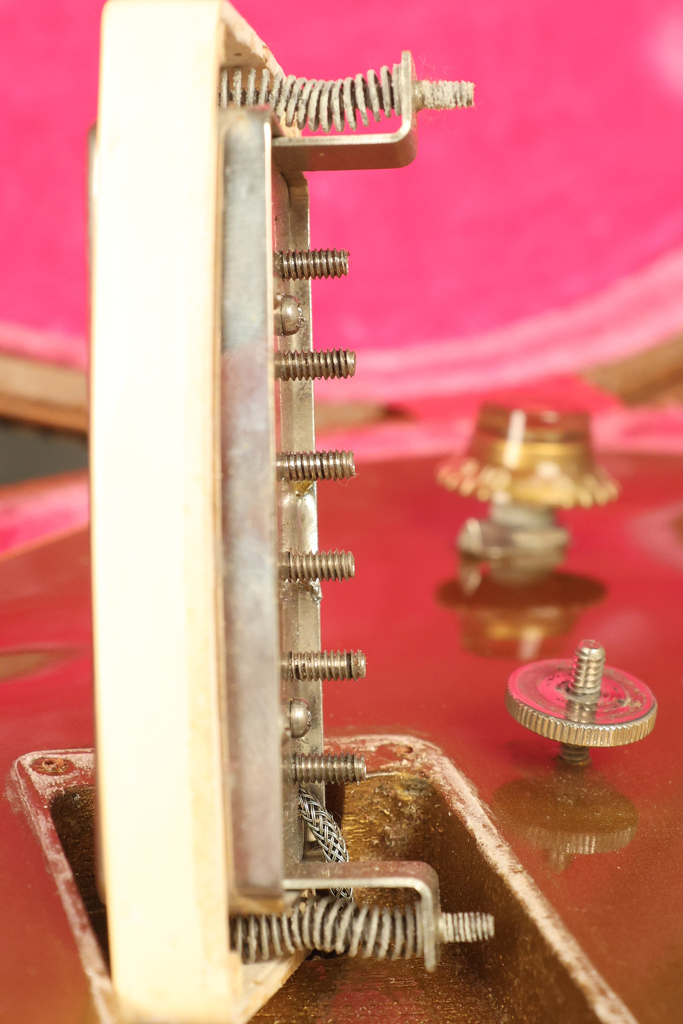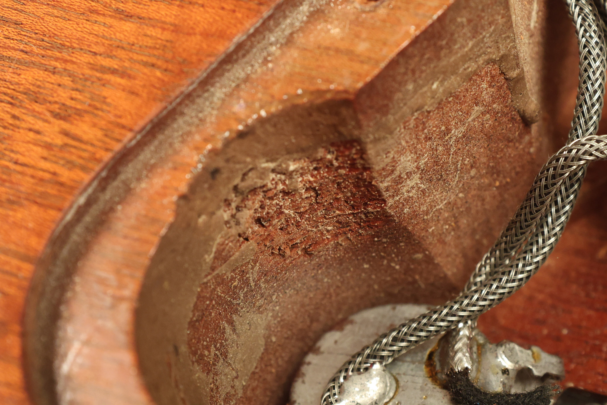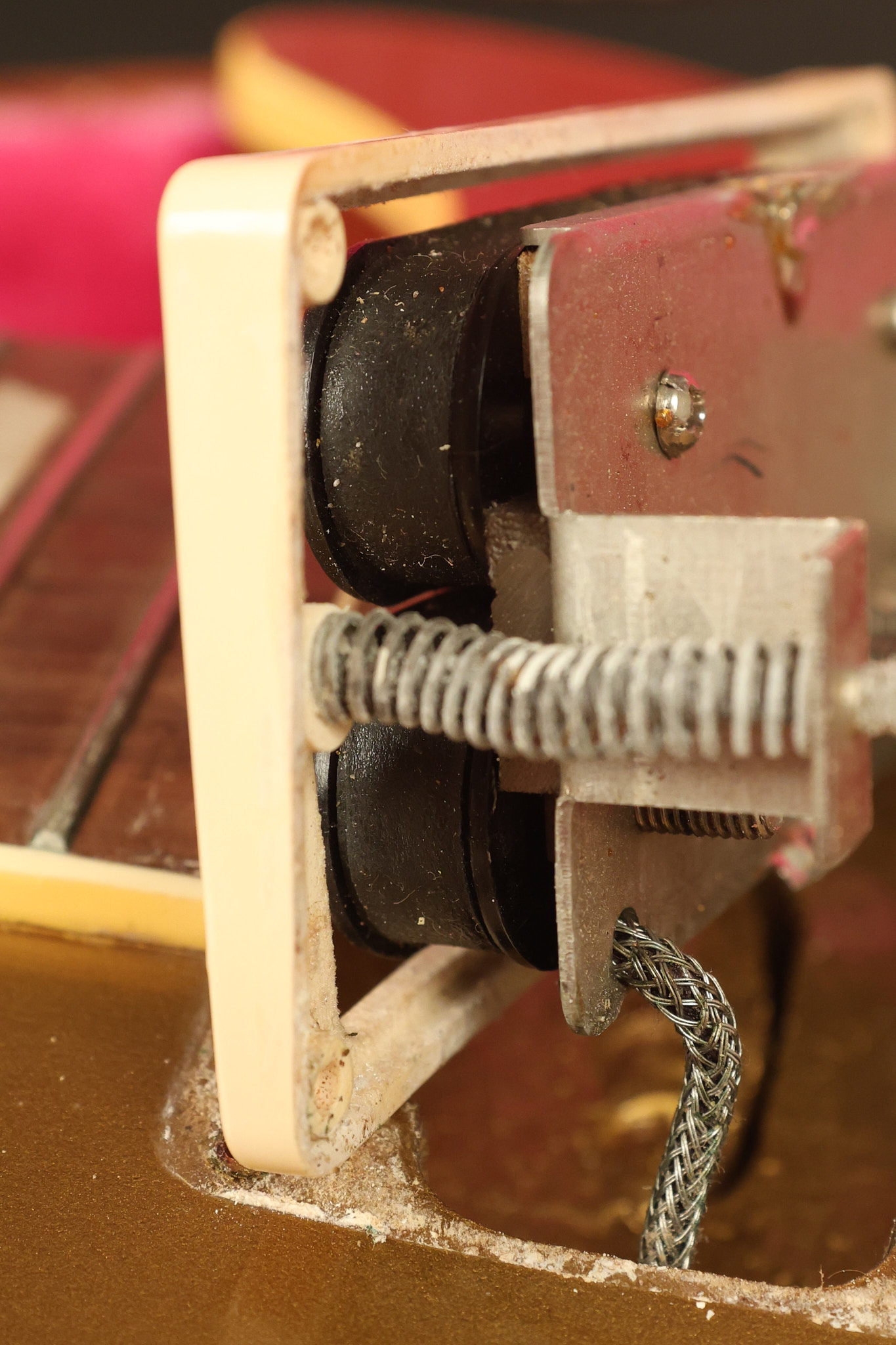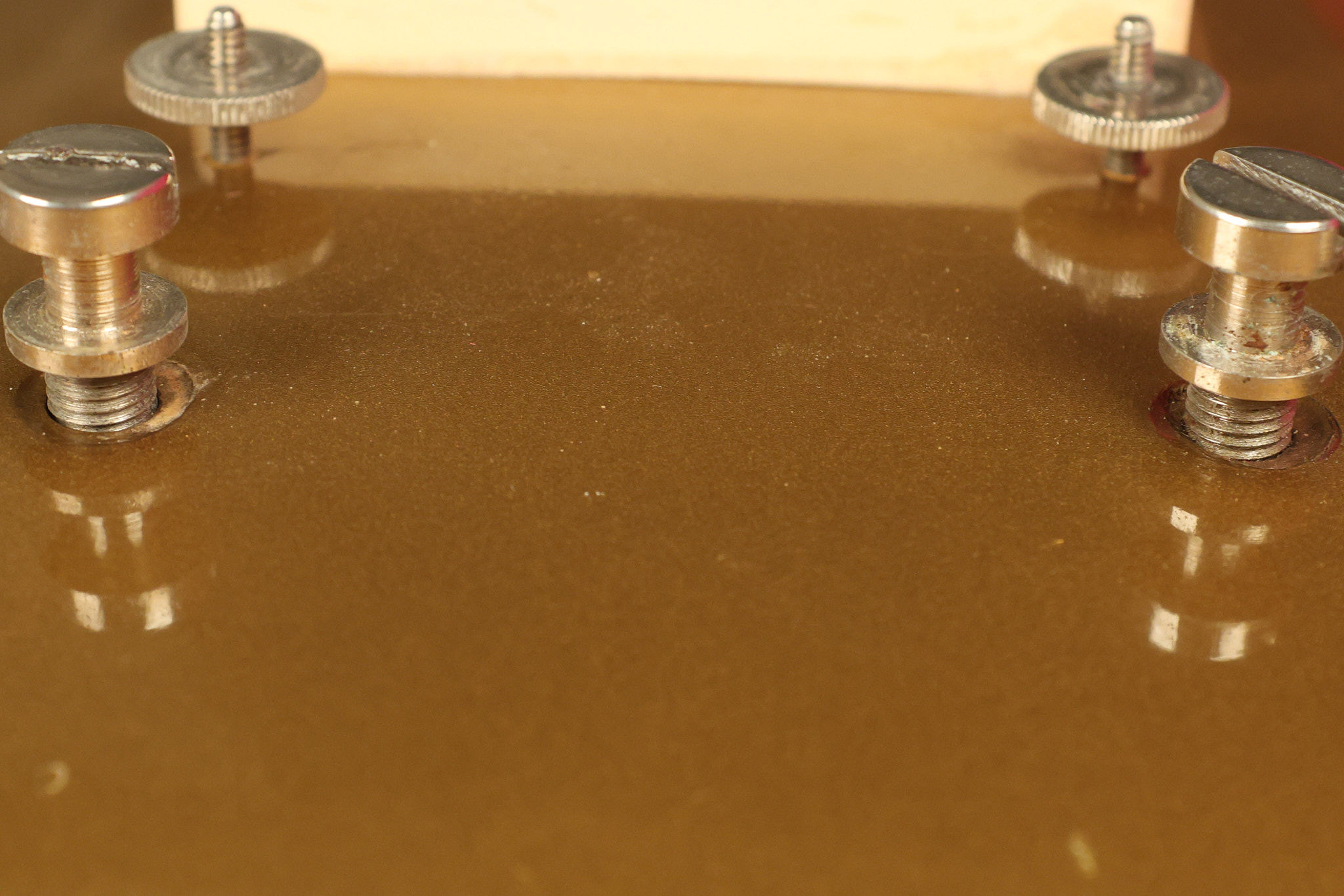 1957 Gibson Les Paul Goldtop with a rare carved top one-piece solid mahogany body in its original Goldtop finish. It has a great playing neck with great frets. It's all original and 100% complete along with its original hardshell case and Les Paul HANG TAG. It's in EXCELLENT condition with minor nicks + dings, very light belt buckle wear on the back of the body, a few minor finish cracks and other minor cosmetic wear including some nicks + dings around the top edges of the headstock that have been touched-up. The guitar itself remains structurally sound with no cracks, breaks or repairs. All electronics work and sound great with its original set of early PAF pickups. The cover for the neck position pickup is removable as the inside edge is not attached to the solder. All solder in the control cavities remain original and untampered with.
