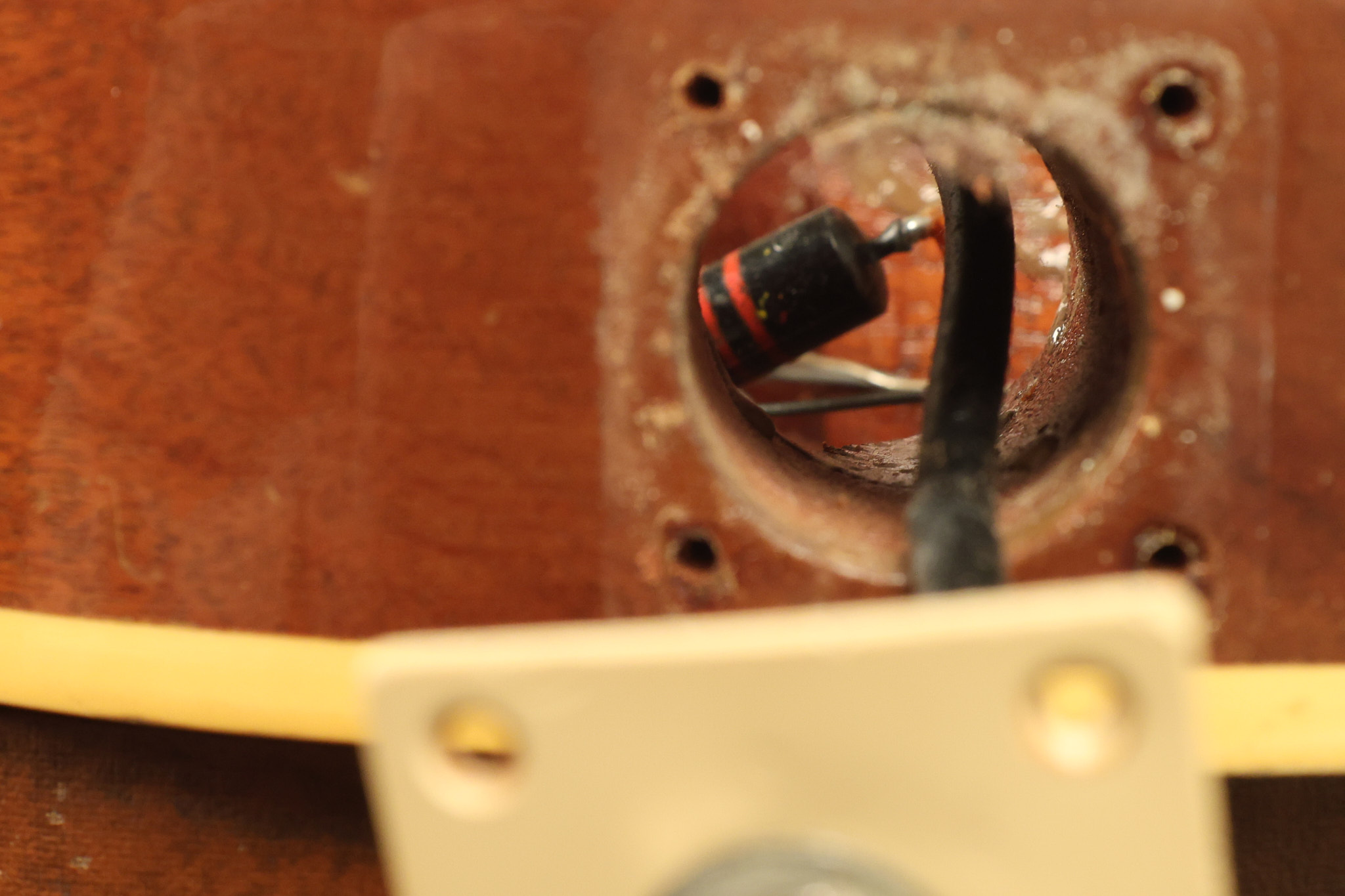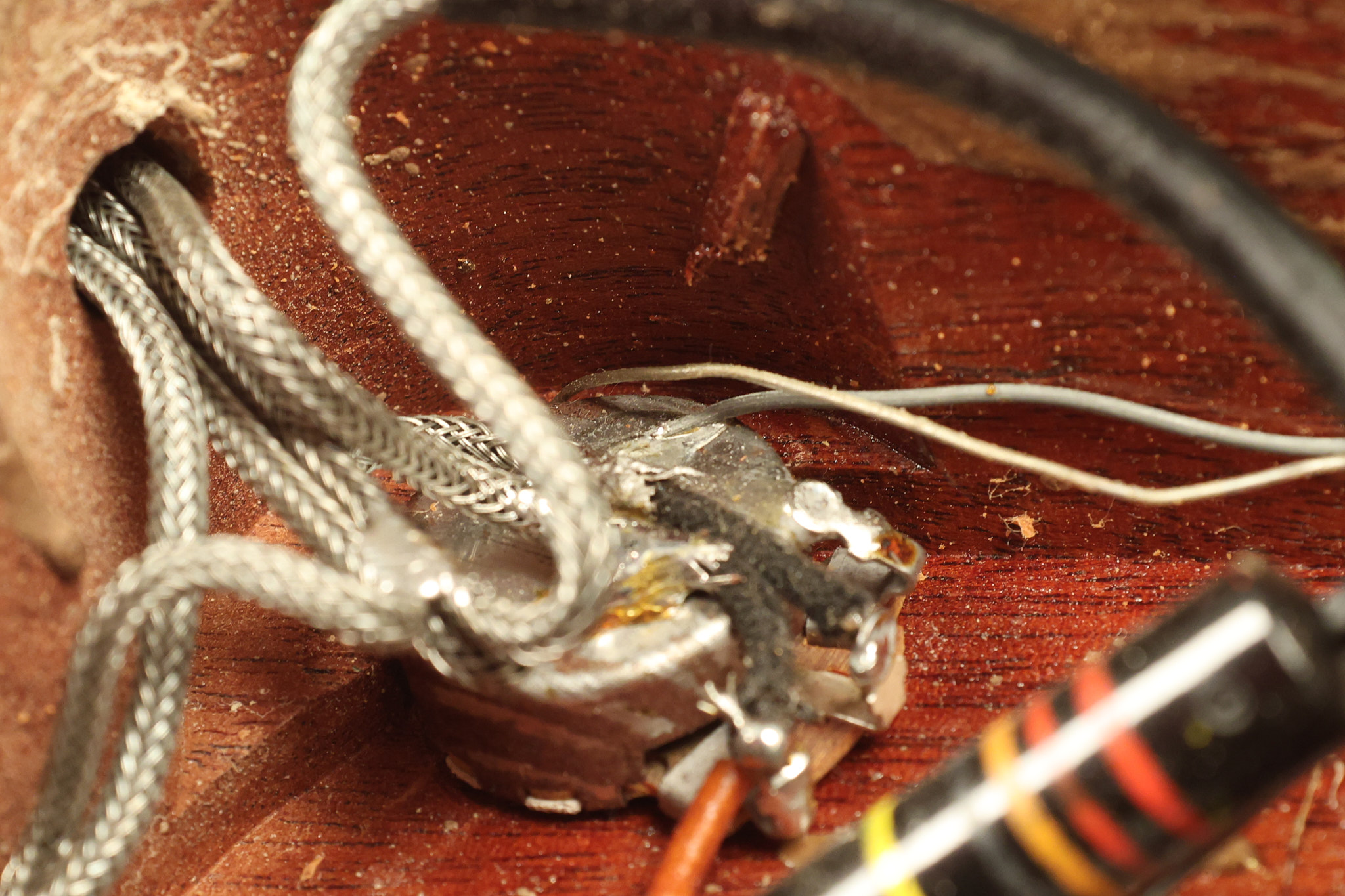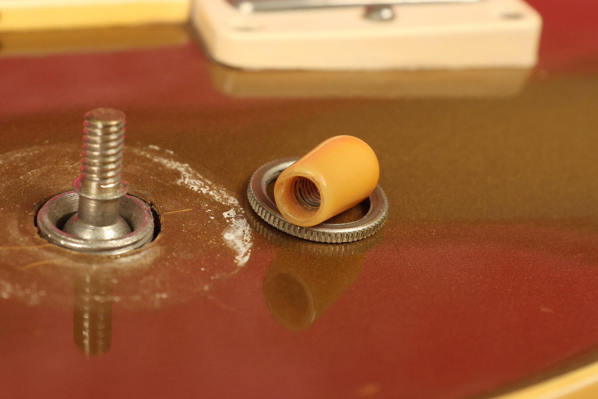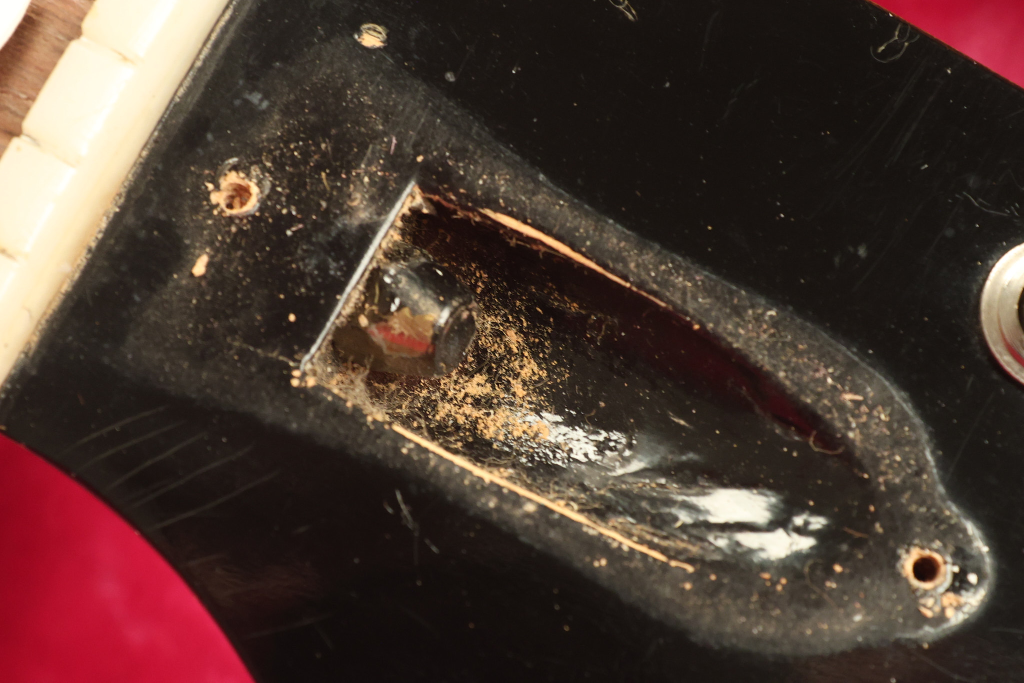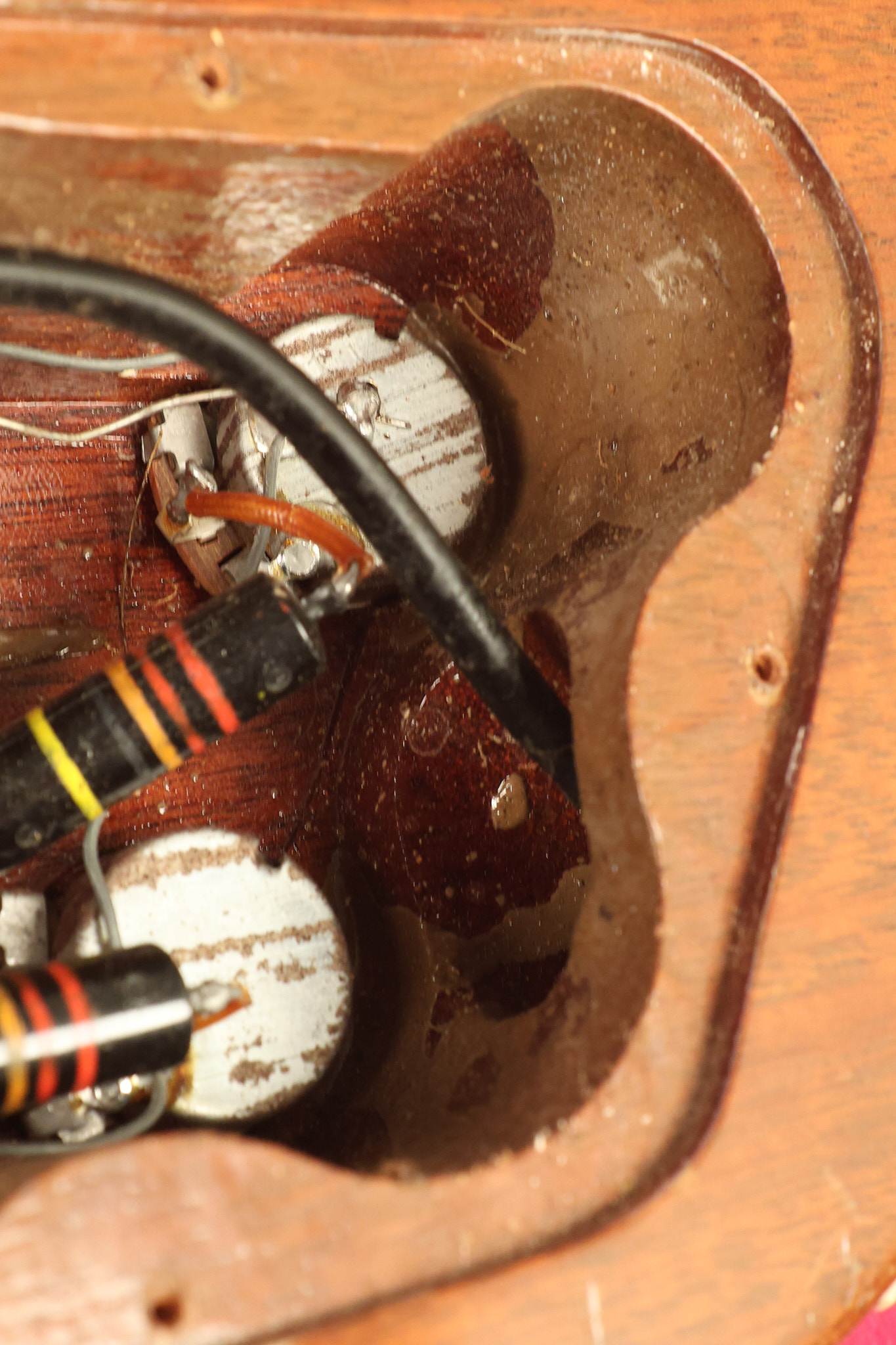 1957 Gibson Les Paul Goldtop with a rare carved top one-piece solid mahogany body in its original Goldtop finish. It has a great playing neck with great frets. It's all original and 100% complete along with its original hardshell case and Les Paul HANG TAG. It's in EXCELLENT condition with minor nicks + dings, very light belt buckle wear on the back of the body, a few minor finish cracks and other minor cosmetic wear including some nicks + dings around the top edges of the headstock that have been touched-up. The guitar itself remains structurally sound with no cracks, breaks or repairs. All electronics work and sound great with its original set of early PAF pickups. The cover for the neck position pickup is removable as the inside edge is not attached to the solder. All solder in the control cavities remain original and untampered with.