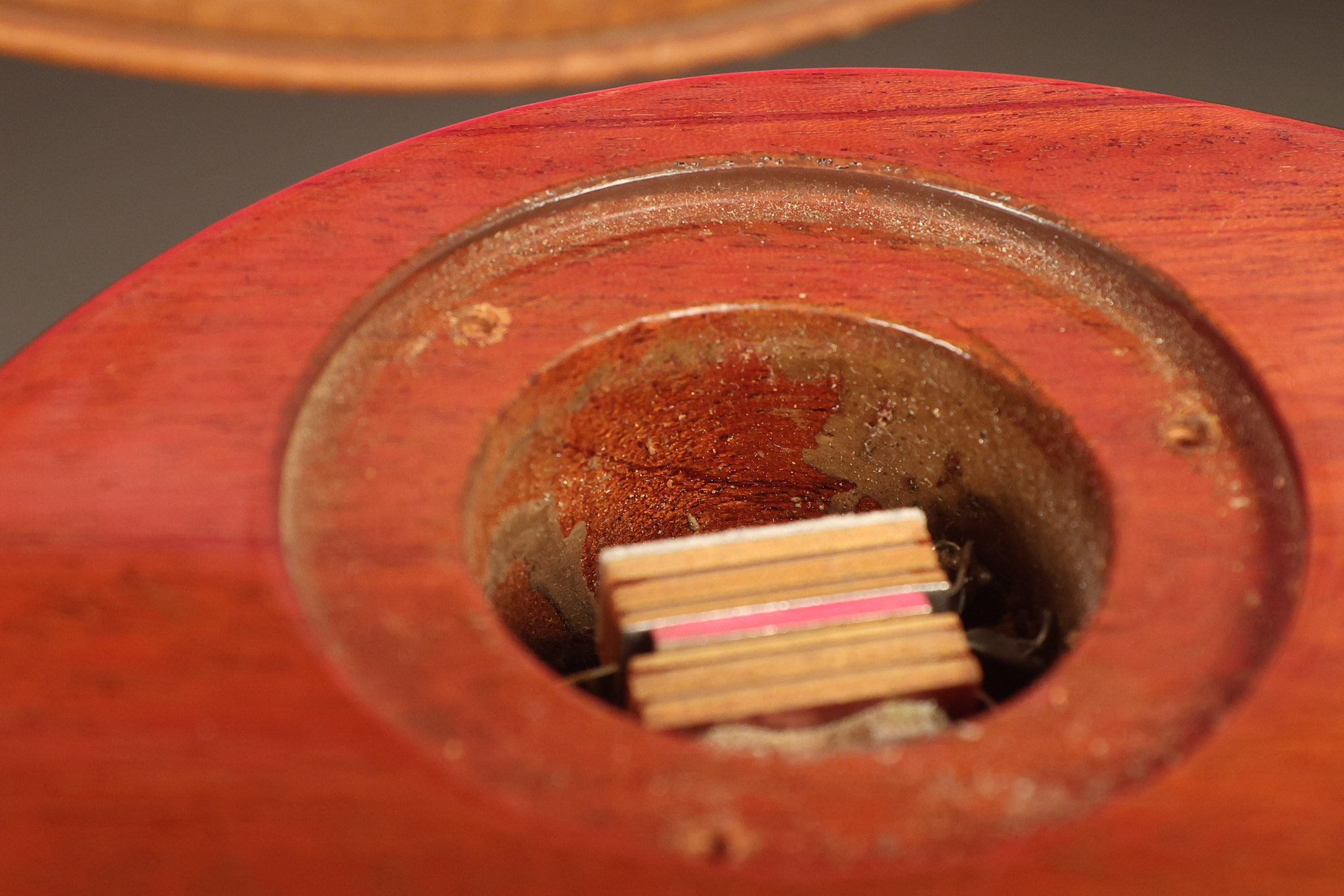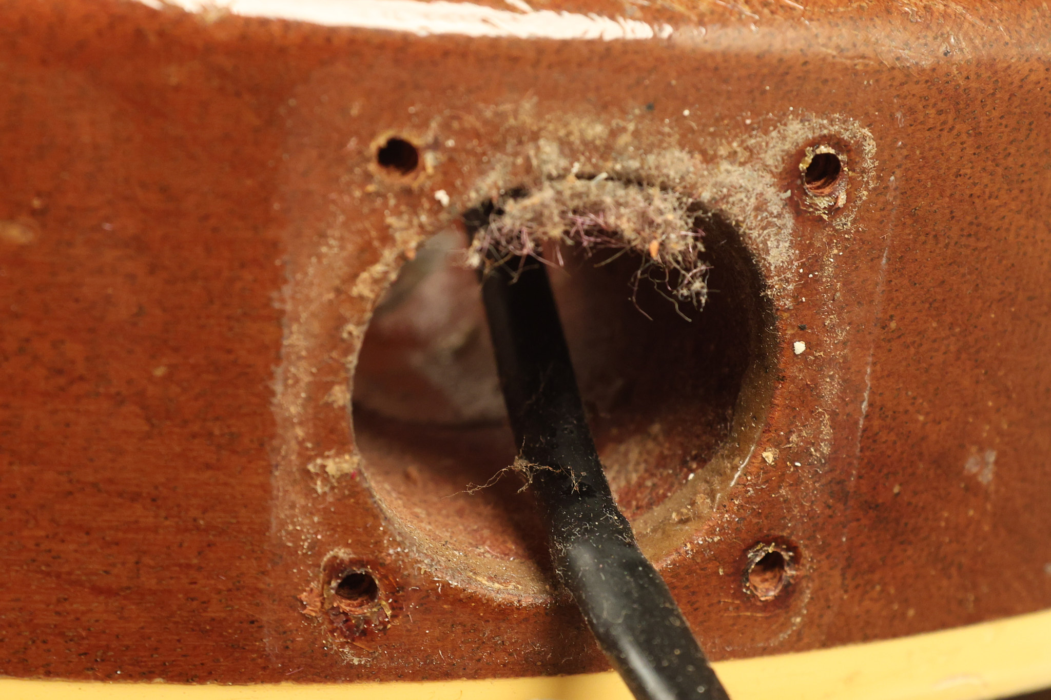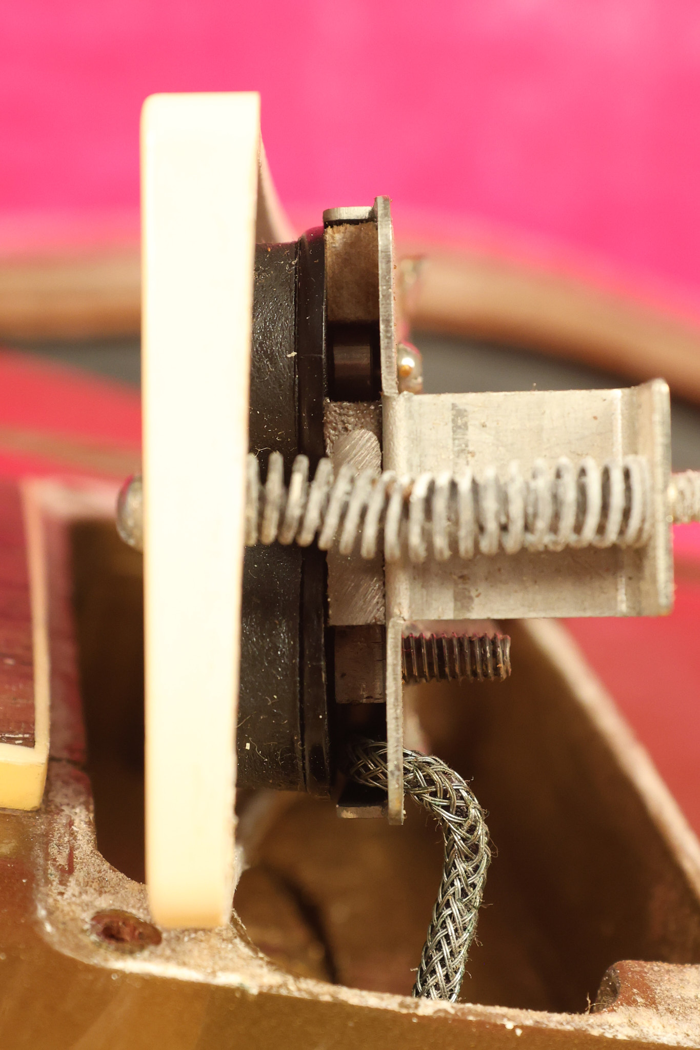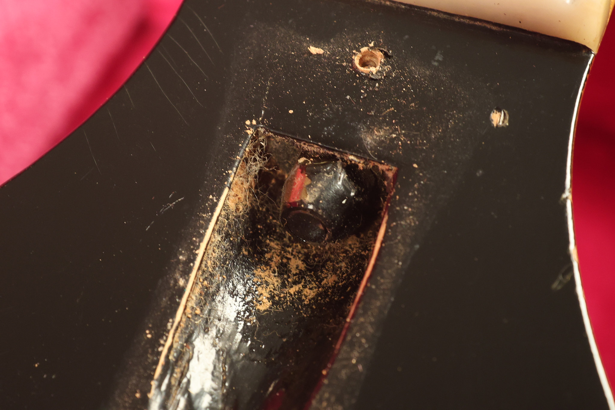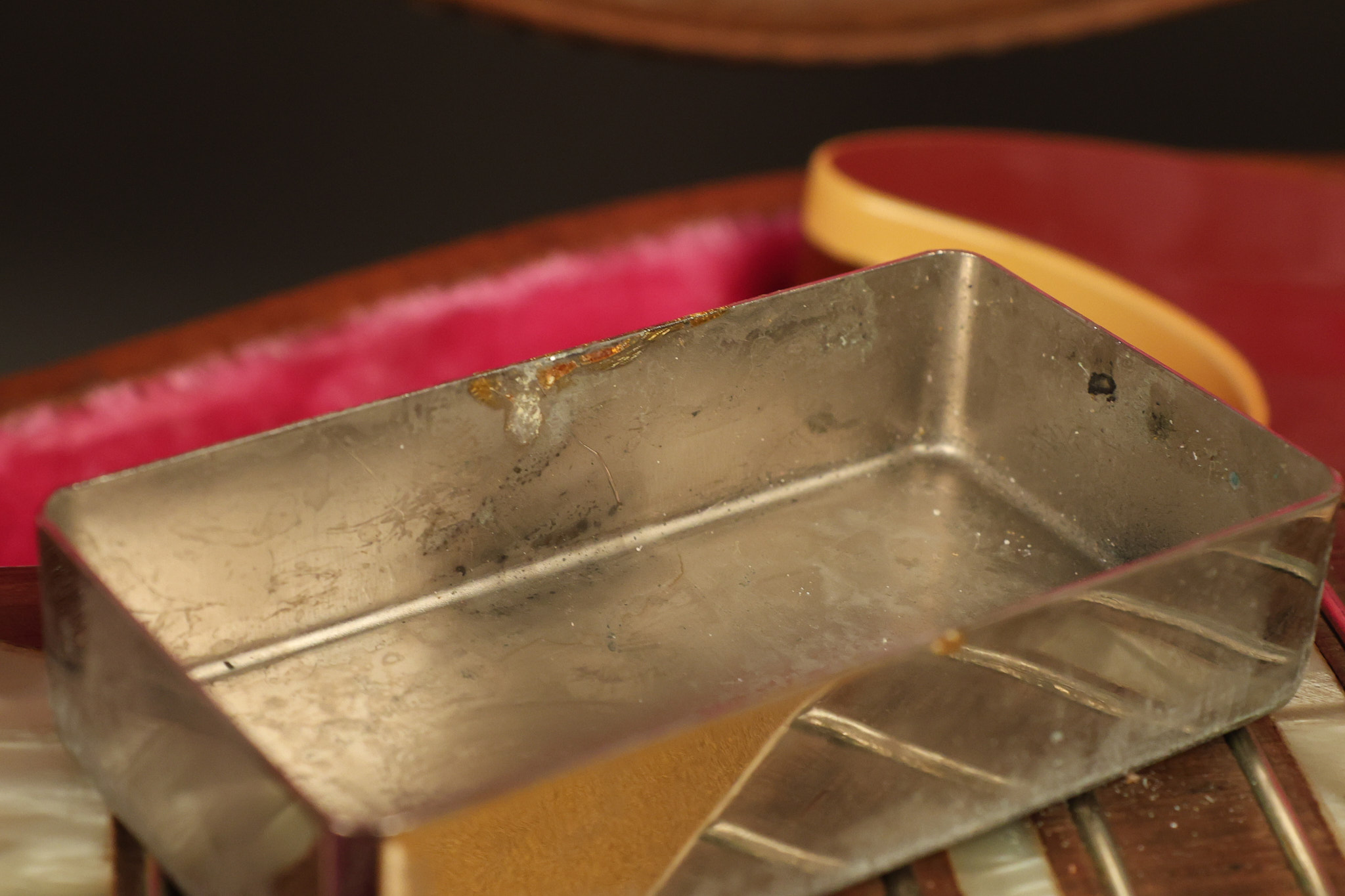 1957 Gibson Les Paul Goldtop with a rare carved top one-piece solid mahogany body in its original Goldtop finish. It has a great playing neck with great frets. It's all original and 100% complete along with its original hardshell case and Les Paul HANG TAG. It's in EXCELLENT condition with minor nicks + dings, very light belt buckle wear on the back of the body, a few minor finish cracks and other minor cosmetic wear including some nicks + dings around the top edges of the headstock that have been touched-up. The guitar itself remains structurally sound with no cracks, breaks or repairs. All electronics work and sound great with its original set of early PAF pickups. The cover for the neck position pickup is removable as the inside edge is not attached to the solder. All solder in the control cavities remain original and untampered with.
