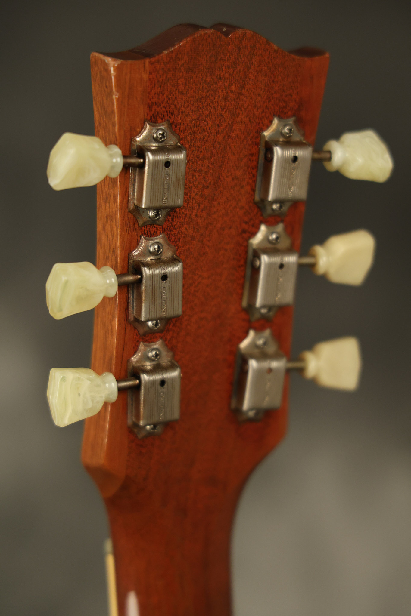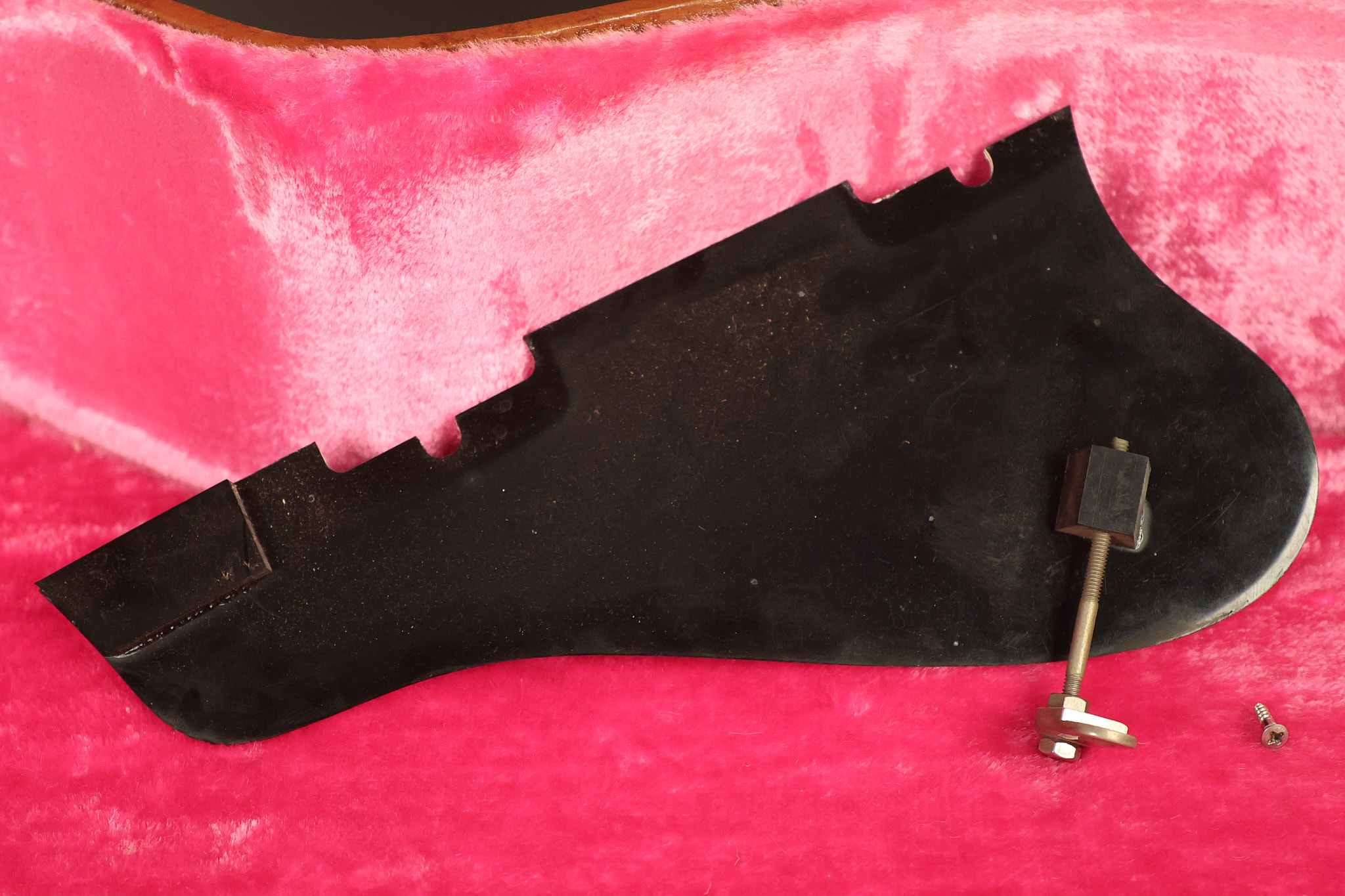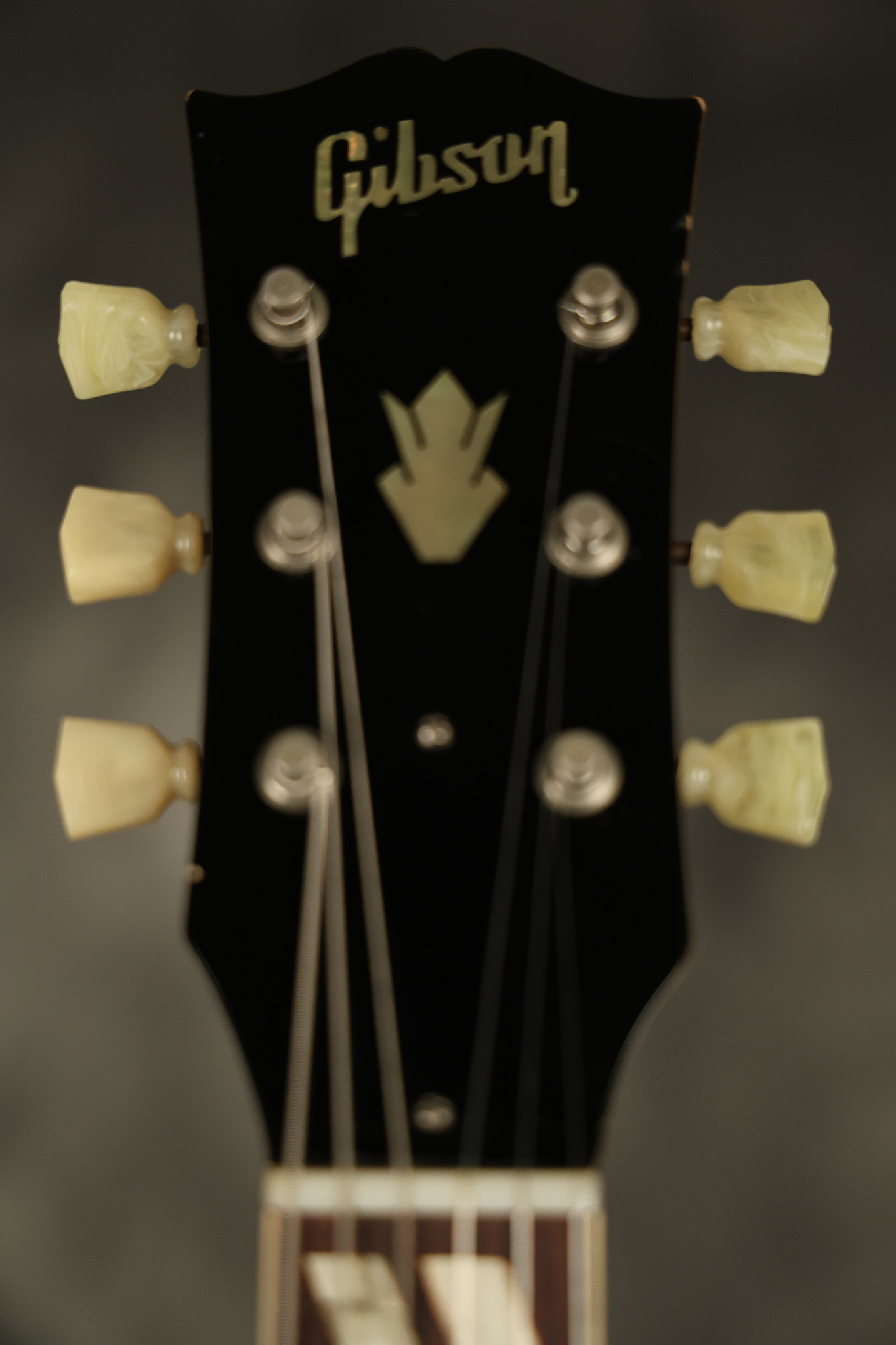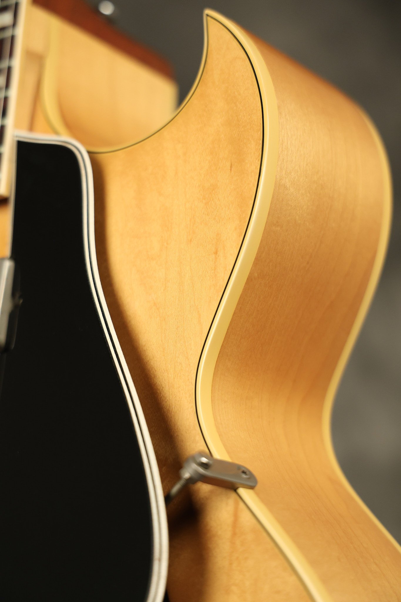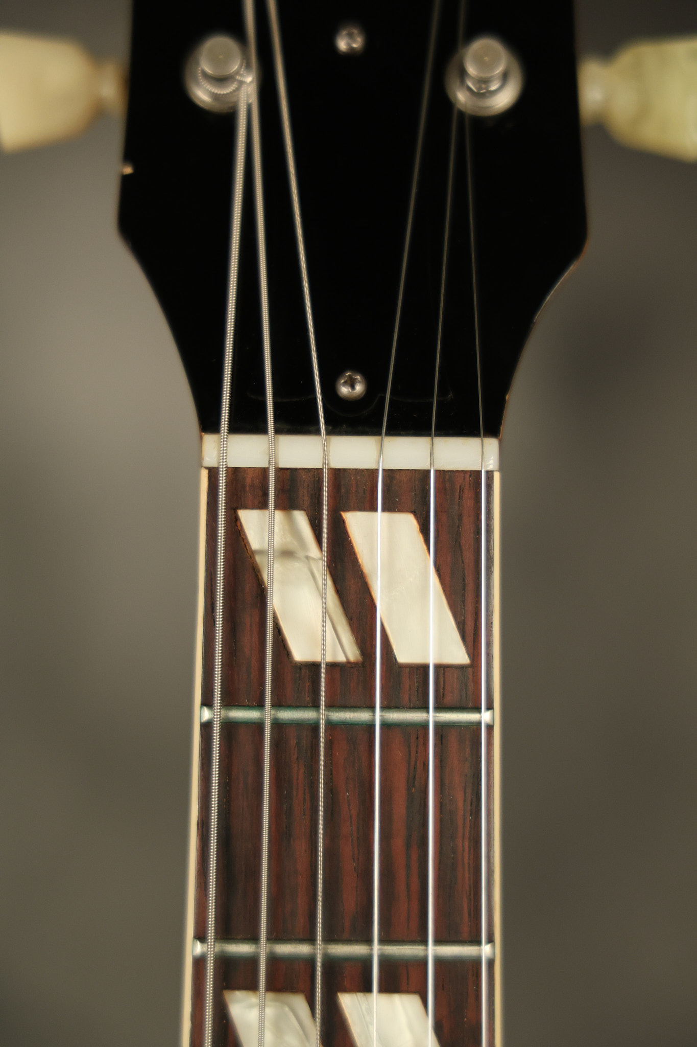 1959 Gibson ES-175 in its original Blonde/Natural finish. It has a great playing neck with great frets. It's all original with the exception of the added upper strap button and newer reproduction tuning buttons. It's also 100% complete along with its original hardshell case. It's in very good condition with some very minor nicks + dings and other minor cosmetic wear. There is some finish cracking along the seams of the top edge binding on the bass side lower bout of the body. The short finish cracks appear to be from binding shrinkage. There is also some slight binding shrinkage on the top edge of the cutaway on the body. The guitar itself remains structurally sound with no cracks, breaks or repairs. All electronics work and sound great.