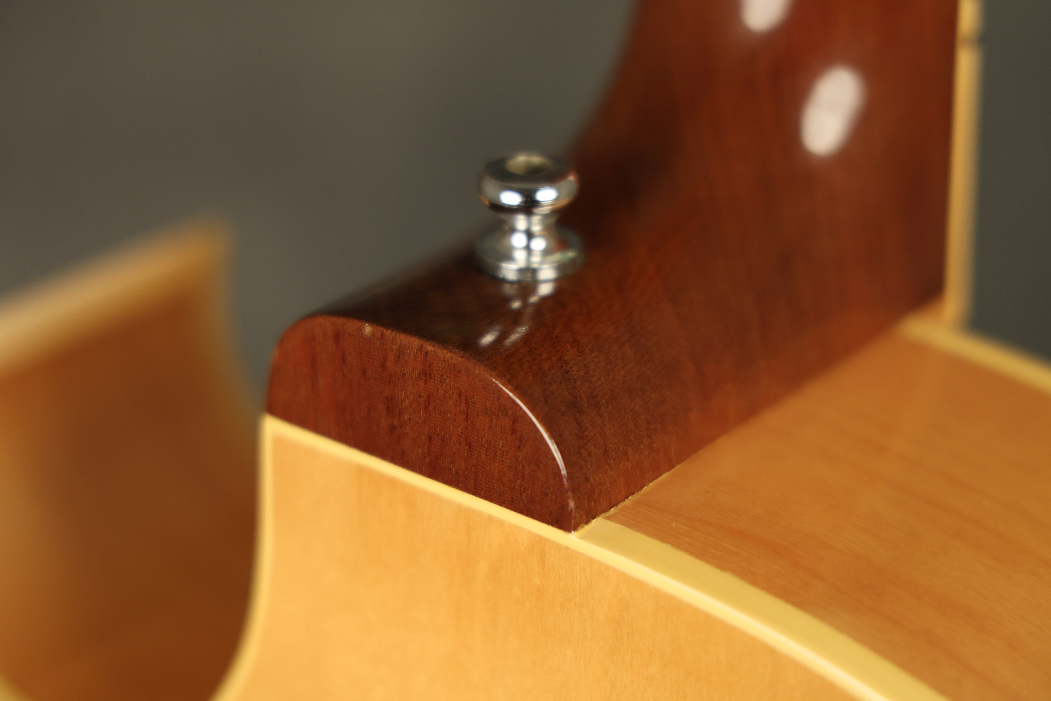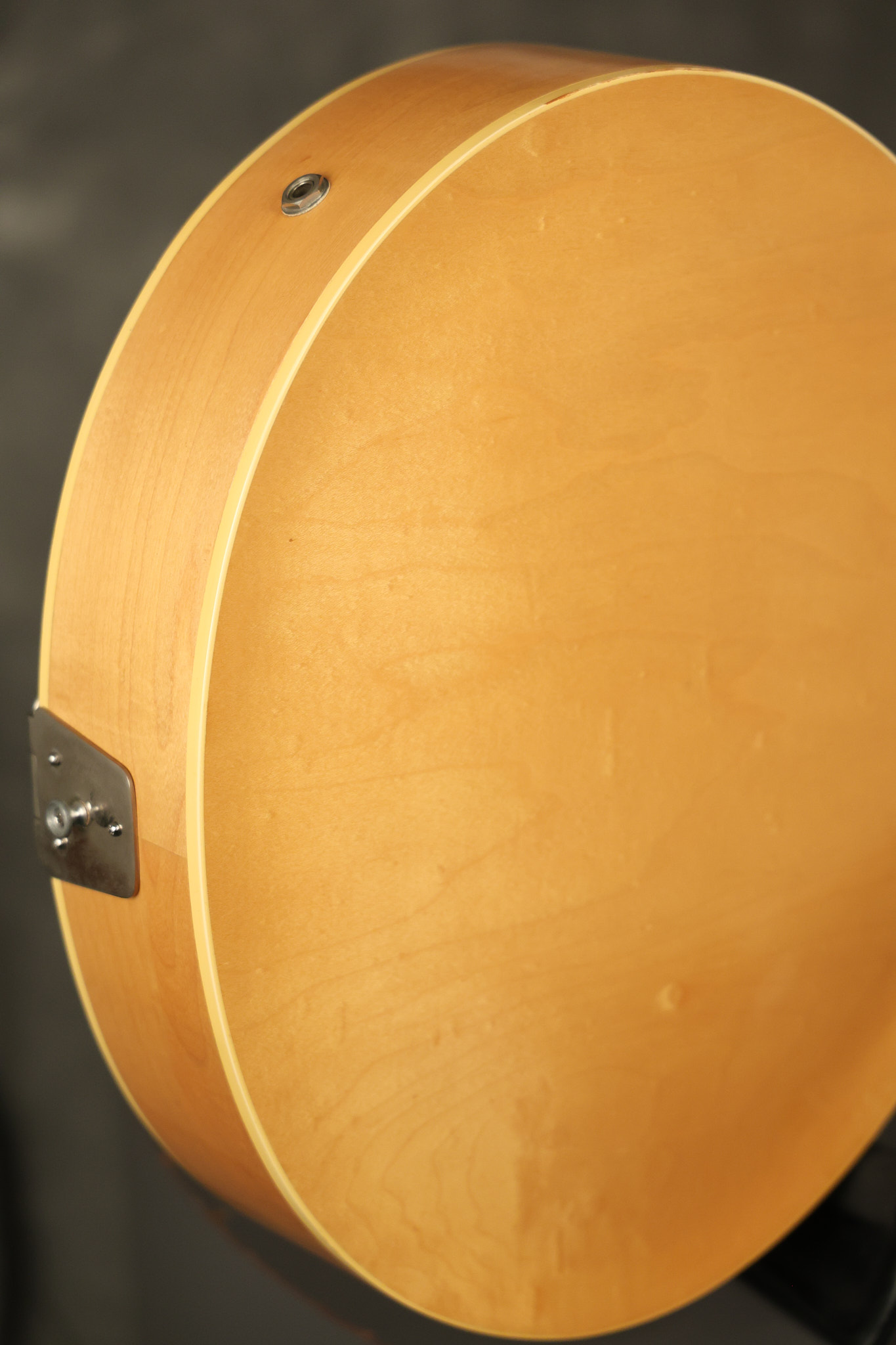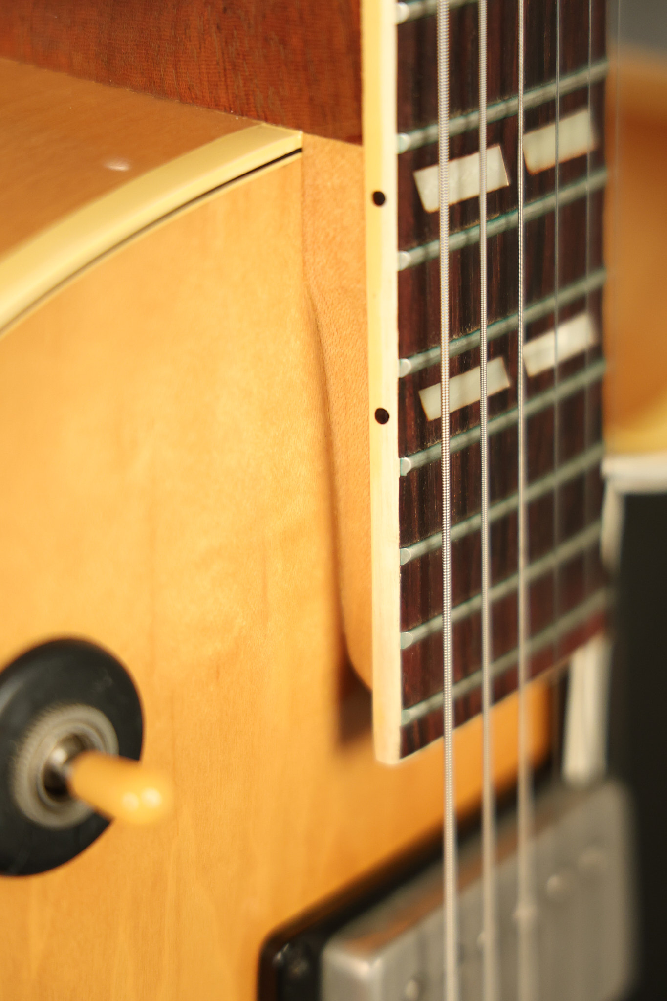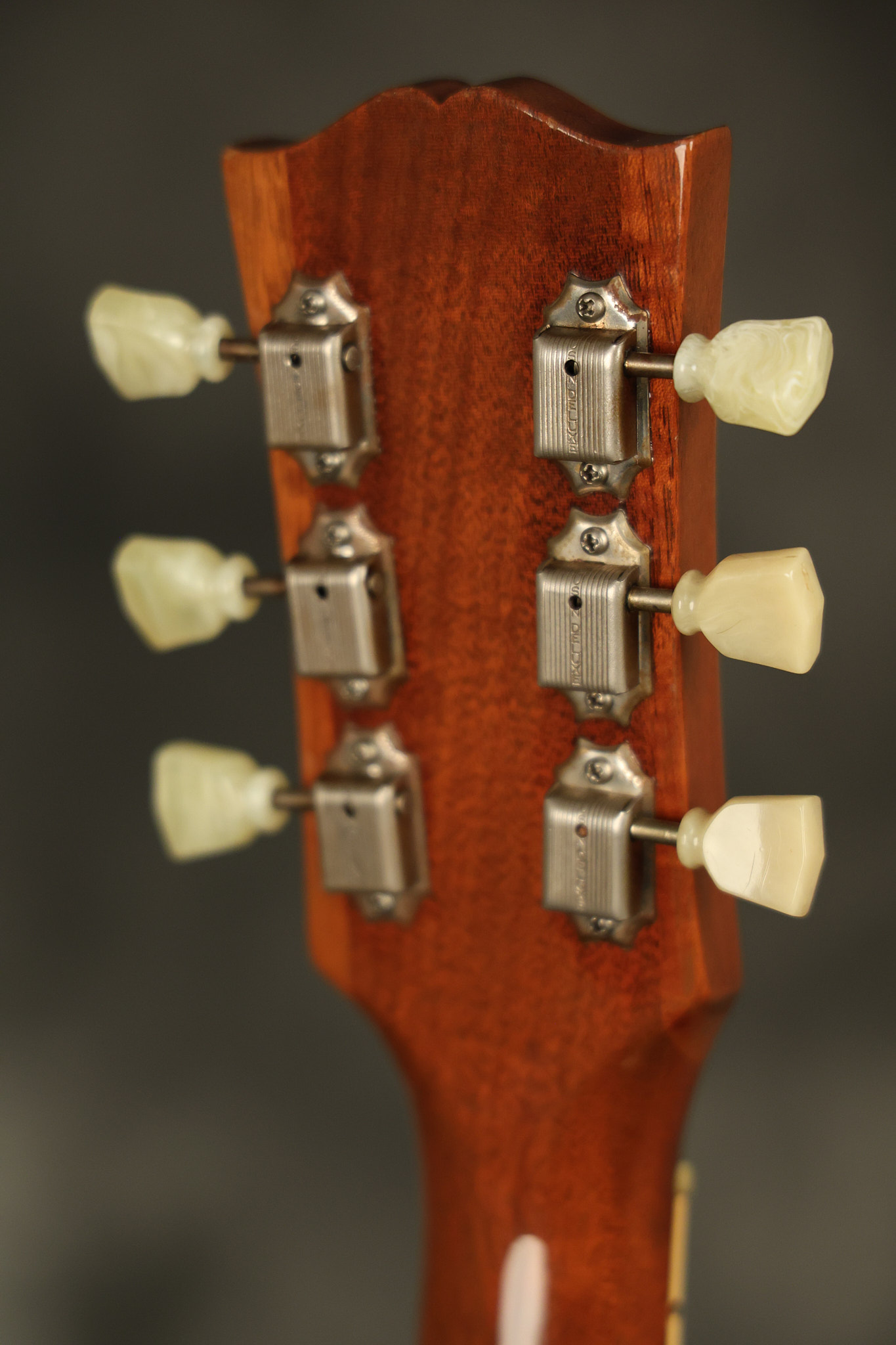 1959 Gibson ES-175 in its original Blonde/Natural finish. It has a great playing neck with great frets. It's all original with the exception of the added upper strap button and newer reproduction tuning buttons. It's also 100% complete along with its original hardshell case. It's in very good condition with some very minor nicks + dings and other minor cosmetic wear. There is some finish cracking along the seams of the top edge binding on the bass side lower bout of the body. The short finish cracks appear to be from binding shrinkage. There is also some slight binding shrinkage on the top edge of the cutaway on the body. The guitar itself remains structurally sound with no cracks, breaks or repairs. All electronics work and sound great.