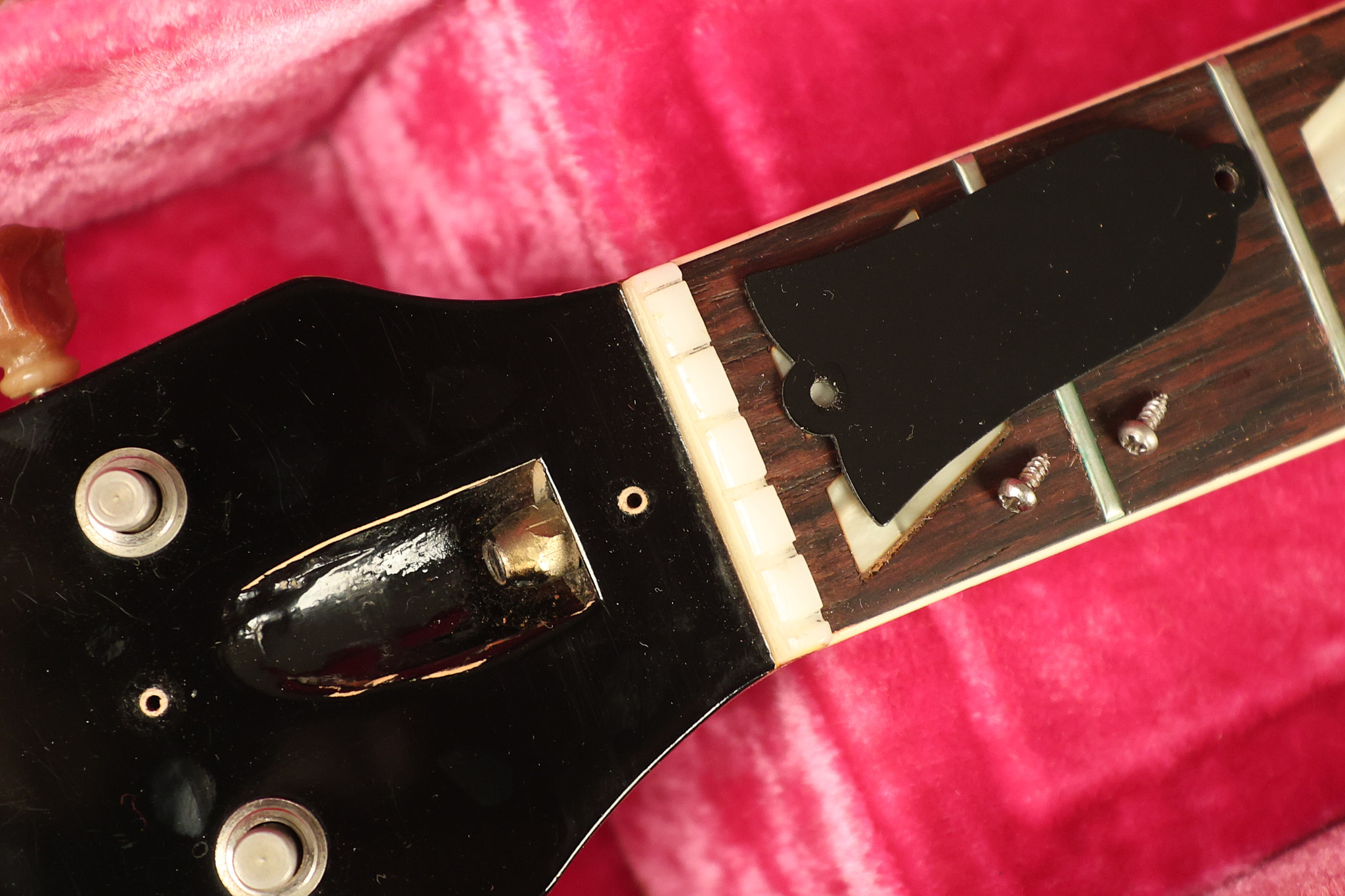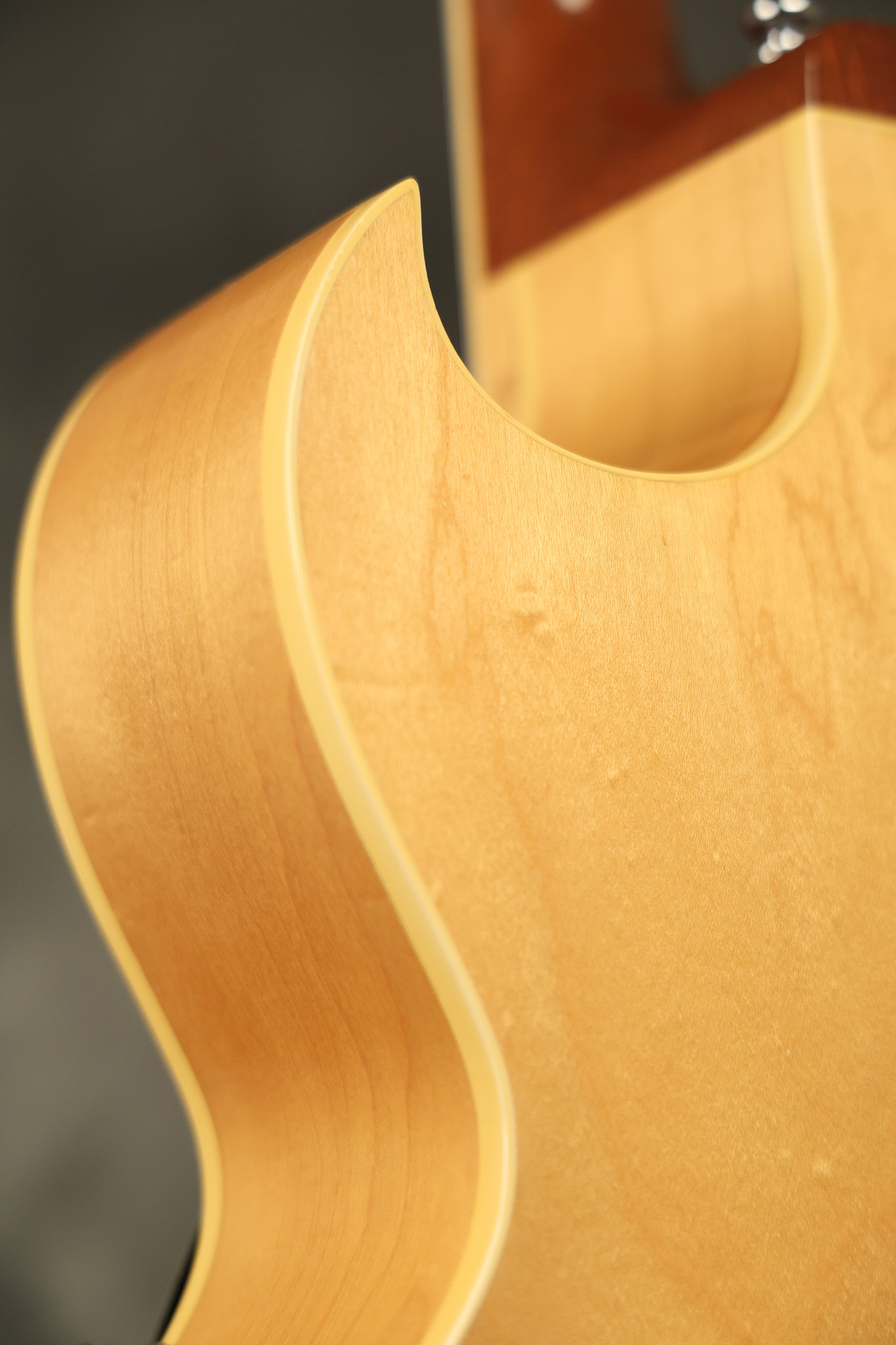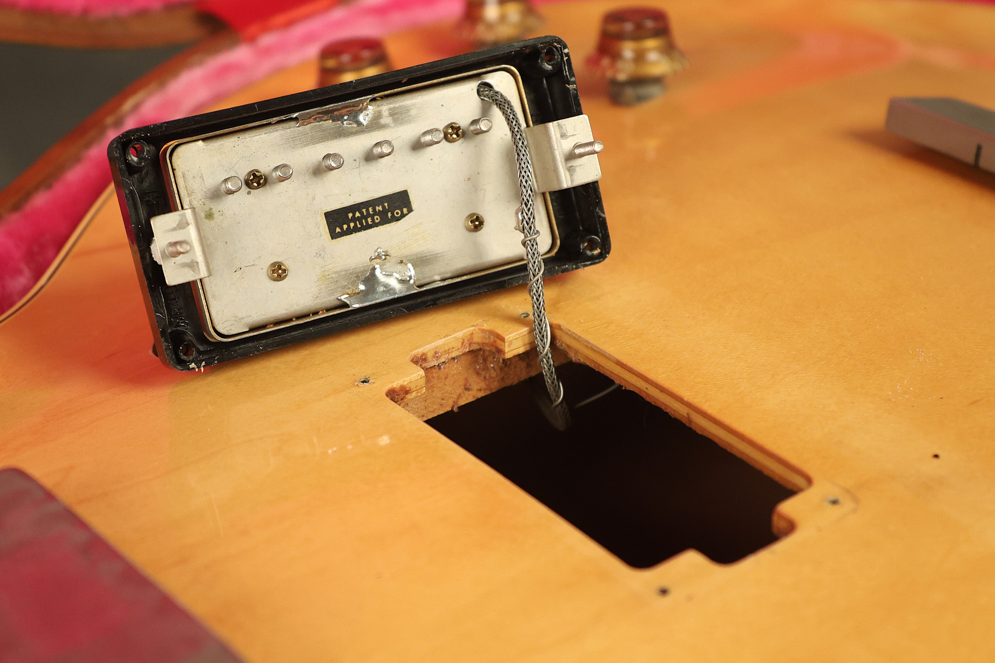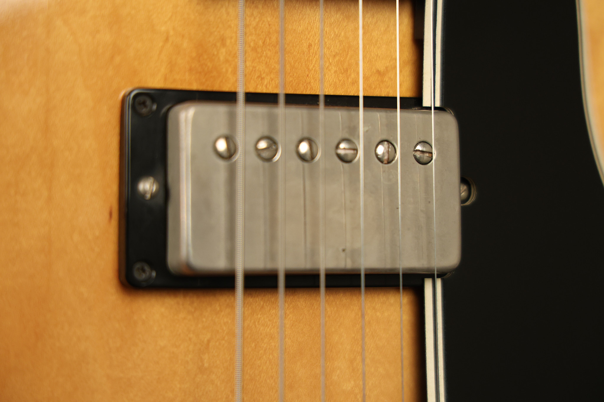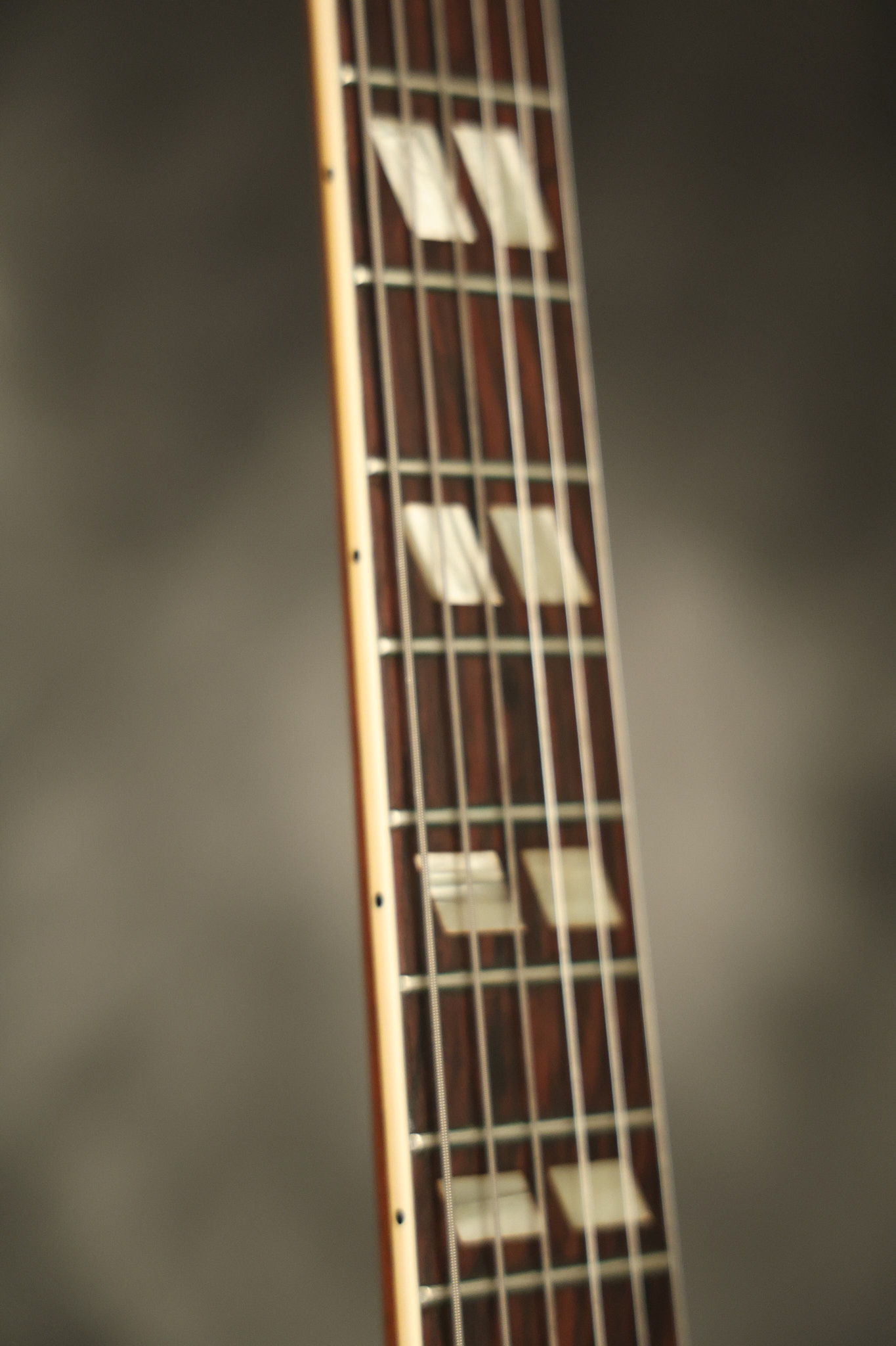 1959 Gibson ES-175 in its original Blonde/Natural finish. It has a great playing neck with great frets. It's all original with the exception of the added upper strap button and newer reproduction tuning buttons. It's also 100% complete along with its original hardshell case. It's in very good condition with some very minor nicks + dings and other minor cosmetic wear. There is some finish cracking along the seams of the top edge binding on the bass side lower bout of the body. The short finish cracks appear to be from binding shrinkage. There is also some slight binding shrinkage on the top edge of the cutaway on the body. The guitar itself remains structurally sound with no cracks, breaks or repairs. All electronics work and sound great.