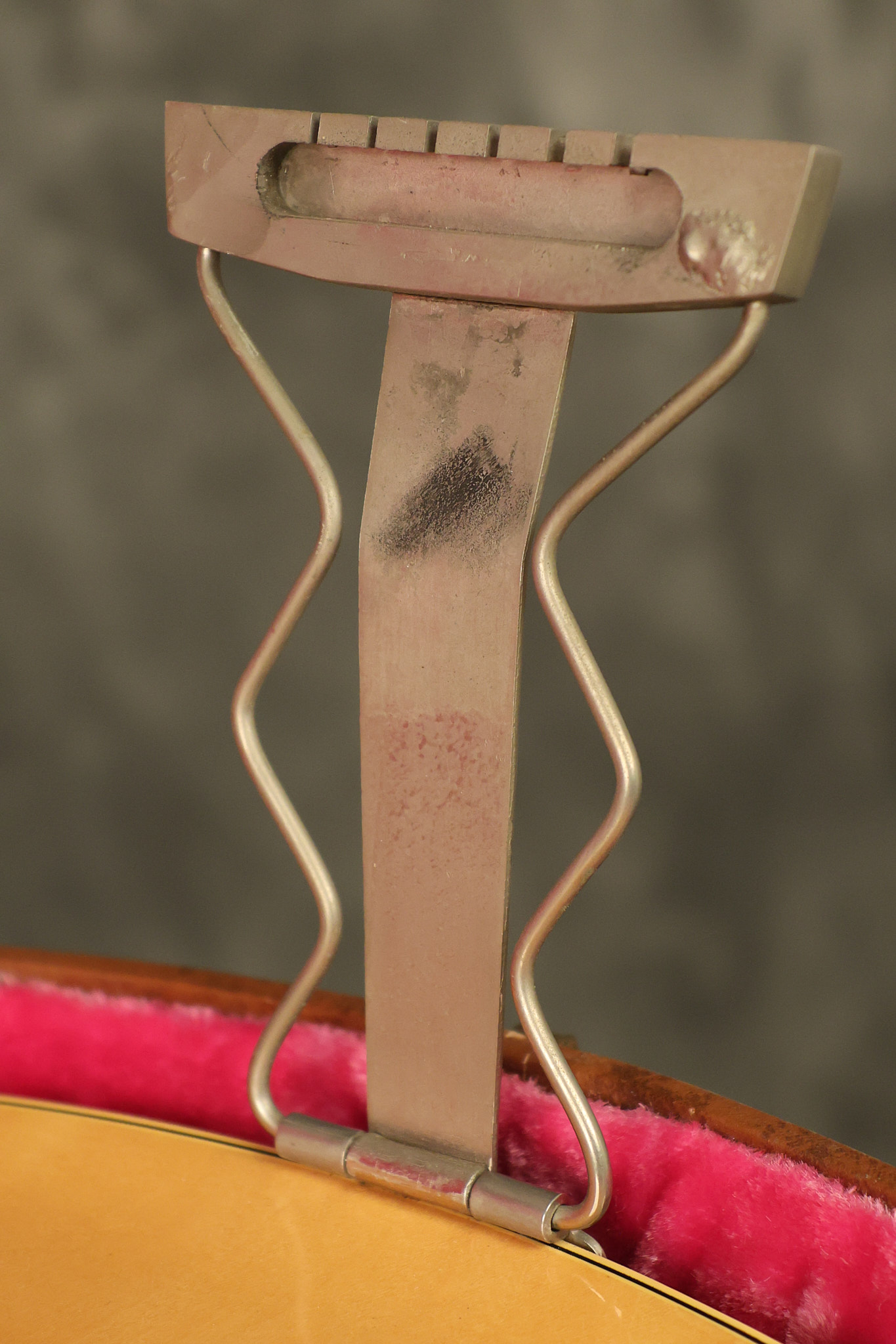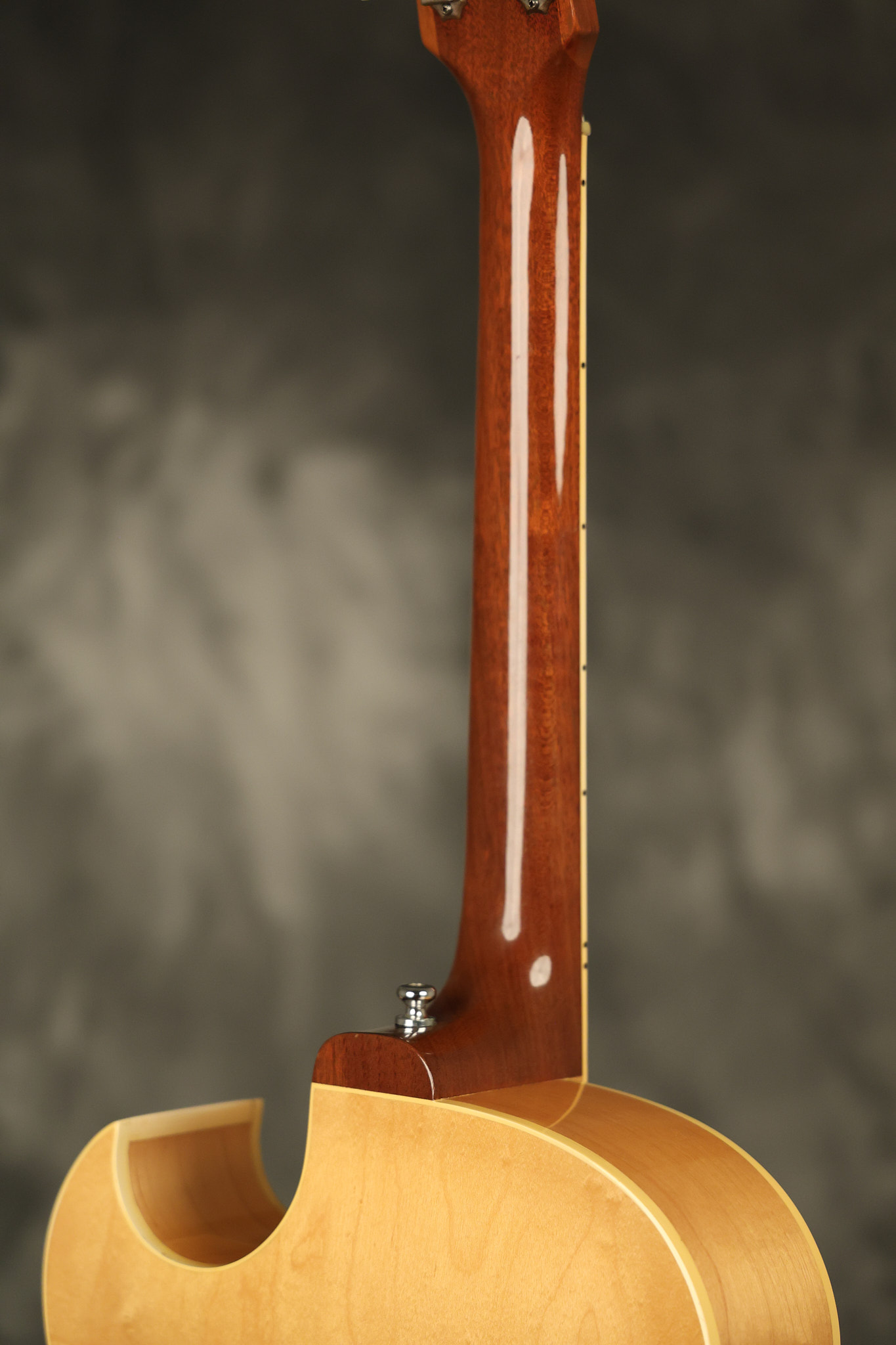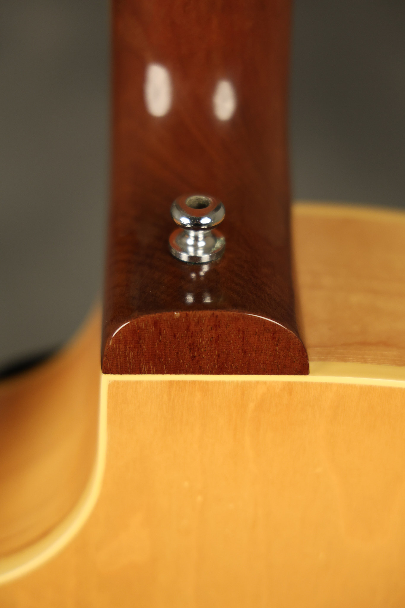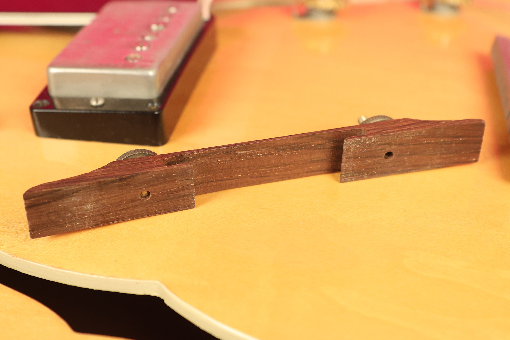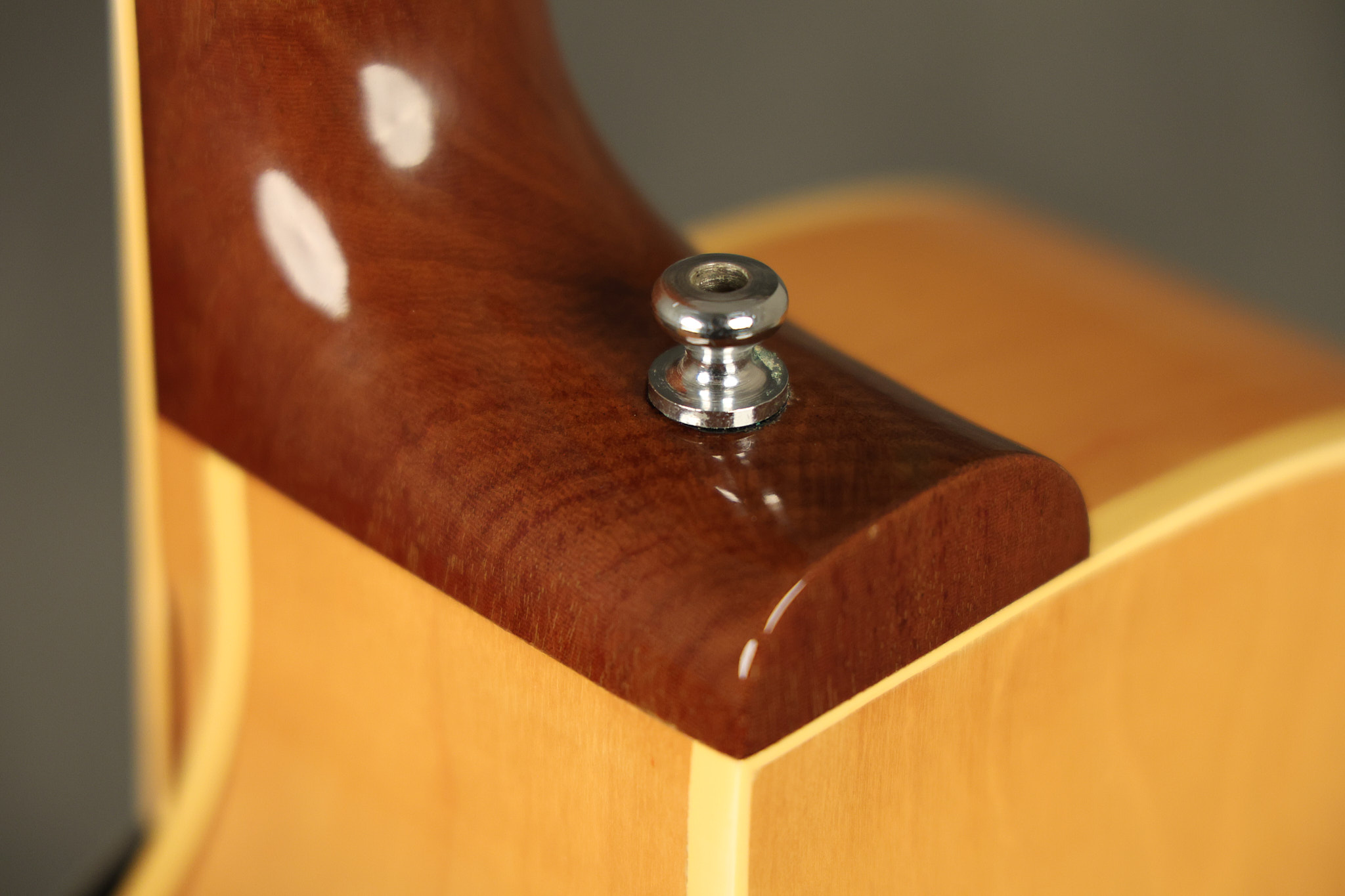 1959 Gibson ES-175 in its original Blonde/Natural finish. It has a great playing neck with great frets. It's all original with the exception of the added upper strap button and newer reproduction tuning buttons. It's also 100% complete along with its original hardshell case. It's in very good condition with some very minor nicks + dings and other minor cosmetic wear. There is some finish cracking along the seams of the top edge binding on the bass side lower bout of the body. The short finish cracks appear to be from binding shrinkage. There is also some slight binding shrinkage on the top edge of the cutaway on the body. The guitar itself remains structurally sound with no cracks, breaks or repairs. All electronics work and sound great.