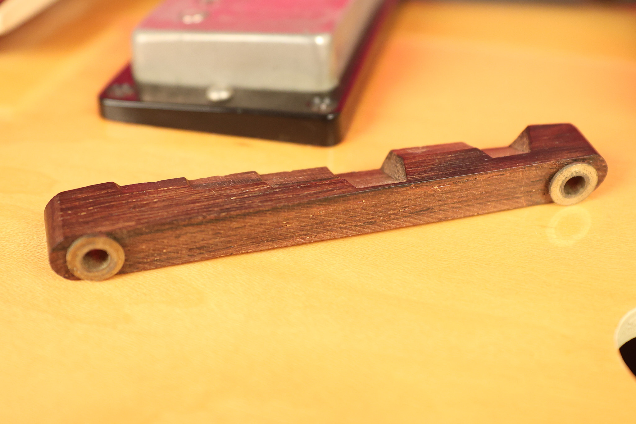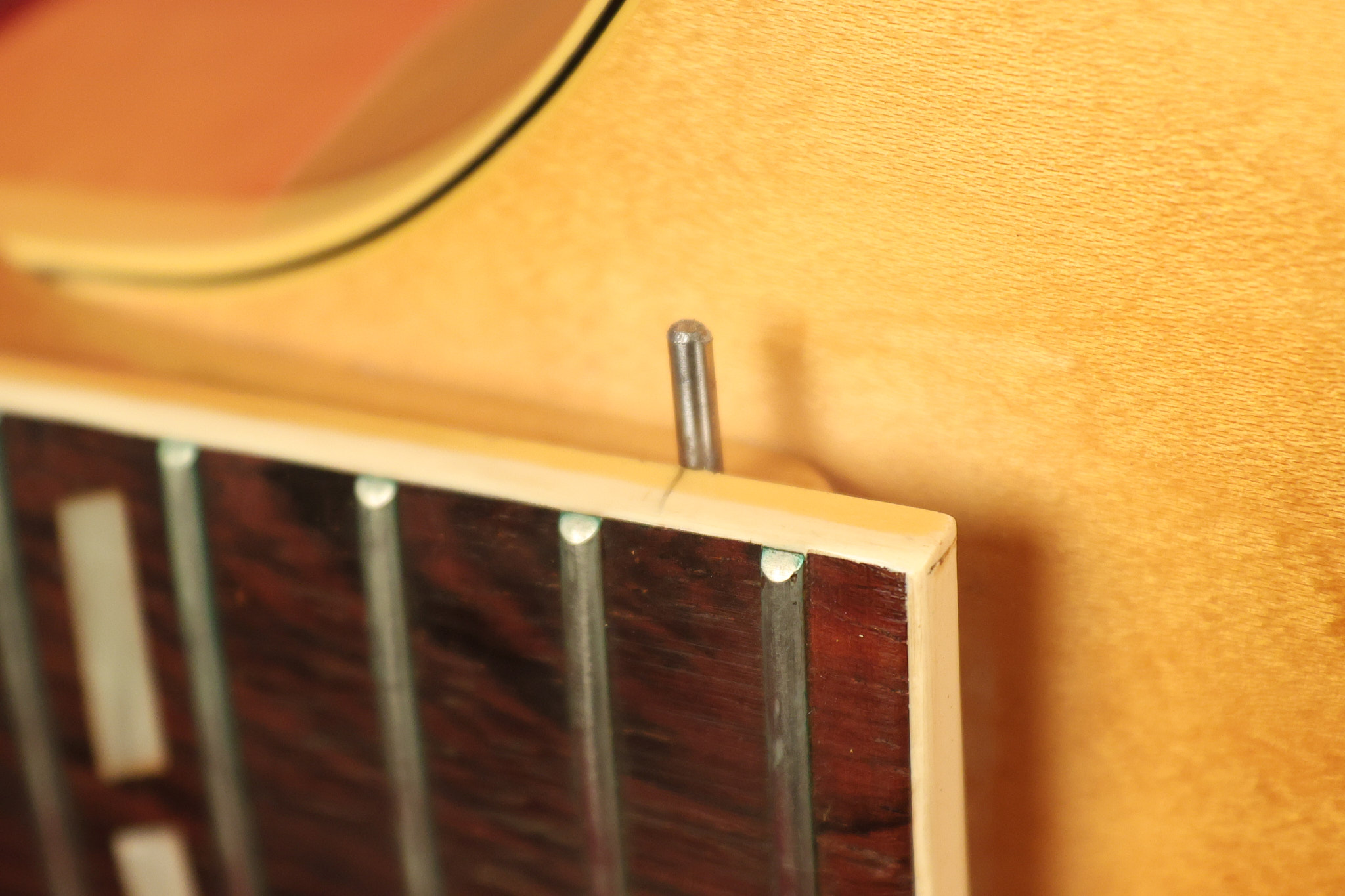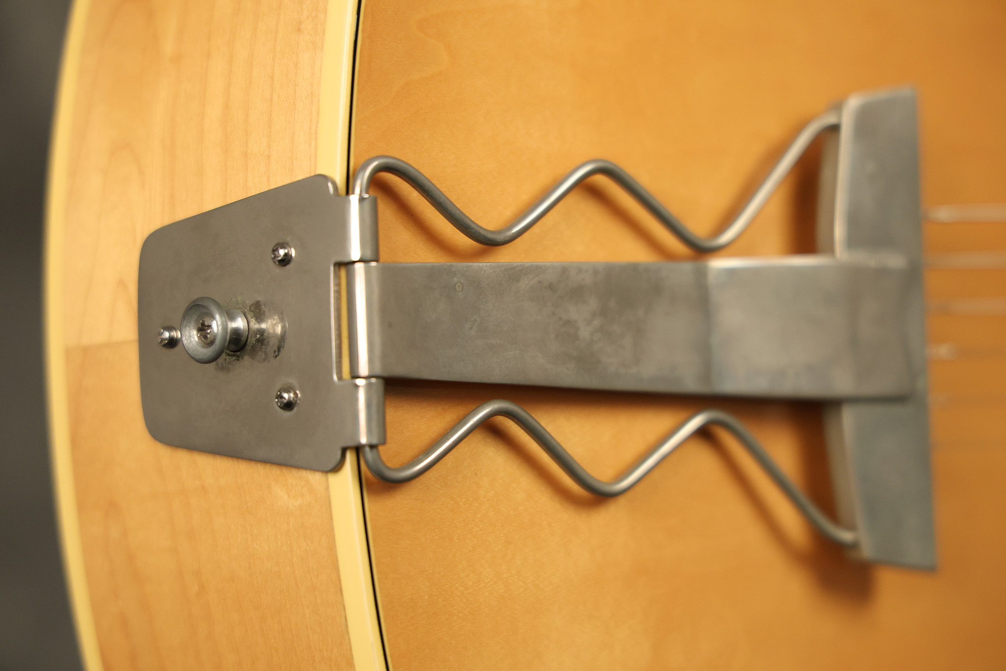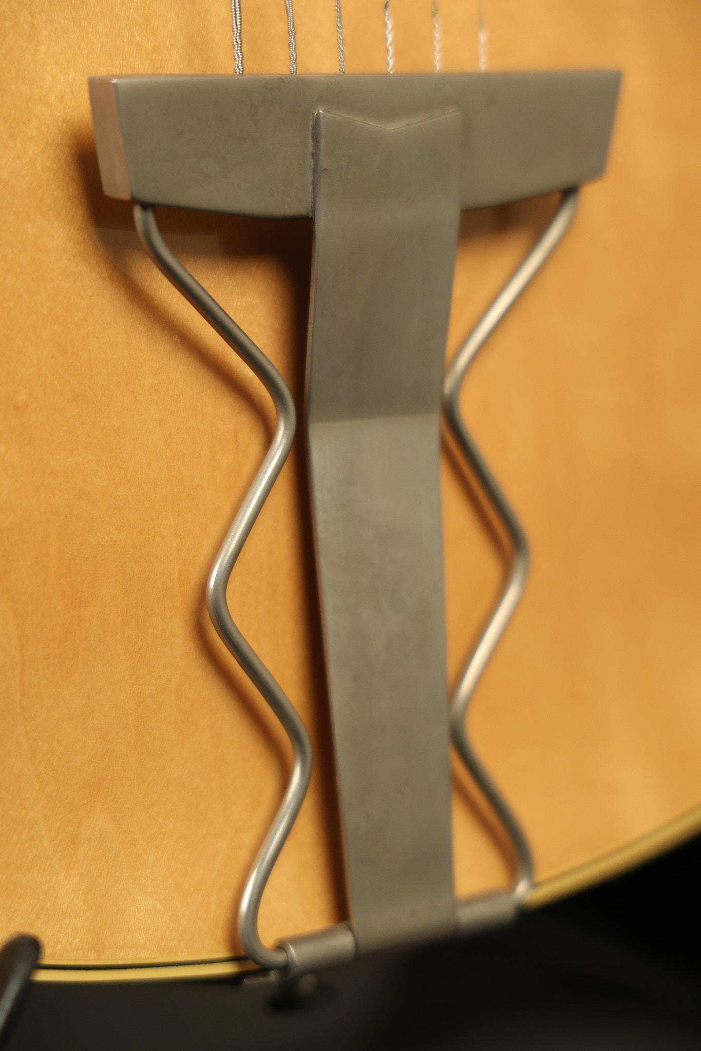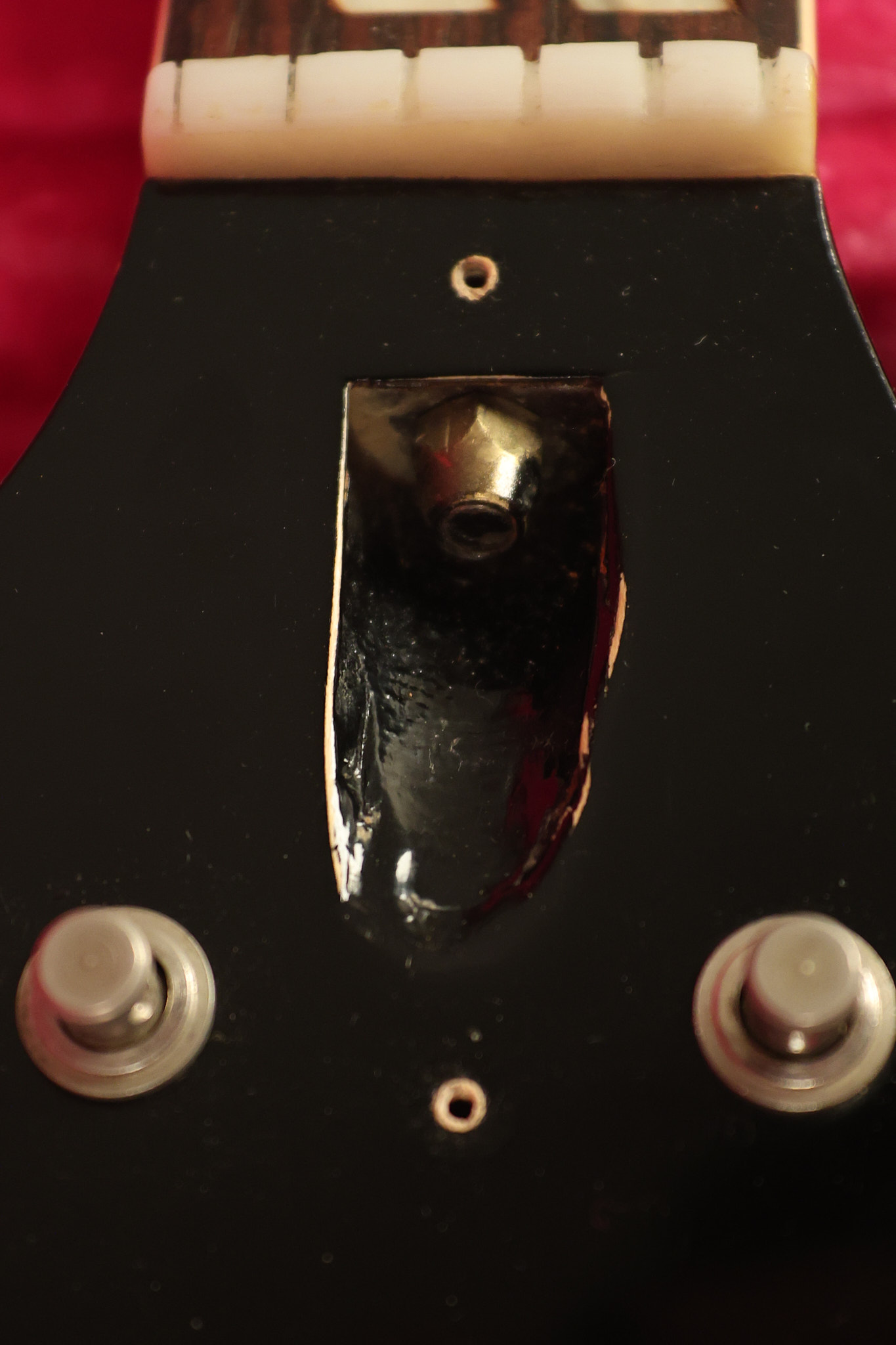 1959 Gibson ES-175 in its original Blonde/Natural finish. It has a great playing neck with great frets. It's all original with the exception of the added upper strap button and newer reproduction tuning buttons. It's also 100% complete along with its original hardshell case. It's in very good condition with some very minor nicks + dings and other minor cosmetic wear. There is some finish cracking along the seams of the top edge binding on the bass side lower bout of the body. The short finish cracks appear to be from binding shrinkage. There is also some slight binding shrinkage on the top edge of the cutaway on the body. The guitar itself remains structurally sound with no cracks, breaks or repairs. All electronics work and sound great.