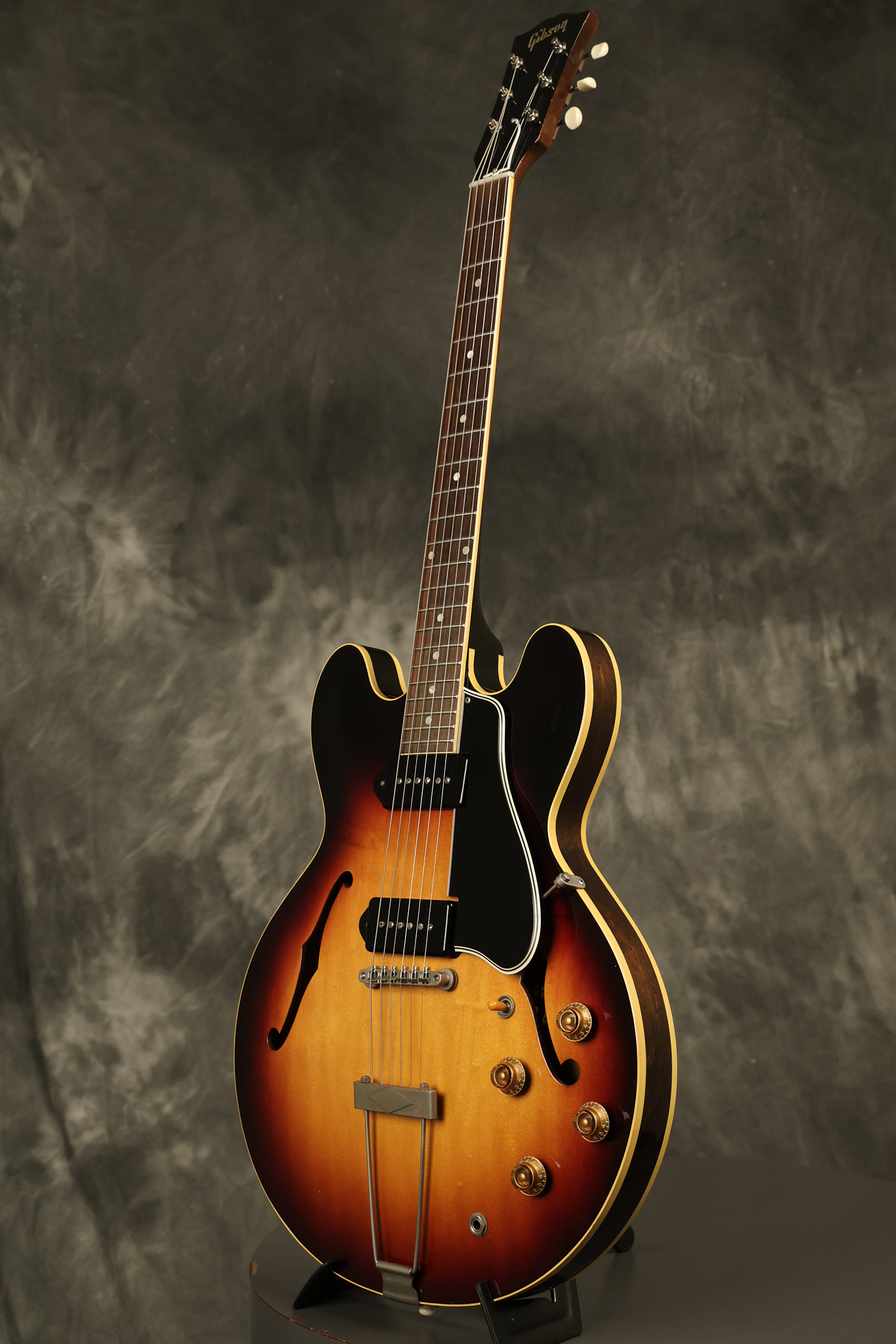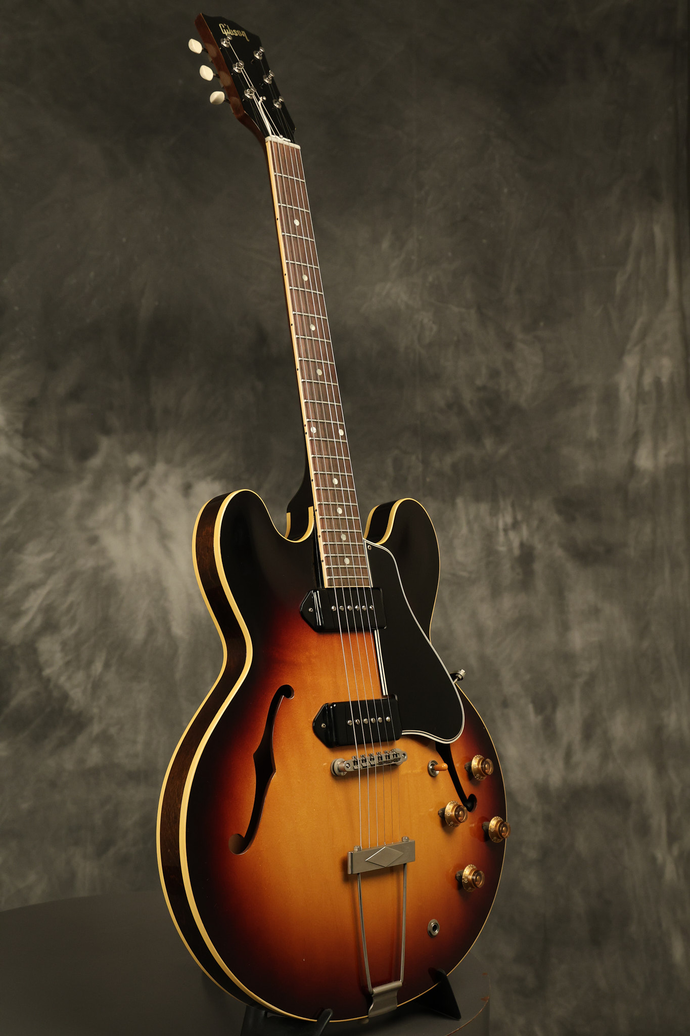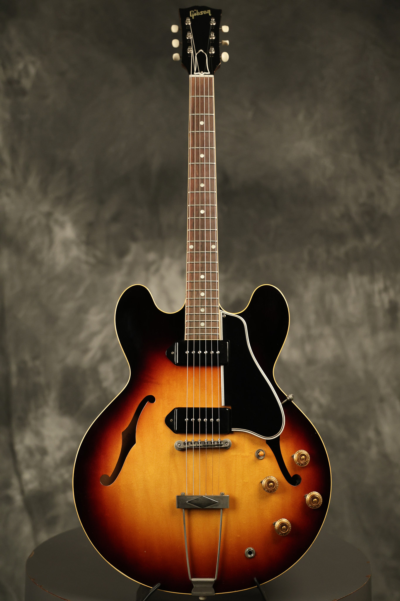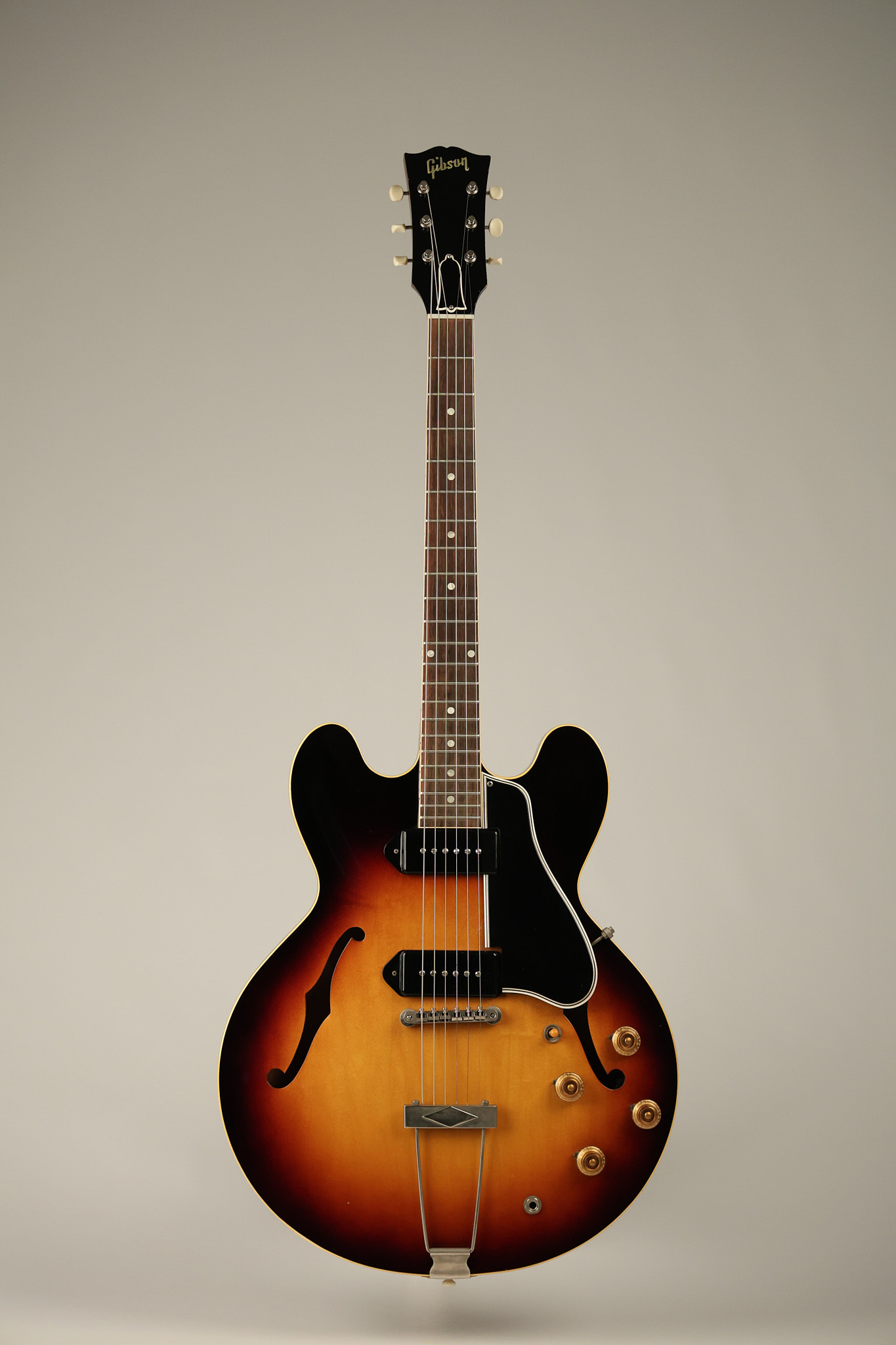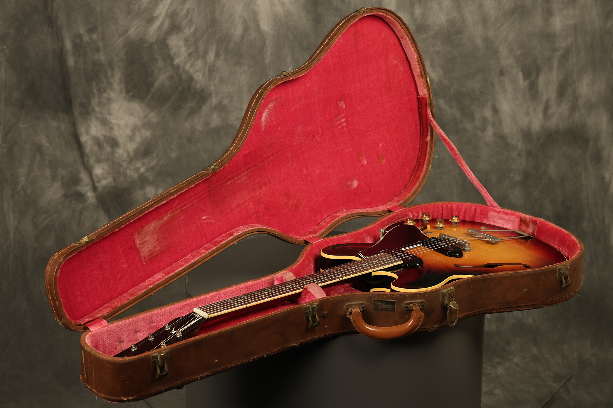 1960 Gibson ES-330 in its original Sunburst finish. It has a great playing neck with great frets. It's all original and 100% complete along with its original brown hardshell case. There was another tailpiece installed at one point in time which has left 2 extra screw holes that are concealed by the original tailpiece. There has never been an upper strap button installed. It's in EXCELLENT condition with only very minor nicks + dings, extremely light finish checking and other minor cosmetic wear. A very small detail, but worth noting is that the pickguard bracket screw hole was originally drilled just a hair too far from the edge of the body as the bracket is not perfectly flush against the side of the body. The pickguard is still just as secure and the guitar itself remains structurally sound with no cracks, breaks or repairs. All electronics work and sound great.