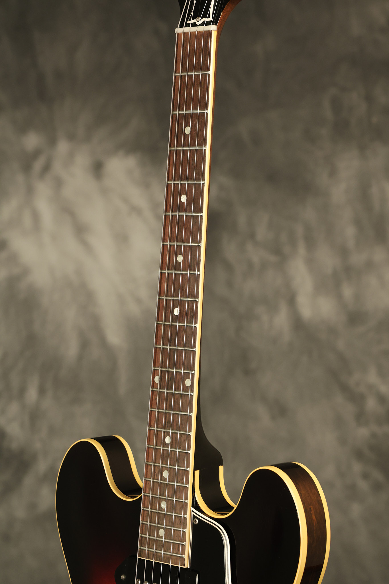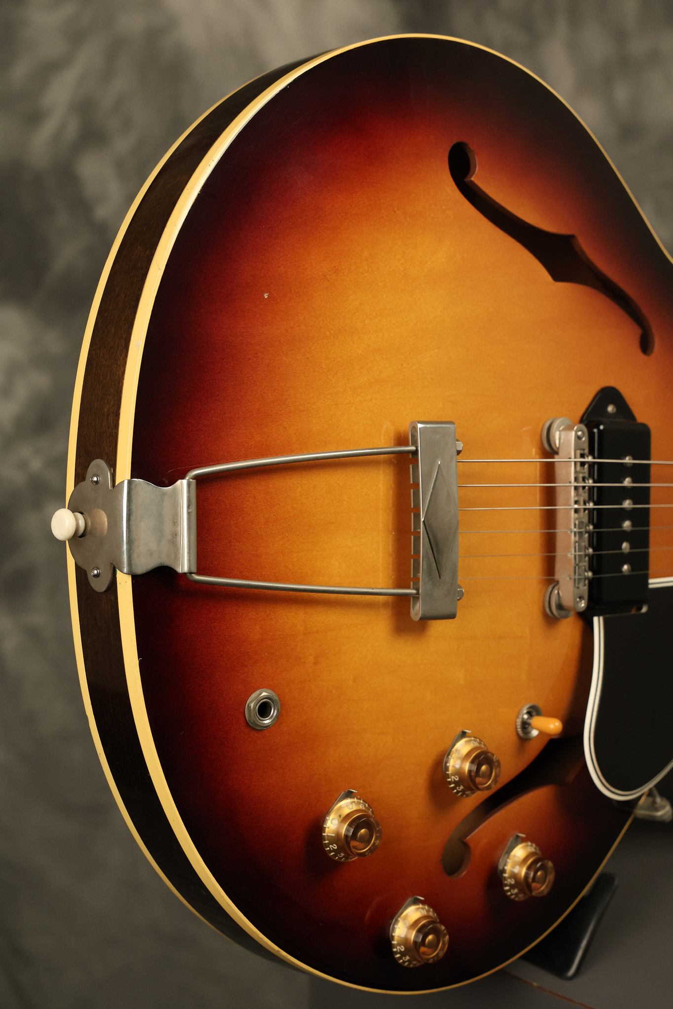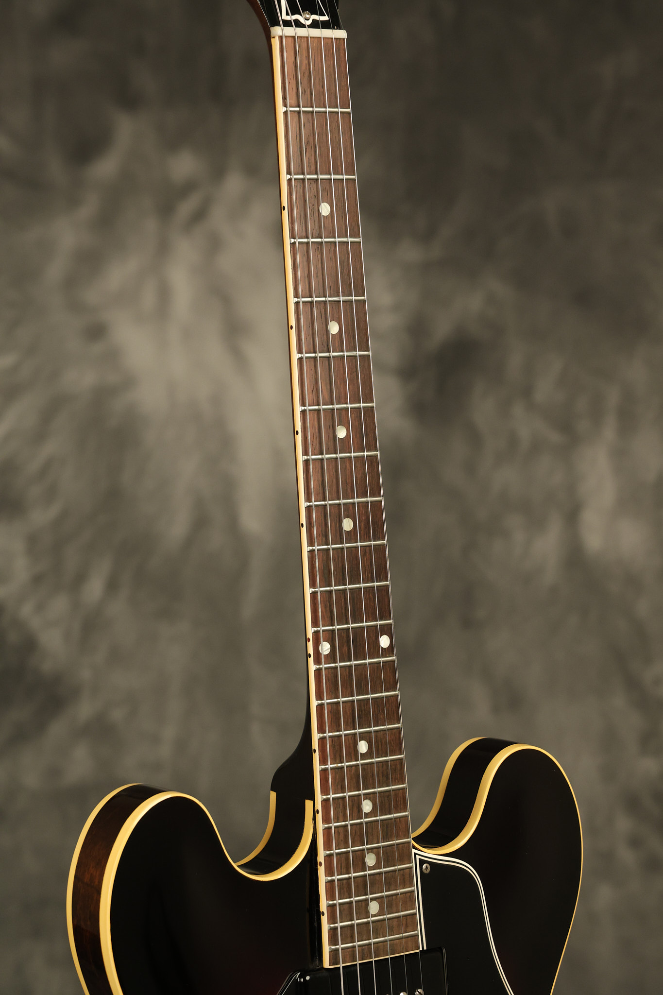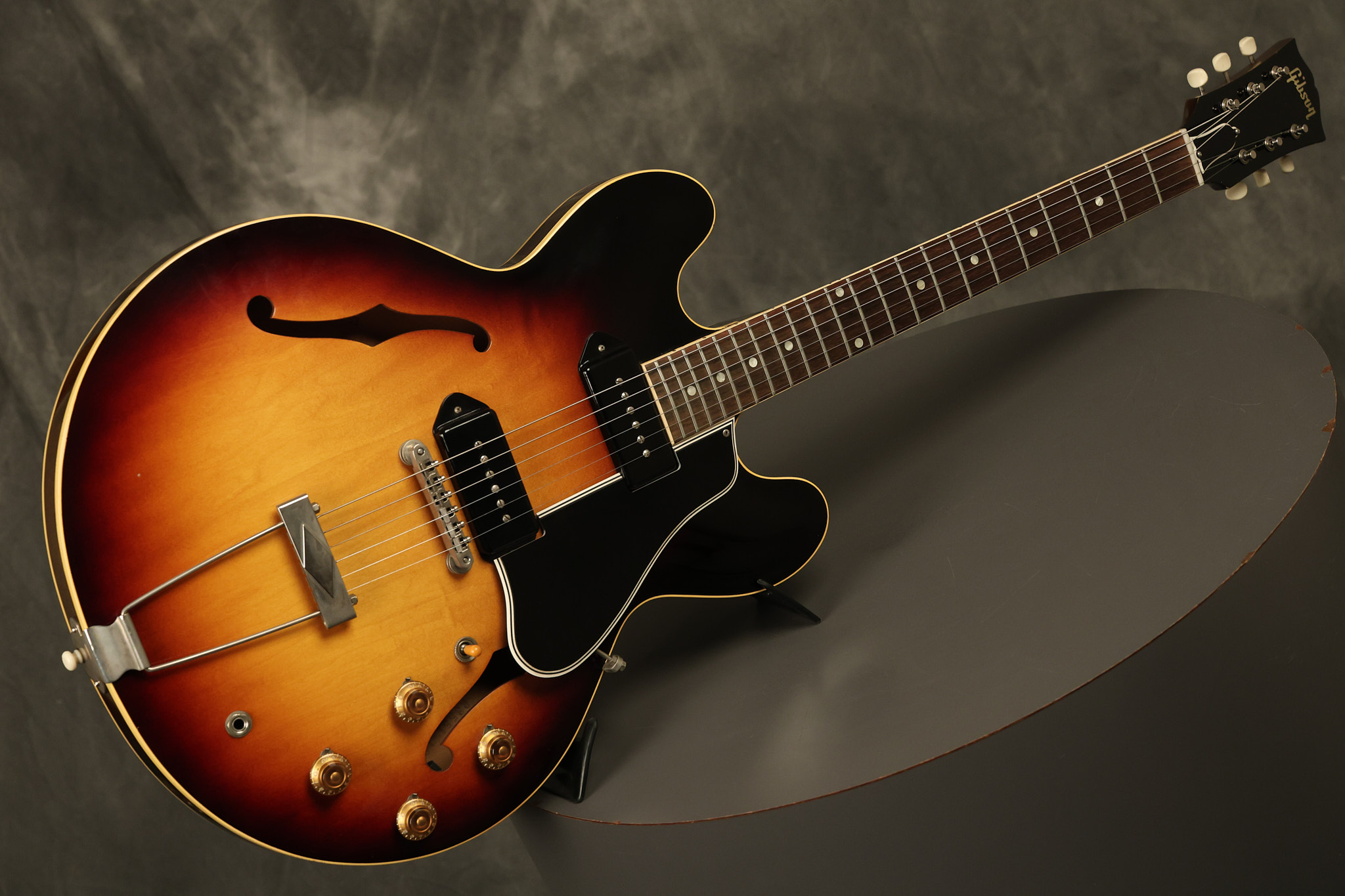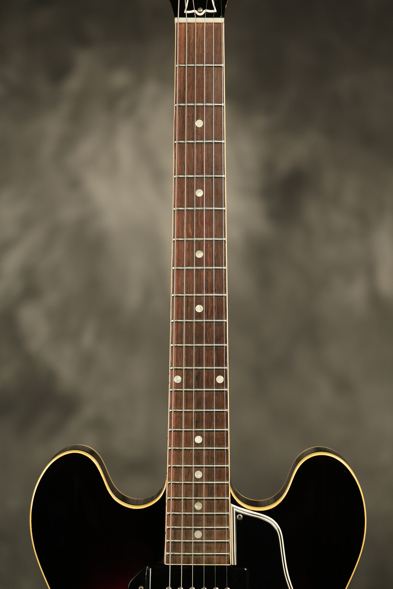 1960 Gibson ES-330 in its original Sunburst finish. It has a great playing neck with great frets. It's all original and 100% complete along with its original brown hardshell case. There was another tailpiece installed at one point in time which has left 2 extra screw holes that are concealed by the original tailpiece. There has never been an upper strap button installed. It's in EXCELLENT condition with only very minor nicks + dings, extremely light finish checking and other minor cosmetic wear. A very small detail, but worth noting is that the pickguard bracket screw hole was originally drilled just a hair too far from the edge of the body as the bracket is not perfectly flush against the side of the body. The pickguard is still just as secure and the guitar itself remains structurally sound with no cracks, breaks or repairs. All electronics work and sound great.