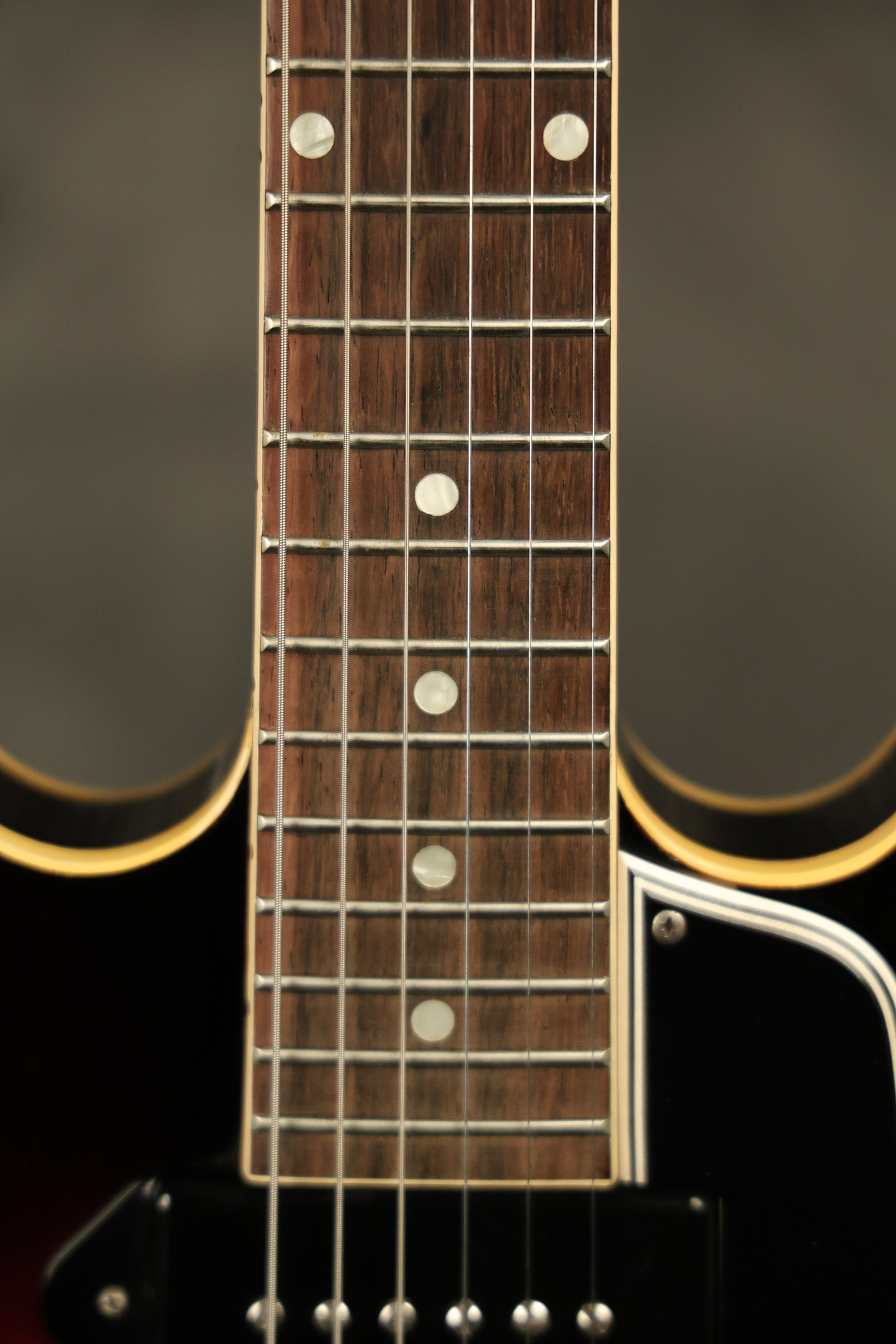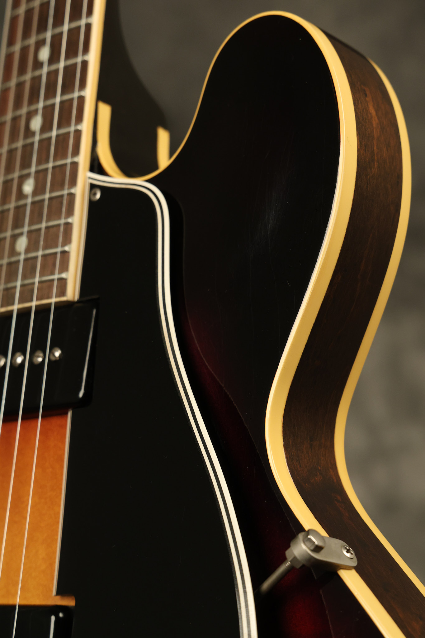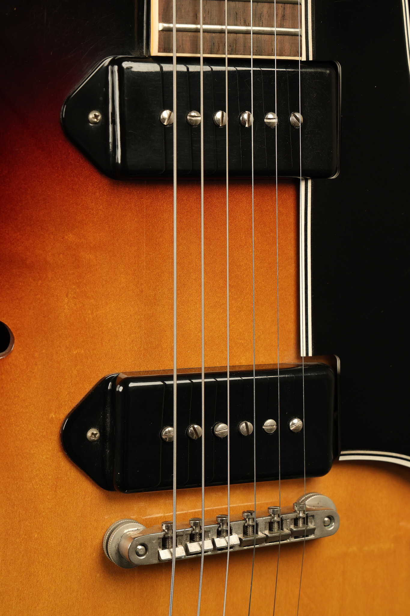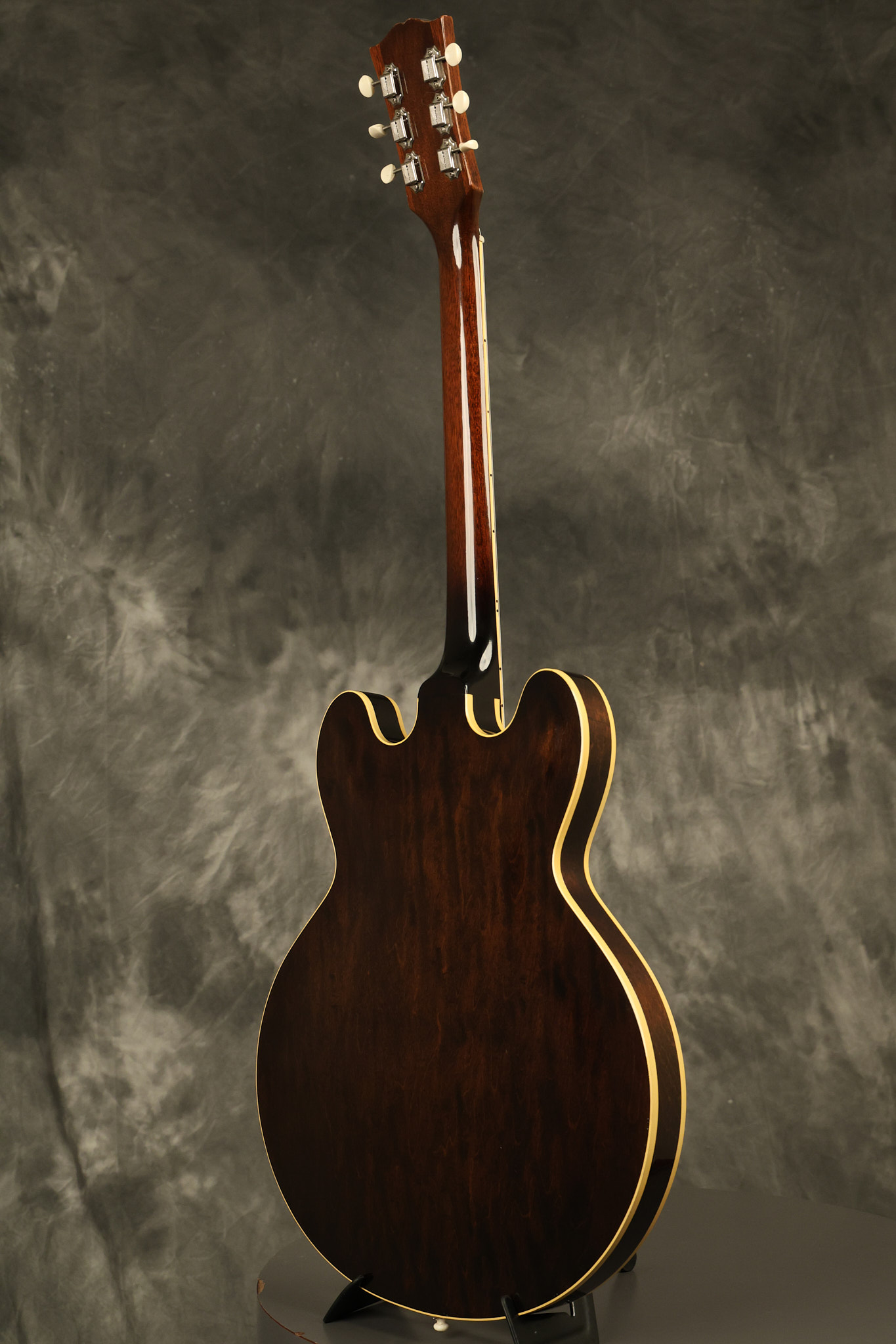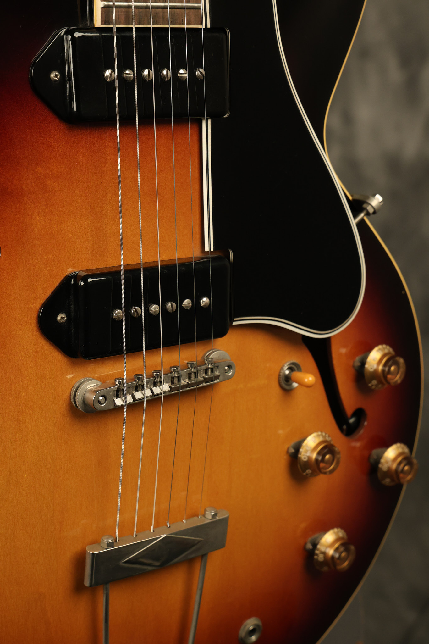 1960 Gibson ES-330 in its original Sunburst finish. It has a great playing neck with great frets. It's all original and 100% complete along with its original brown hardshell case. There was another tailpiece installed at one point in time which has left 2 extra screw holes that are concealed by the original tailpiece. There has never been an upper strap button installed. It's in EXCELLENT condition with only very minor nicks + dings, extremely light finish checking and other minor cosmetic wear. A very small detail, but worth noting is that the pickguard bracket screw hole was originally drilled just a hair too far from the edge of the body as the bracket is not perfectly flush against the side of the body. The pickguard is still just as secure and the guitar itself remains structurally sound with no cracks, breaks or repairs. All electronics work and sound great.