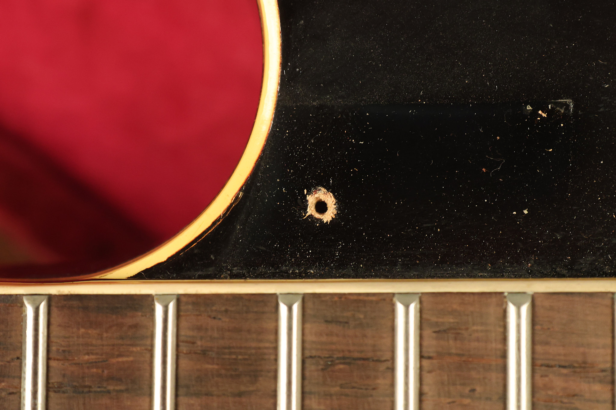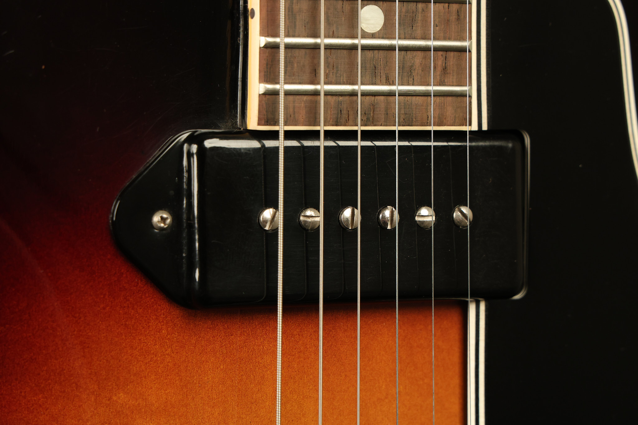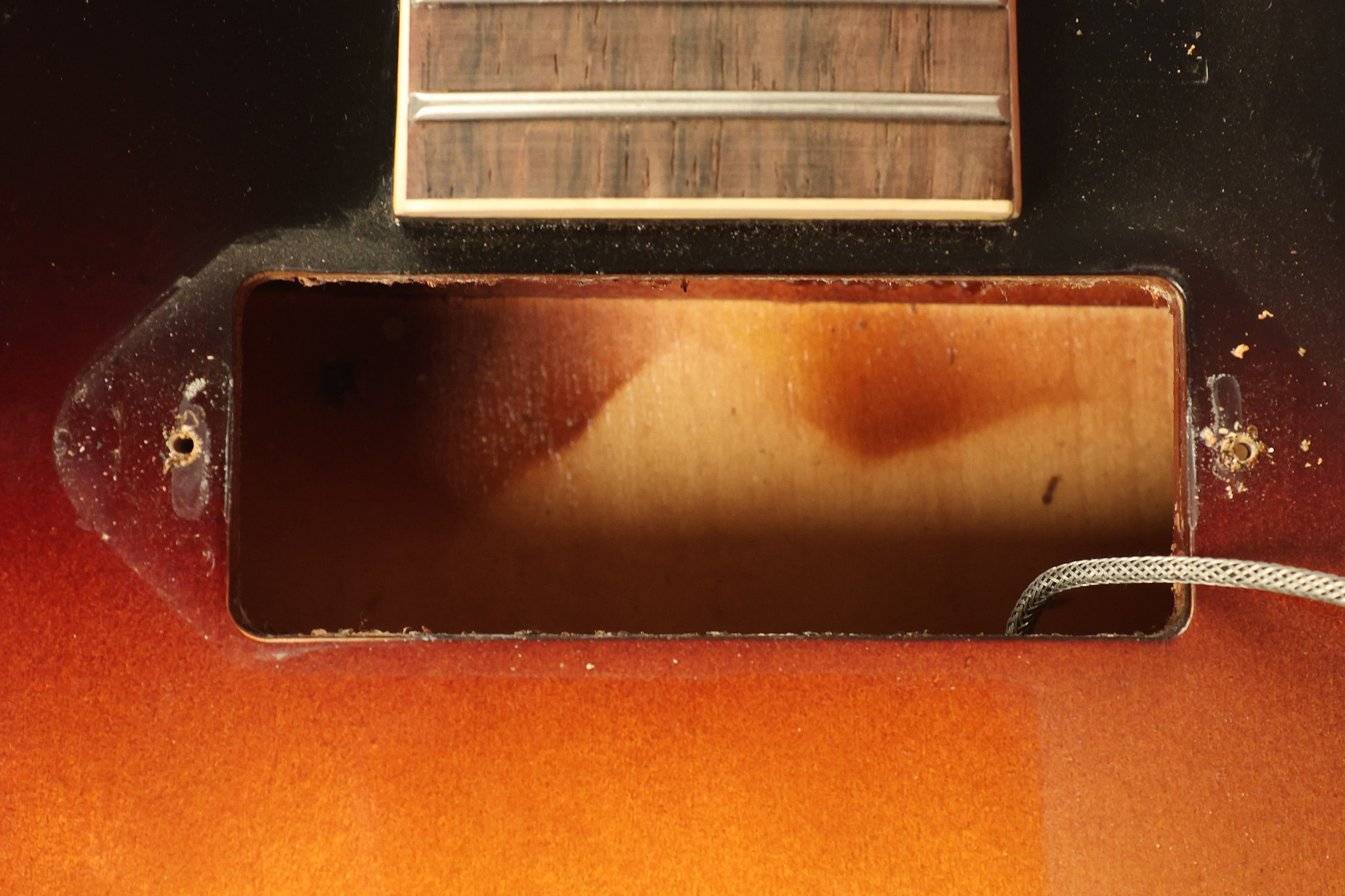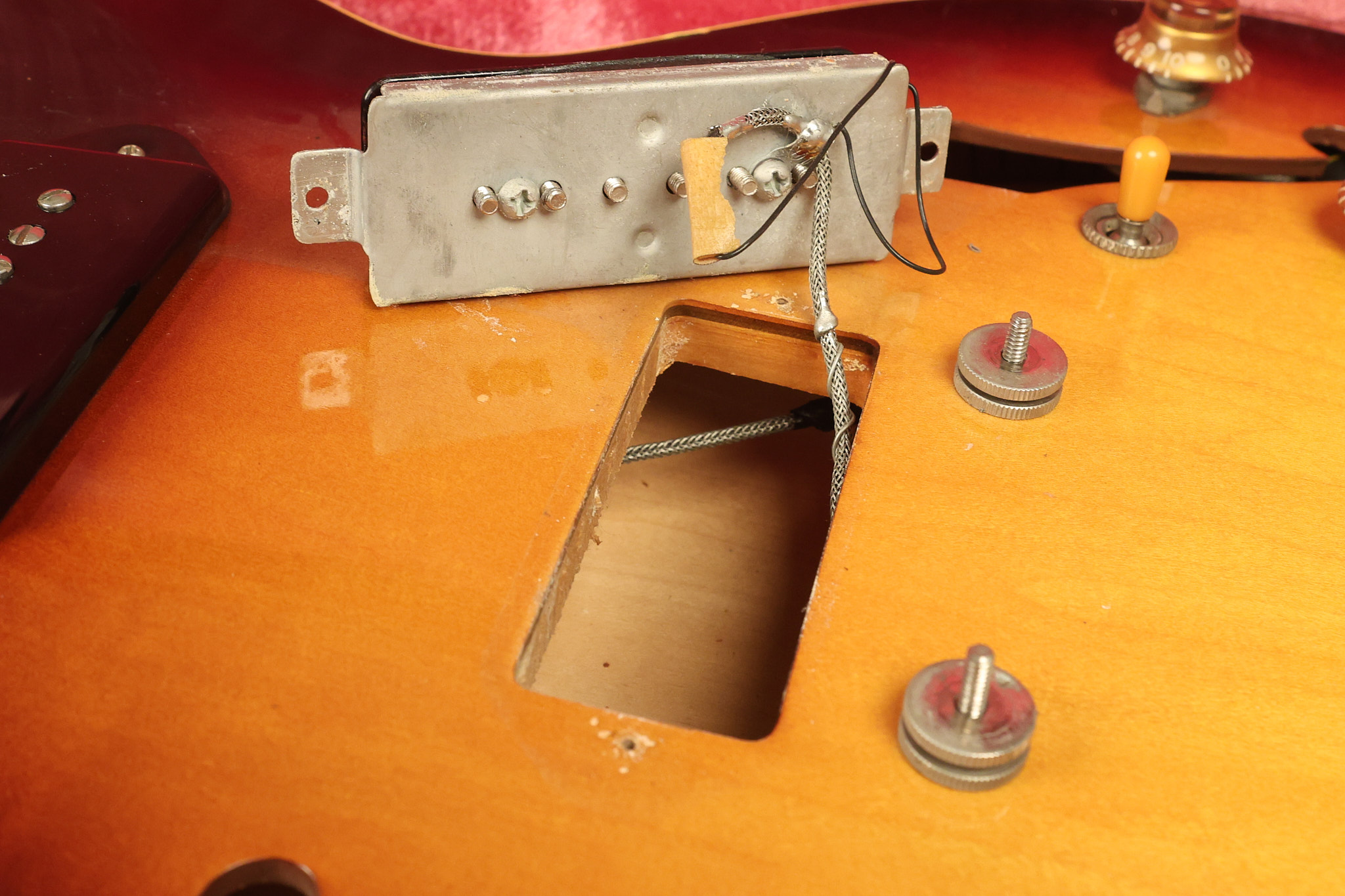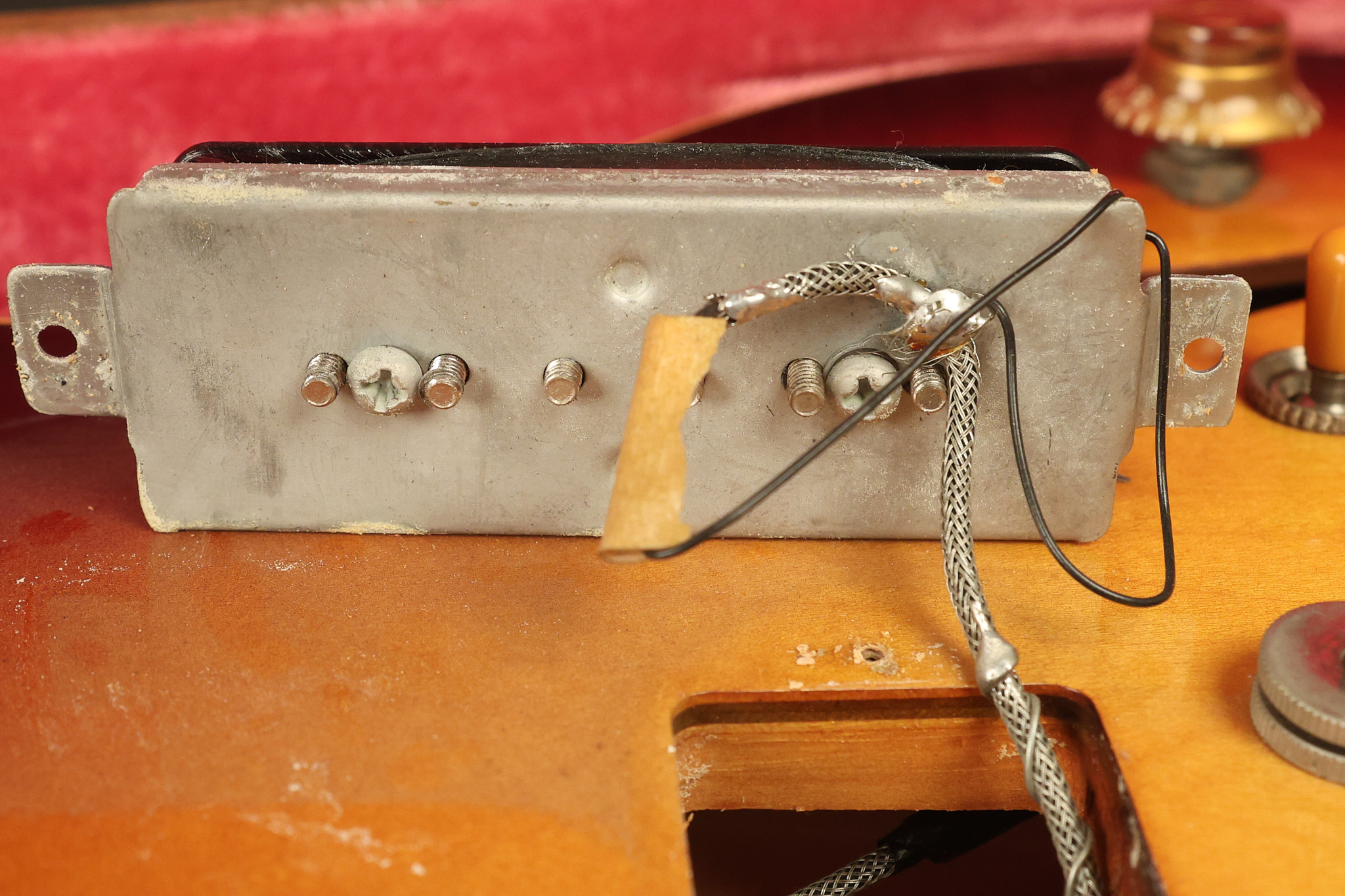 1960 Gibson ES-330 in its original Sunburst finish. It has a great playing neck with great frets. It's all original and 100% complete along with its original brown hardshell case. There was another tailpiece installed at one point in time which has left 2 extra screw holes that are concealed by the original tailpiece. There has never been an upper strap button installed. It's in EXCELLENT condition with only very minor nicks + dings, extremely light finish checking and other minor cosmetic wear. A very small detail, but worth noting is that the pickguard bracket screw hole was originally drilled just a hair too far from the edge of the body as the bracket is not perfectly flush against the side of the body. The pickguard is still just as secure and the guitar itself remains structurally sound with no cracks, breaks or repairs. All electronics work and sound great.