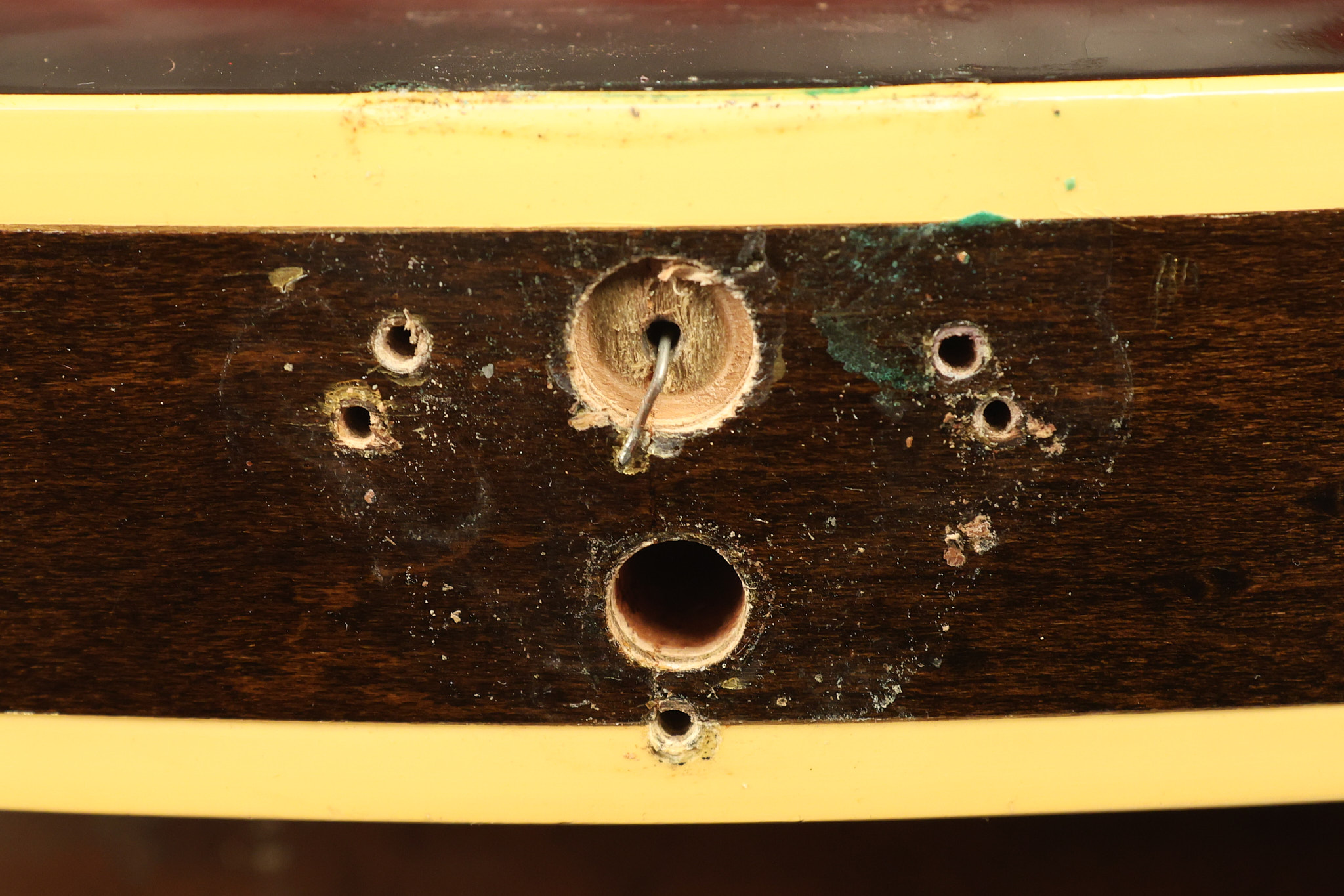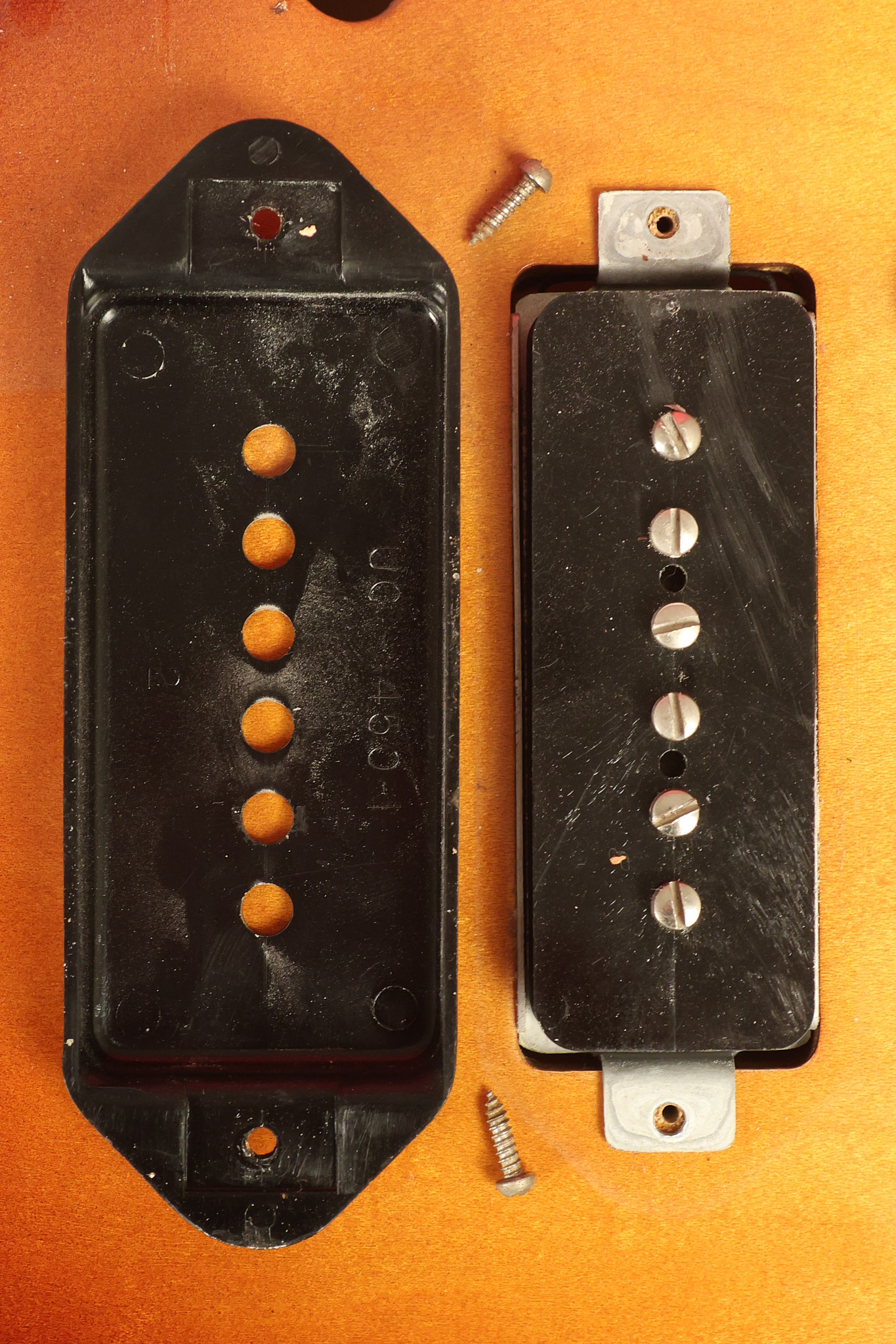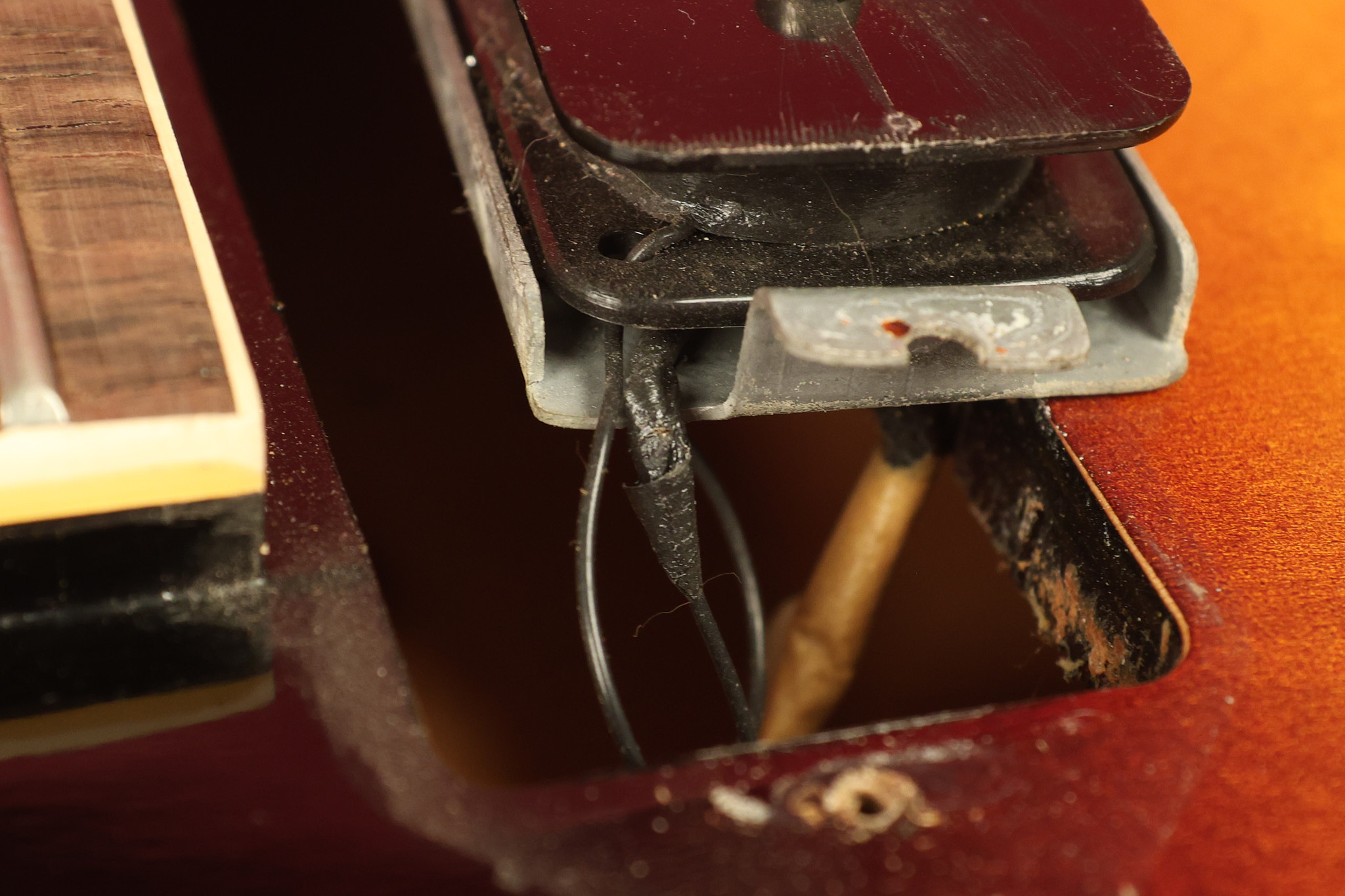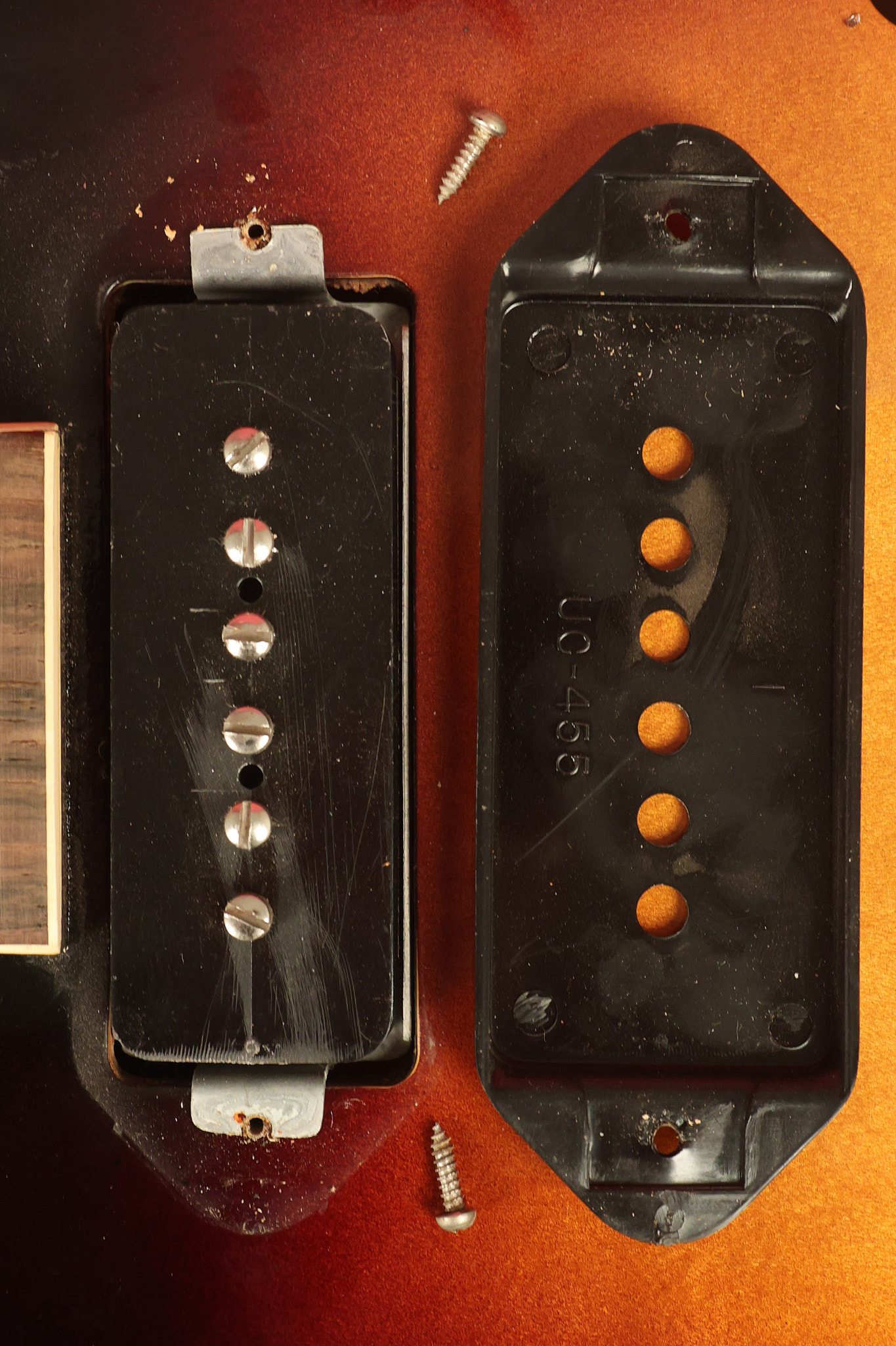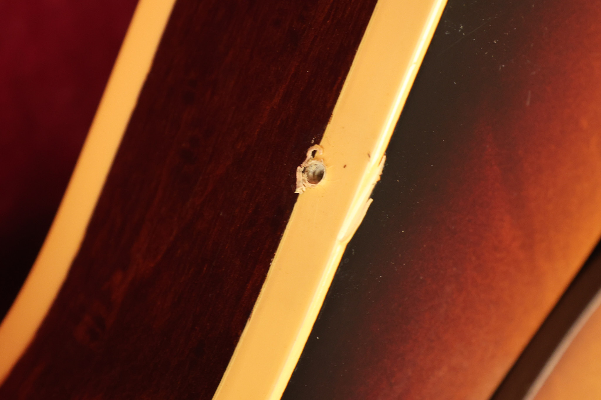 1960 Gibson ES-330 in its original Sunburst finish. It has a great playing neck with great frets. It's all original and 100% complete along with its original brown hardshell case. There was another tailpiece installed at one point in time which has left 2 extra screw holes that are concealed by the original tailpiece. There has never been an upper strap button installed. It's in EXCELLENT condition with only very minor nicks + dings, extremely light finish checking and other minor cosmetic wear. A very small detail, but worth noting is that the pickguard bracket screw hole was originally drilled just a hair too far from the edge of the body as the bracket is not perfectly flush against the side of the body. The pickguard is still just as secure and the guitar itself remains structurally sound with no cracks, breaks or repairs. All electronics work and sound great.