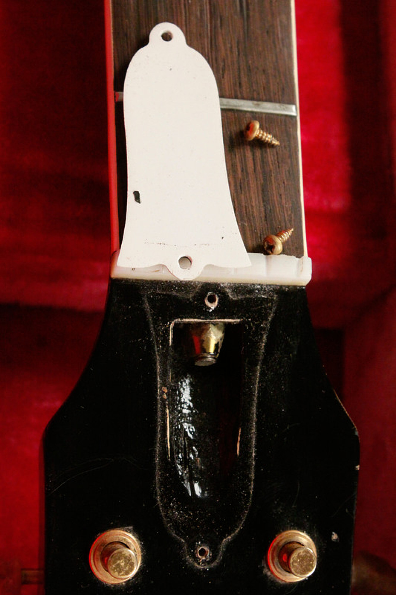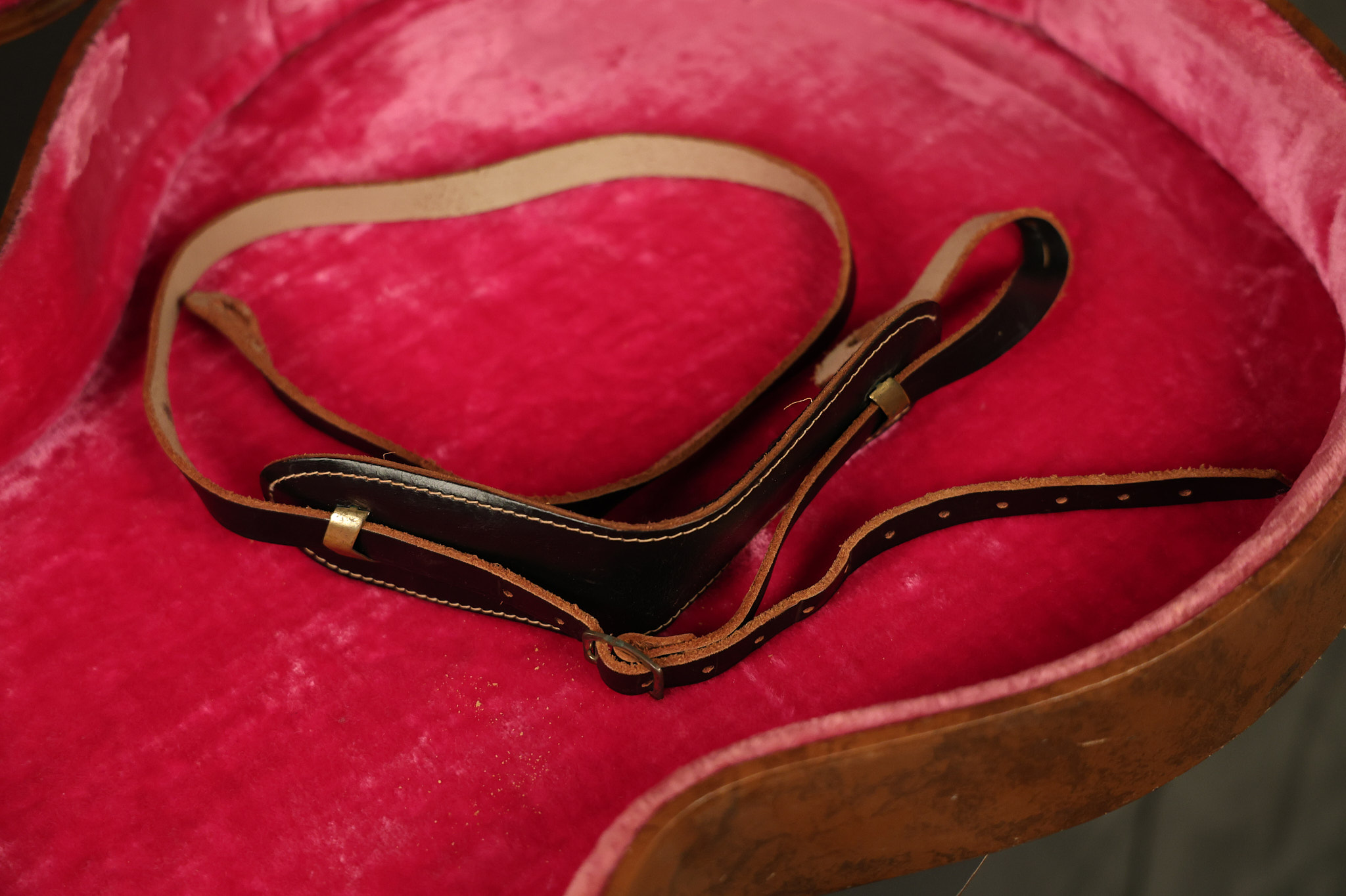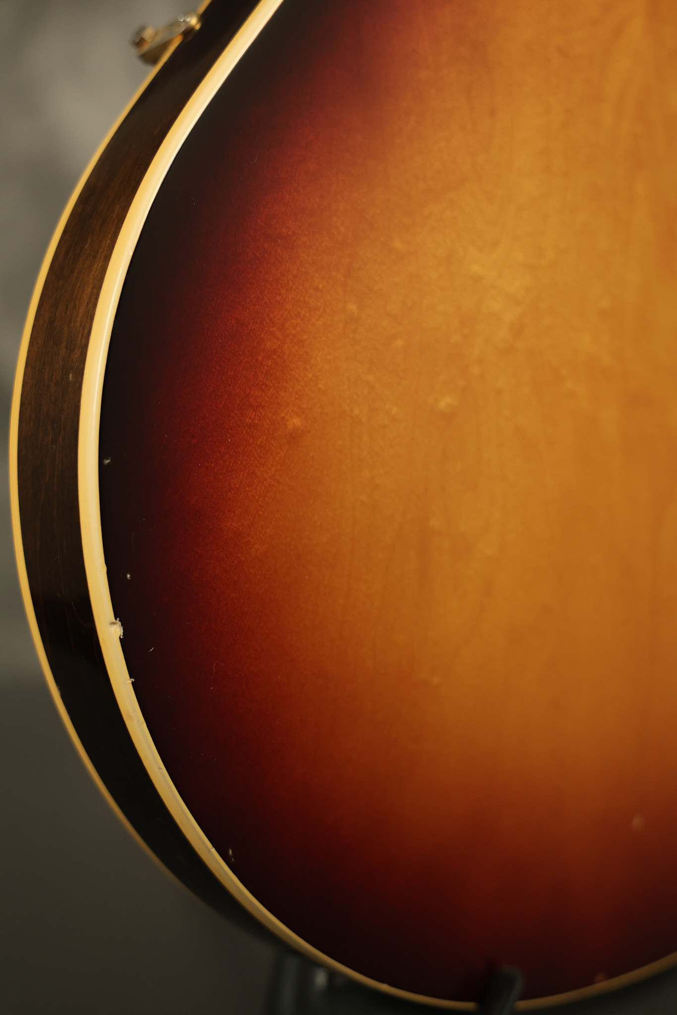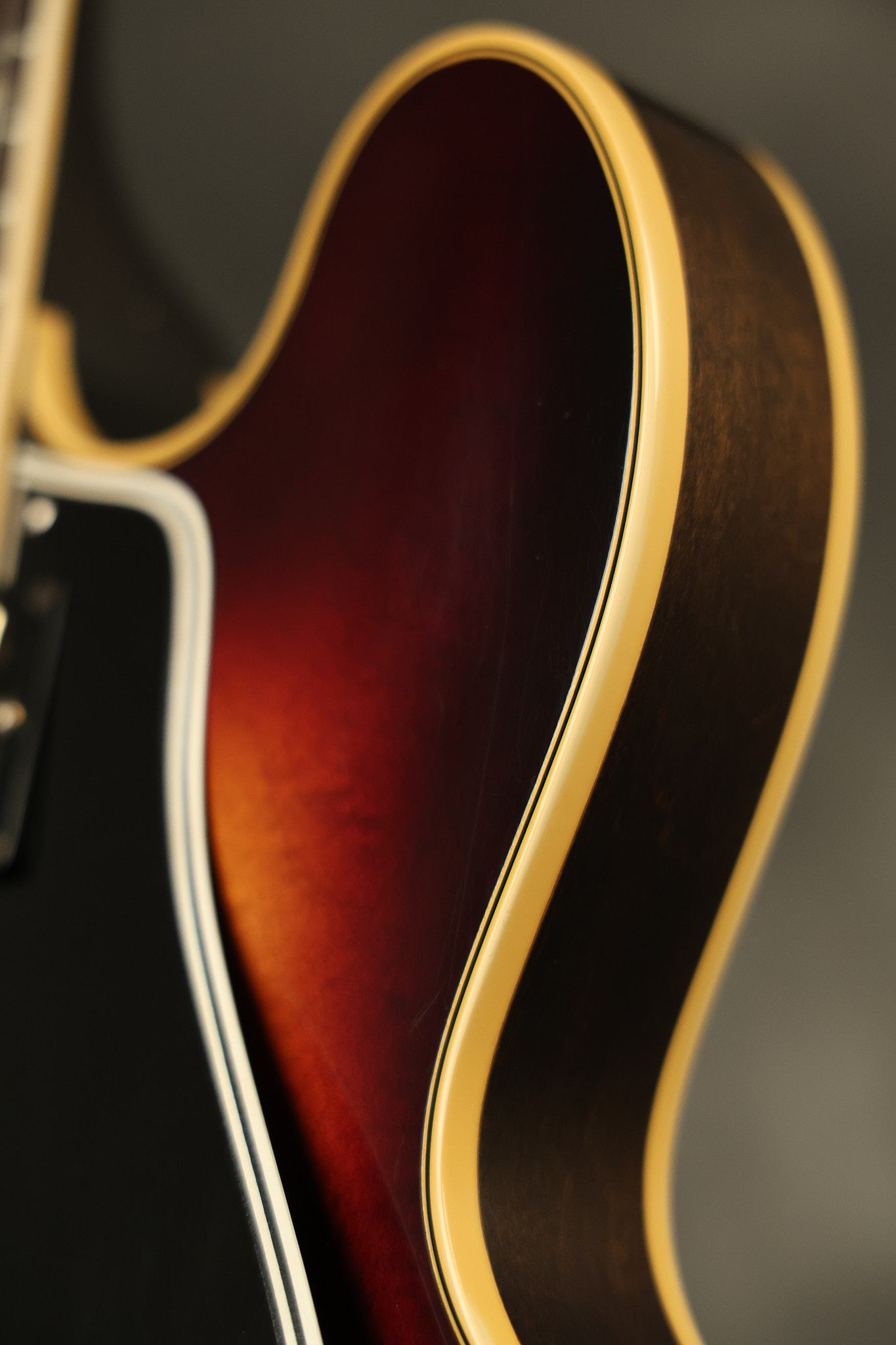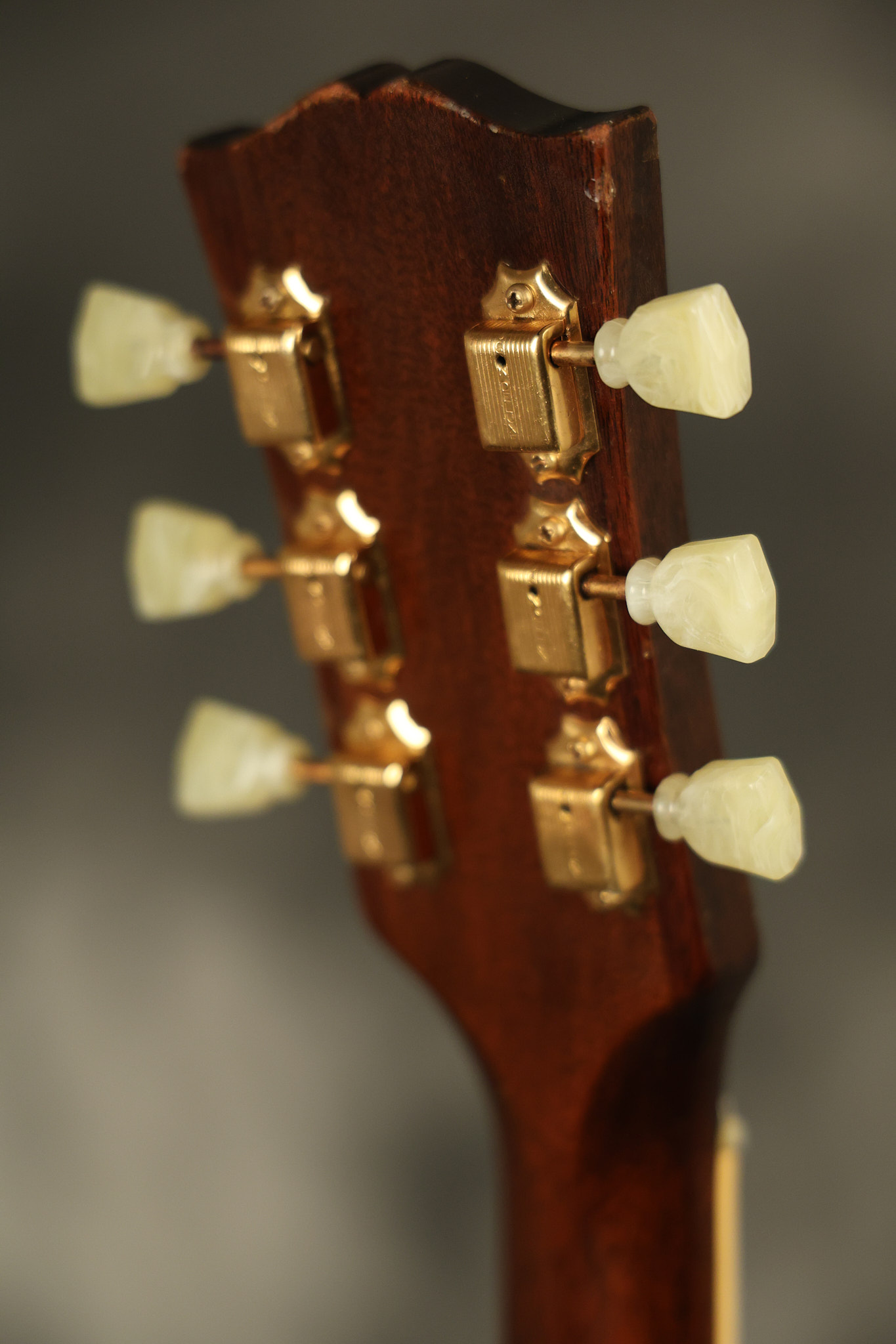 1960 Gibson ES-345 in its original Sunburst finish which has really maintained its brilliance. It has a great playing neck with good frets. It's all original except for 4 replaced tuning buttons, and 100% complete along with its original hardshell case. There are 4 small screw holes on the bottom edge where a Bigsby had been installed at one time. This 345 looks great with some nicks + dings and other cosmetic wear. The guitar itself remains structurally sound with no cracks, breaks or repairs. All electronics work and sound great with its original set of "Zebra" (black/white) PAF pickups. The cover have been removed at one point in time before being soldered back in place.