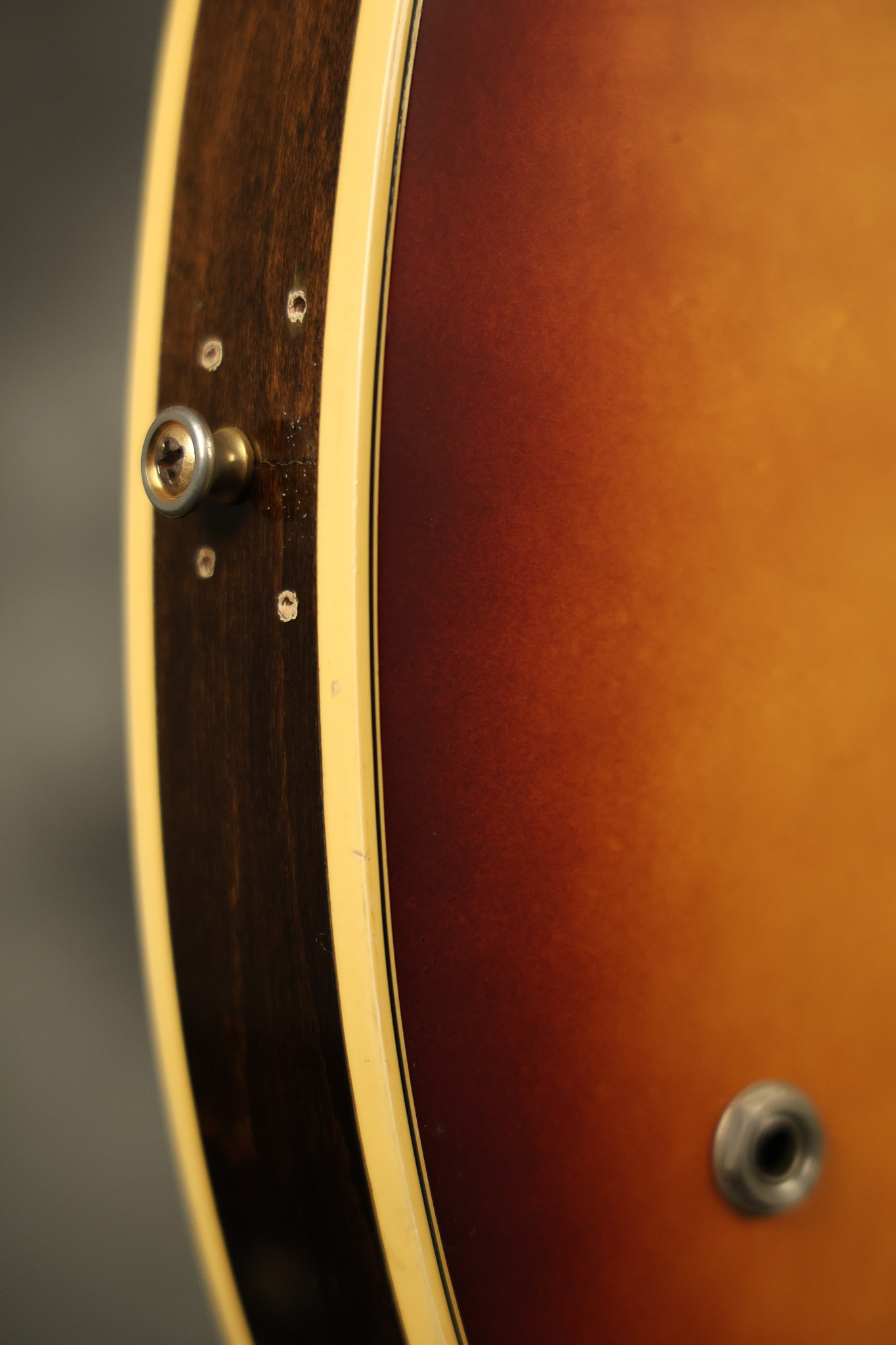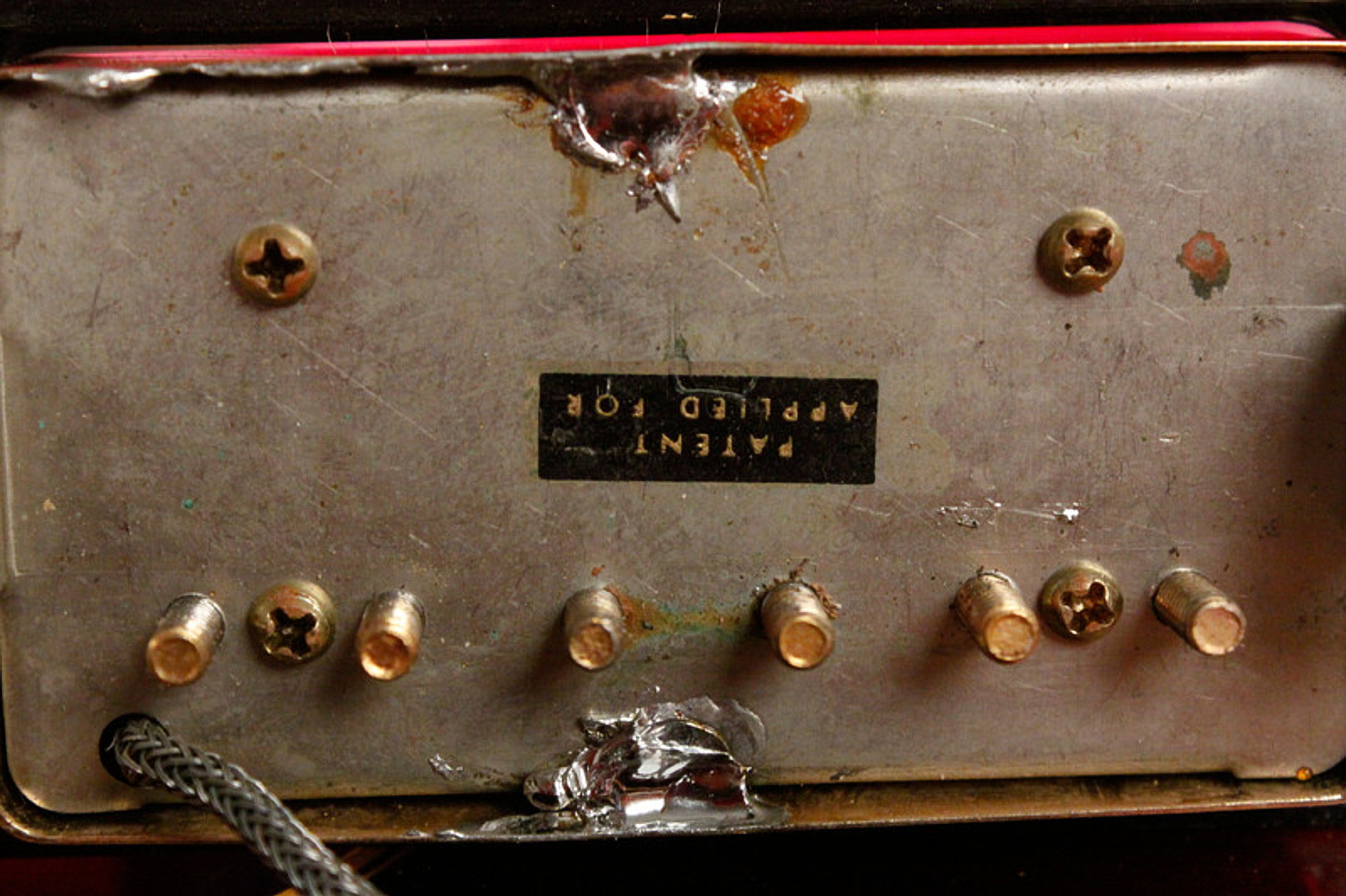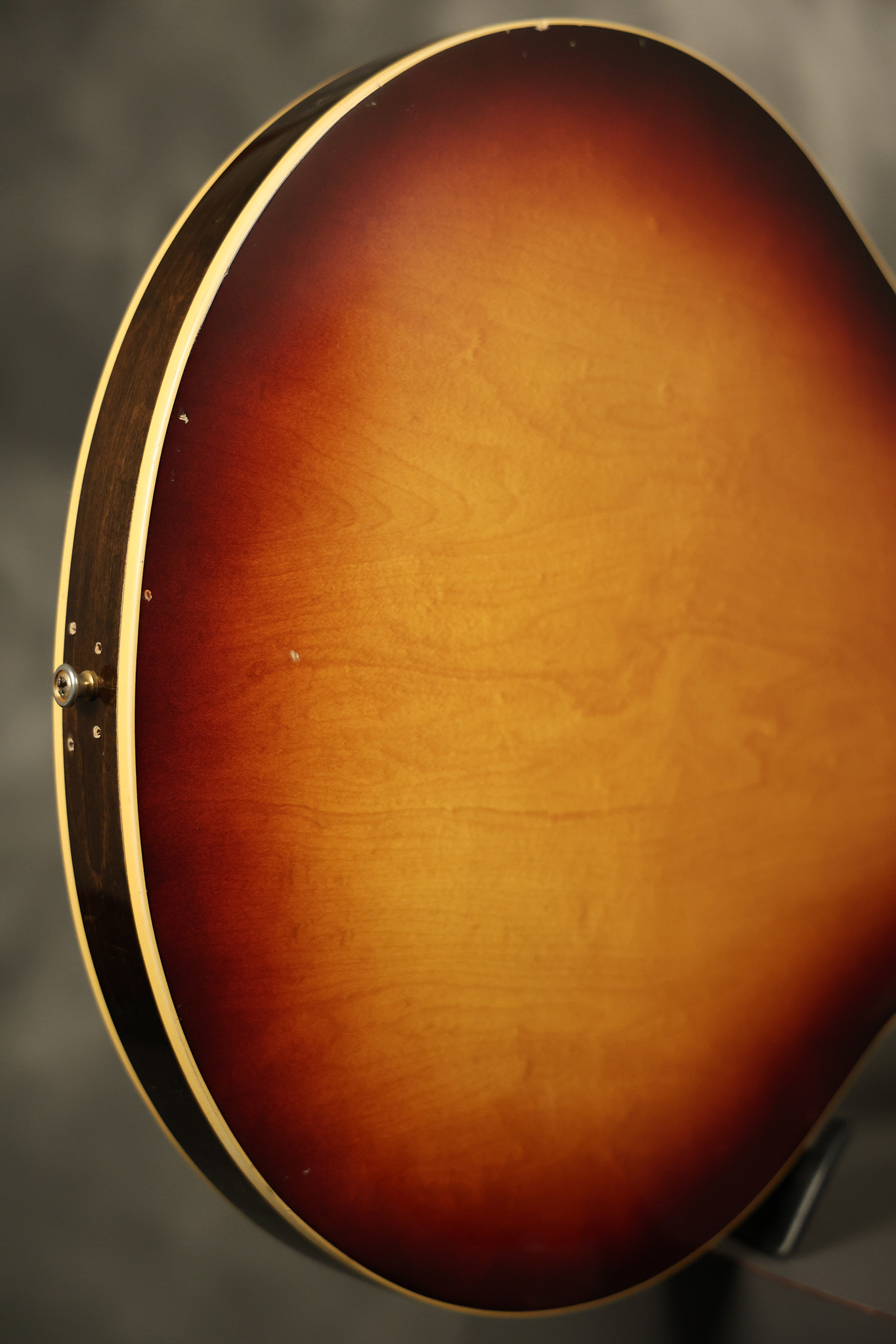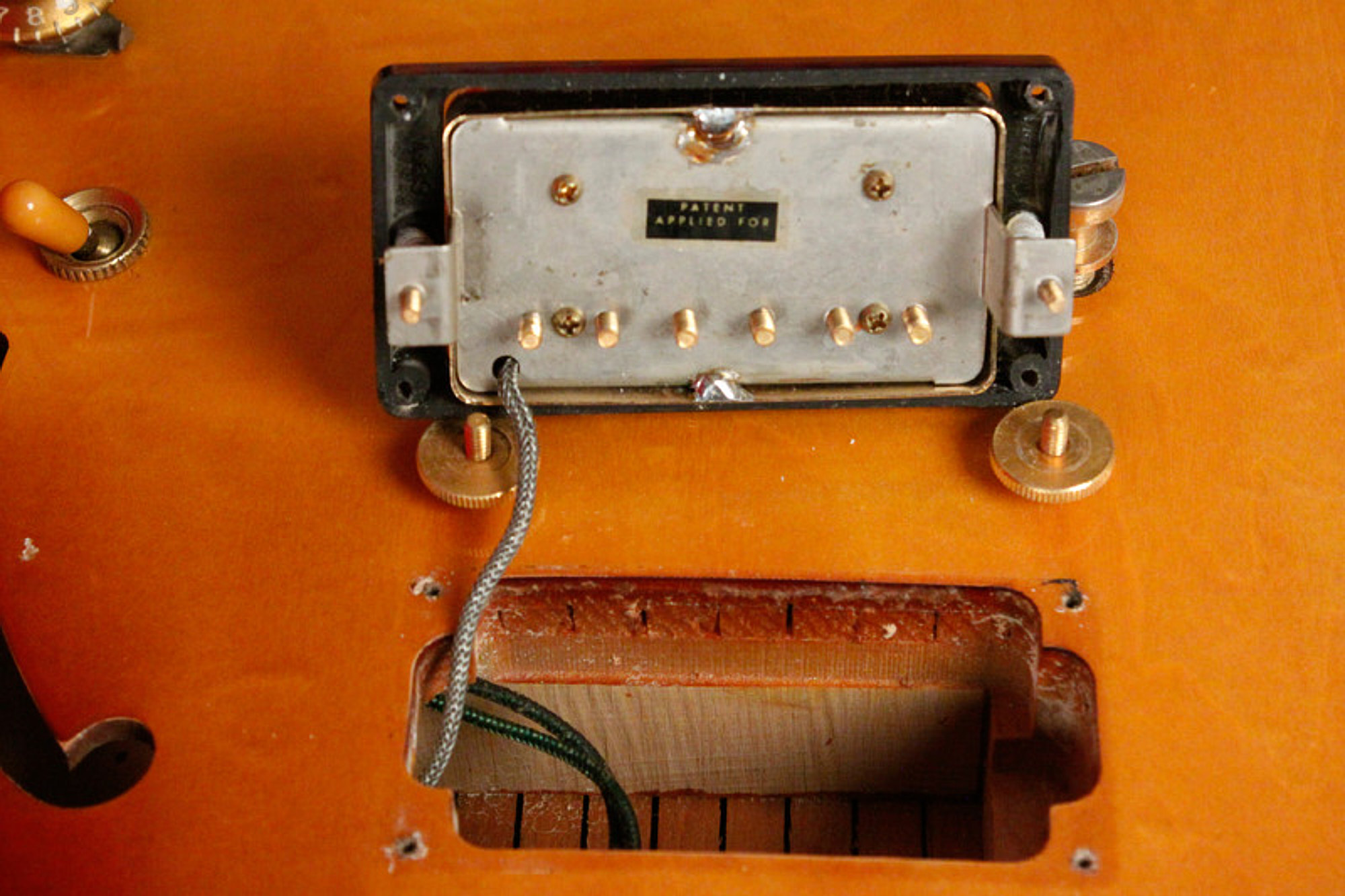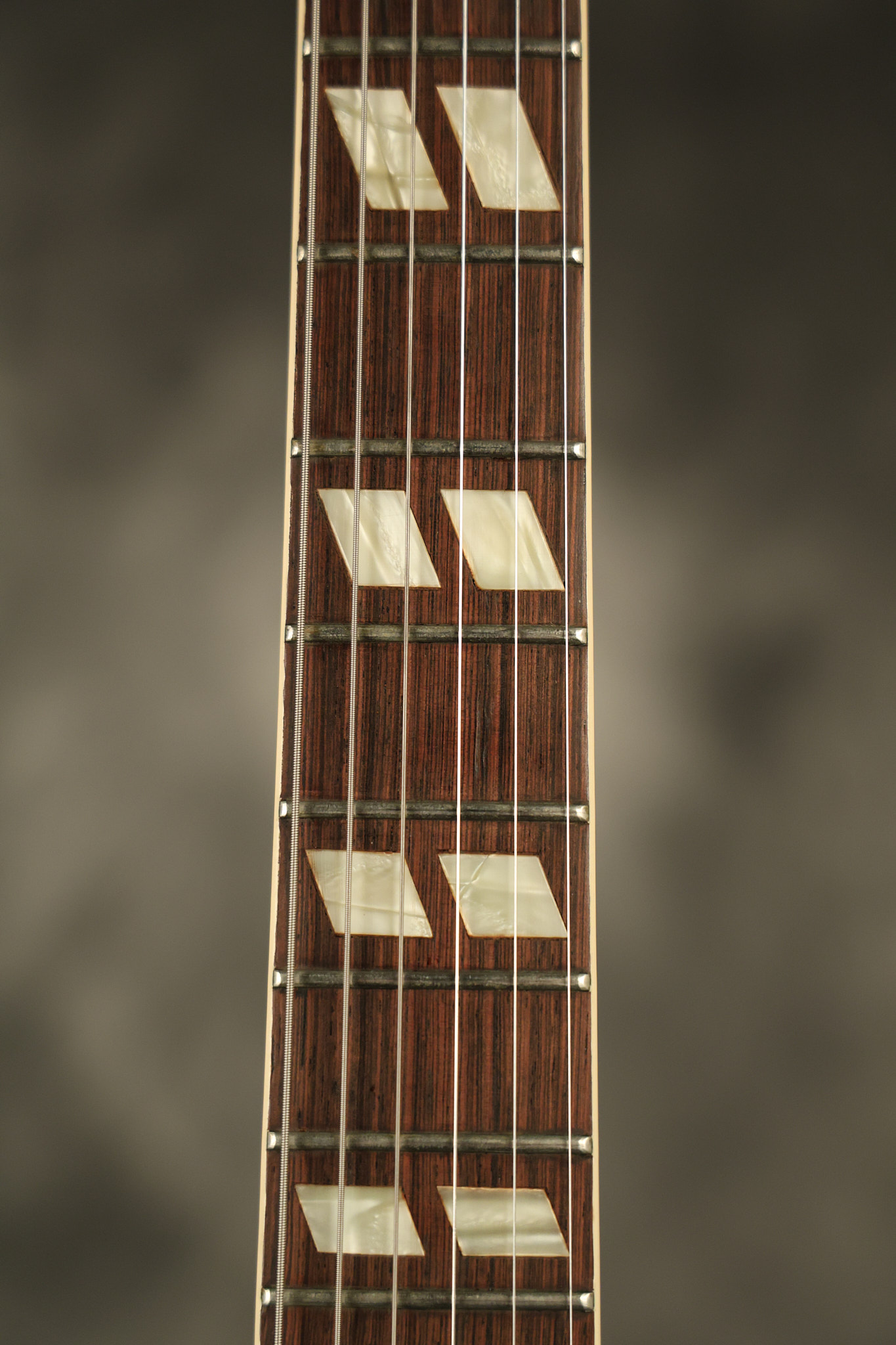 1960 Gibson ES-345 in its original Sunburst finish which has really maintained its brilliance. It has a great playing neck with good frets. It's all original except for 4 replaced tuning buttons, and 100% complete along with its original hardshell case. There are 4 small screw holes on the bottom edge where a Bigsby had been installed at one time. This 345 looks great with some nicks + dings and other cosmetic wear. The guitar itself remains structurally sound with no cracks, breaks or repairs. All electronics work and sound great with its original set of "Zebra" (black/white) PAF pickups. The cover have been removed at one point in time before being soldered back in place.
