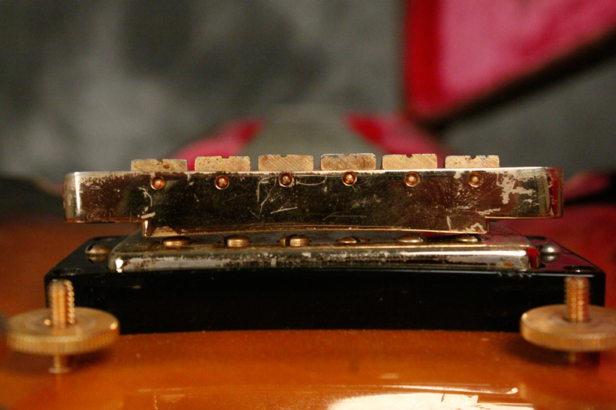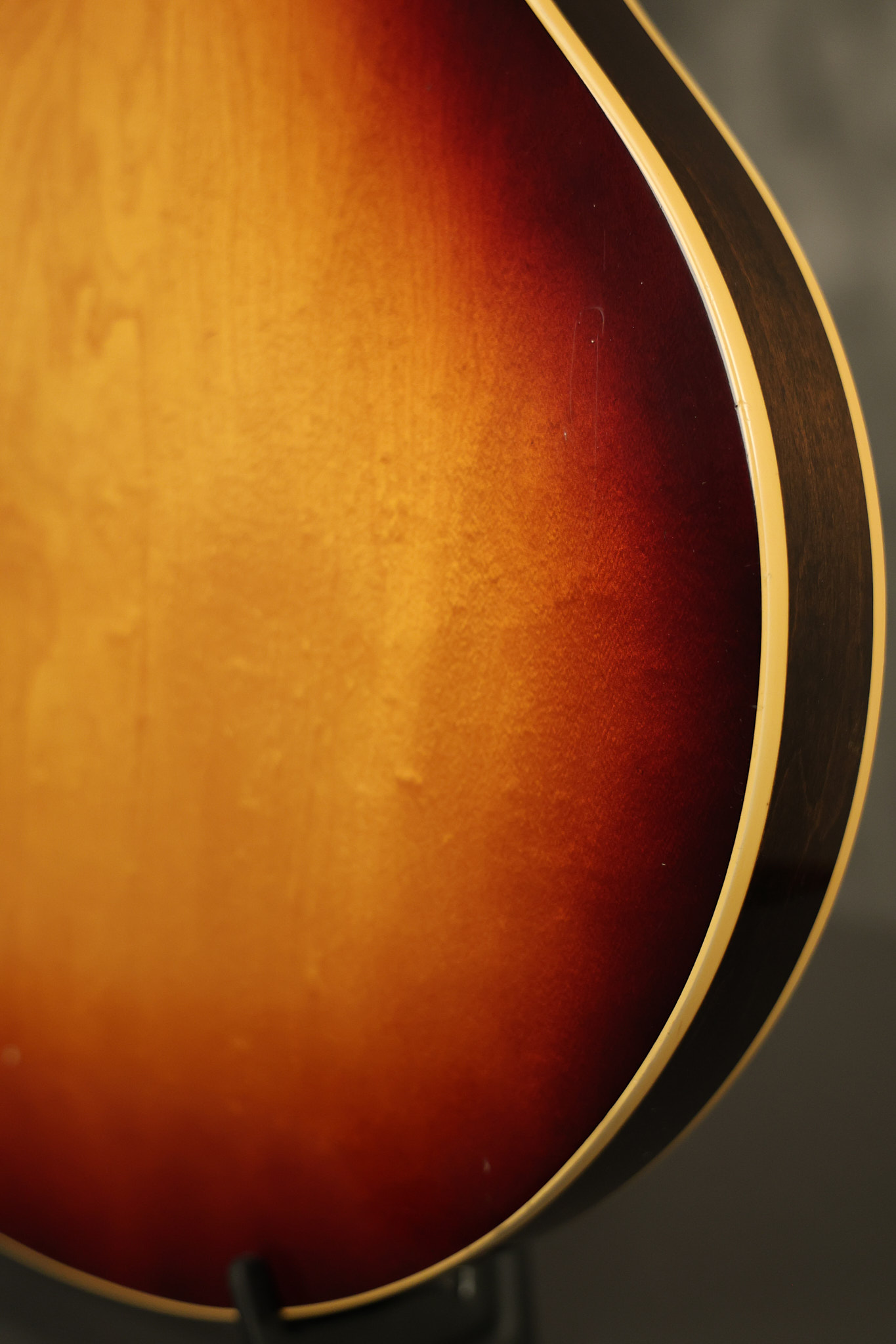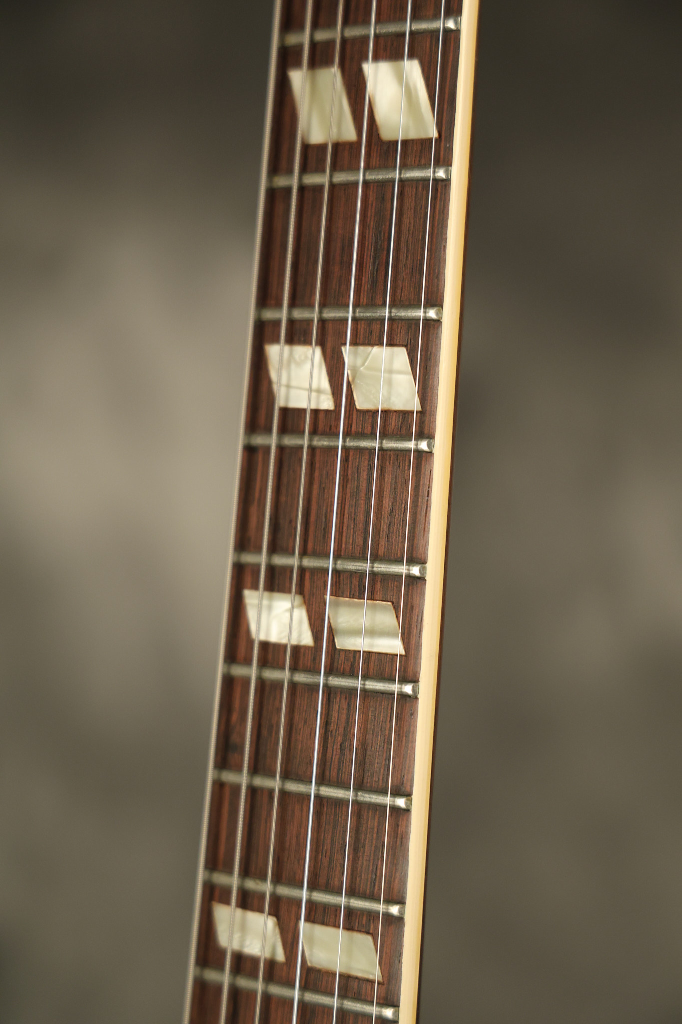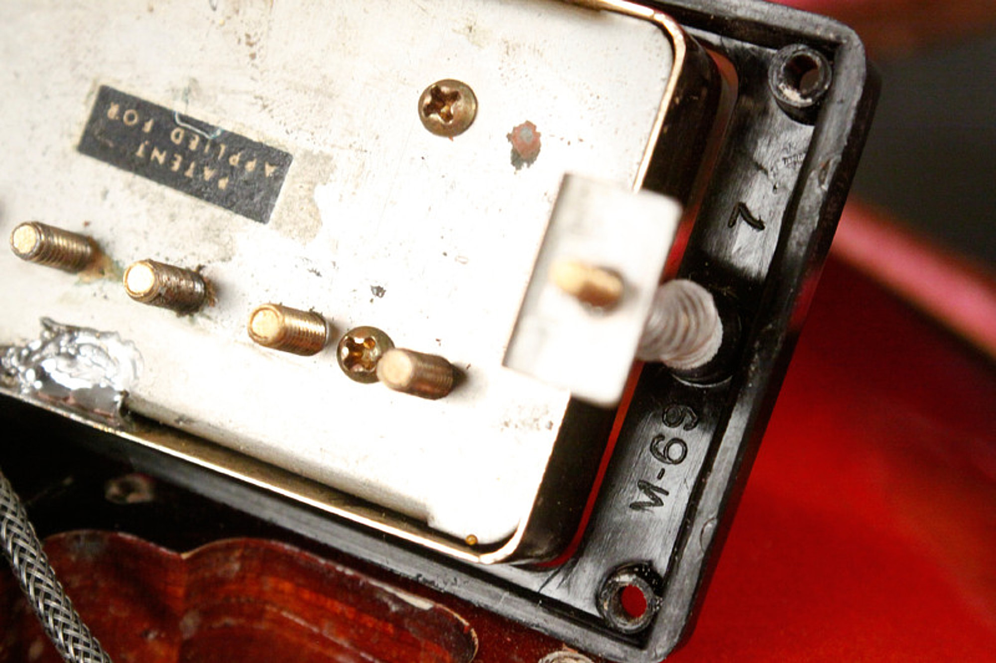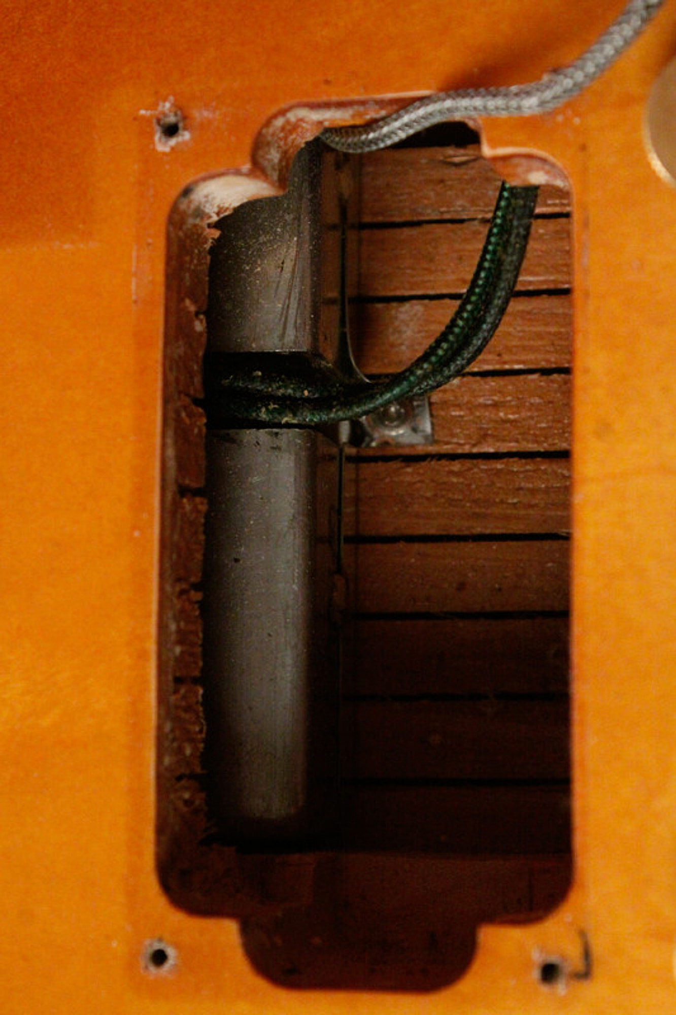 1960 Gibson ES-345 in its original Sunburst finish which has really maintained its brilliance. It has a great playing neck with good frets. It's all original except for 4 replaced tuning buttons, and 100% complete along with its original hardshell case. There are 4 small screw holes on the bottom edge where a Bigsby had been installed at one time. This 345 looks great with some nicks + dings and other cosmetic wear. The guitar itself remains structurally sound with no cracks, breaks or repairs. All electronics work and sound great with its original set of "Zebra" (black/white) PAF pickups. The cover have been removed at one point in time before being soldered back in place.