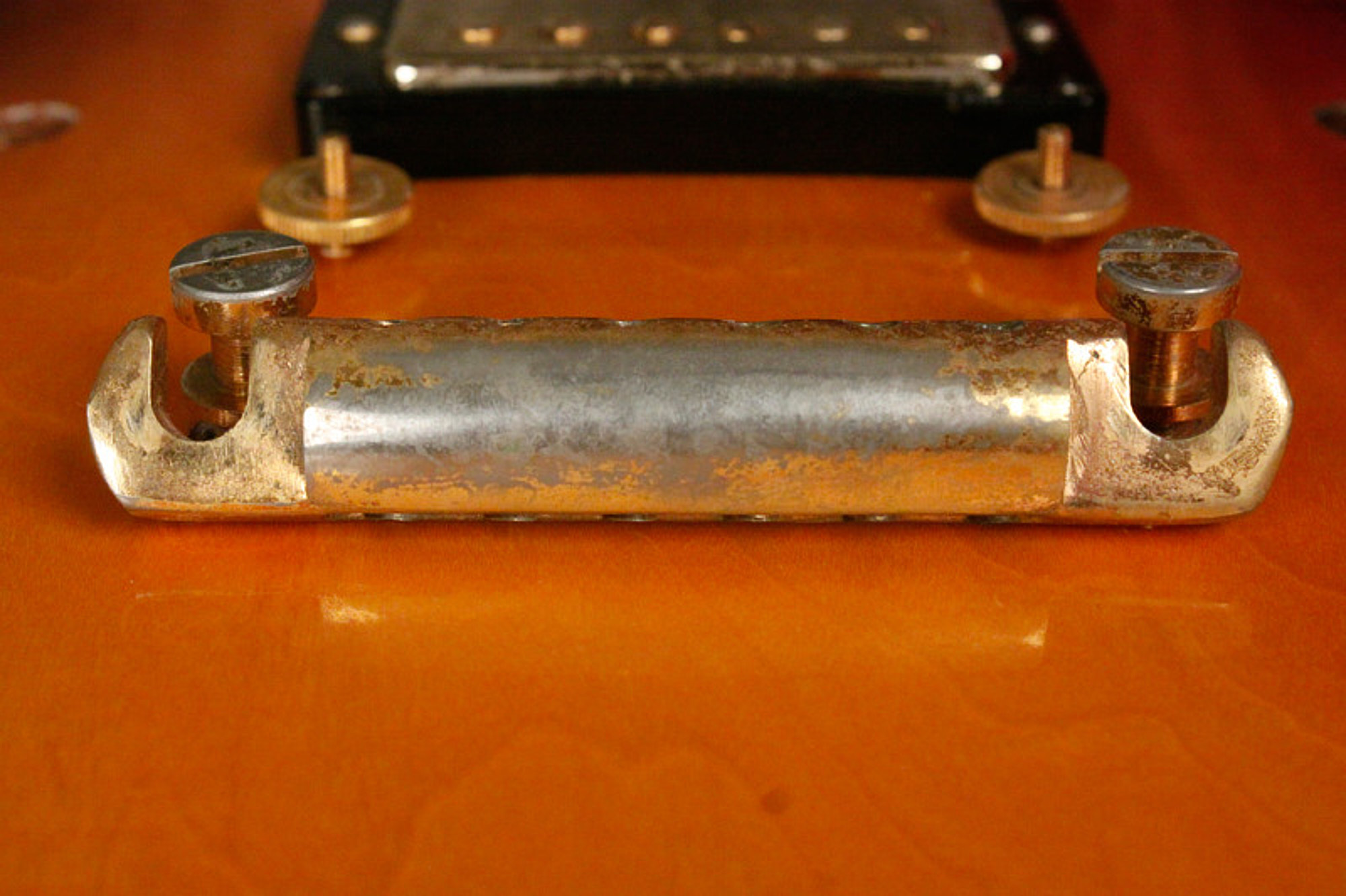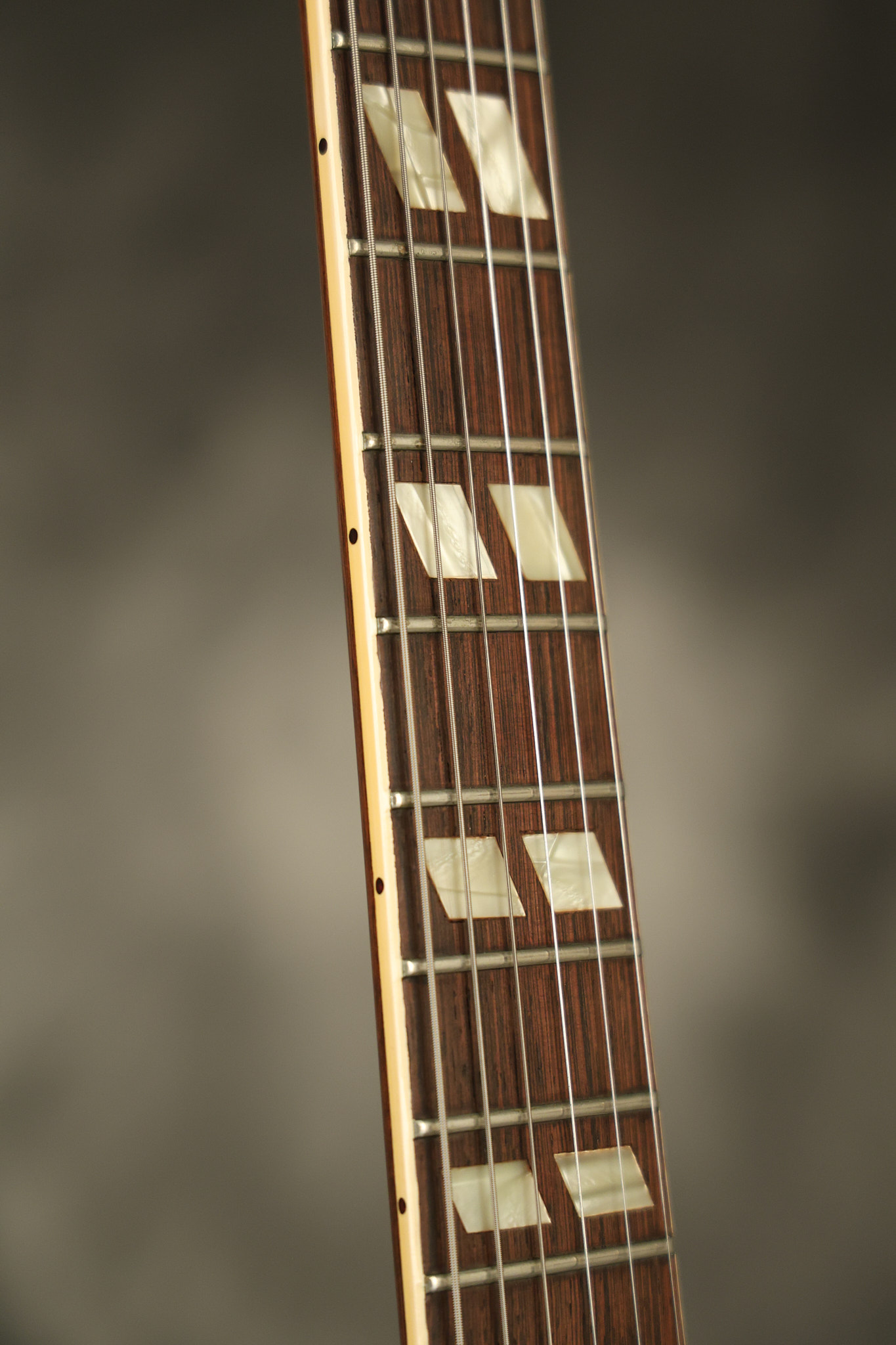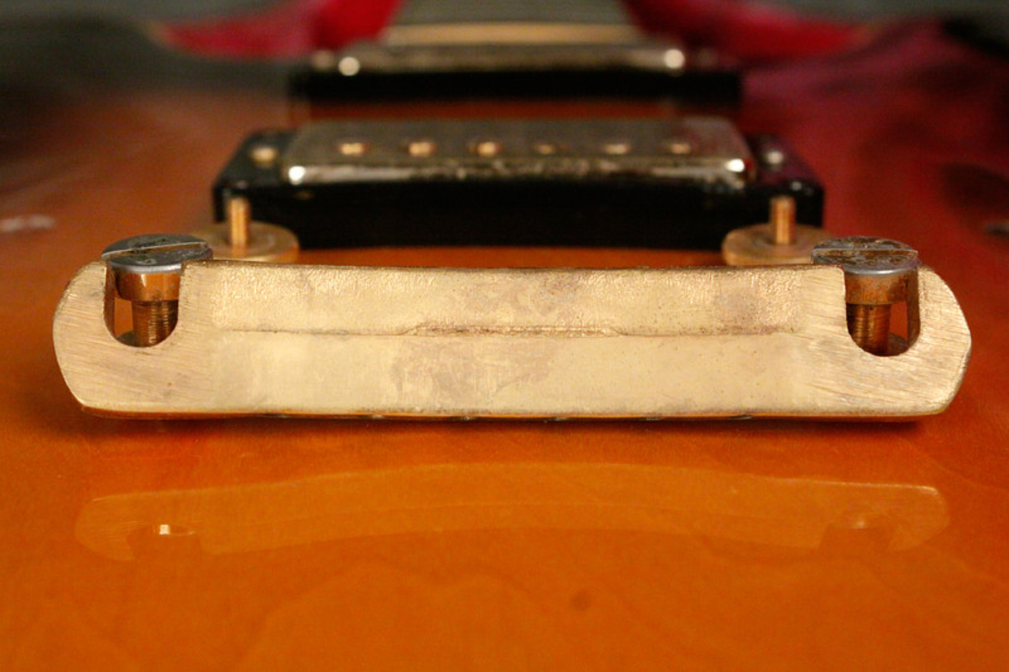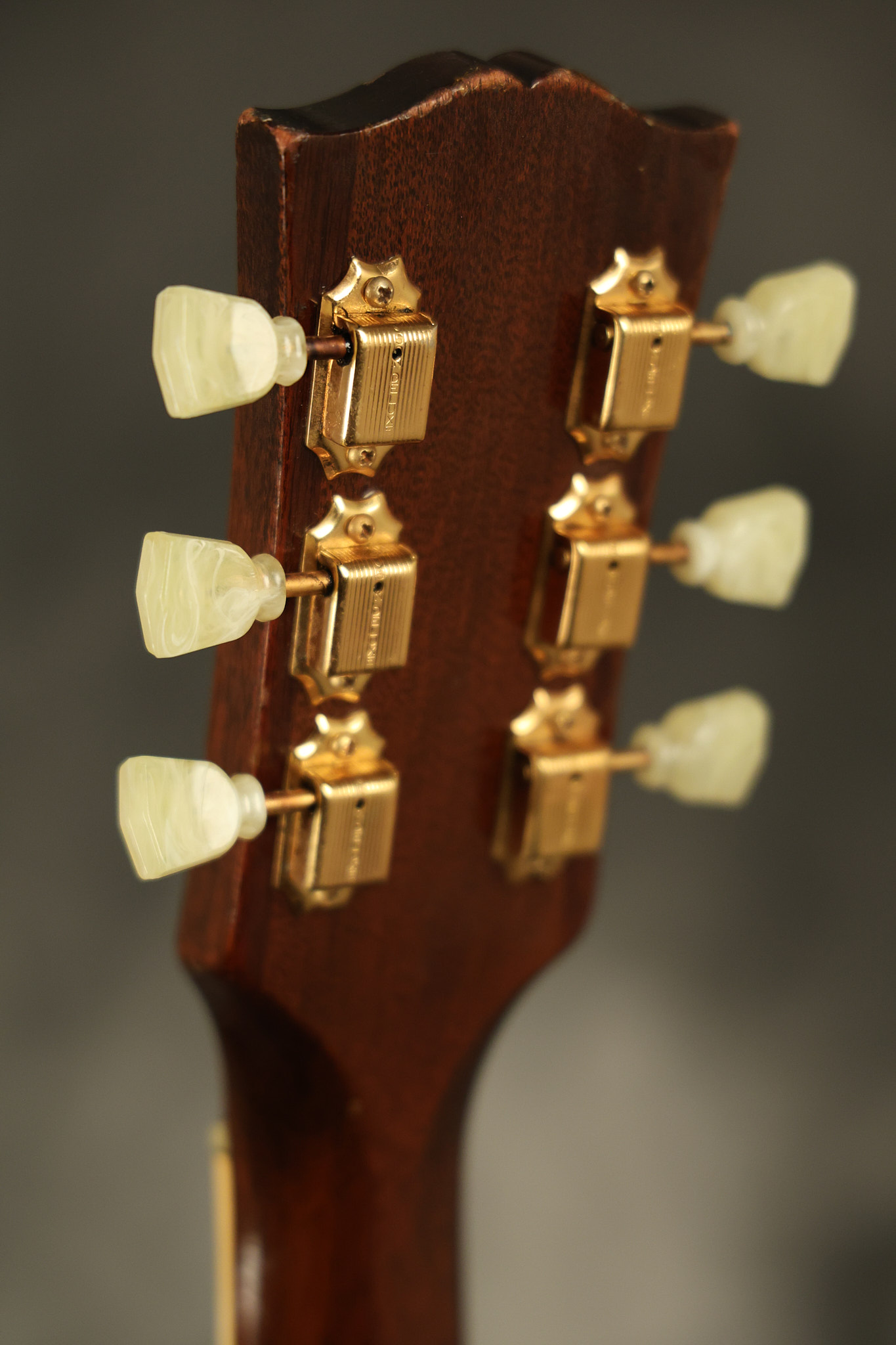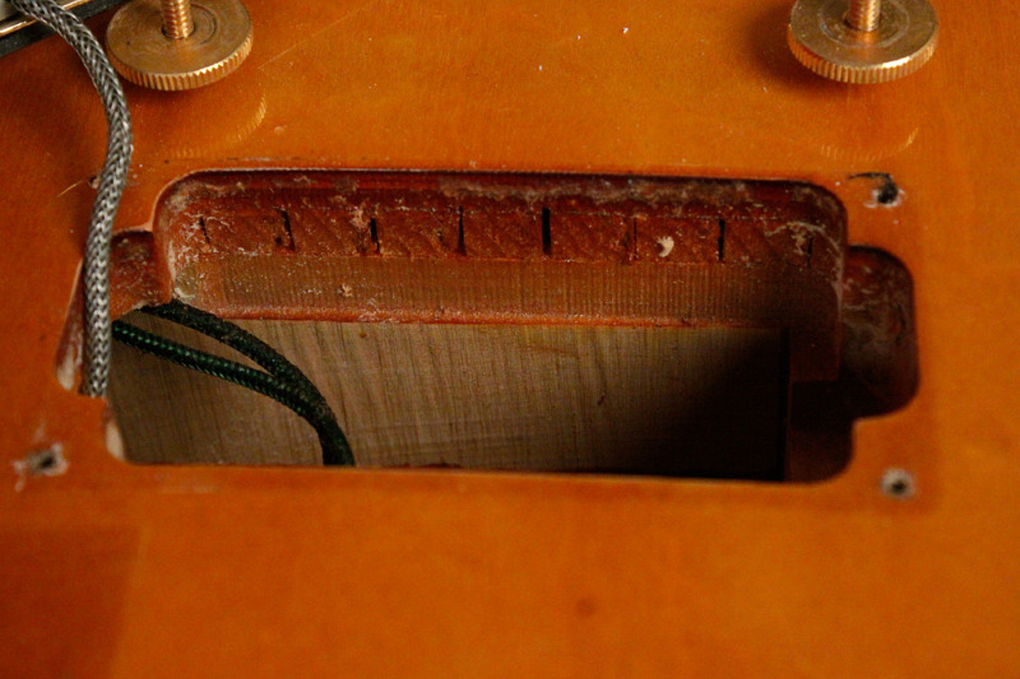 1960 Gibson ES-345 in its original Sunburst finish which has really maintained its brilliance. It has a great playing neck with good frets. It's all original except for 4 replaced tuning buttons, and 100% complete along with its original hardshell case. There are 4 small screw holes on the bottom edge where a Bigsby had been installed at one time. This 345 looks great with some nicks + dings and other cosmetic wear. The guitar itself remains structurally sound with no cracks, breaks or repairs. All electronics work and sound great with its original set of "Zebra" (black/white) PAF pickups. The cover have been removed at one point in time before being soldered back in place.