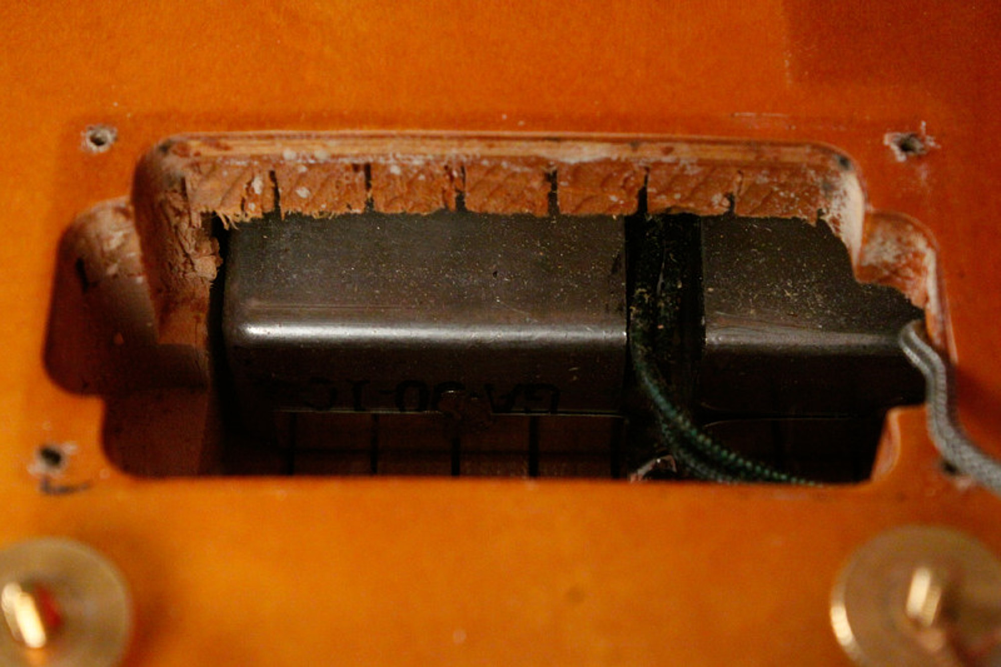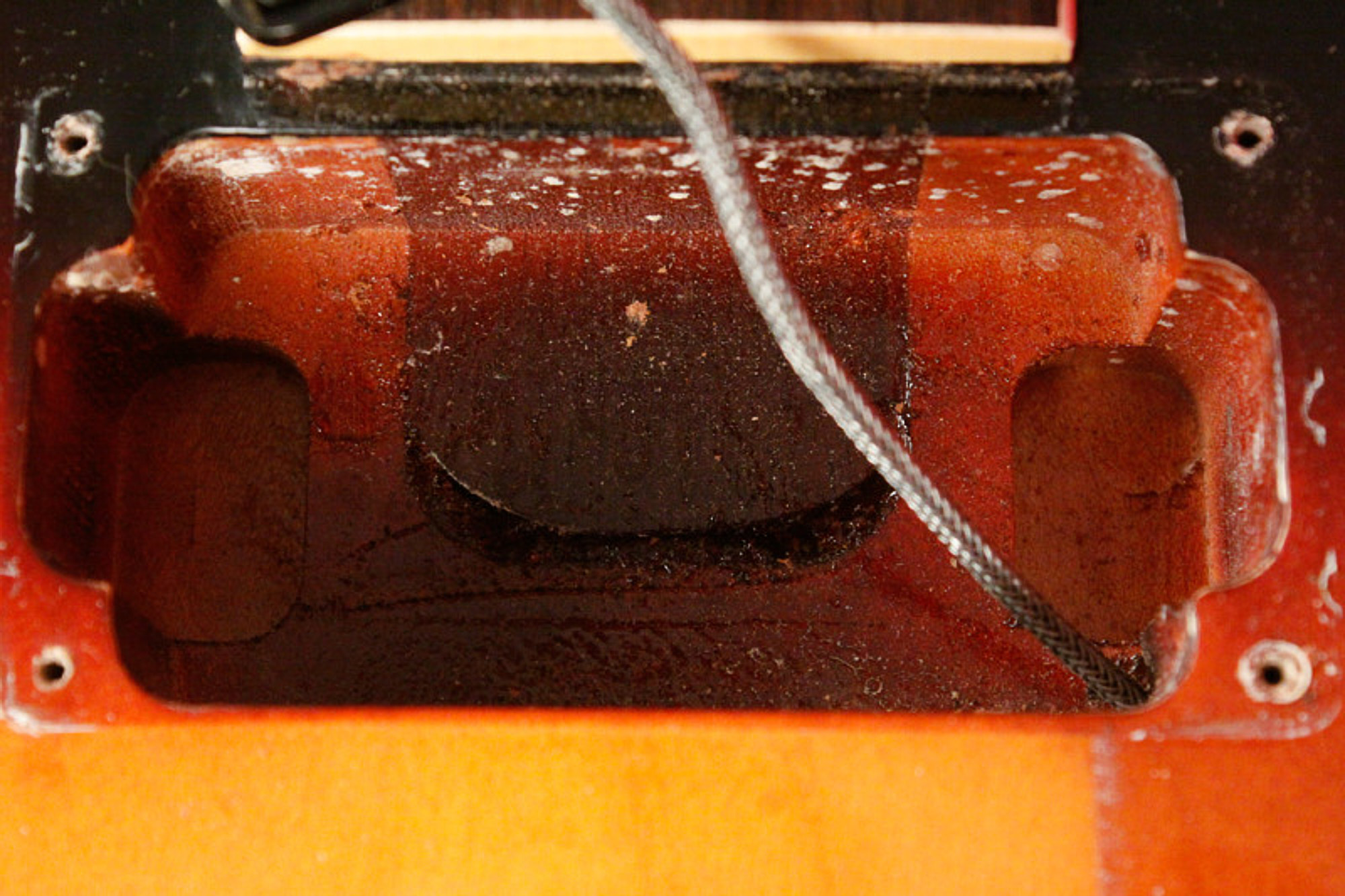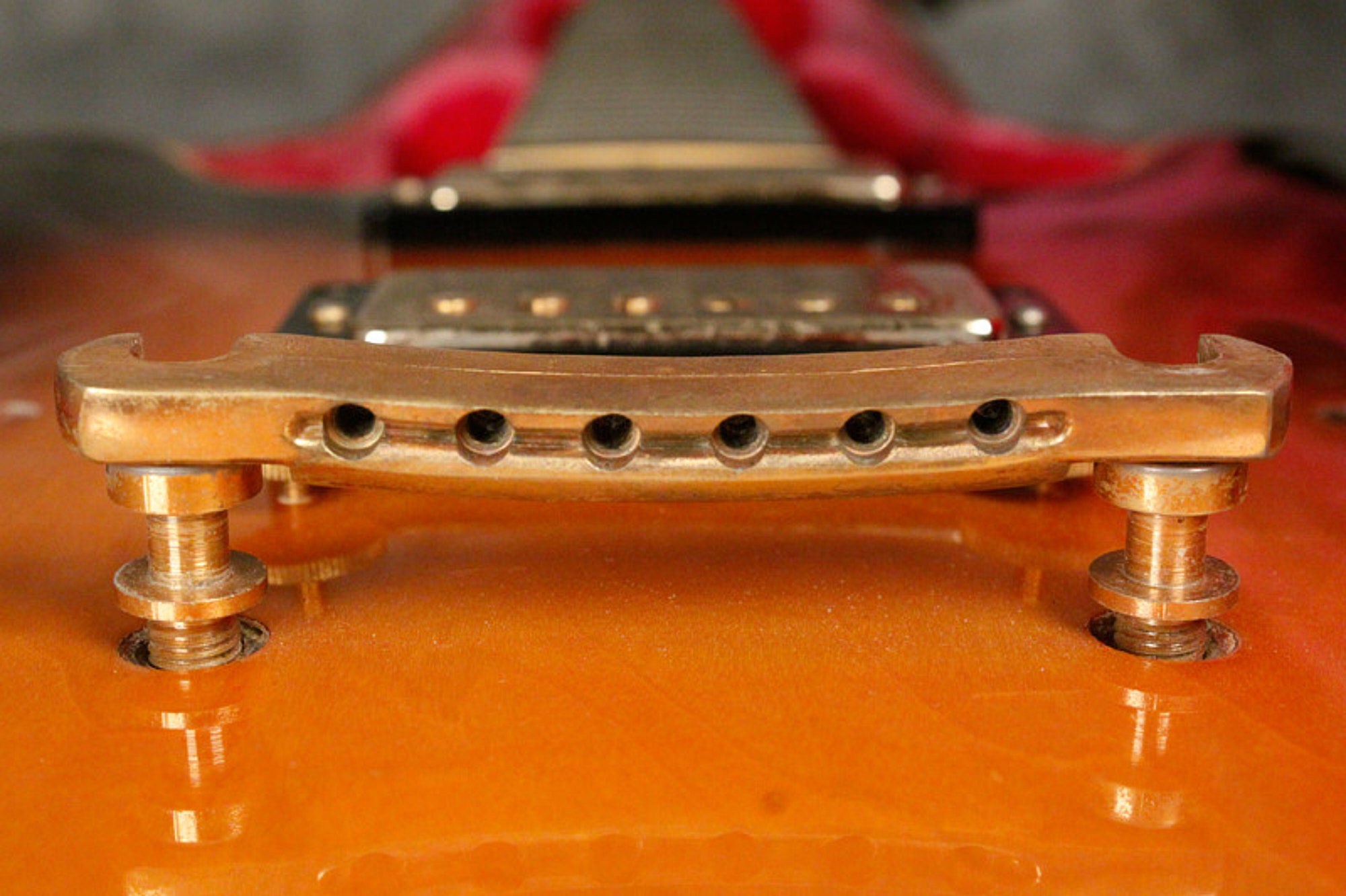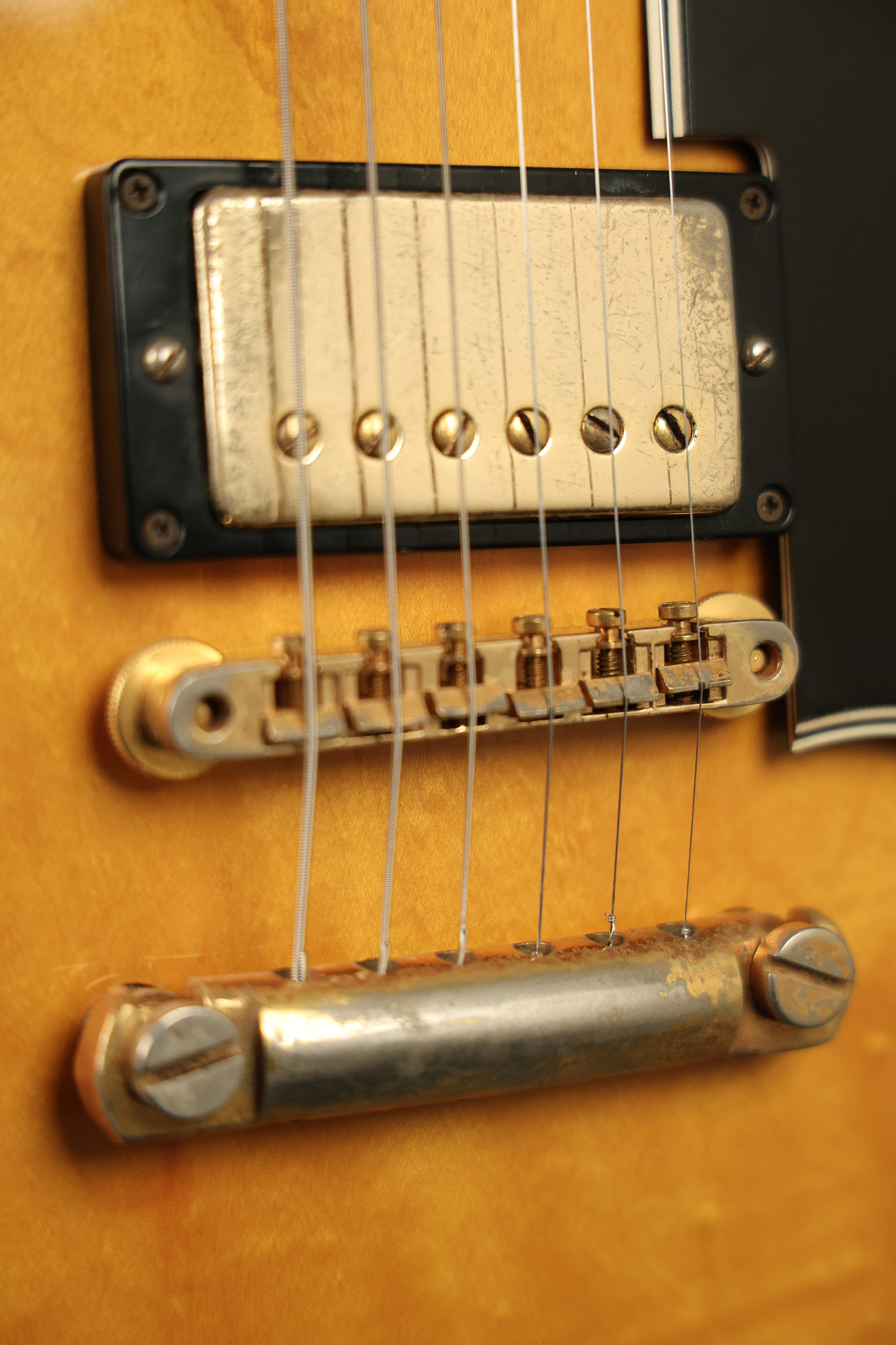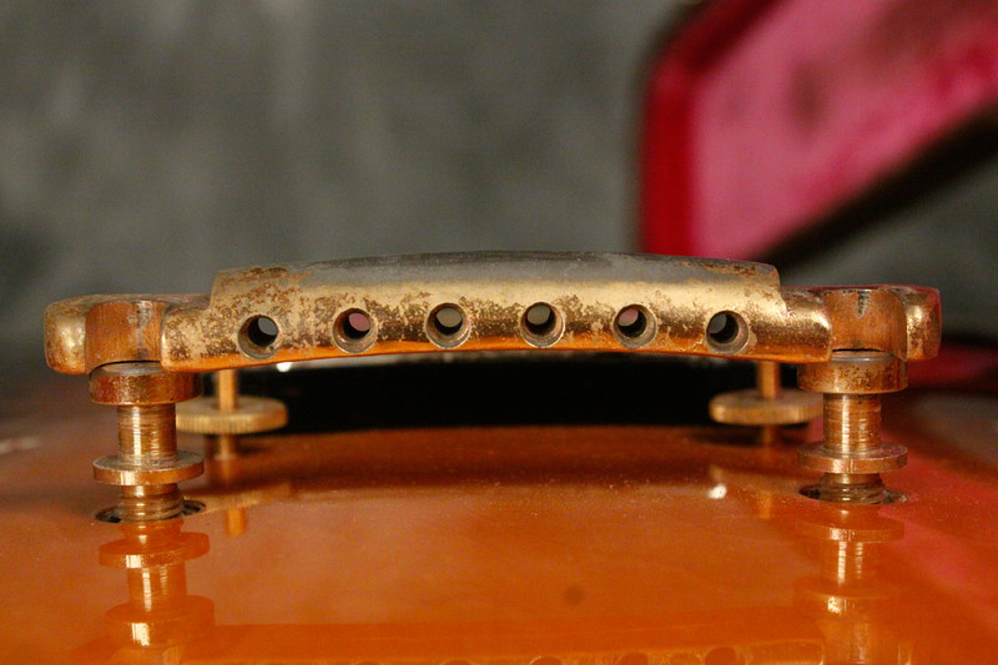 1960 Gibson ES-345 in its original Sunburst finish which has really maintained its brilliance. It has a great playing neck with good frets. It's all original except for 4 replaced tuning buttons, and 100% complete along with its original hardshell case. There are 4 small screw holes on the bottom edge where a Bigsby had been installed at one time. This 345 looks great with some nicks + dings and other cosmetic wear. The guitar itself remains structurally sound with no cracks, breaks or repairs. All electronics work and sound great with its original set of "Zebra" (black/white) PAF pickups. The cover have been removed at one point in time before being soldered back in place.