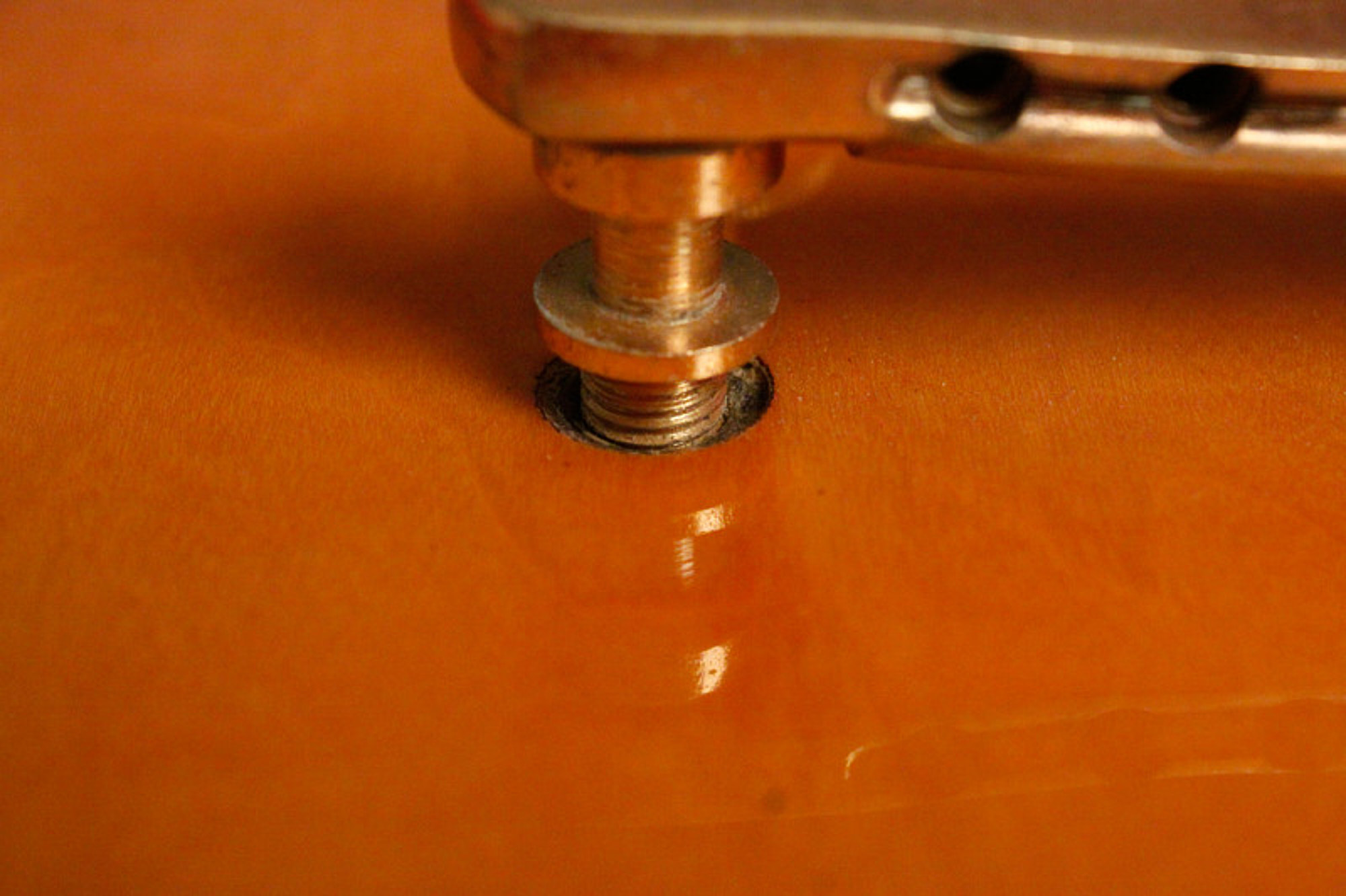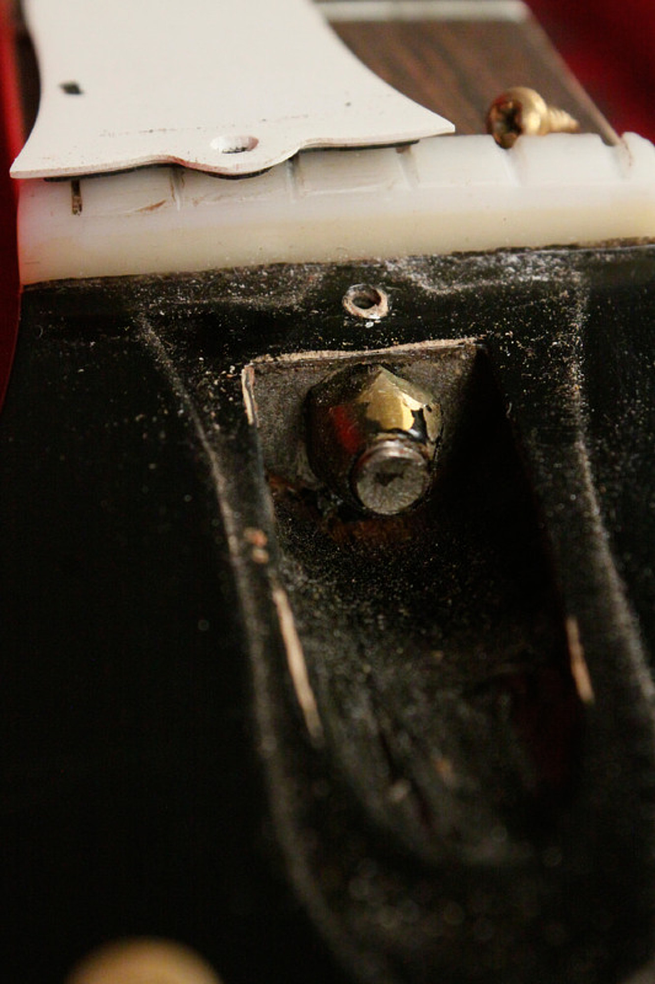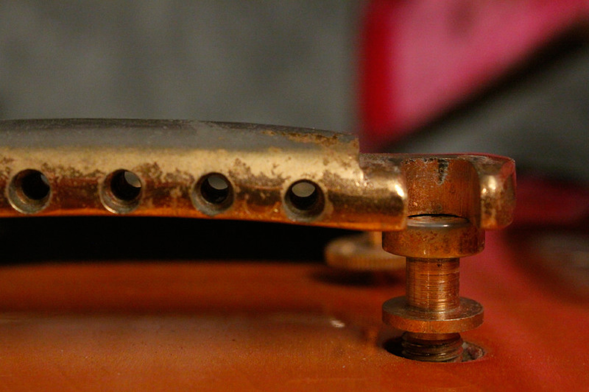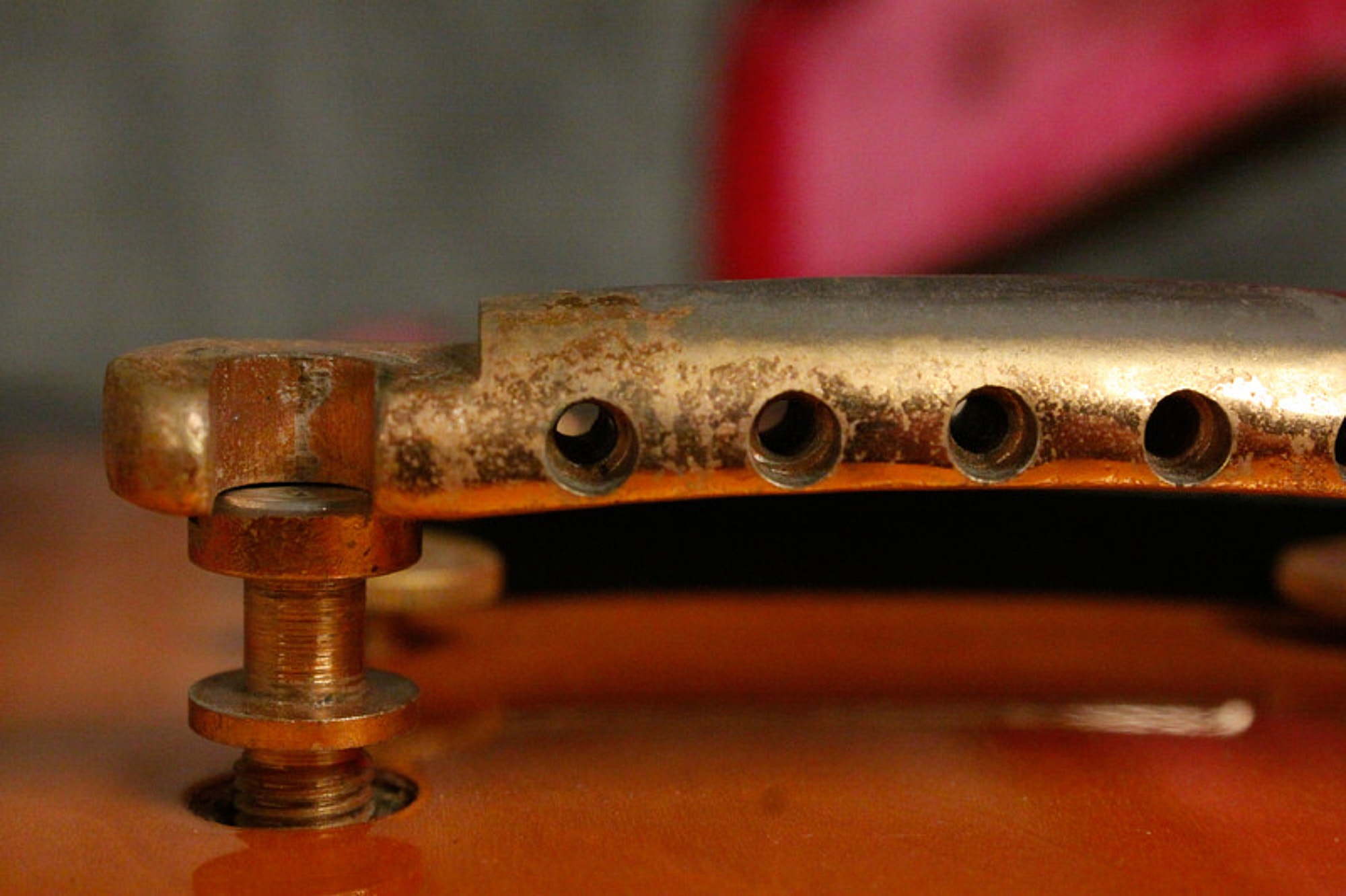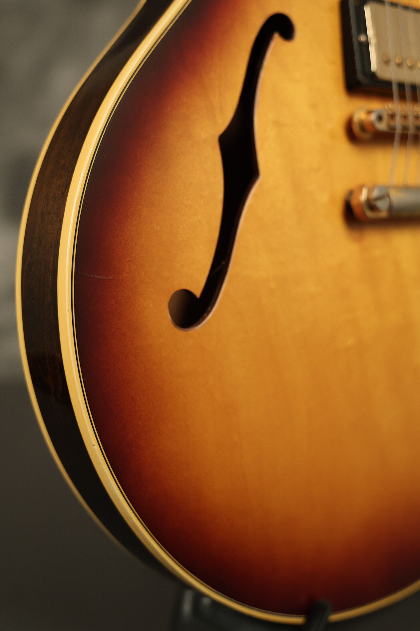 1960 Gibson ES-345 in its original Sunburst finish which has really maintained its brilliance. It has a great playing neck with good frets. It's all original except for 4 replaced tuning buttons, and 100% complete along with its original hardshell case. There are 4 small screw holes on the bottom edge where a Bigsby had been installed at one time. This 345 looks great with some nicks + dings and other cosmetic wear. The guitar itself remains structurally sound with no cracks, breaks or repairs. All electronics work and sound great with its original set of "Zebra" (black/white) PAF pickups. The cover have been removed at one point in time before being soldered back in place.
