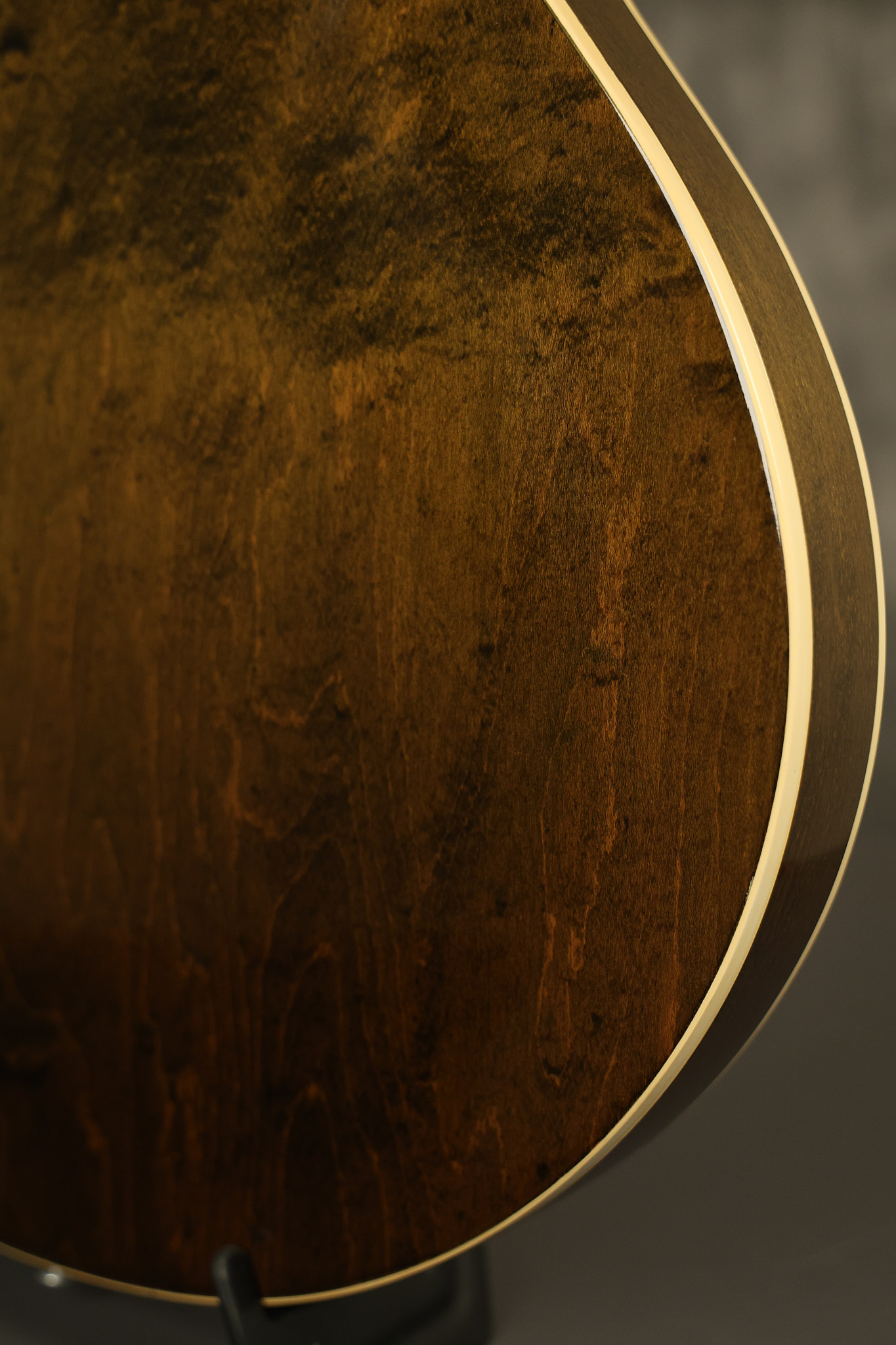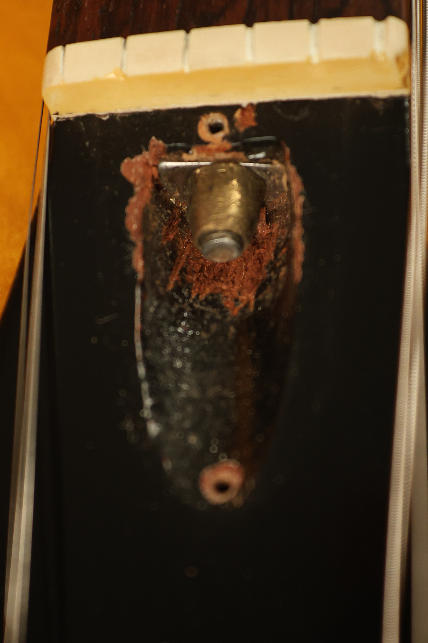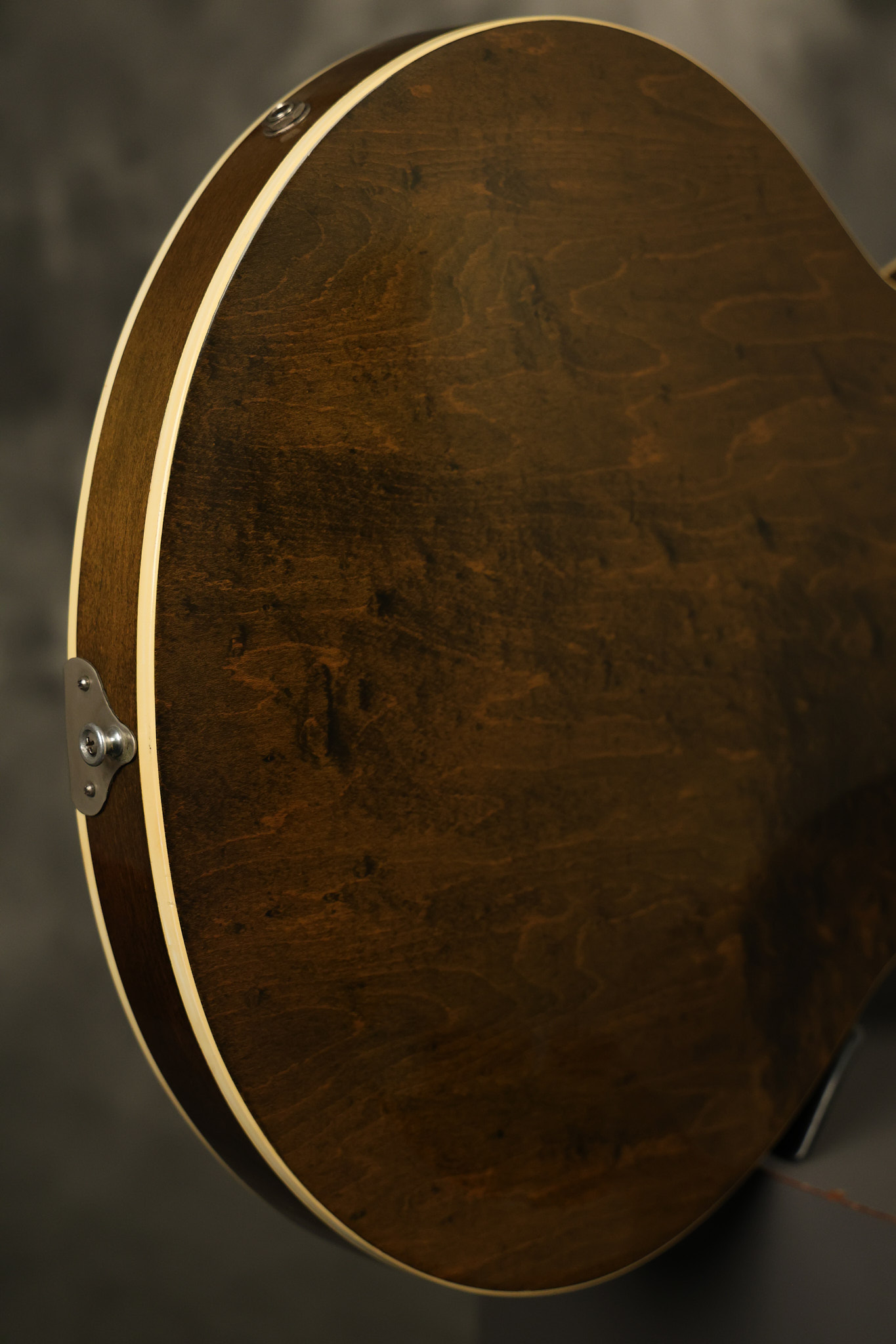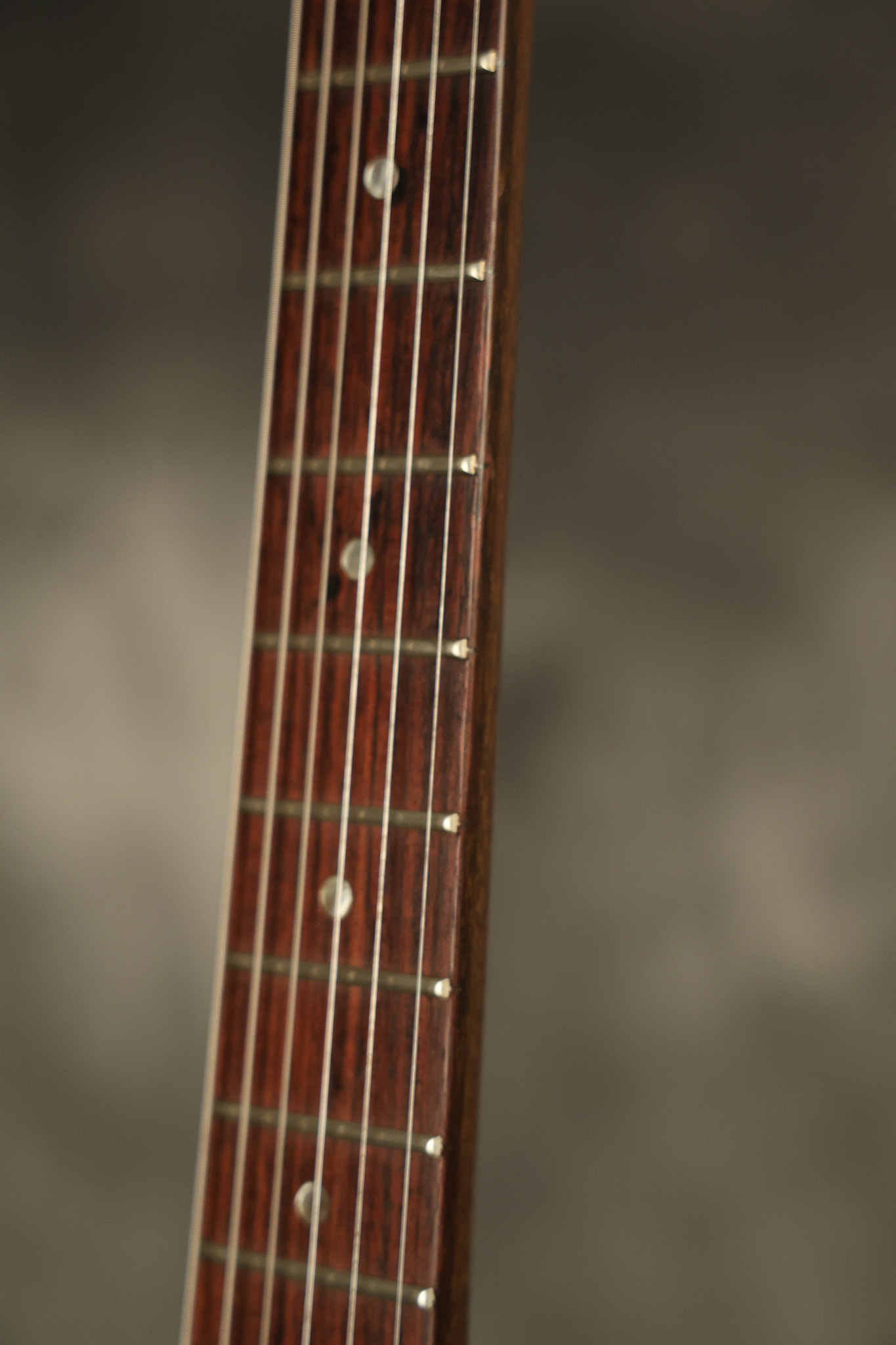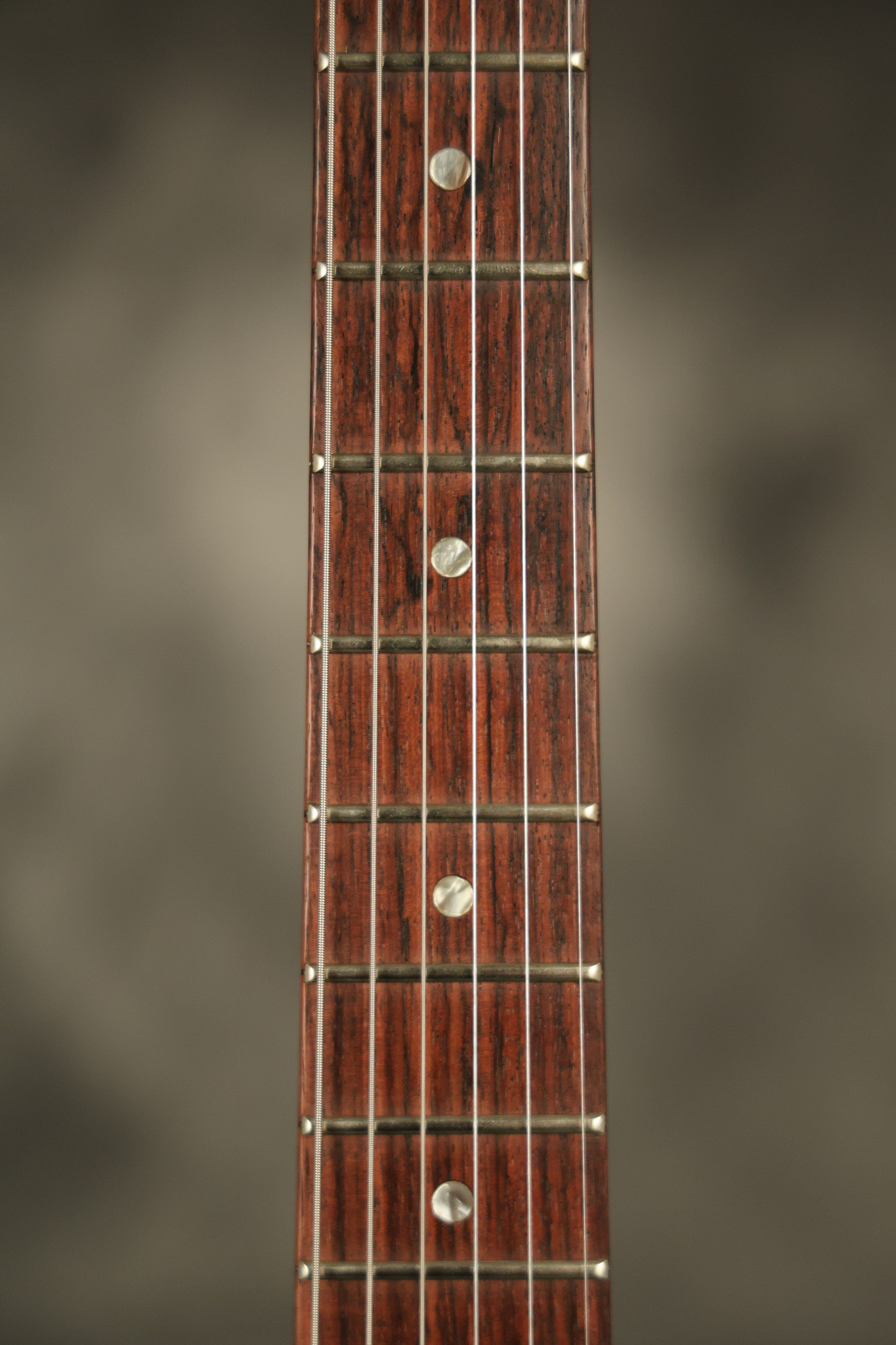 1961 Epiphone Sorrento E452TD in its original Royal Olive finish. It has a great playing neck with great frets. It's all original with the exception of the bridge and the adjustment wheels. It is a later Gibson Patent # bridge that has been slightly filed down on the bottom. The pictured hardshell case is included. The neck has been professionally reset. It looks great with some nicks + dings and other cosmetic wear. There are two one inch hairline cracks running out from the jack, but it remains a cosmetic issue only as the guitar itself remains structurally sound. All electronics work and sound great with its original set of mini-humbuckers (one PAF and one Patent # sticker).