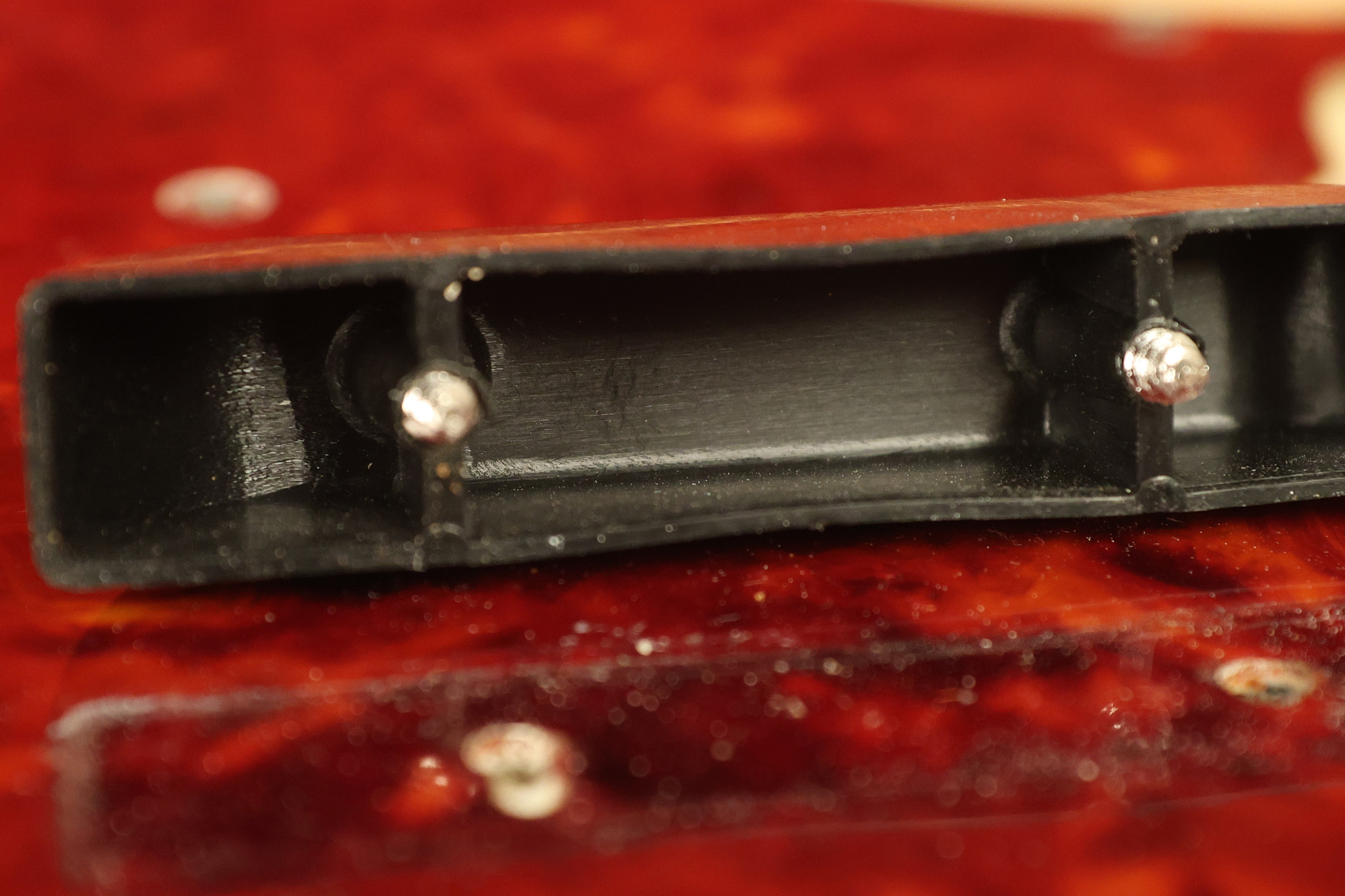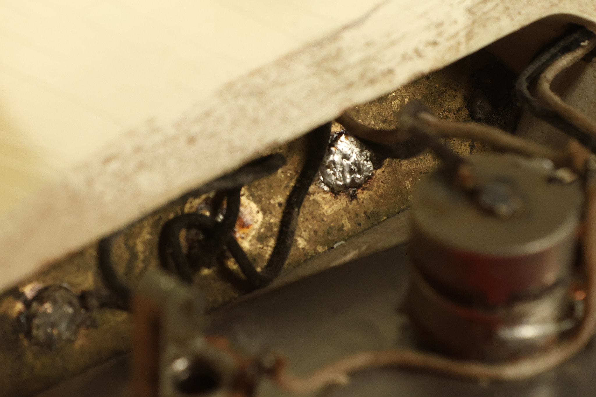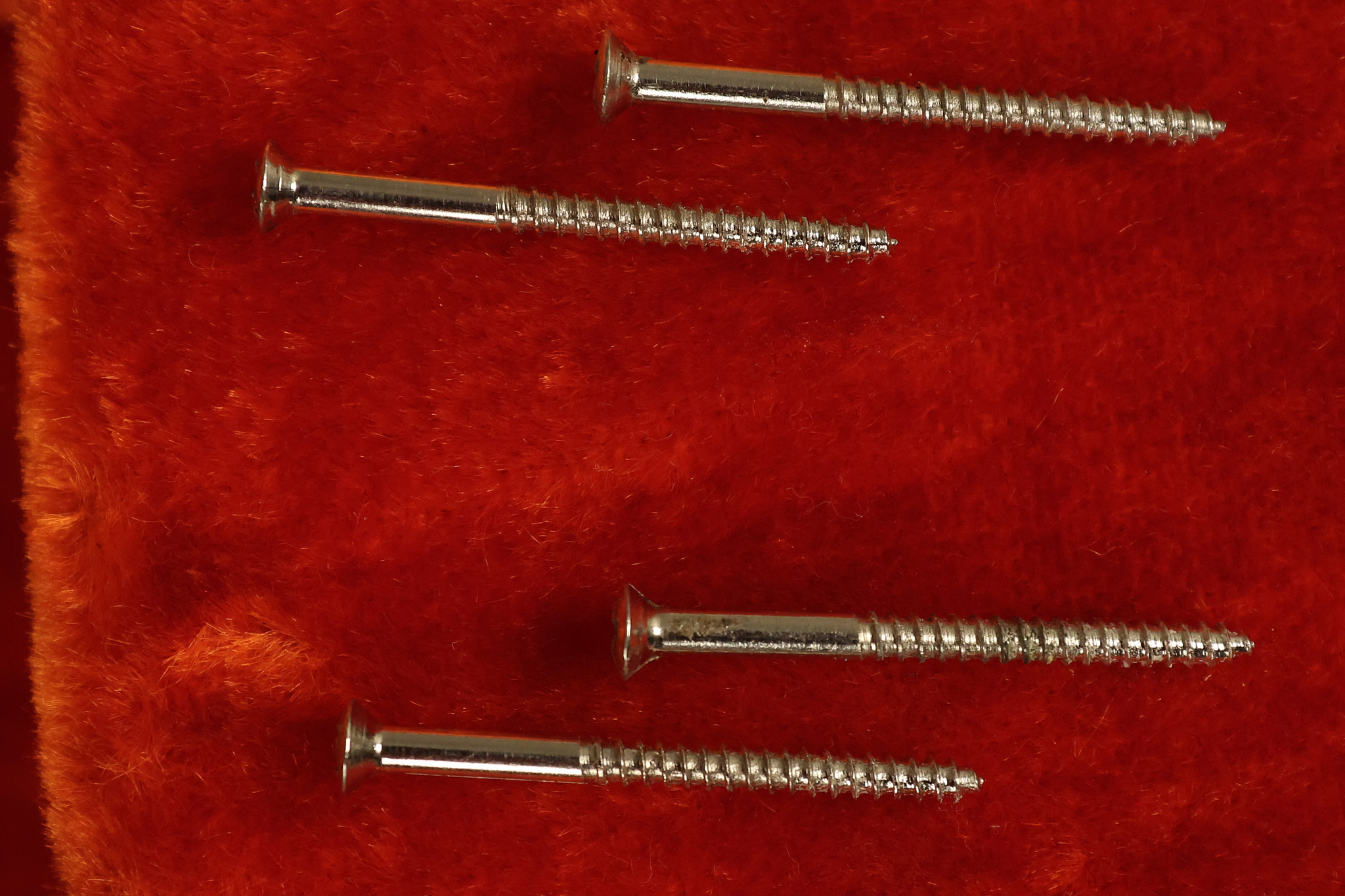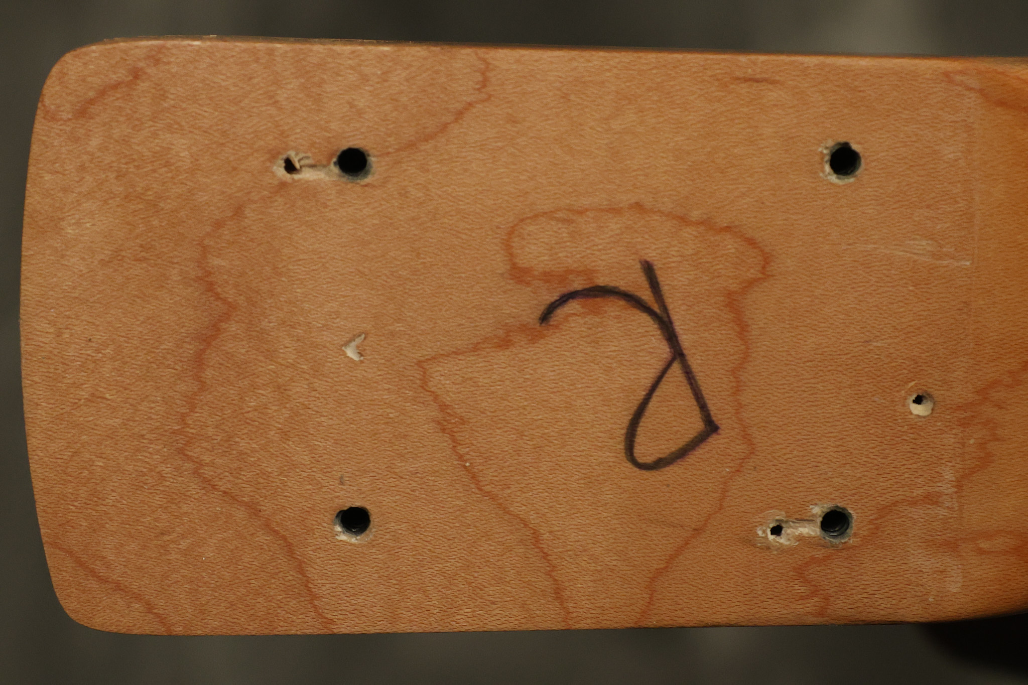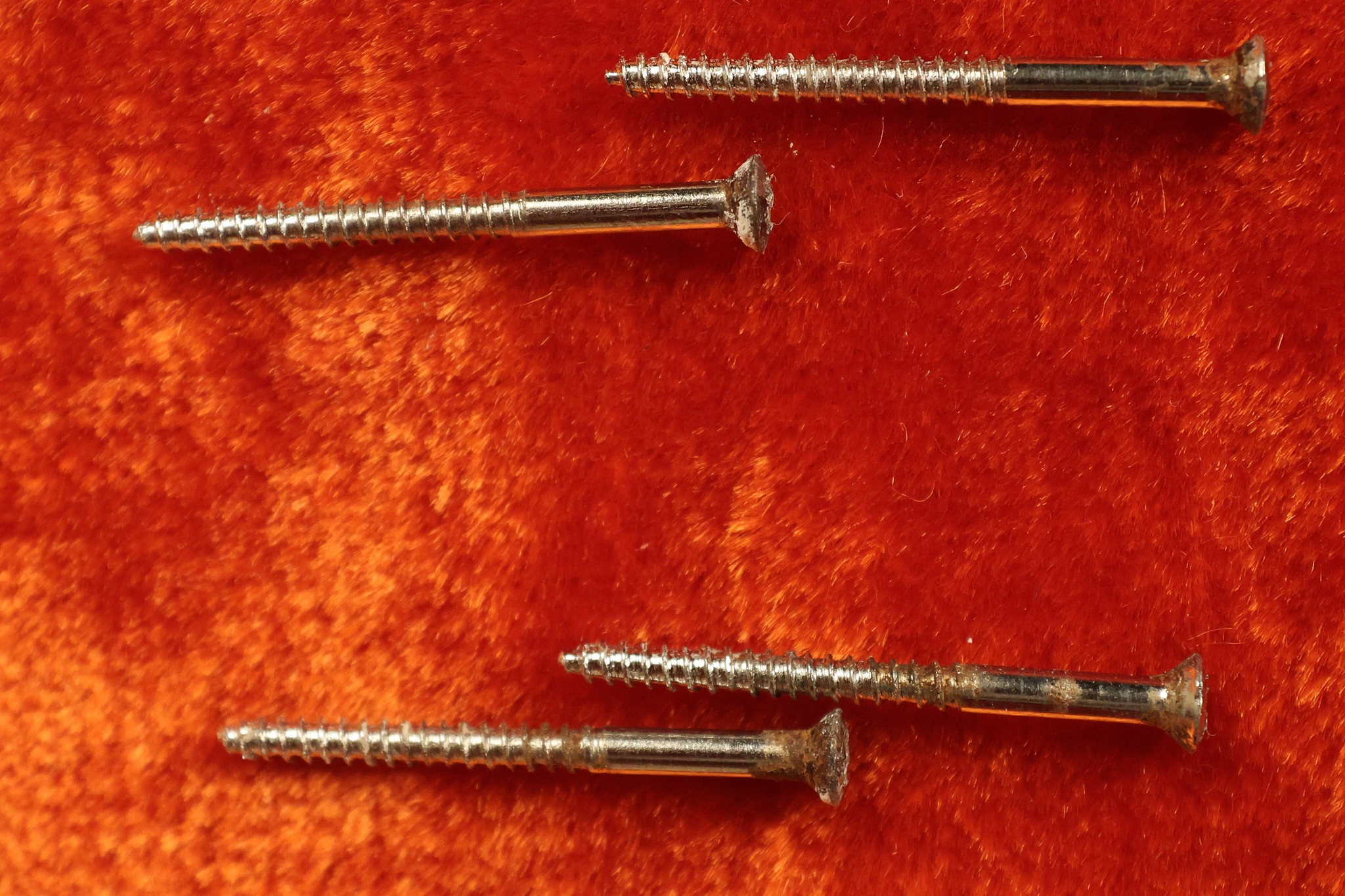 1961 Fender Jazz Bass "Stack Knob" with a body that has been refinished Blonde. Traces of original paint found underneath some parts indicate that it was originally Sunburst. The finish on the neck is original, but at the heel end of the neck the underside portion that is concealed in the neck pocket has been sanded. It has a great playing neck with great frets. Both pickups appear to have been rewound. All other parts appear to be original with the exception of one washer for one tuning key, one washer for one of the mutes and 3 of the 4 screws for the chrome covers. The original mutes are included along with the original Brown hardshell case. There are two areas on the back of the body where the finish was chipped/buffed out over the two factory dowels. There are nicks + dings, finish checking and other cosmetic wear including two faint rings in the finish of the back of the body. All electronics work and sound great, but the two original resistors have been removed. The weight is 8 lbs. 9 oz. without the covers.