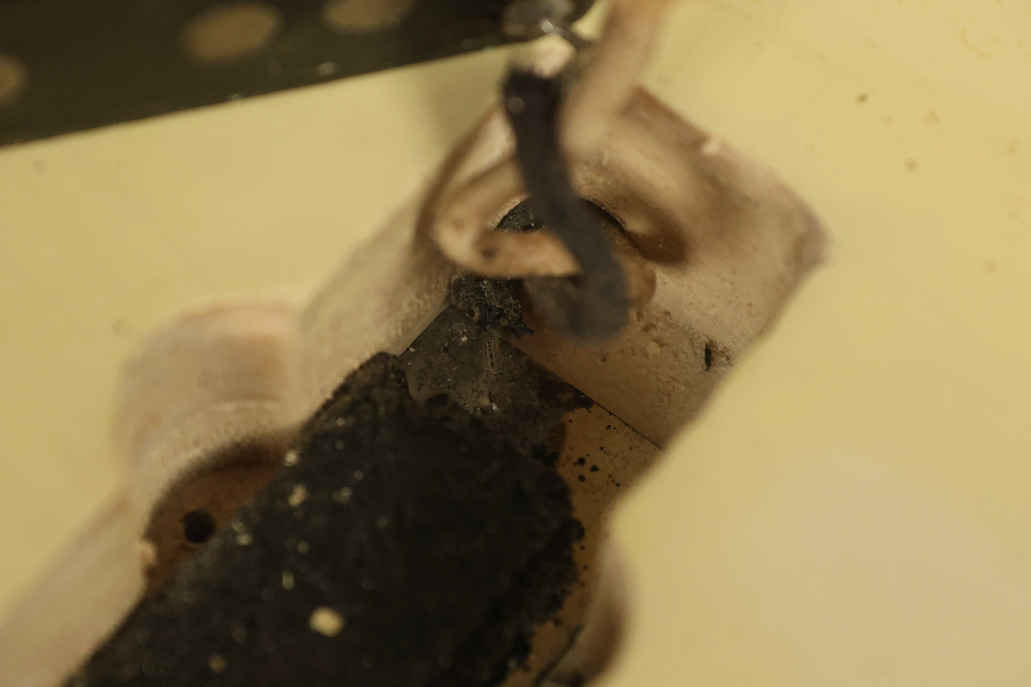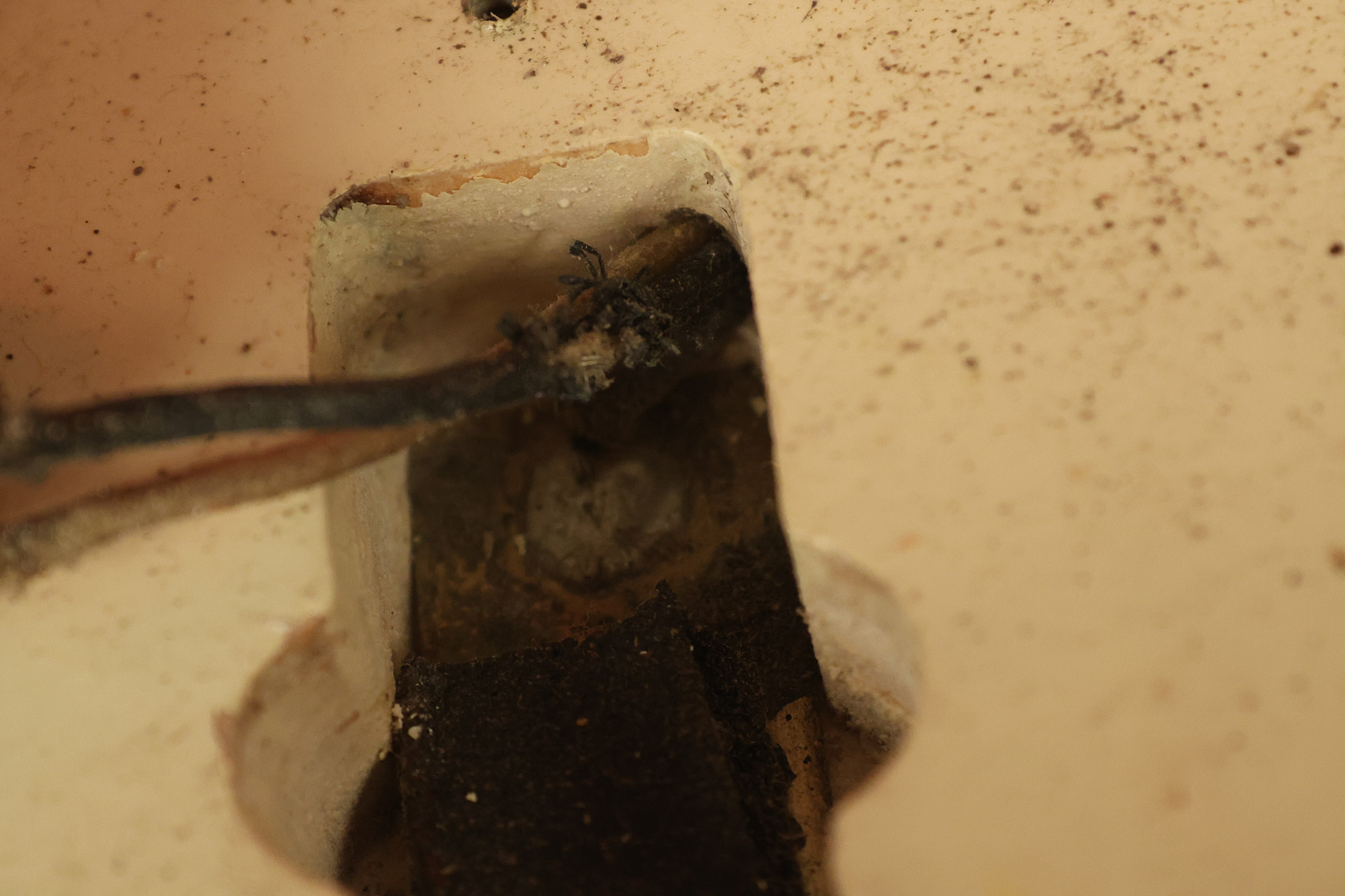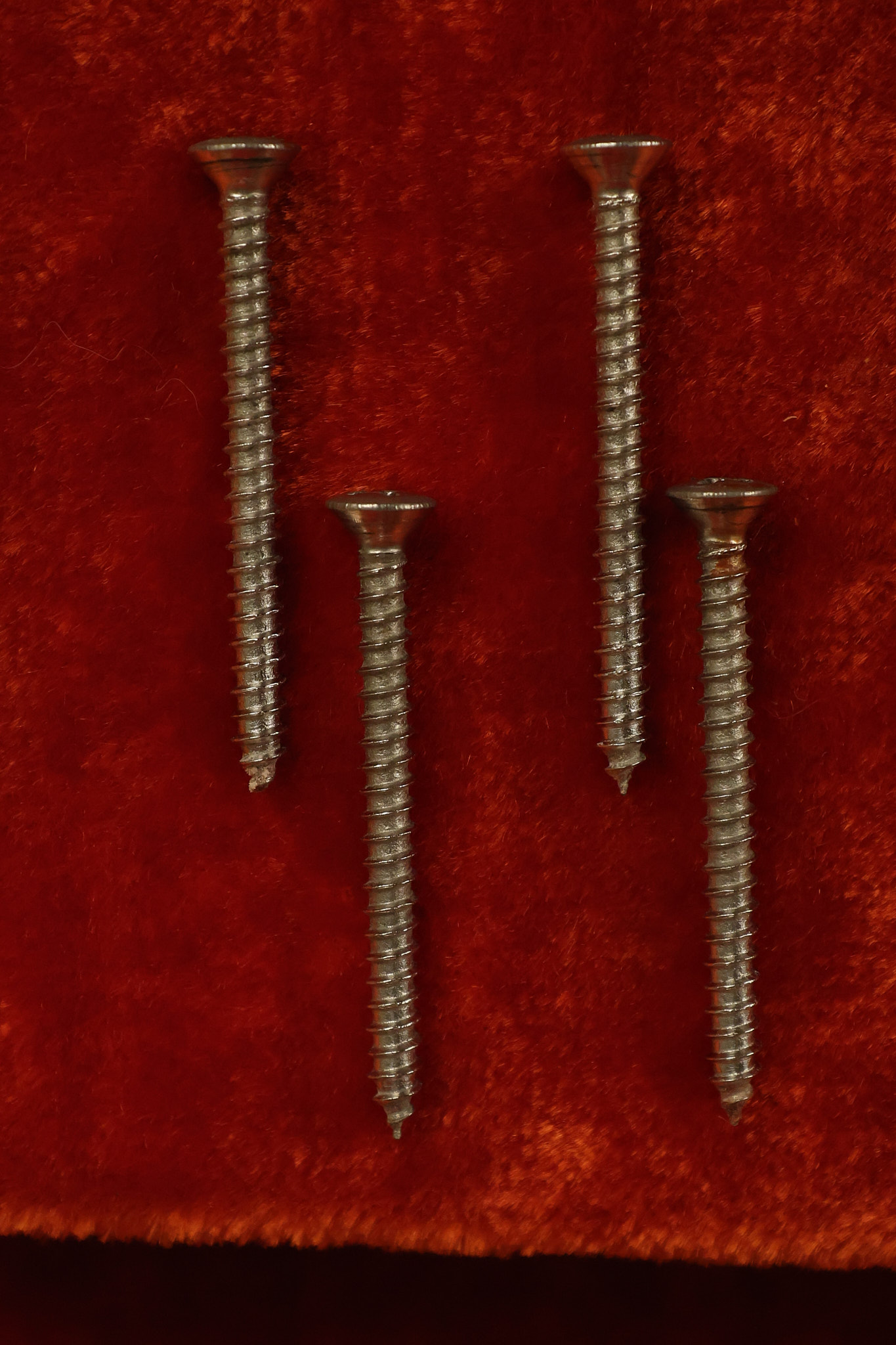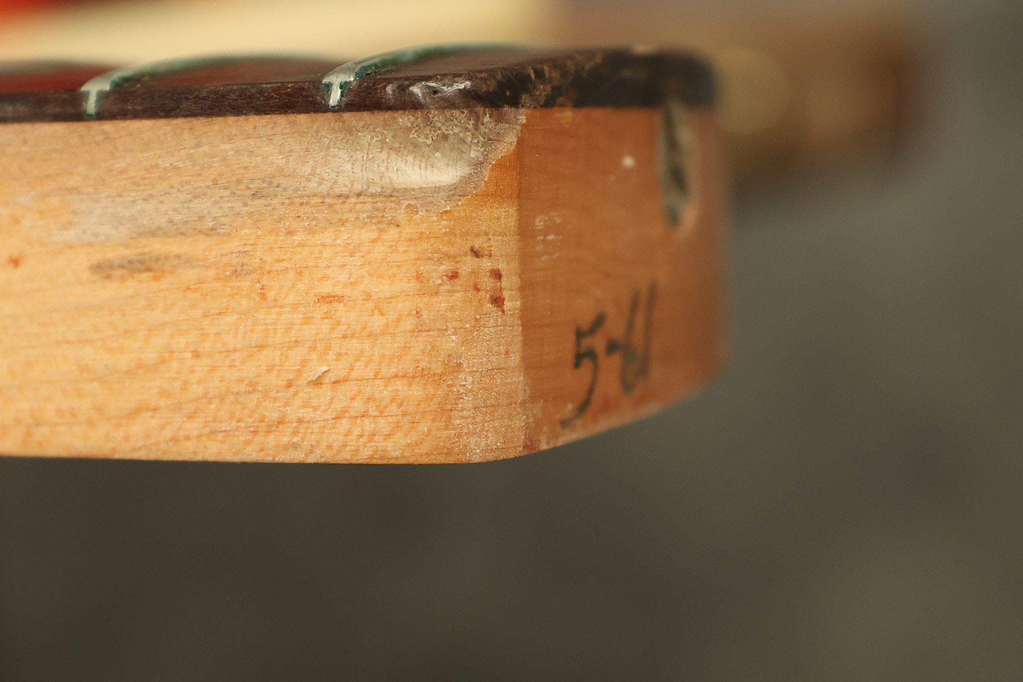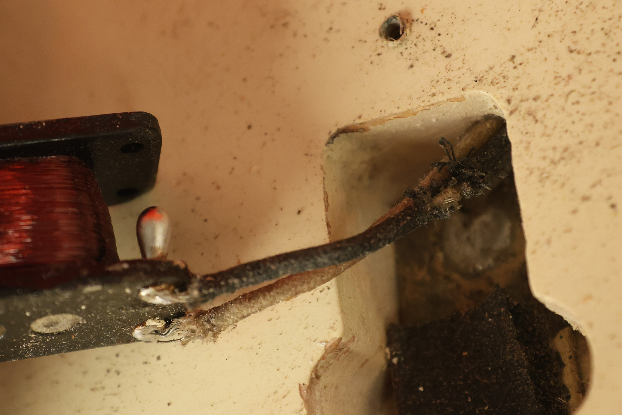1961 Fender Jazz Bass "Stack Knob" with a body that has been refinished Blonde. Traces of original paint found underneath some parts indicate that it was originally Sunburst. The finish on the neck is original, but at the heel end of the neck the underside portion that is concealed in the neck pocket has been sanded. It has a great playing neck with great frets. Both pickups appear to have been rewound. All other parts appear to be original with the exception of one washer for one tuning key, one washer for one of the mutes and 3 of the 4 screws for the chrome covers. The original mutes are included along with the original Brown hardshell case. There are two areas on the back of the body where the finish was chipped/buffed out over the two factory dowels. There are nicks + dings, finish checking and other cosmetic wear including two faint rings in the finish of the back of the body. All electronics work and sound great, but the two original resistors have been removed. The weight is 8 lbs. 9 oz. without the covers.