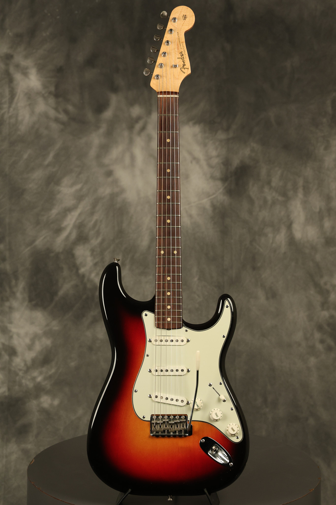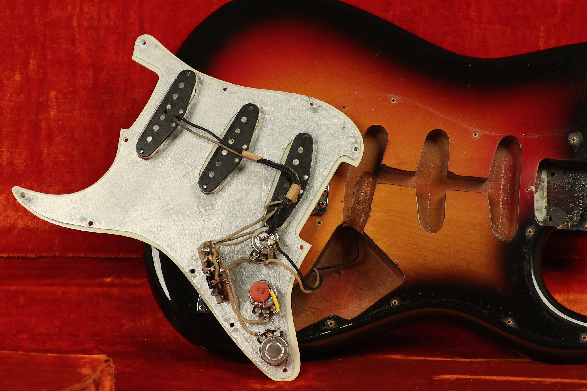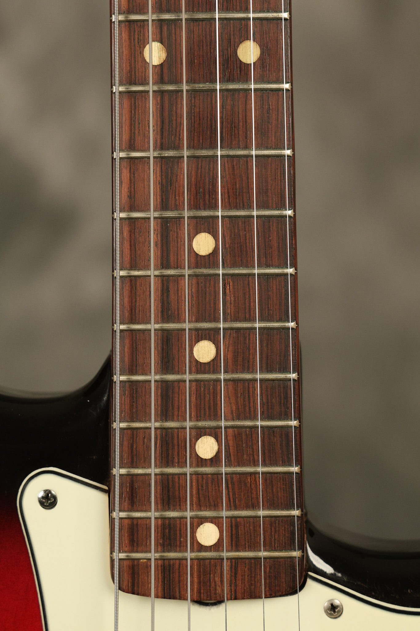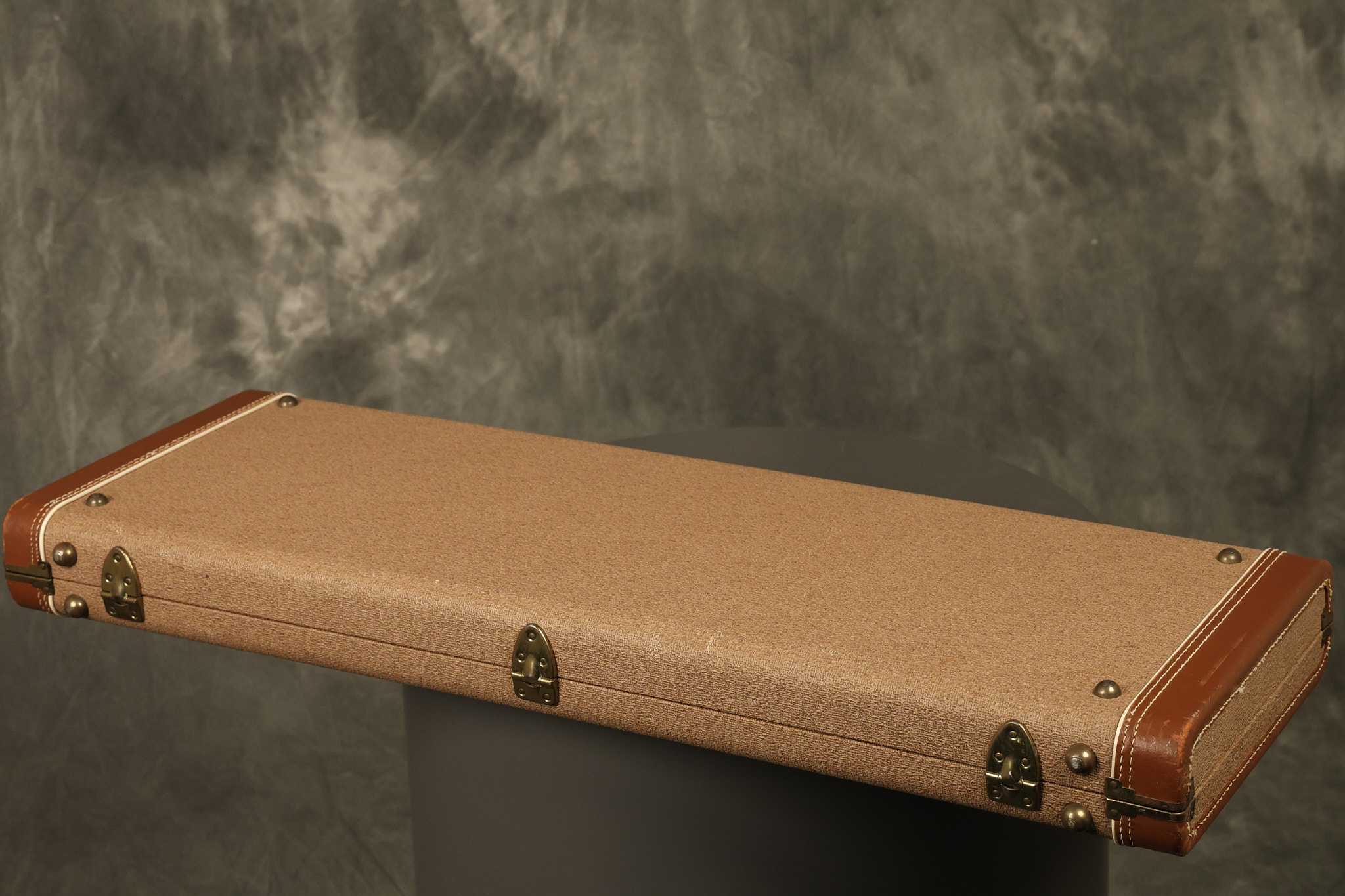 1961 Fender Stratocaster in its original Sunburst finish which has really maintained its original brilliance in color. It has a great playing neck with great frets. It's all original and 100% complete along with its original tremolo arm, original hardshell case and original HANG TAG with the matching serial number and original allen wrench still taped to the inside. It's in EXCELLENT condition with nicks + dings and other cosmetic wear. Everything remains structurally sound with no cracks, breaks or repairs. All electronics work and sound great while all solder joints remain original and untampered with. The weight is 7 lbs. 12.8 oz.