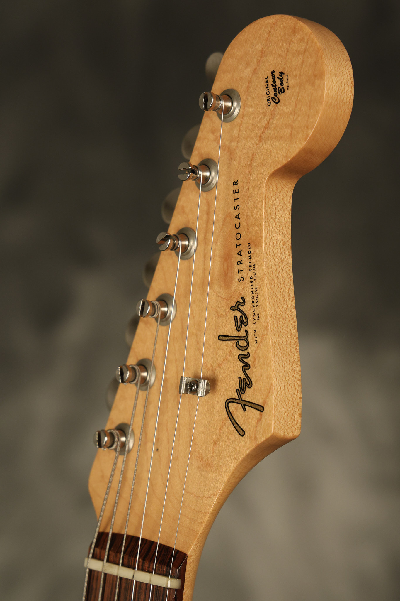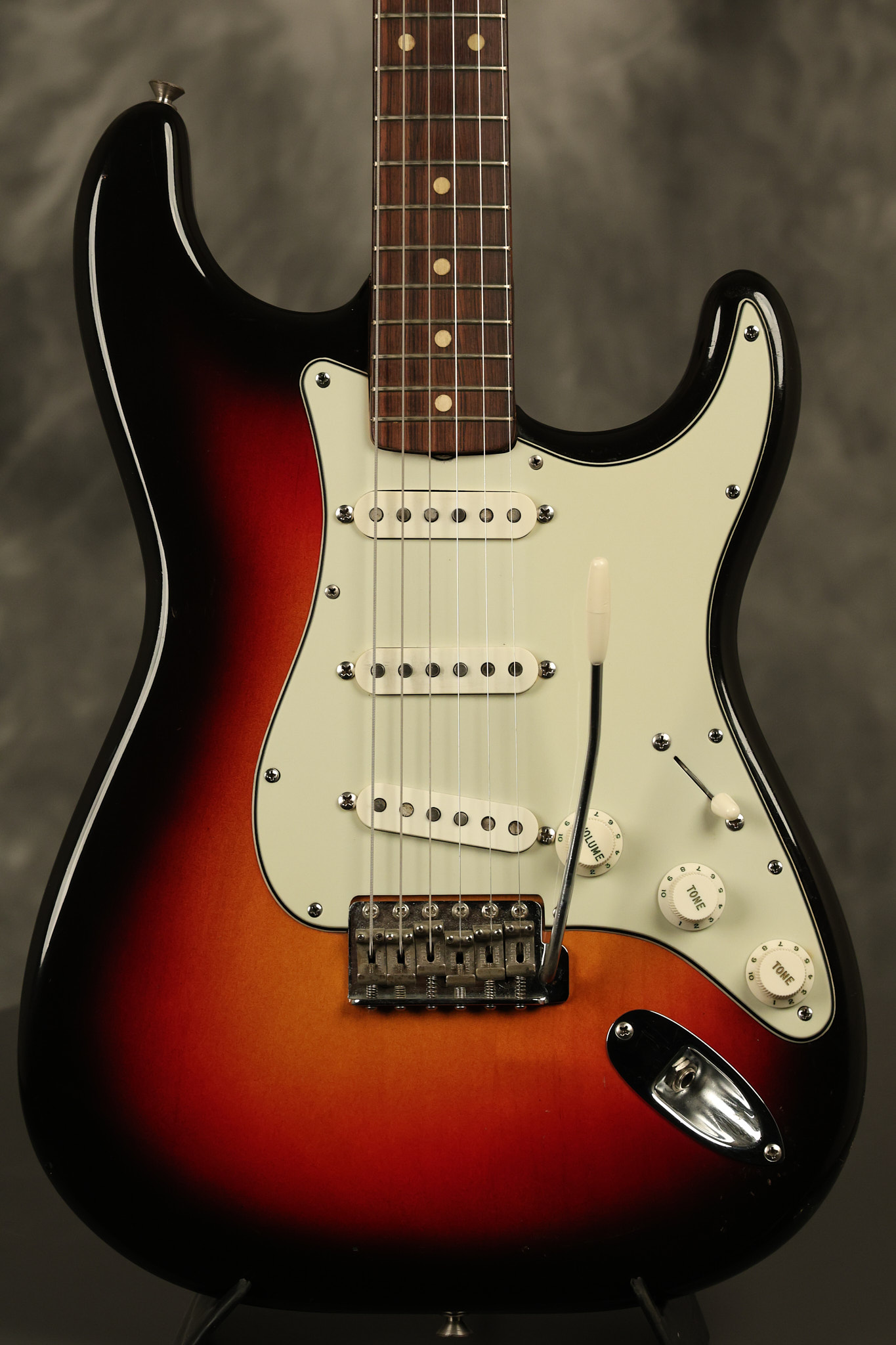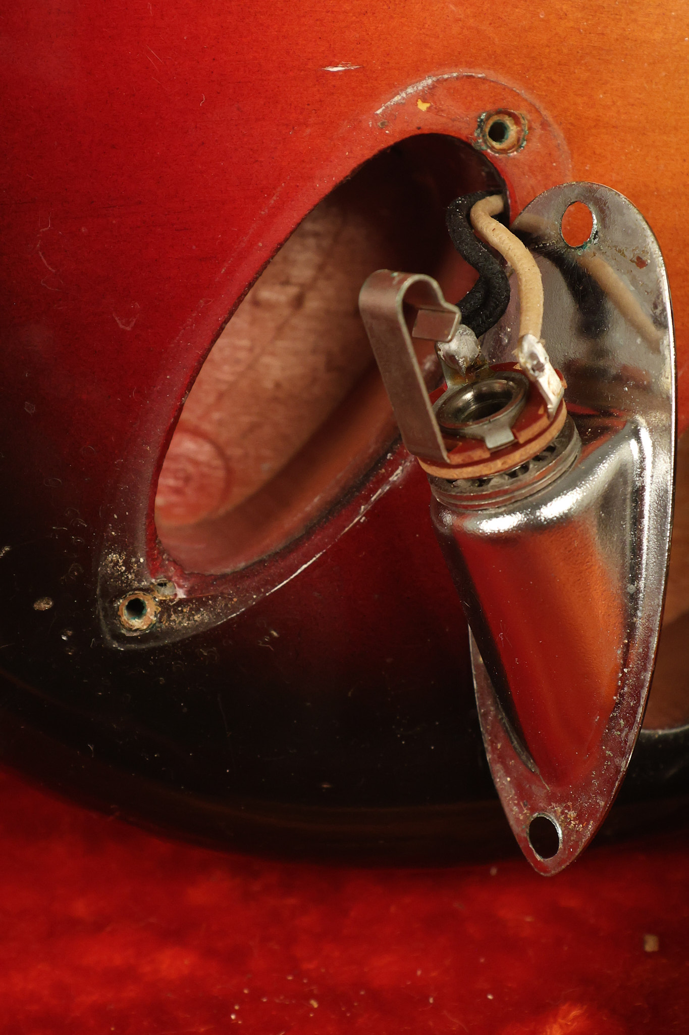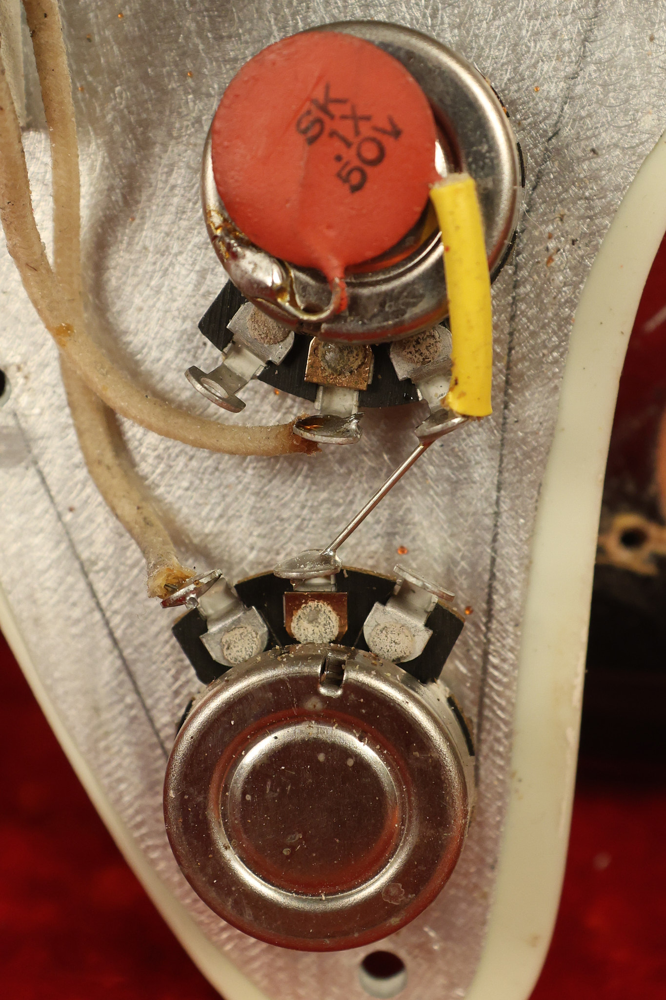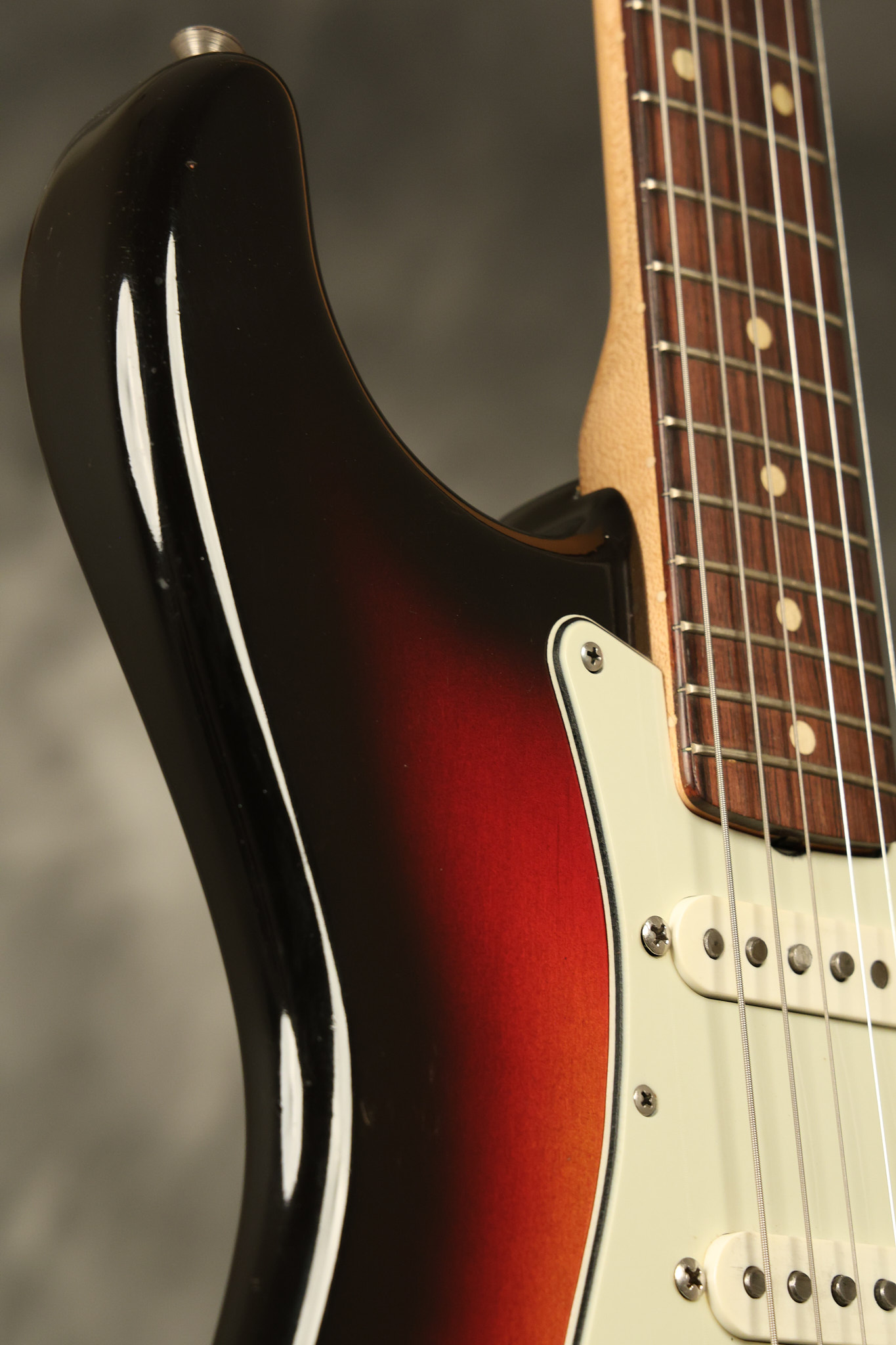 1961 Fender Stratocaster in its original Sunburst finish which has really maintained its original brilliance in color. It has a great playing neck with great frets. It's all original and 100% complete along with its original tremolo arm, original hardshell case and original HANG TAG with the matching serial number and original allen wrench still taped to the inside. It's in EXCELLENT condition with nicks + dings and other cosmetic wear. Everything remains structurally sound with no cracks, breaks or repairs. All electronics work and sound great while all solder joints remain original and untampered with. The weight is 7 lbs. 12.8 oz.