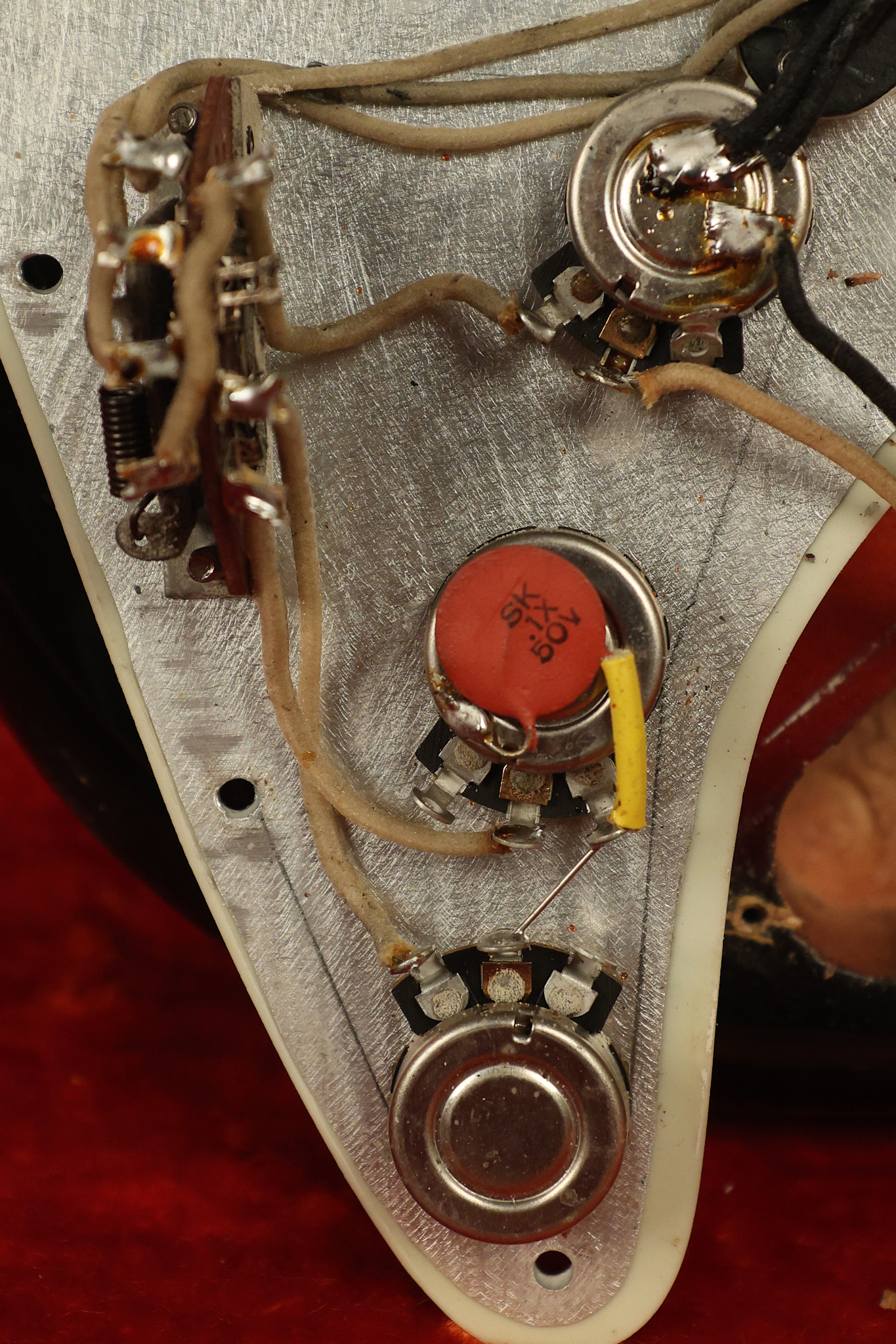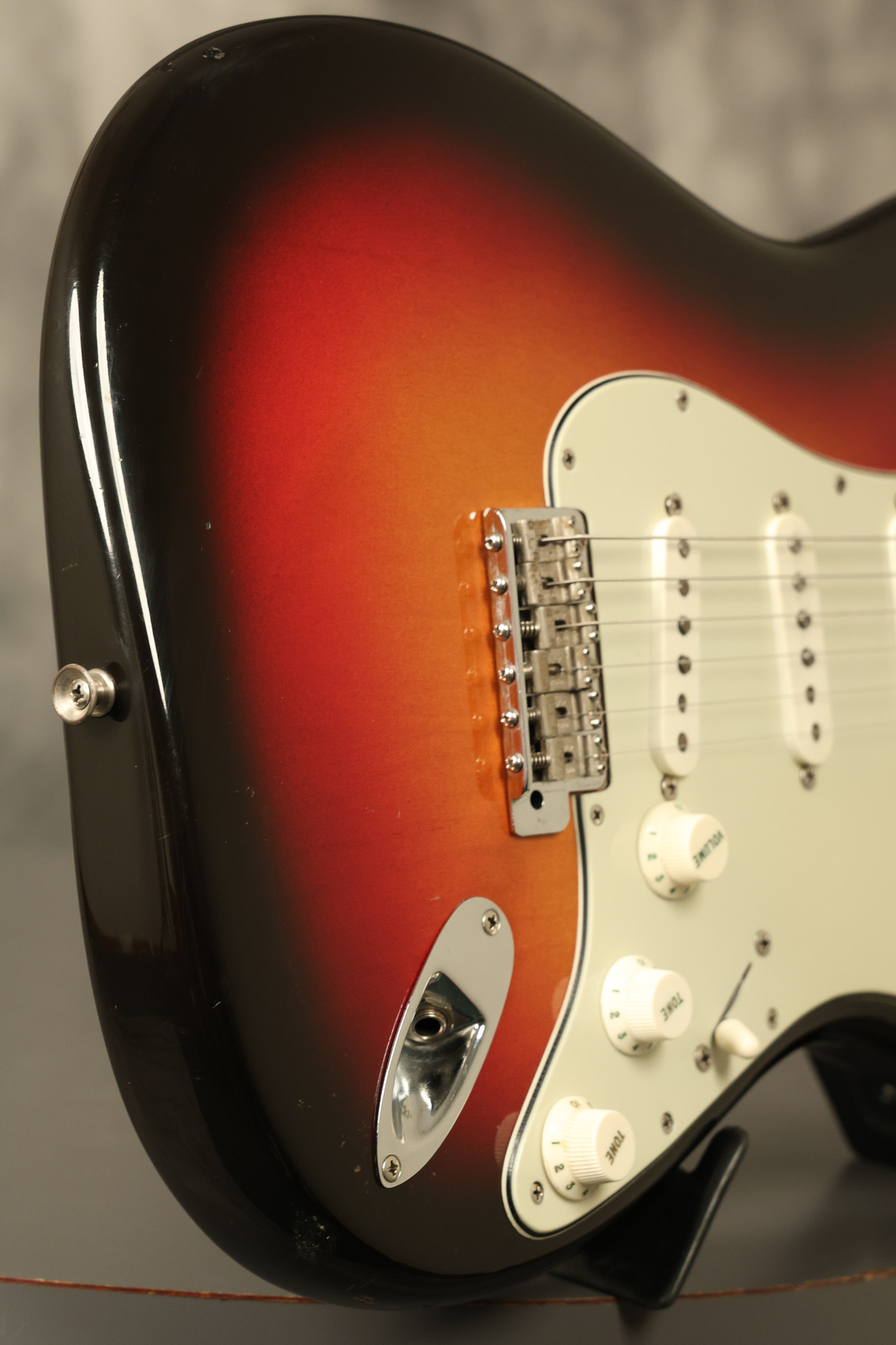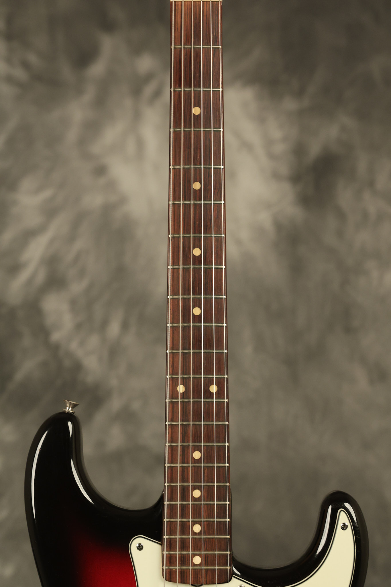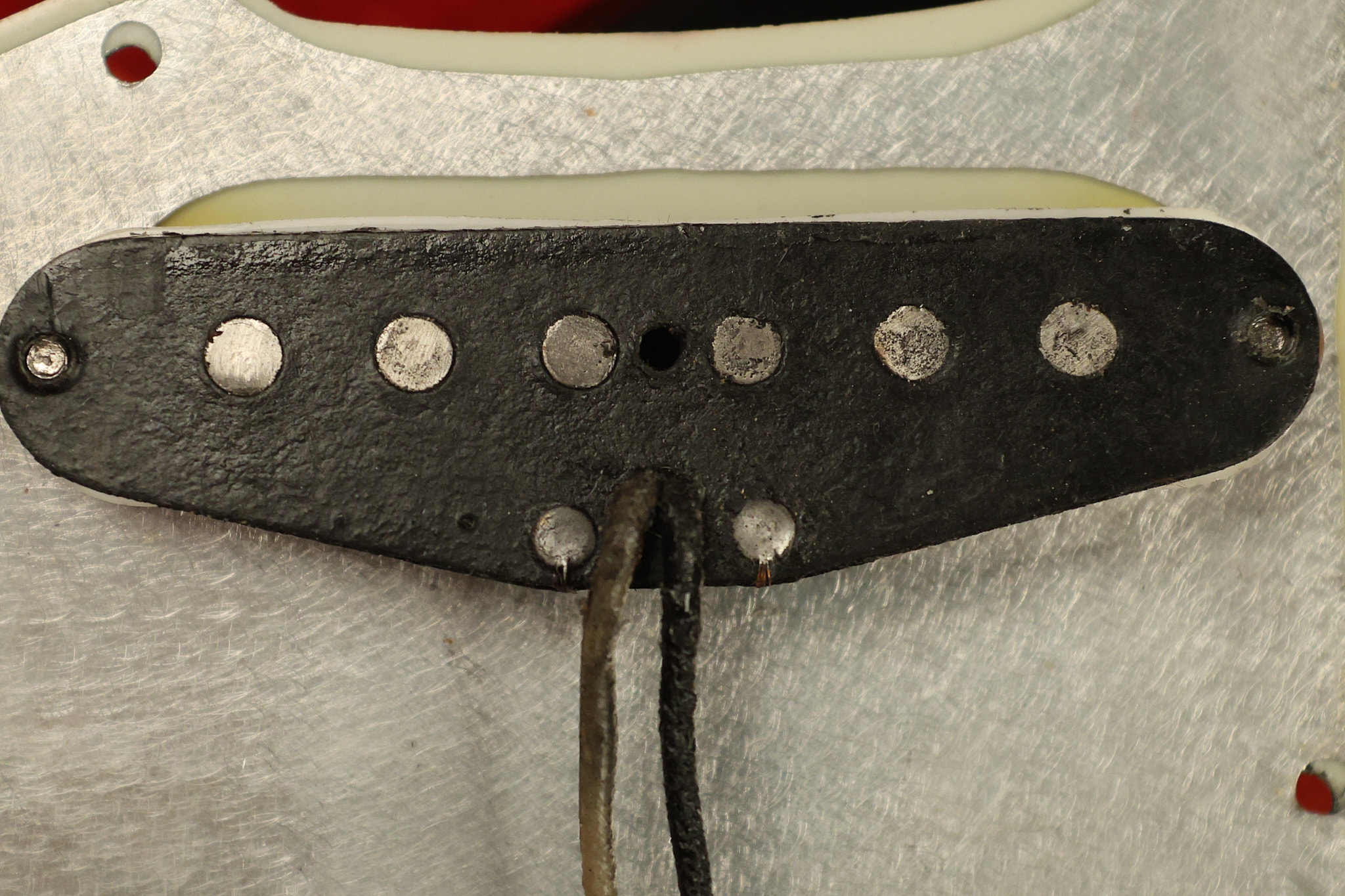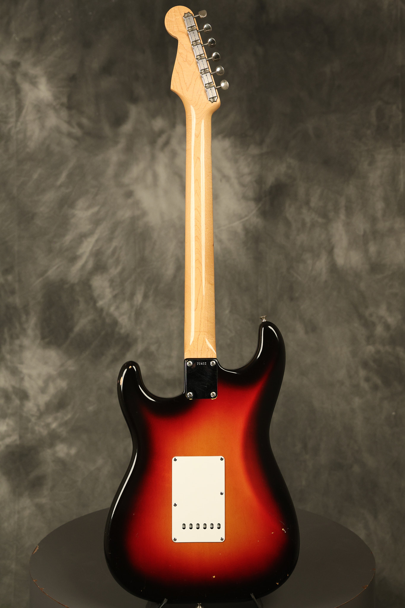 1961 Fender Stratocaster in its original Sunburst finish which has really maintained its original brilliance in color. It has a great playing neck with great frets. It's all original and 100% complete along with its original tremolo arm, original hardshell case and original HANG TAG with the matching serial number and original allen wrench still taped to the inside. It's in EXCELLENT condition with nicks + dings and other cosmetic wear. Everything remains structurally sound with no cracks, breaks or repairs. All electronics work and sound great while all solder joints remain original and untampered with. The weight is 7 lbs. 12.8 oz.