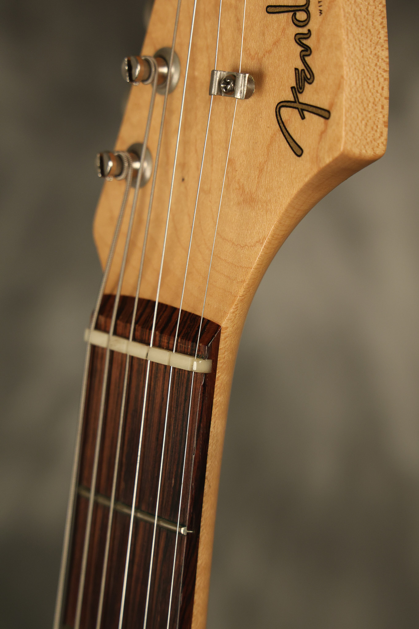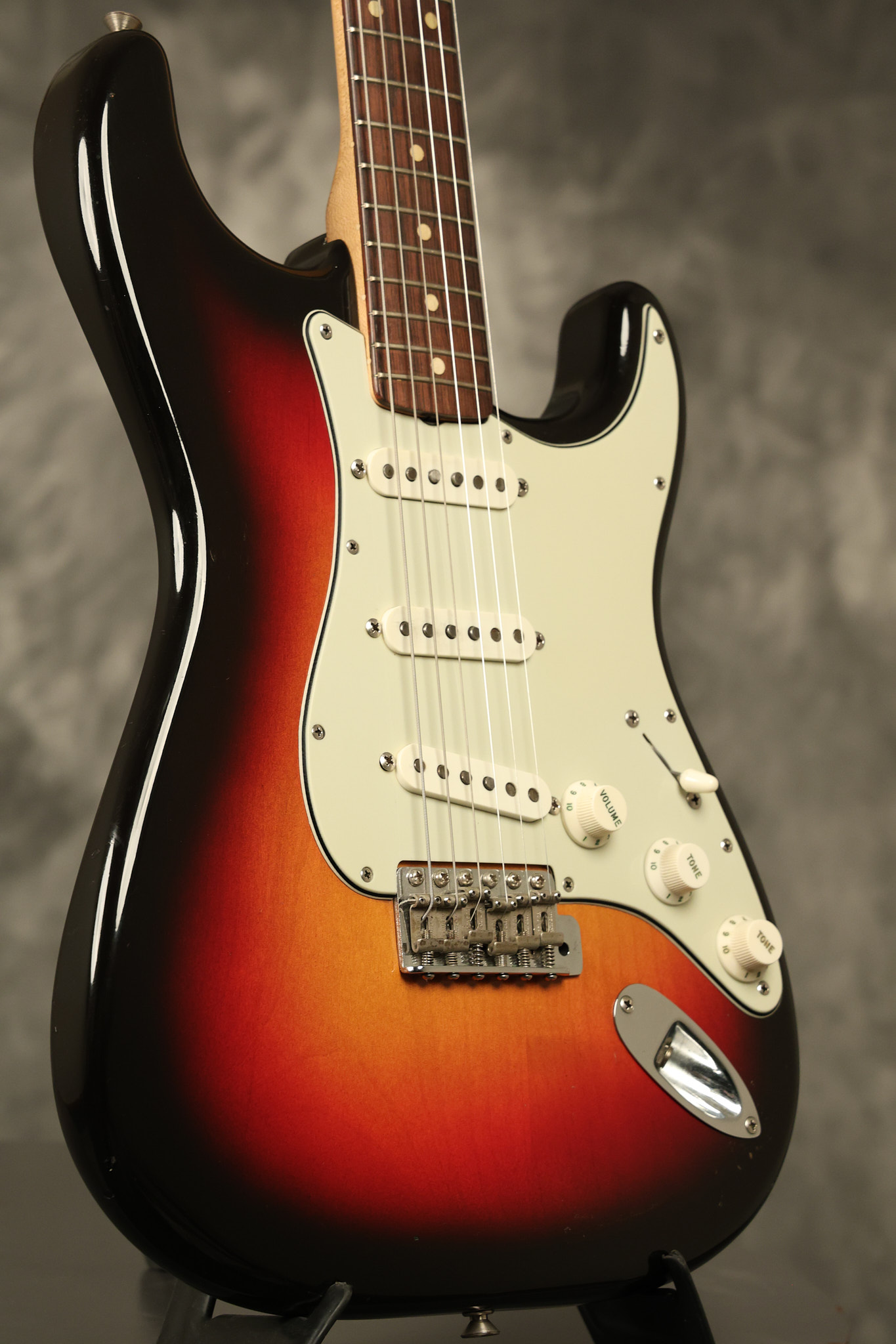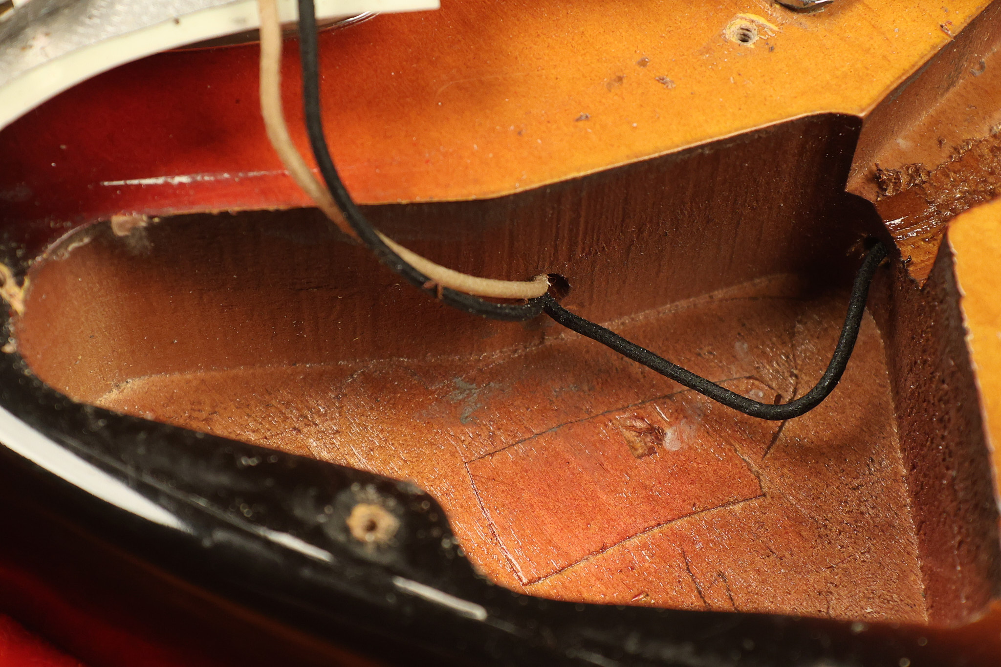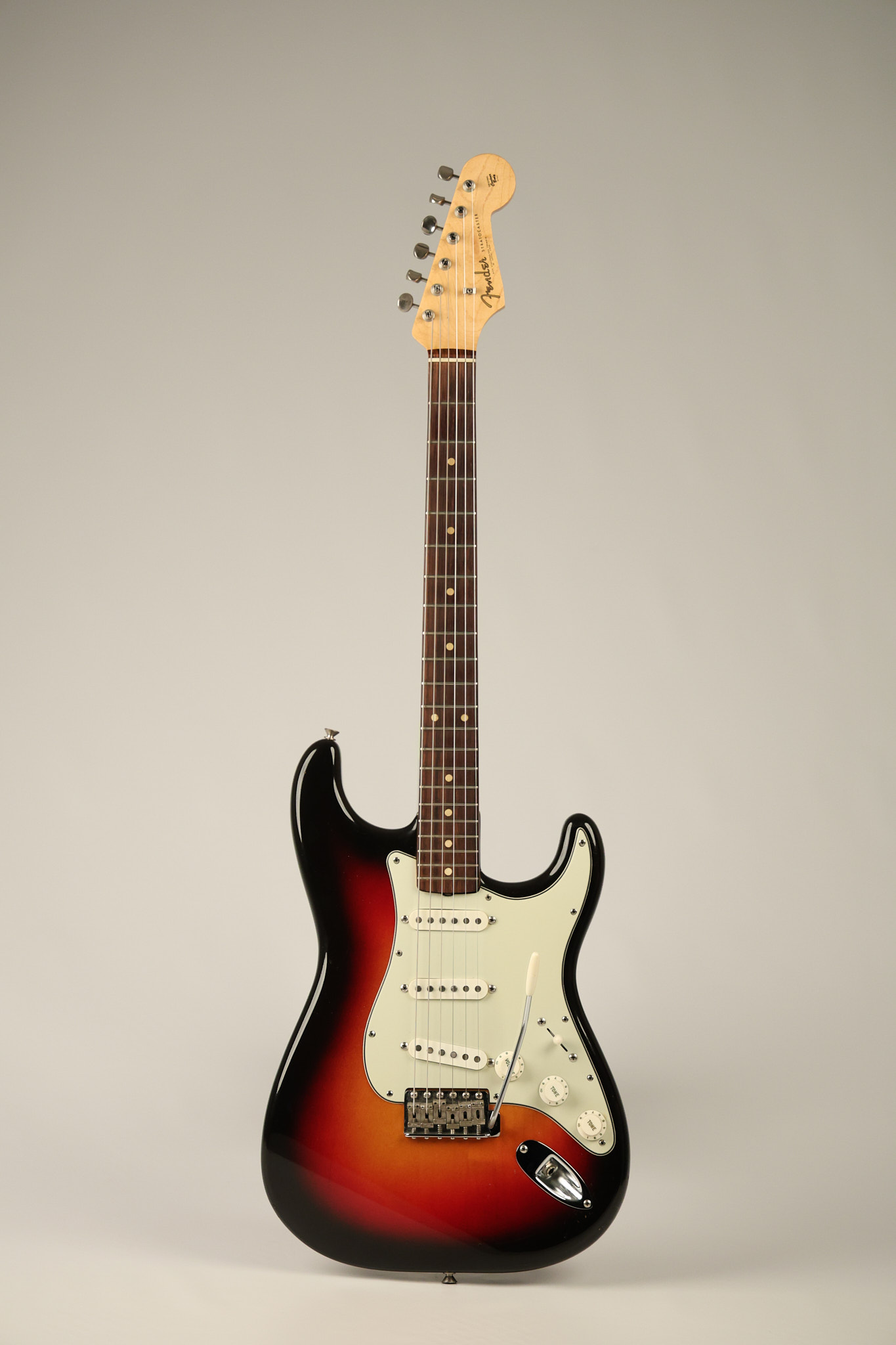 1961 Fender Stratocaster in its original Sunburst finish which has really maintained its original brilliance in color. It has a great playing neck with great frets. It's all original and 100% complete along with its original tremolo arm, original hardshell case and original HANG TAG with the matching serial number and original allen wrench still taped to the inside. It's in EXCELLENT condition with nicks + dings and other cosmetic wear. Everything remains structurally sound with no cracks, breaks or repairs. All electronics work and sound great while all solder joints remain original and untampered with. The weight is 7 lbs. 12.8 oz.